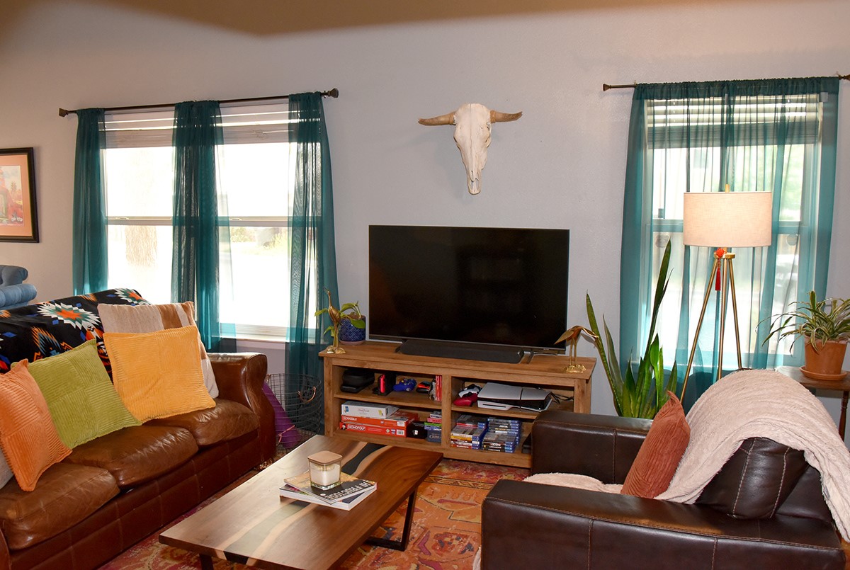 Check out this sweet two-story home in Tierra Contenta. Master suite is on the ground floor with two guest bedrooms upstairs. Large fenced back yard with a storage shed, newer kitchen appliances, pitched metal roof and attached one-car garage round out the picture.