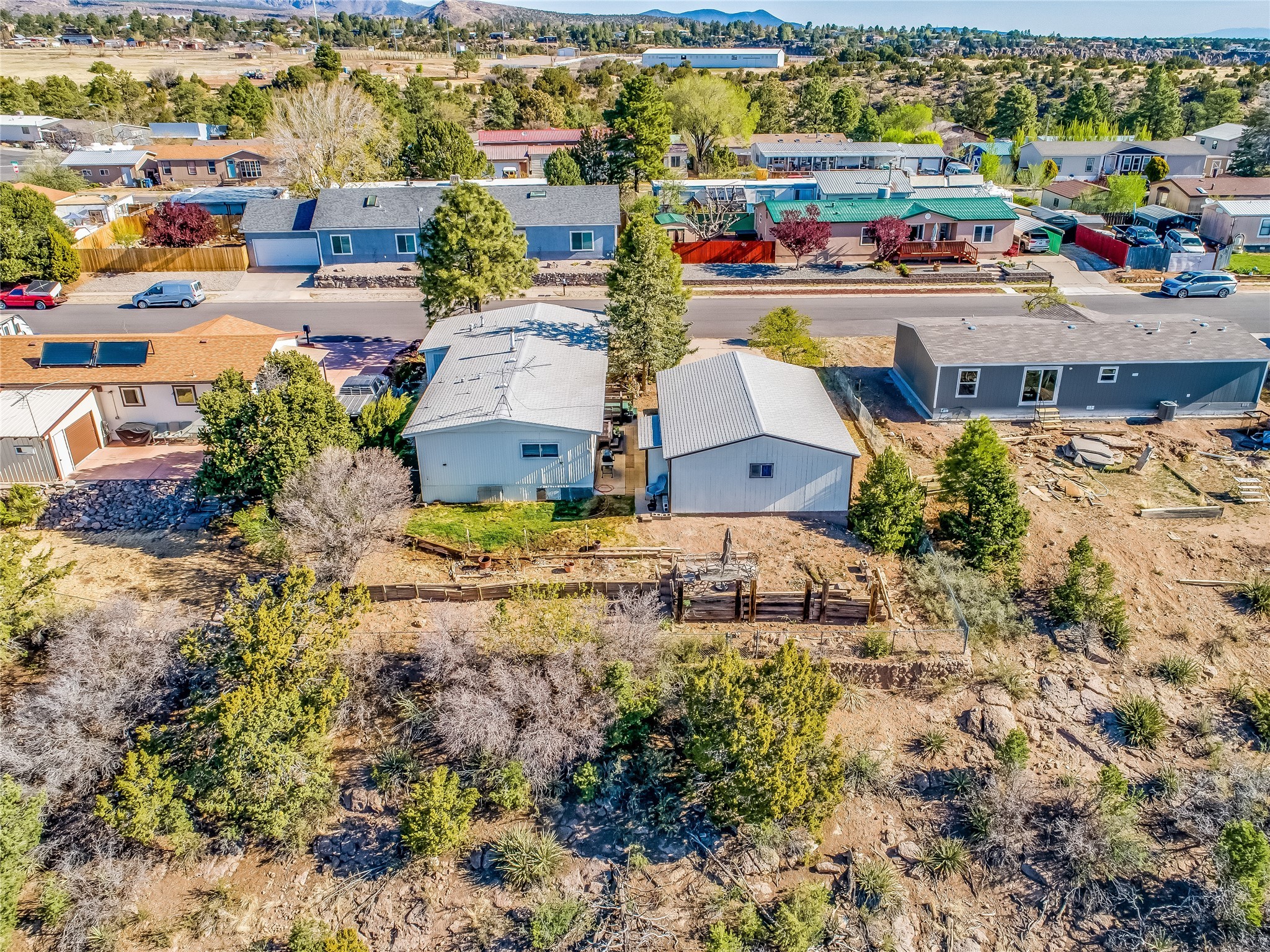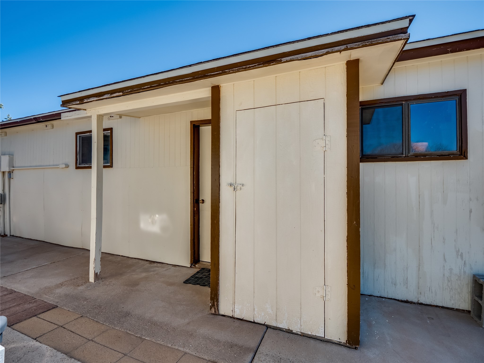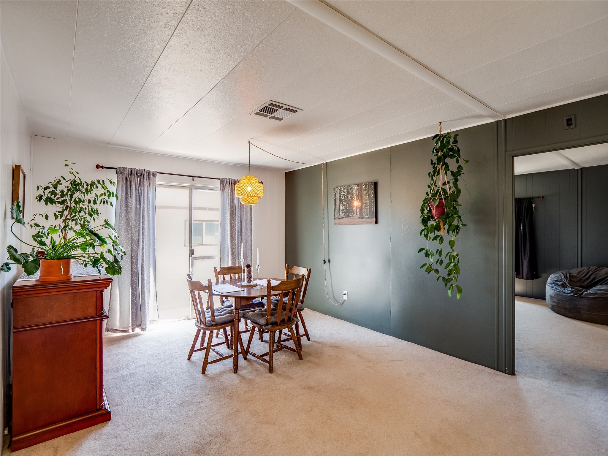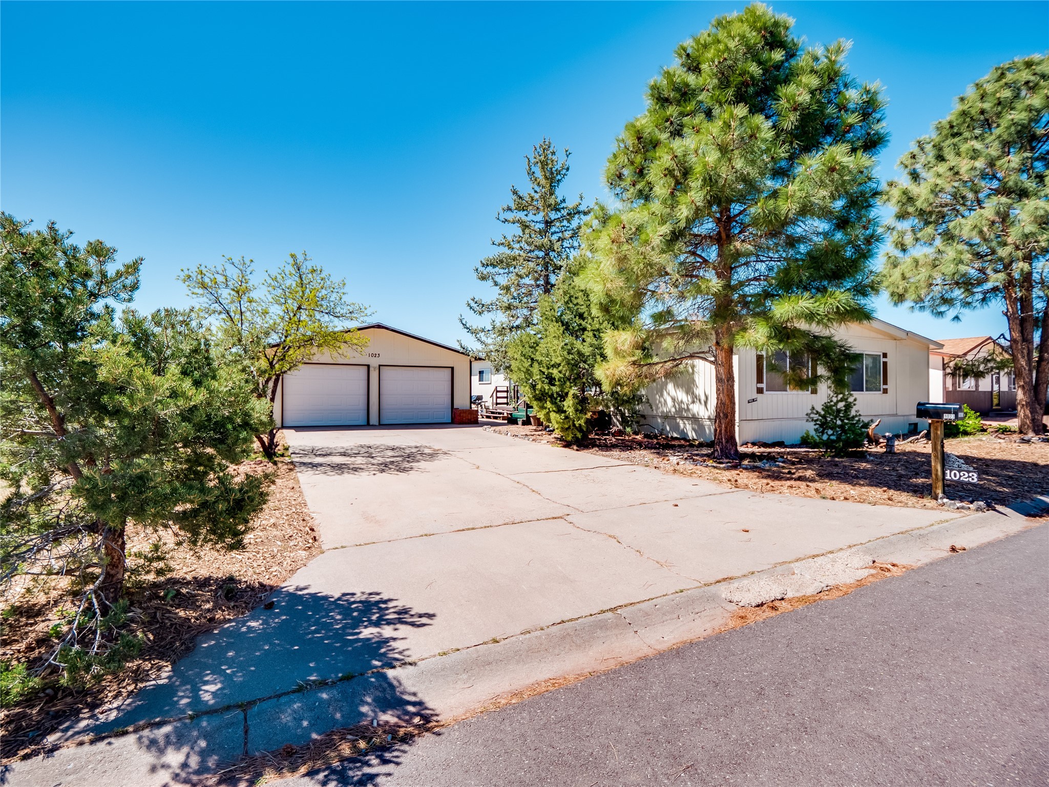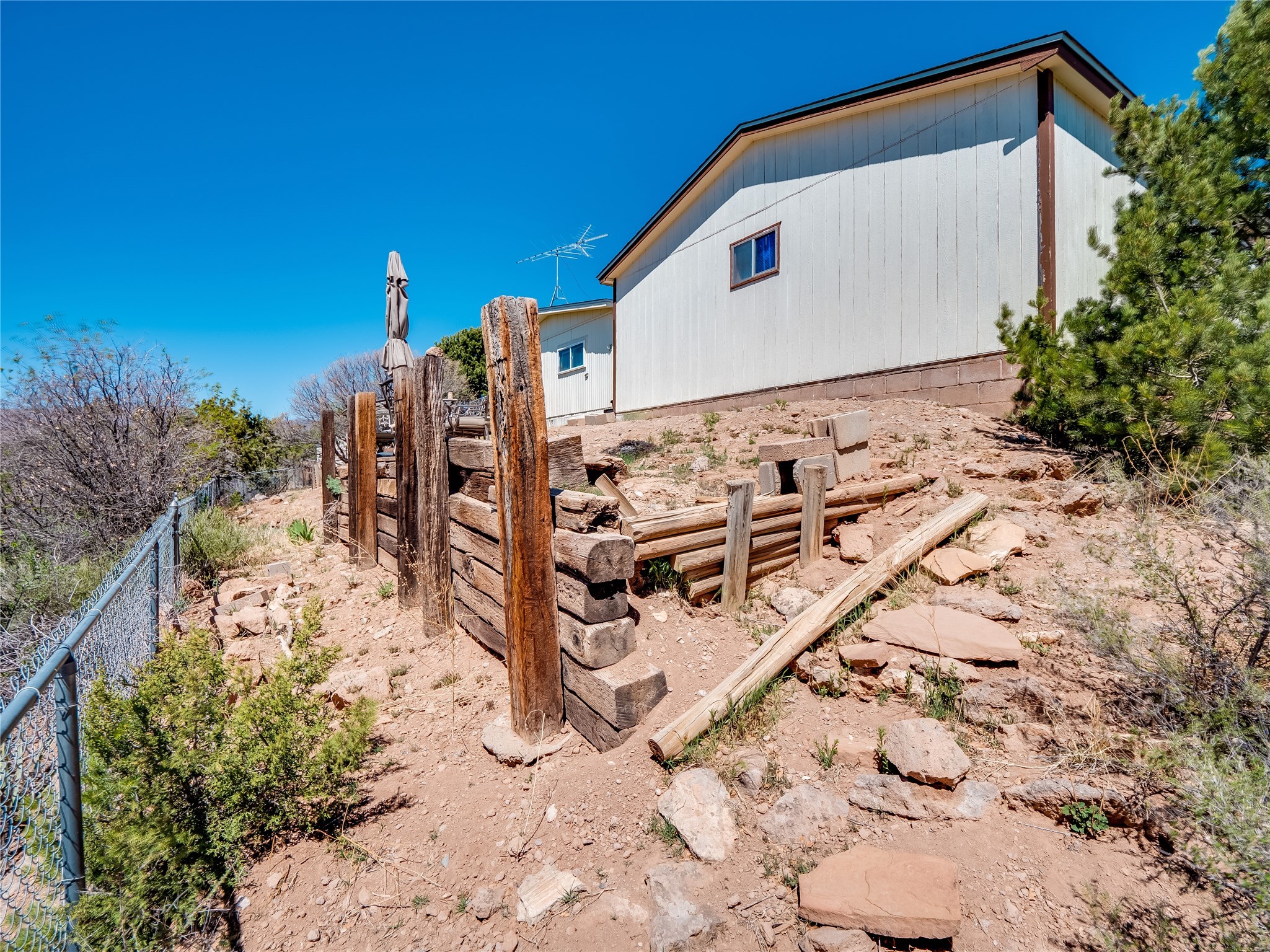Welcome to this charming manufactured home nestled along the canyon edge in the peaceful Tsikumu Village neighborhood. Surrounded by nature and mature landscaping, the front yard boasts large, towering trees that frame the home and provide shade and privacy as you approach the front porch. Step up into the inviting entryway and immediately feel the warmth of the spacious carpeted living room that extends throughout the home. Cozy up by the wood-burning stove on chilly evenings, and enjoy the built-in cabinetry--perfect for displaying china or creating a convenient bar setup. The kitchen is both stylish and functional, featuring ample cabinet space with green cabinetry, black hardware, light countertops, a double oven, and a gas cooktop. A peninsula with bar seating offers a perfect spot for morning coffee or casual meals. Just off the kitchen is a bright dining area with sliding glass doors that open to the back patio--ideal for outdoor grilling and dining with a view. The generous primary en-suite is a private retreat with a large walk-in closet and an attached bathroom that includes a double sink vanity and a shower/tub combination. Two additional guest bedrooms offer comfortable accommodations, and a full guest bathroom with a single sink vanity serves the home. The laundry room leads to a versatile bonus room with a separate side entrance--great for a home office, studio, or hobby space. Outside, enjoy an open backyard with unobstructed views and stunning sights of the Sangre de Cristo Mountains. A grass lawn, a brick patio for entertaining, and retaining walls ideal for flower or vegetable gardens make this outdoor space versatile in creating your dream space. Located close to parks, scenic trails, and horse stalls, this home offers the perfect blend of comfort, convenience, and natural beauty. Book your tour today!