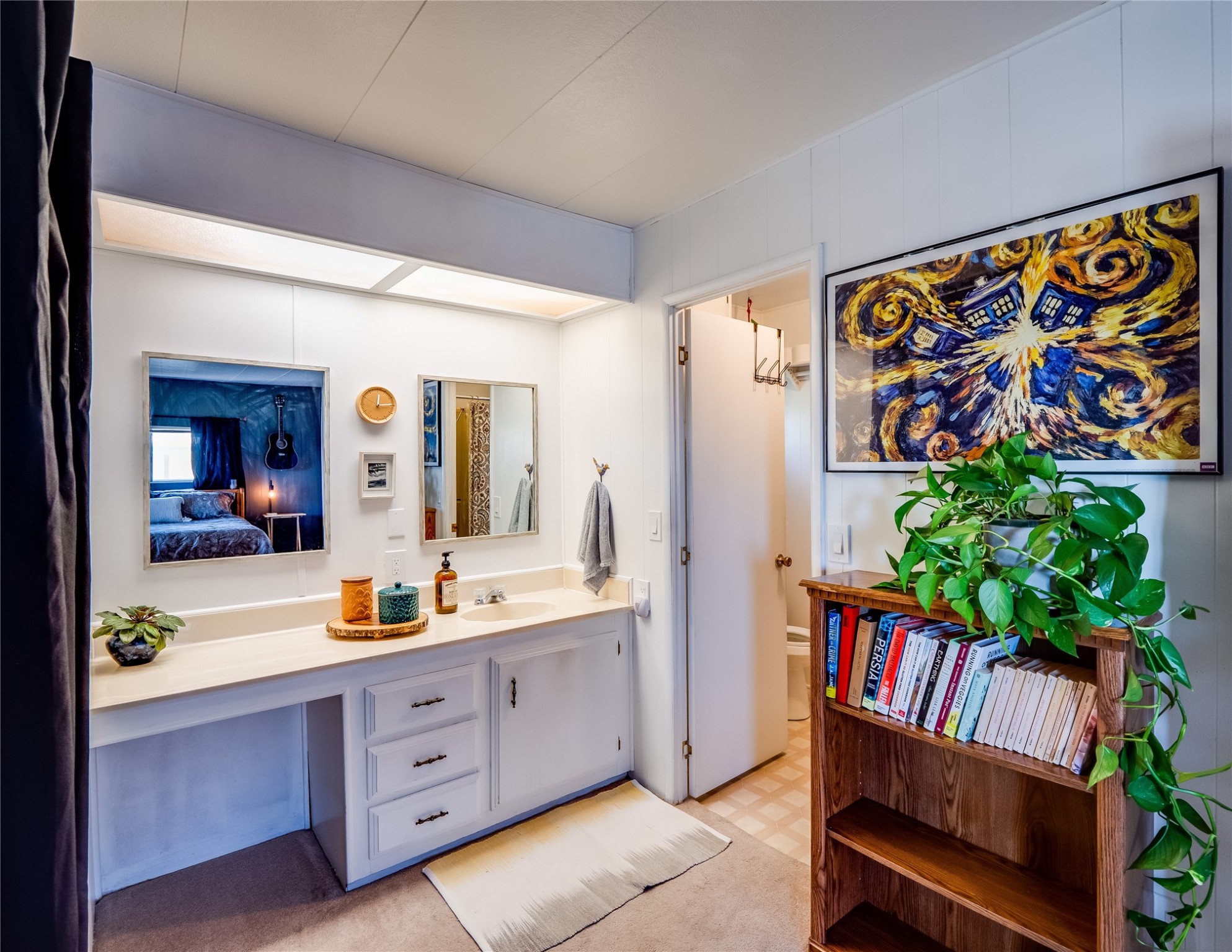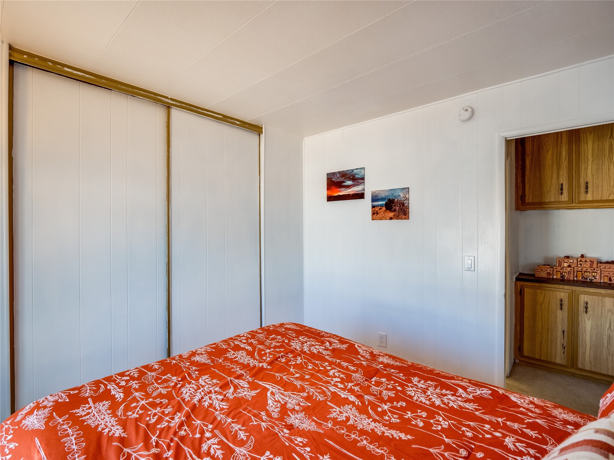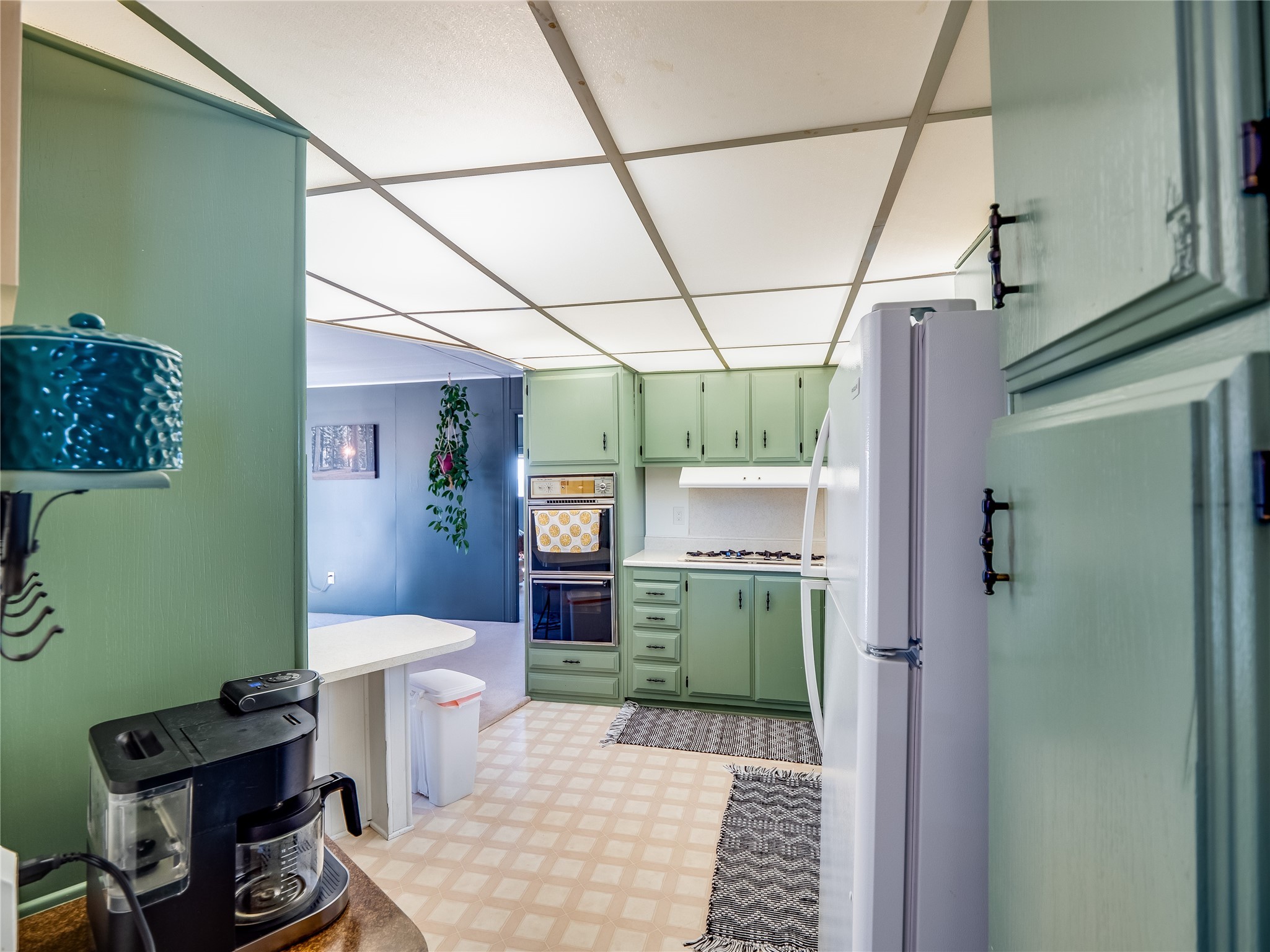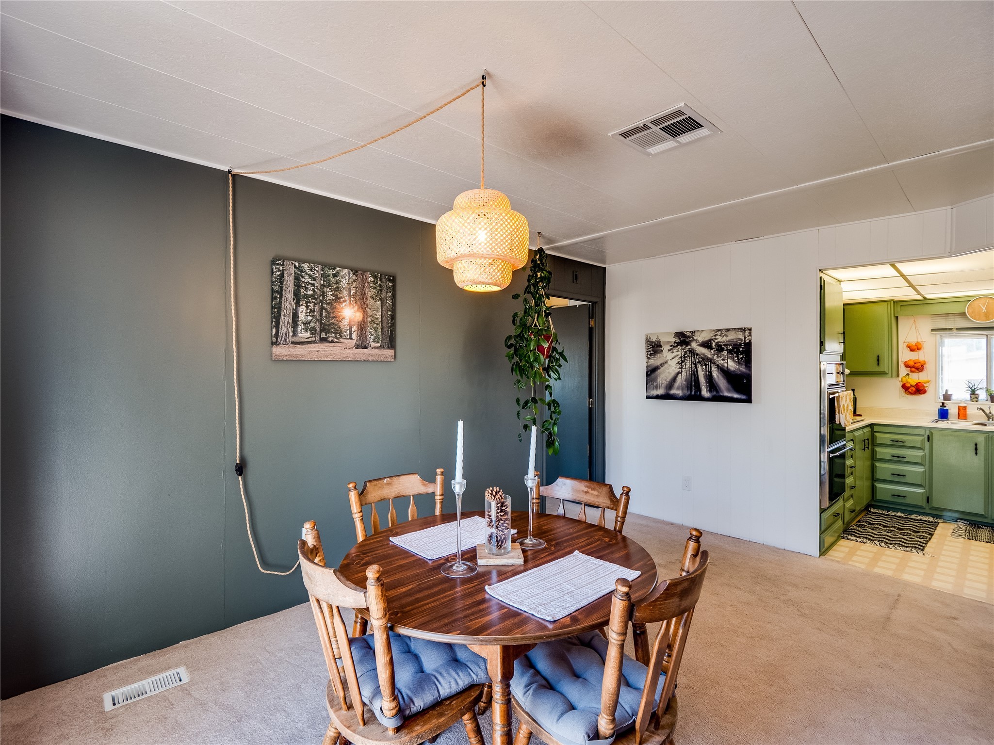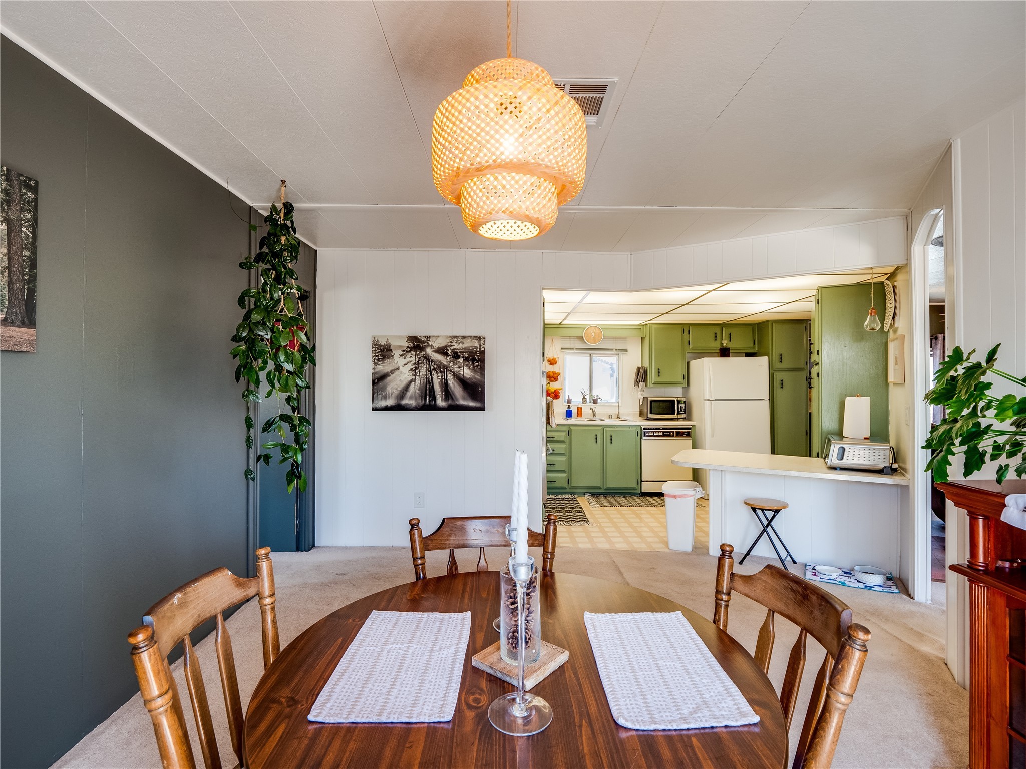 Welcome to this charming manufactured home nestled along the canyon edge in the peaceful Tsikumu Village neighborhood. Surrounded by nature and mature landscaping, the front yard boasts large, towering trees that frame the home and provide shade and privacy as you approach the front porch. Step up into the inviting entryway and immediately feel the warmth of the spacious carpeted living room that extends throughout the home. Cozy up by the wood-burning stove on chilly evenings, and enjoy the built-in cabinetry--perfect for displaying china or creating a convenient bar setup. The kitchen is both stylish and functional, featuring ample cabinet space with green cabinetry, black hardware, light countertops, a double oven, and a gas cooktop. A peninsula with bar seating offers a perfect spot for morning coffee or casual meals. Just off the kitchen is a bright dining area with sliding glass doors that open to the back patio--ideal for outdoor grilling and dining with a view. The generous primary en-suite is a private retreat with a large walk-in closet and an attached bathroom that includes a double sink vanity and a shower/tub combination. Two additional guest bedrooms offer comfortable accommodations, and a full guest bathroom with a single sink vanity serves the home. The laundry room leads to a versatile bonus room with a separate side entrance--great for a home office, studio, or hobby space. Outside, enjoy an open backyard with unobstructed views and stunning sights of the Sangre de Cristo Mountains. A grass lawn, a brick patio for entertaining, and retaining walls ideal for flower or vegetable gardens make this outdoor space versatile in creating your dream space. Located close to parks, scenic trails, and horse stalls, this home offers the perfect blend of comfort, convenience, and natural beauty. Book your tour today!