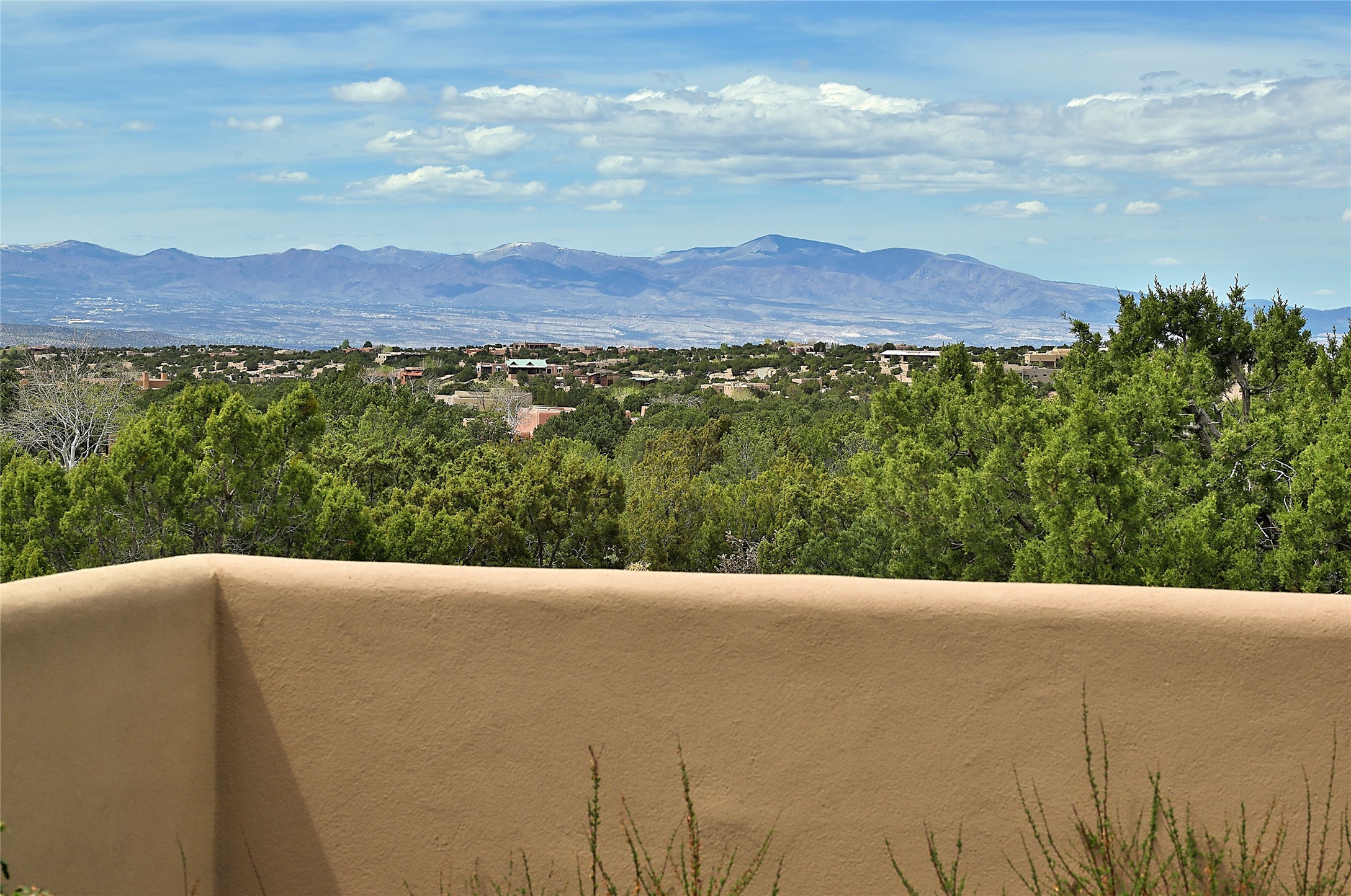 SIMPLY THE BEST VIEWS! Like being in your own private IMAX theater at sunset and on starry, starry nights! Vista Sandia means a 180 degree gigantic, overlooking viewscape featuring the Sandia mountains 50 miles south, and Sangre and Jemez views to the east and west; you can even watch 4th of July fireworks in Santa Fe and Los Alamos from the portal! Inside, simply sophisticated luxury awaits, an oversized great room with a high ceiling and extra large windows sited to take advantage of the views from the entry foyer stops visitors in their tracks. Plastered thick and round pumice-crete walls surround and lead to long, tall hallways to a well separated large owner's suite one way, and to the dining room and kitchen the other way. Santa Fe style with all the southwest charm, light and airy, soft and grand. Guest rooms at the far end provide privacy and distance. And a den off the foyer completes the functional floor plan all on one level. A two car attached garage up a couple steps gives easy access. In floor radiant heating is complemented by mini-splits. Pex tubing and on demand, high efficiency Navien tankless boiler system. All on a 1.82 acre lot in La Mariposa, an active and welcoming HOA which is a short drive to town, yet far enough away for privacy and serenity with easy access to the La Tierra trails. Close to the Club at Las Campanas and a short drive to the Plaza or the Santa Fe Regional Airport. Diligently maintained and presale inspected, this sanctuary is ready to enjoy. Watch the video, take the virtual tour, but you must see in person to believe.