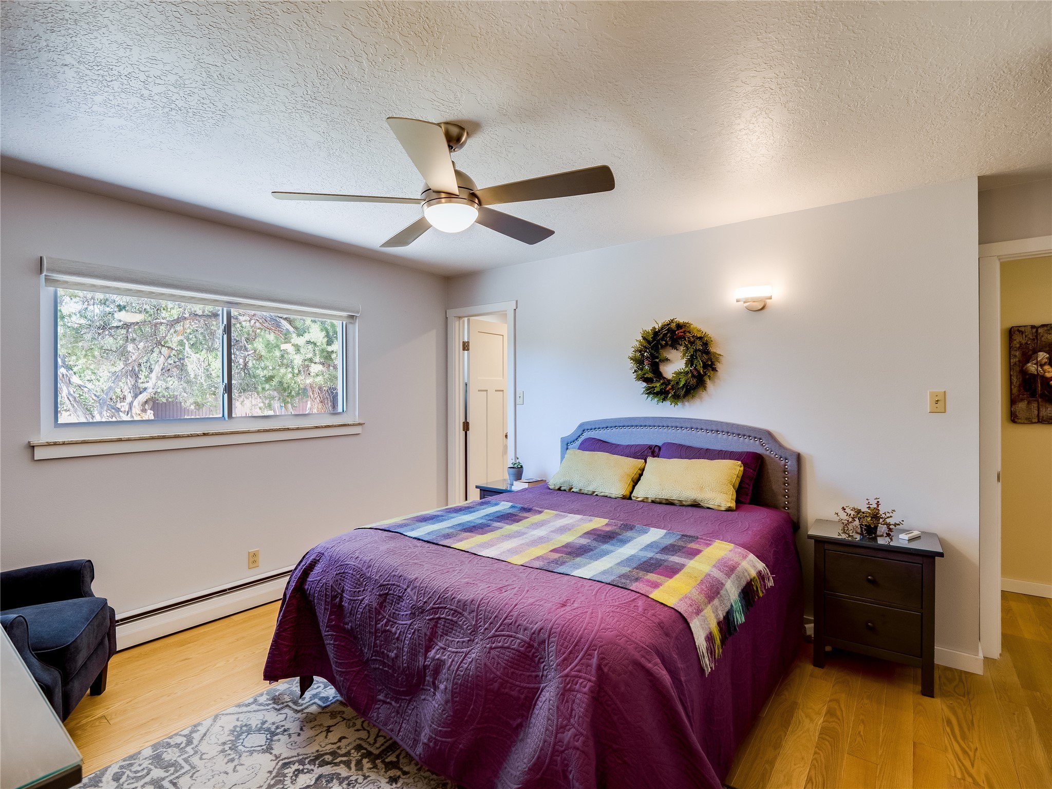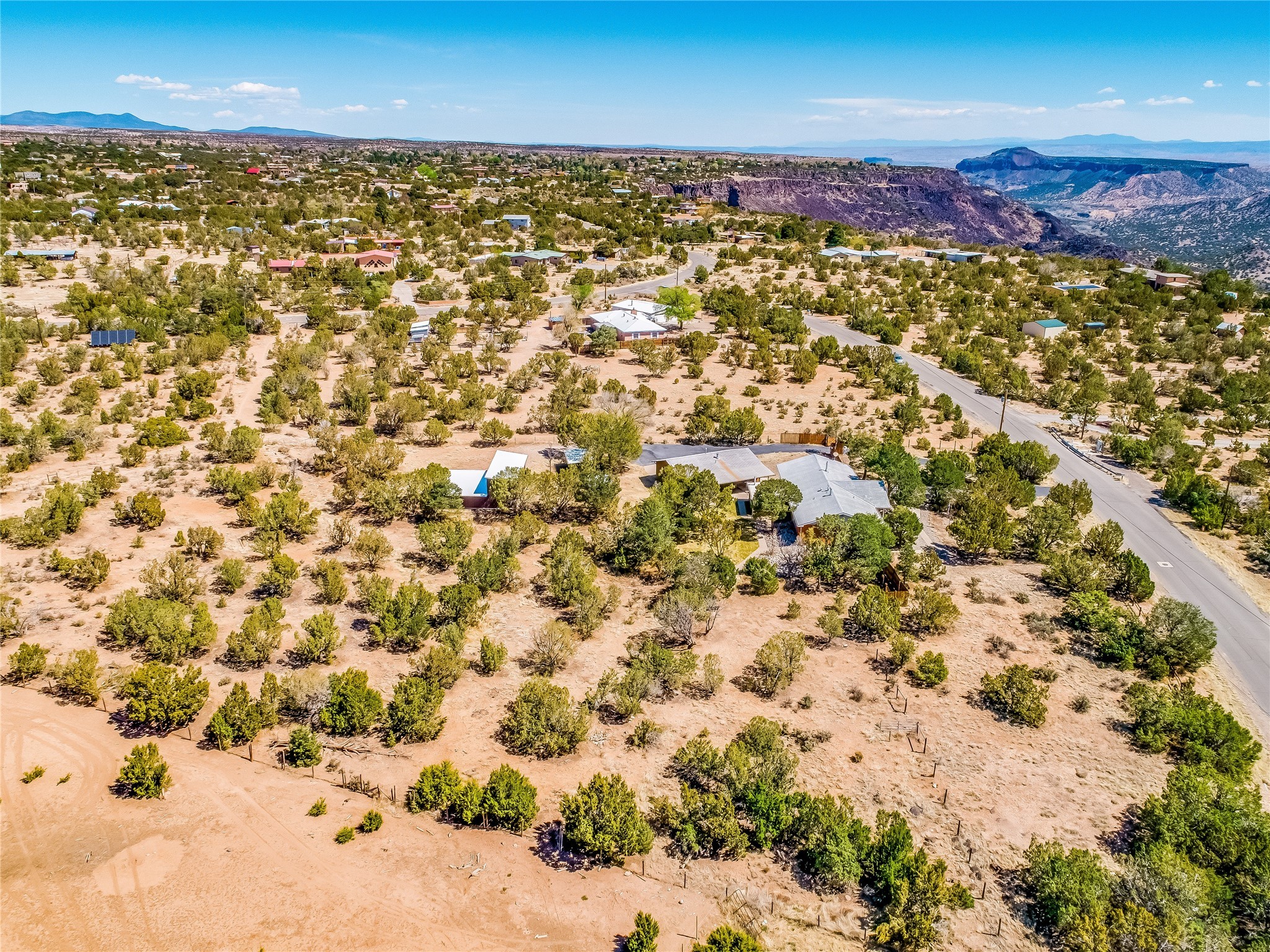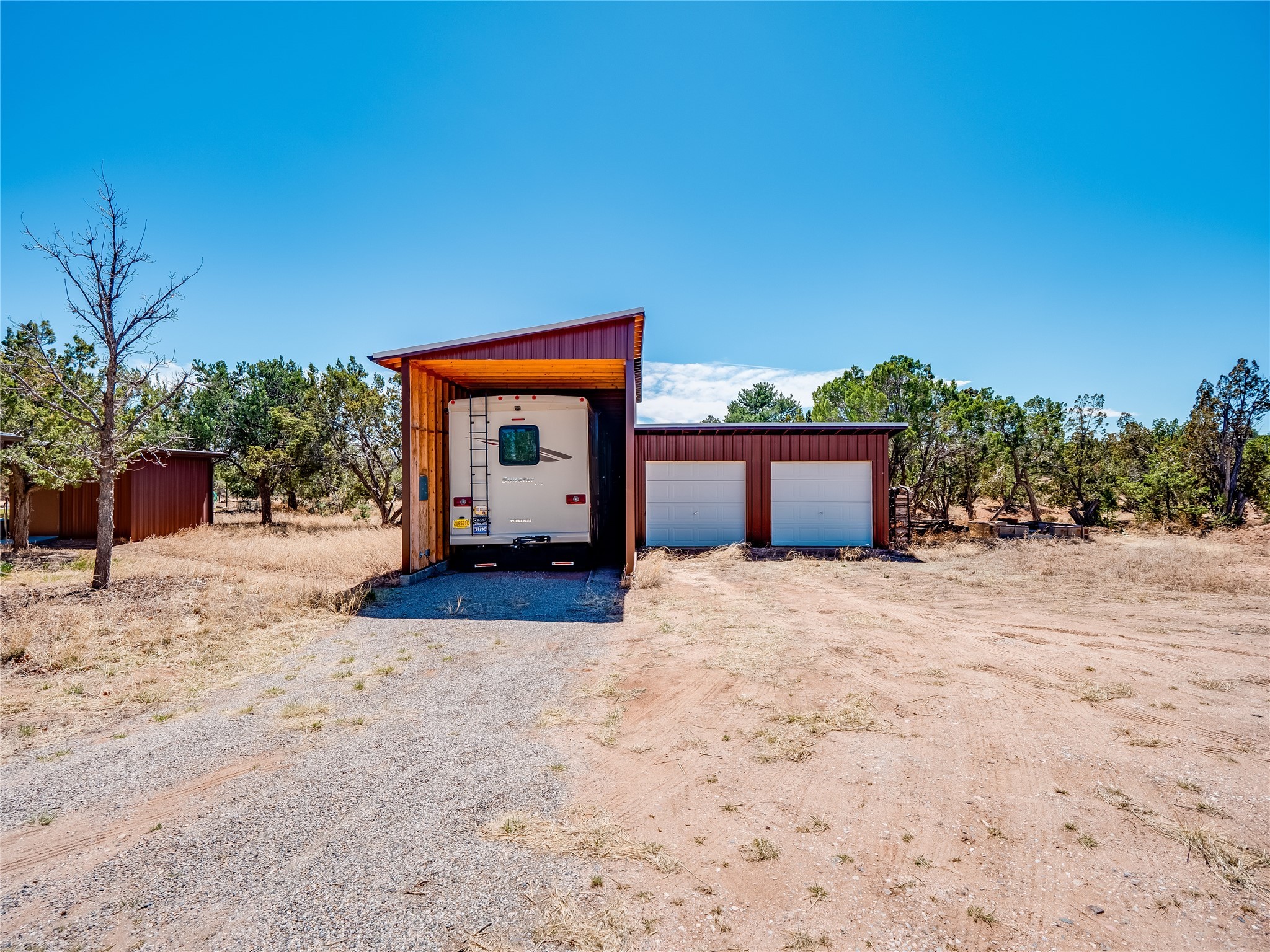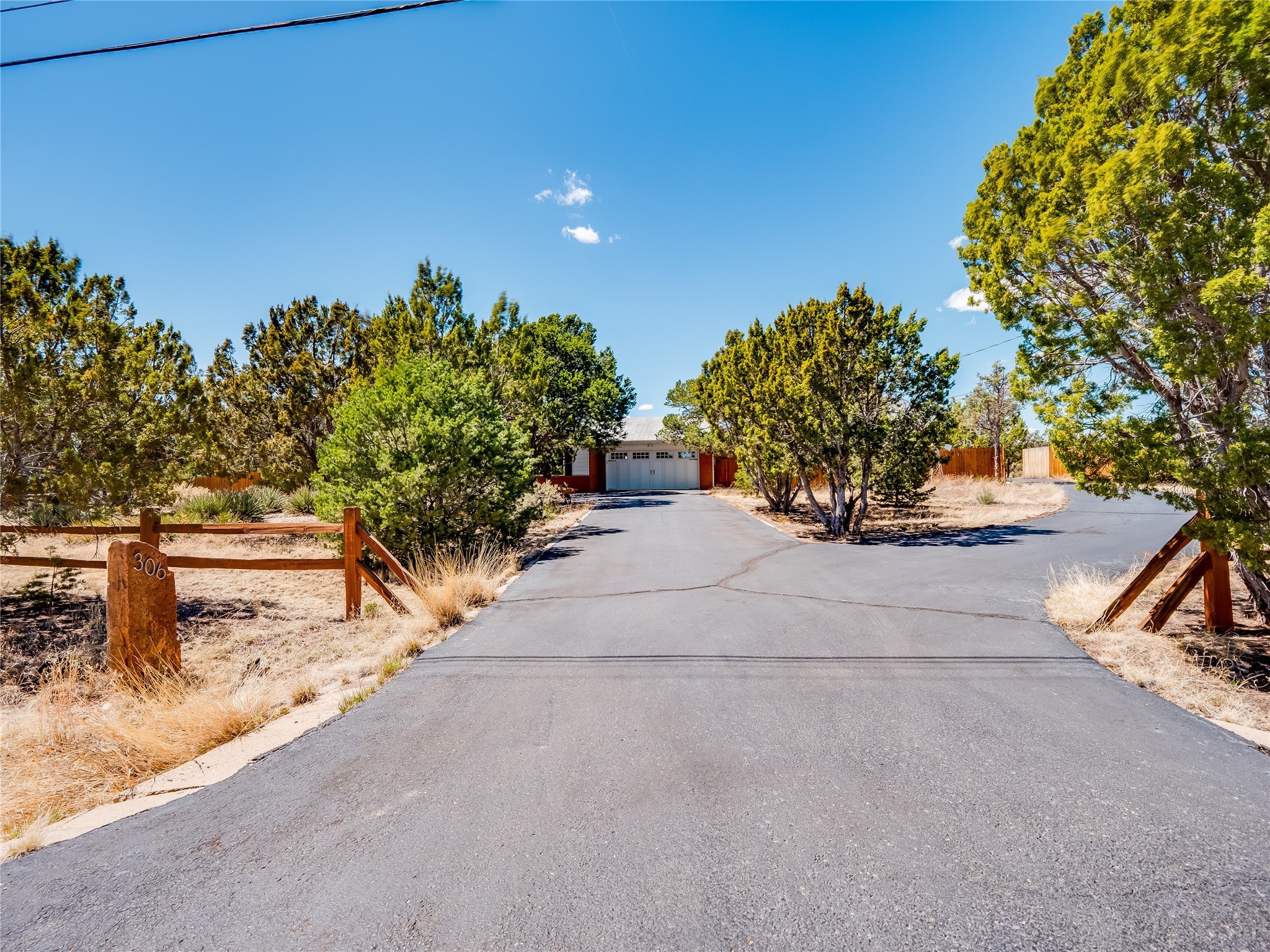 Tucked away in the desirable Pajarito Acres neighborhood, this stunning single-story home offers privacy, space, and versatility on 2.78 acres. A low-maintenance front yard with mature trees and shrubs offers a peaceful welcome and natural privacy. Inside you'll be welcomed by an expansive open floorplan designed for modern living and effortless entertaining. Gorgeous white oak flooring flows throughout, unifying each space with warmth and continuity. The living room, dining area, and kitchen connect openly, anchored by a cozy gas stove-style fireplace that provides a central gathering point. The completely remodeled gourmet kitchen is both functional and stylish, featuring sawn oak cabinetry, Corian counters, stainless steel appliances, and subway tile backsplash. With clear sightlines to both the living and dining areas, hosting guests or spending time with family feels natural and connected. Around the corner, the laundry area includes a stackable washer and dryer and convenient backyard access. Just off the dining room is a sun-filled family room with three walls of windows, gas stove and access to a backyard patio--perfect for indoor-outdoor living. Down the hall is a guest bedroom and a beautifully updated bathroom with a tiled shower/tub, glass enclosure, single sink vanity, and generous built-in cabinetry. The bright and spacious primary en-suite includes a spa-like bath with marble counters, a tiled walk-in shower, and built-in cabinets. Additional rooms include a dedicated office and a flexible bonus room. An attached two car garage with epoxy flooring. Outside, you'll find four additional structures: a huge workshop (plumbed with sewer, heated, electric, and compressed air) connected to a two-car garage, a heated greenhouse, a studio, a tool shed, and a 34-foot RV port--totaling 6 garage spaces. A unique haven for nature lovers, creatives, and entertainers. Too many upgrades to list--ask for the detailed spreadsheet and schedule your private tour today!