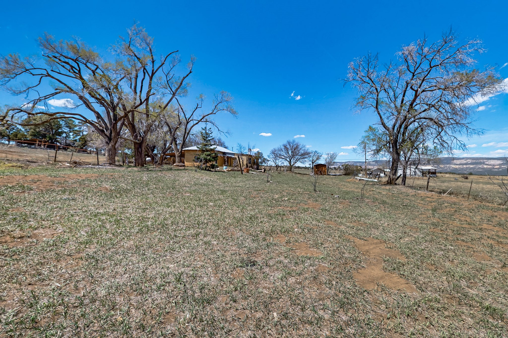This charming, mostly adobe home on approximately 1.65 acres offers breathtaking views from La Mesa de Poleo. Gaze upon the Abiquiu Reservoir to the northeast, the iconic Cerro Pedernal, the Jemez Mountains to the east, and Mesa Alta. The picturesque Santa Teresa Church, a quintessential Northern New Mexico landmark, is just a short walk away. From this idyllic location, easy access awaits to the Rio Puerco campground, the San Pedro Wilderness, and numerous other forest campgrounds. As night falls, witness the twinkling lights of the Coyote community and a sky ablaze with stars. This home is a blank canvas for a creative mind. It features a wood-fired cooking stove (optional for use) and an electric stove. The surrounding grassy property is perfect for leisurely picnics under the trees. The property also includes a one-bay carport attached to the house, a small cabin-like structure, and a partially underground cellar ideal for canning. Embrace sustainable living with included irrigation water rights for an organic garden and an assortment of fruit trees. There's ample space for a few farm animals, complemented by a corral and an additional two-car carport situated on a small hill beside the west boundary. Country living beckons--return to basics and savor life's simple pleasures: crisp, fresh air, stunning sunrises and sunsets, unobstructed night skies, a fertile plot for a garden and farm animals, and unparalleled views. OWNER CARRY POSSIBLE.