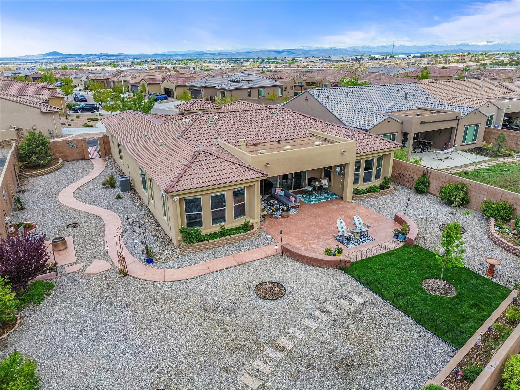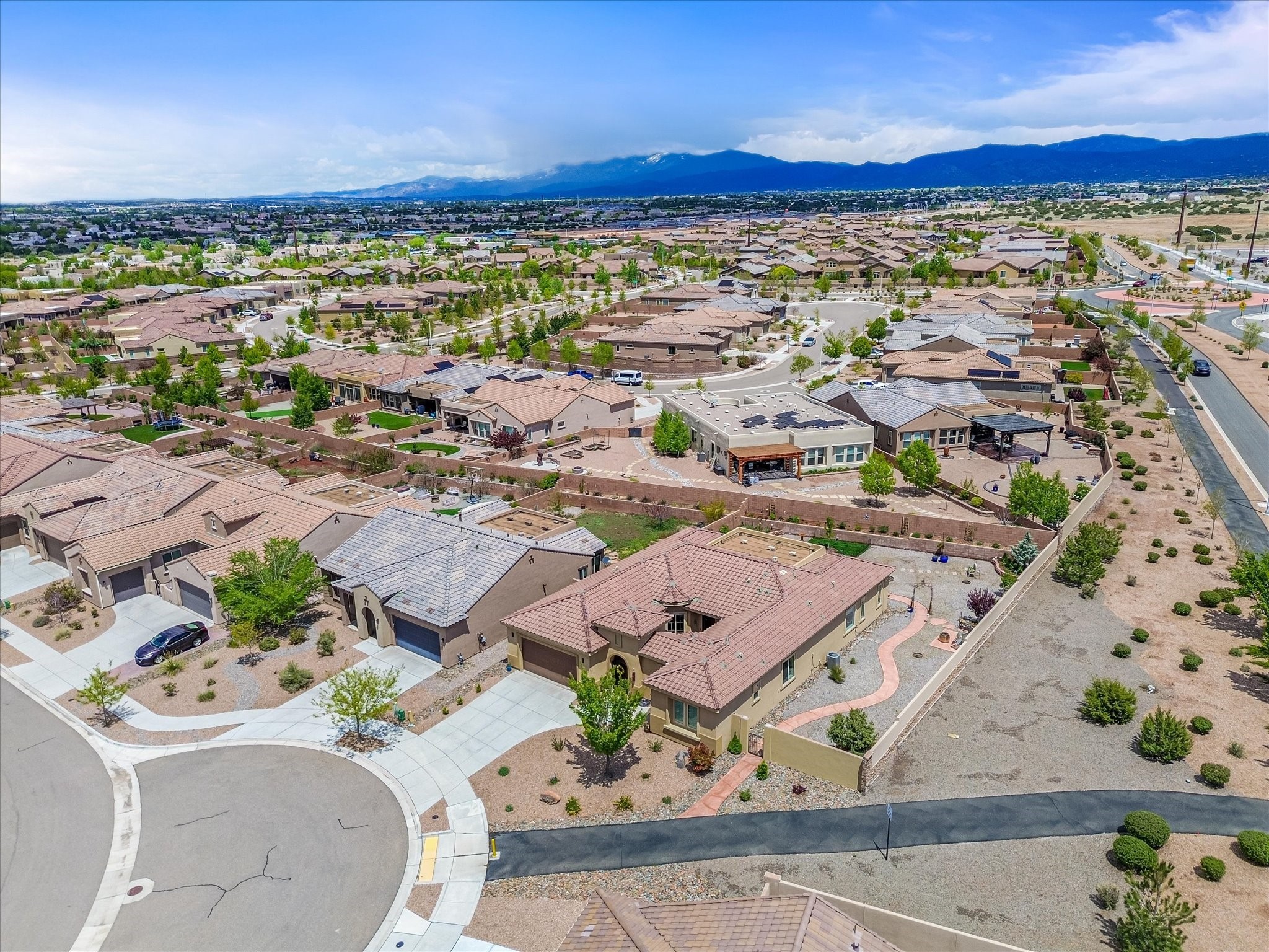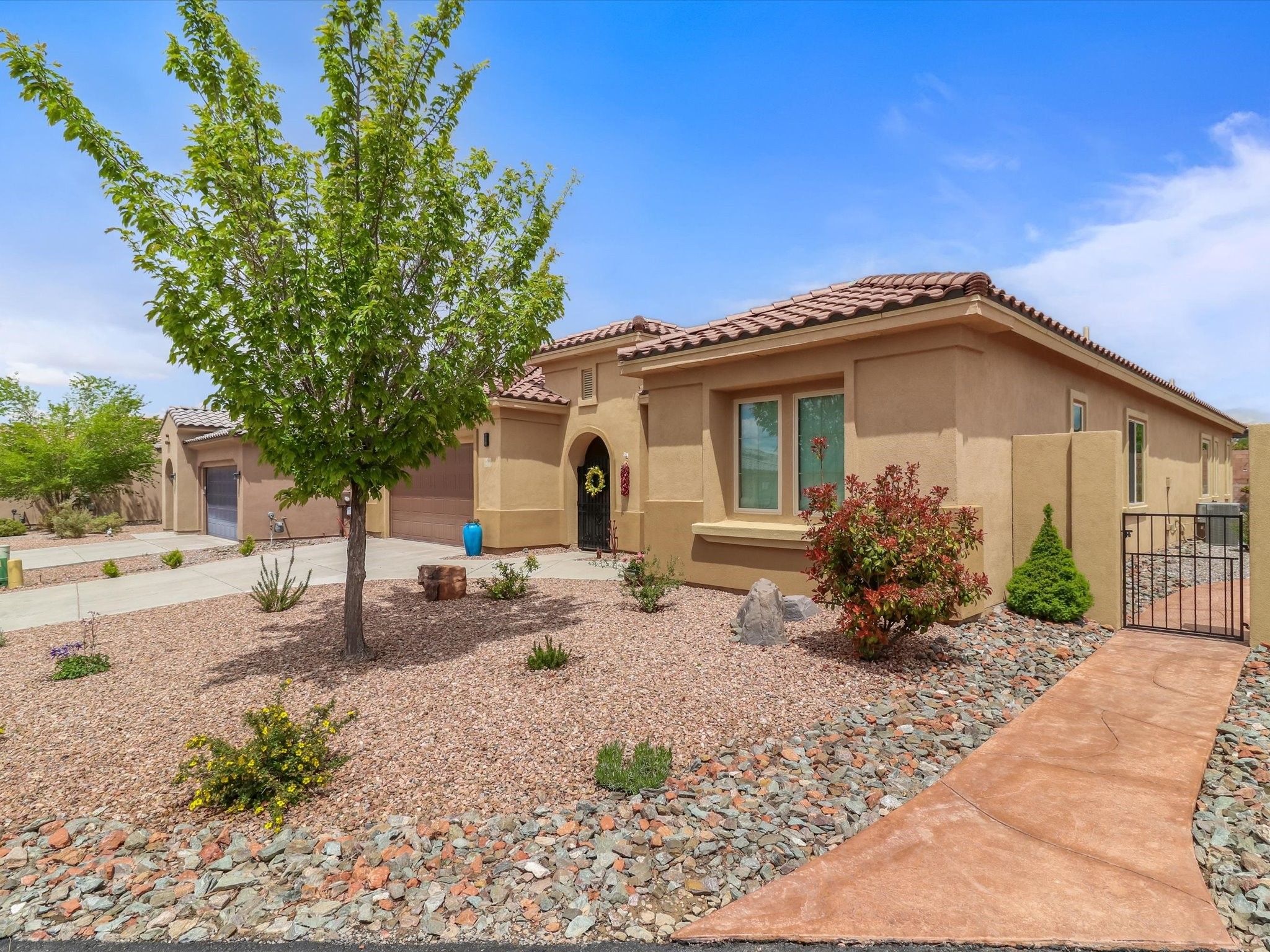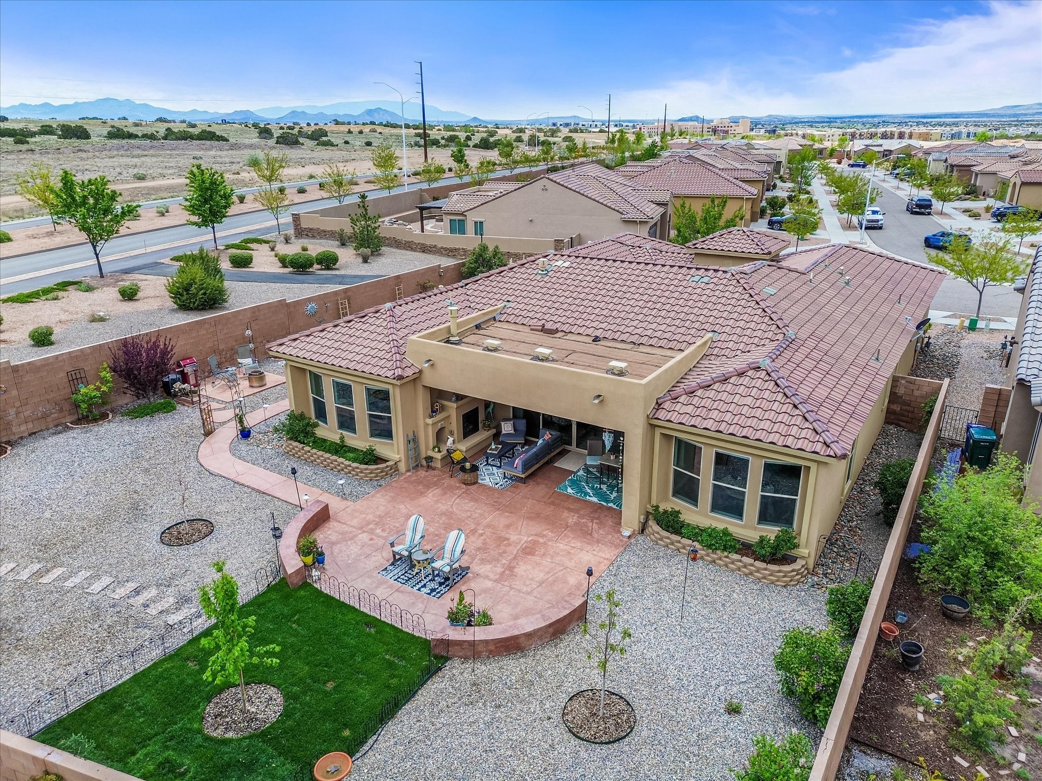 Discover refined living in this beautifully upgraded 3-bedroom, 2.5-bath, 2,543 sq ft home nestled on a premium corner lot in Santa Fe's desirable Las Soleras neighborhood. Set on an expansive .27-acre lot, this home offers the perfect blend of elegance, comfort, and location--just minutes from shopping, parks, and scenic walking trails.Step inside and fall in love with the a welcoming open layout filled with natural light, a fully renovated powder room, freshly painted living spaces (walls, ceilings, baseboards, and trim),10 ft ceilings, 8 foot doors, and updated ceramic tile surrounding the cozy fireplace. The Chef's kitchen is a showstopper, featuring new quartz countertops, soft-close cabinetry with custom pull-outs, added storage on the back of the island, sizable pantry, and top-tier appliances including an upgraded KitchenAid wall oven/microwave combo, Bosch dishwasher, LG electric cooktop with touch controls (gas hookup available to allow for easy cooktop switch out if preferred), and LG refrigerator. Retreat to the luxurious primary suite where the bathroom has been transformed with quartz countertops, soft-close, pull-out cabinetry, upgraded light fixtures, new sinks, mirrors, and tile backsplash.Outside, enjoy newly updated landscaping and a spacious backyard oasis with endless potential. Even the storage garage has been upgraded with a new automatic door opener and security locks--ideal for peace of mind and convenience.From top-to-bottom upgrades to an unbeatable location, this Estancias de Las Soleras gem is a rare find. Schedule your private showing today and experience elevated Santa Fe living!