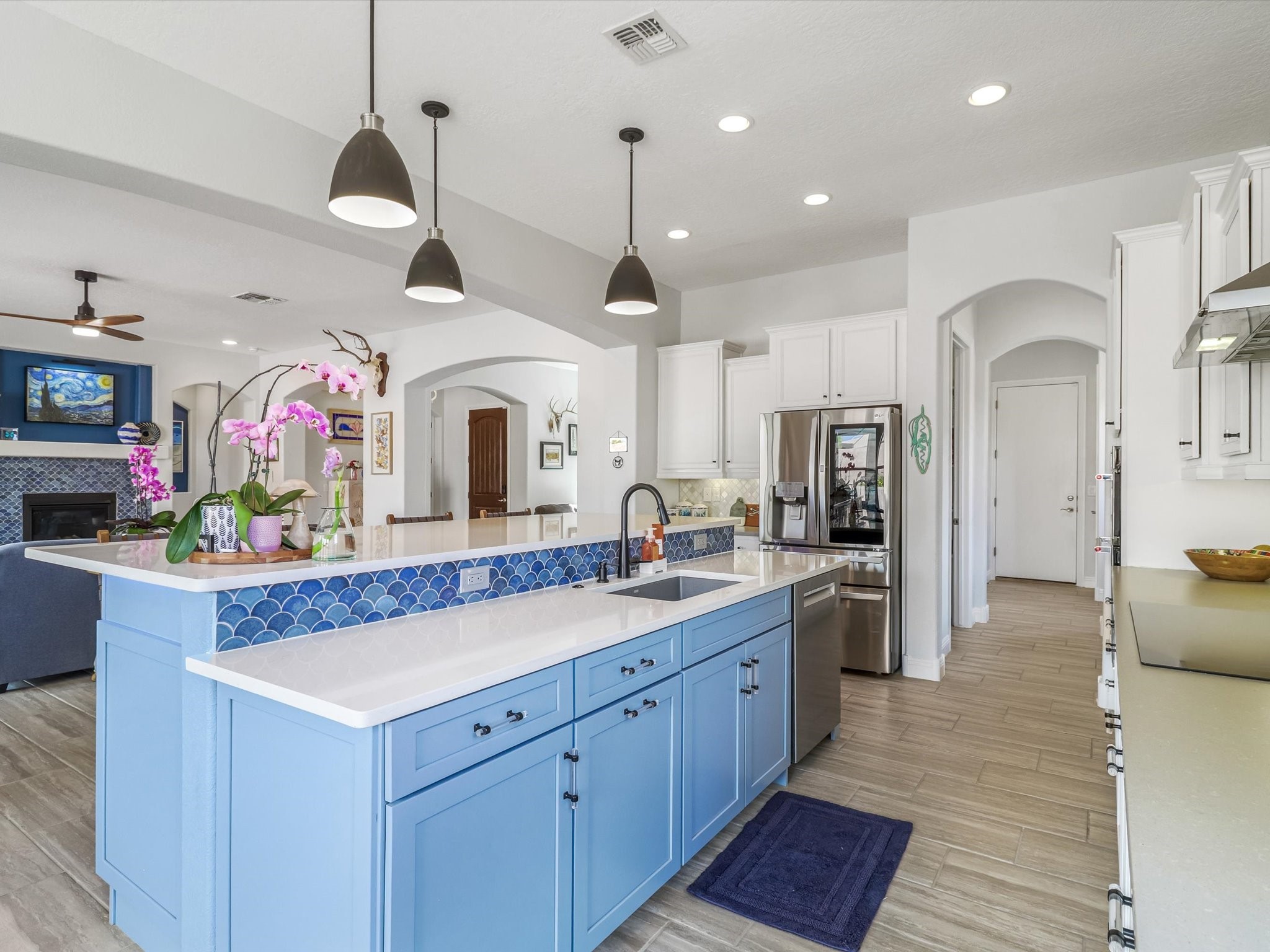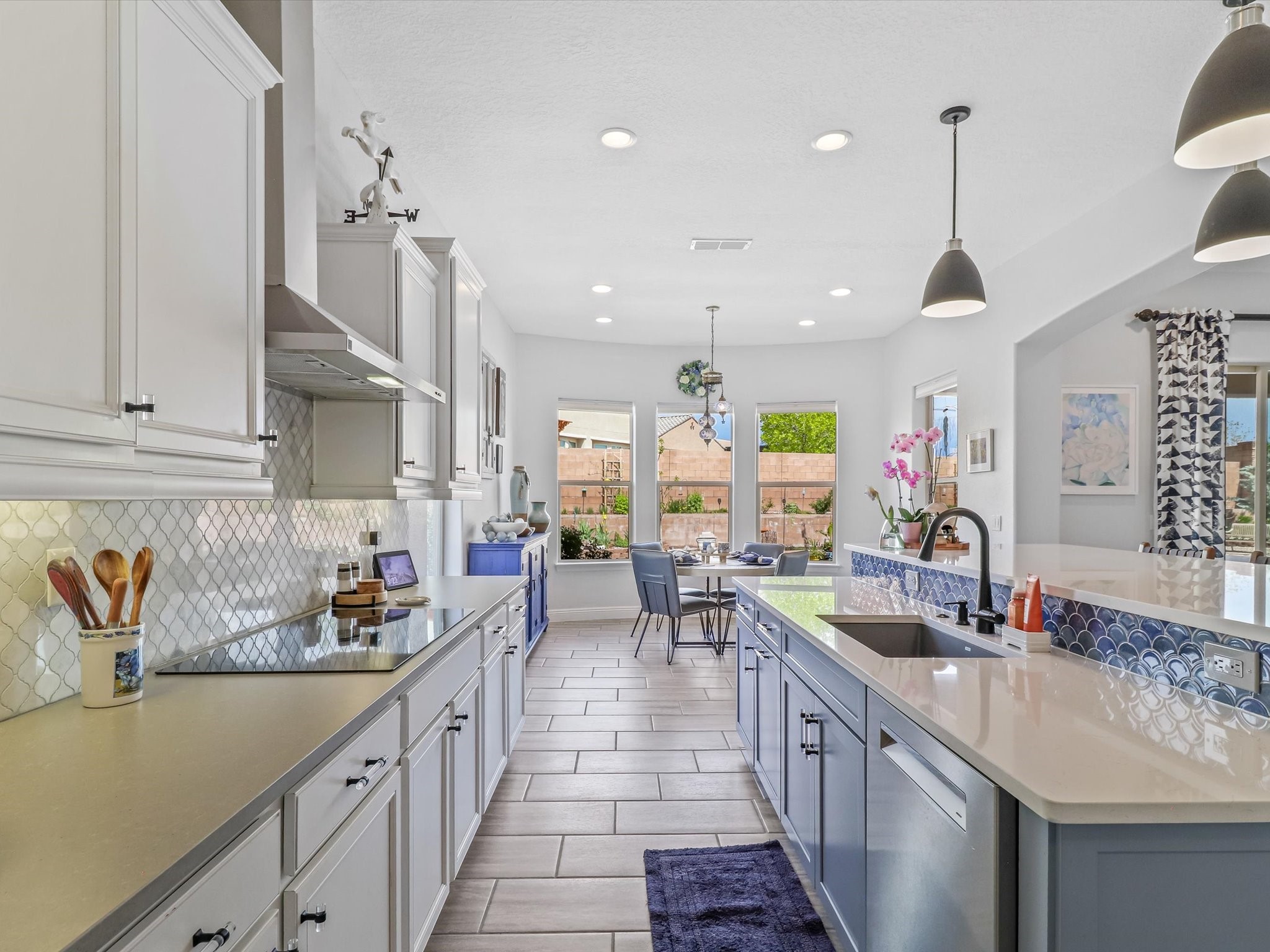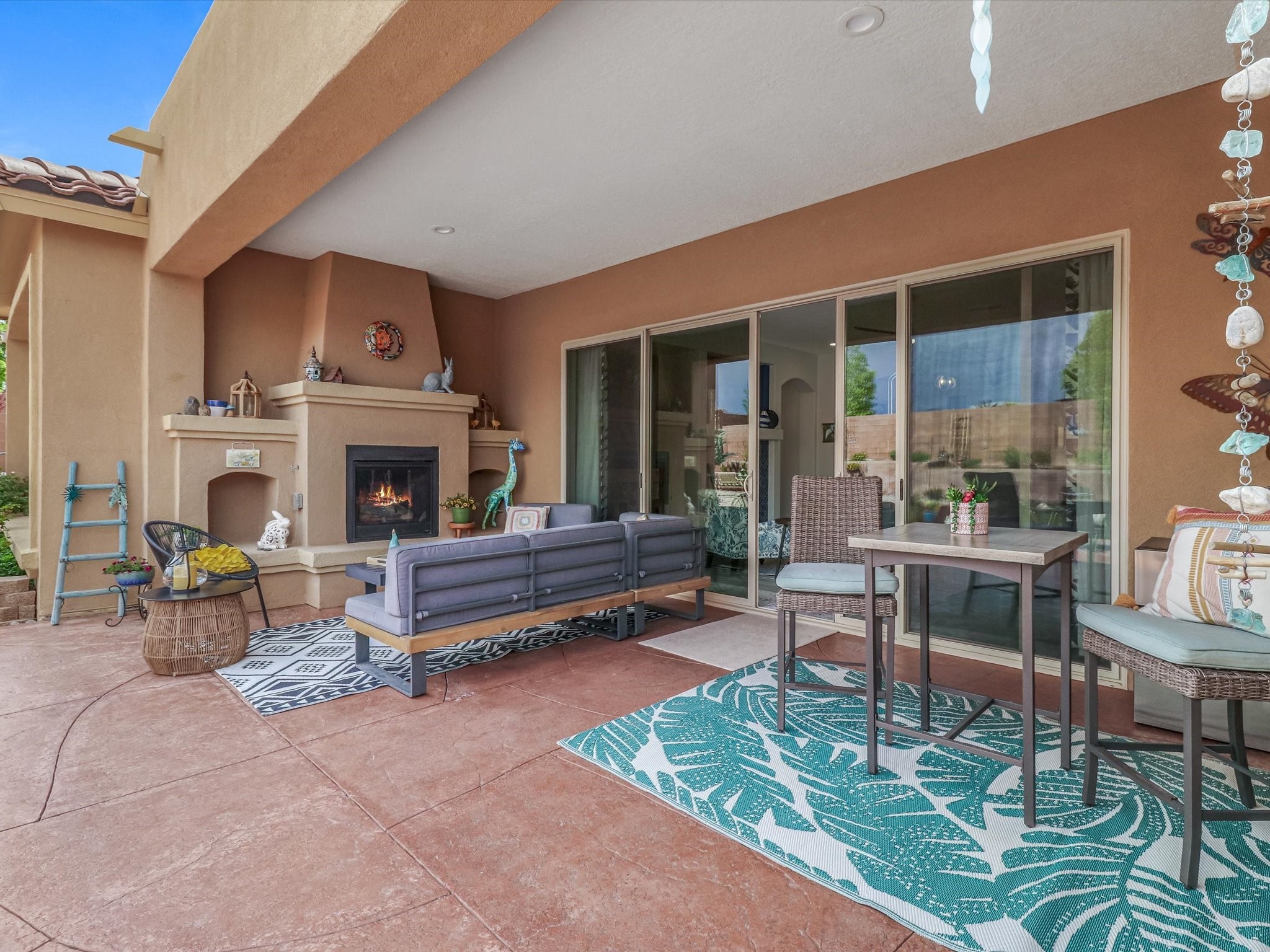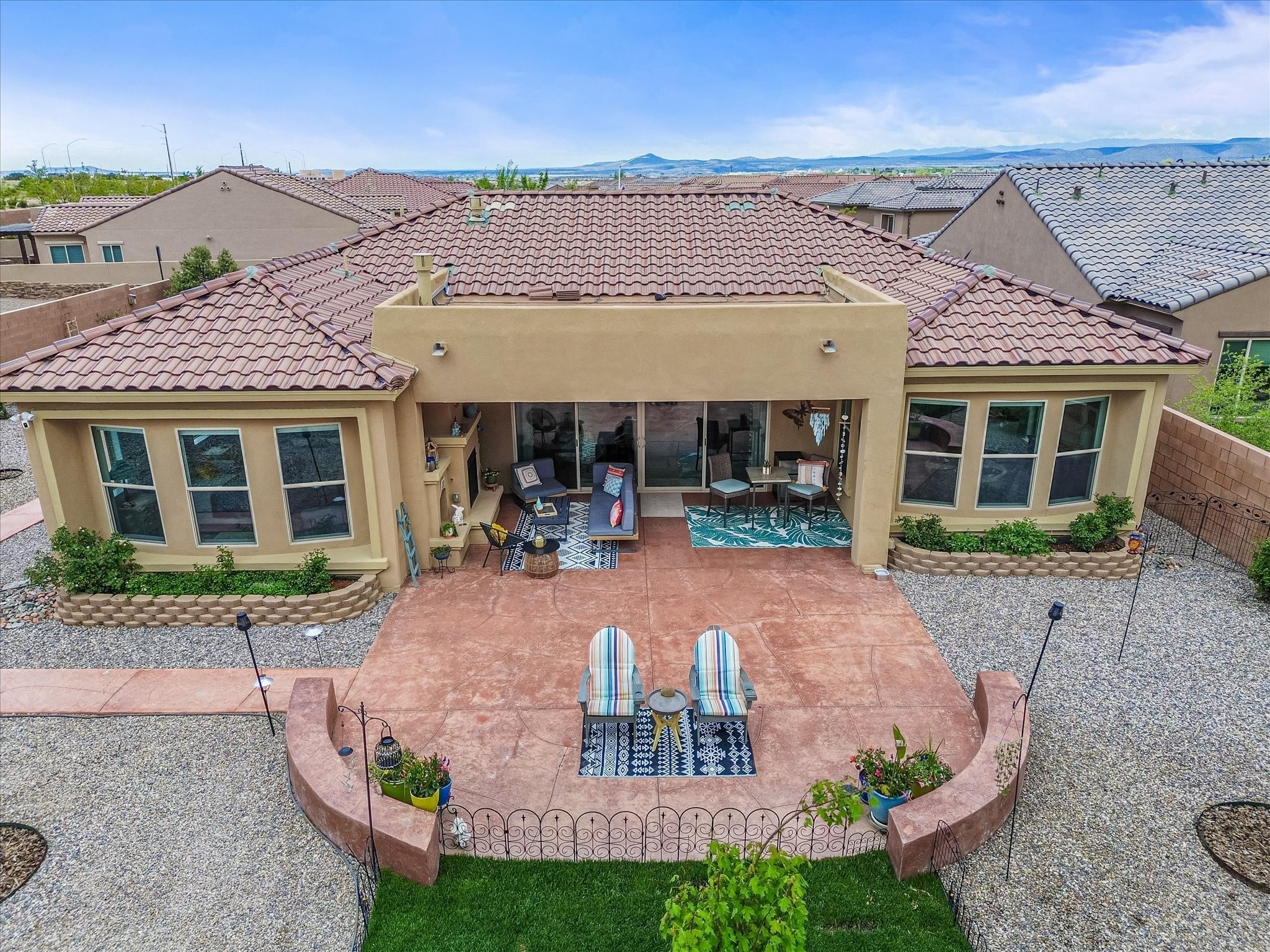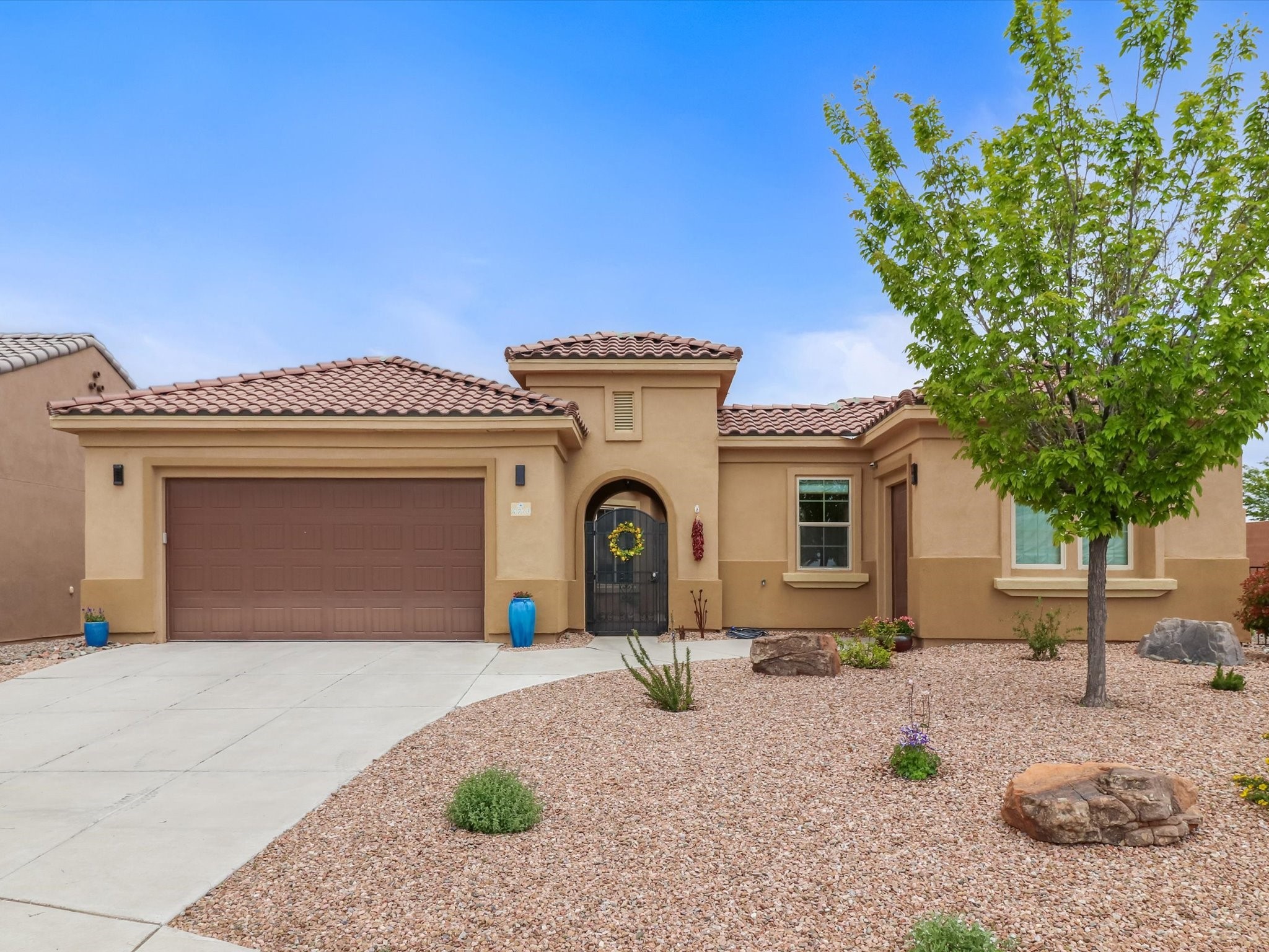 Discover refined living in this beautifully upgraded 3-bedroom, 2.5-bath, 2,543 sq ft home nestled on a premium corner lot in Santa Fe's desirable Las Soleras neighborhood. Set on an expansive .27-acre lot, this home offers the perfect blend of elegance, comfort, and location--just minutes from shopping, parks, and scenic walking trails.Step inside and fall in love with the a welcoming open layout filled with natural light, a fully renovated powder room, freshly painted living spaces (walls, ceilings, baseboards, and trim),10 ft ceilings, 8 foot doors, and updated ceramic tile surrounding the cozy fireplace. The Chef's kitchen is a showstopper, featuring new quartz countertops, soft-close cabinetry with custom pull-outs, added storage on the back of the island, sizable pantry, and top-tier appliances including an upgraded KitchenAid wall oven/microwave combo, Bosch dishwasher, LG electric cooktop with touch controls (gas hookup available to allow for easy cooktop switch out if preferred), and LG refrigerator. Retreat to the luxurious primary suite where the bathroom has been transformed with quartz countertops, soft-close, pull-out cabinetry, upgraded light fixtures, new sinks, mirrors, and tile backsplash.Outside, enjoy newly updated landscaping and a spacious backyard oasis with endless potential. Even the storage garage has been upgraded with a new automatic door opener and security locks--ideal for peace of mind and convenience.From top-to-bottom upgrades to an unbeatable location, this Estancias de Las Soleras gem is a rare find. Schedule your private showing today and experience elevated Santa Fe living!