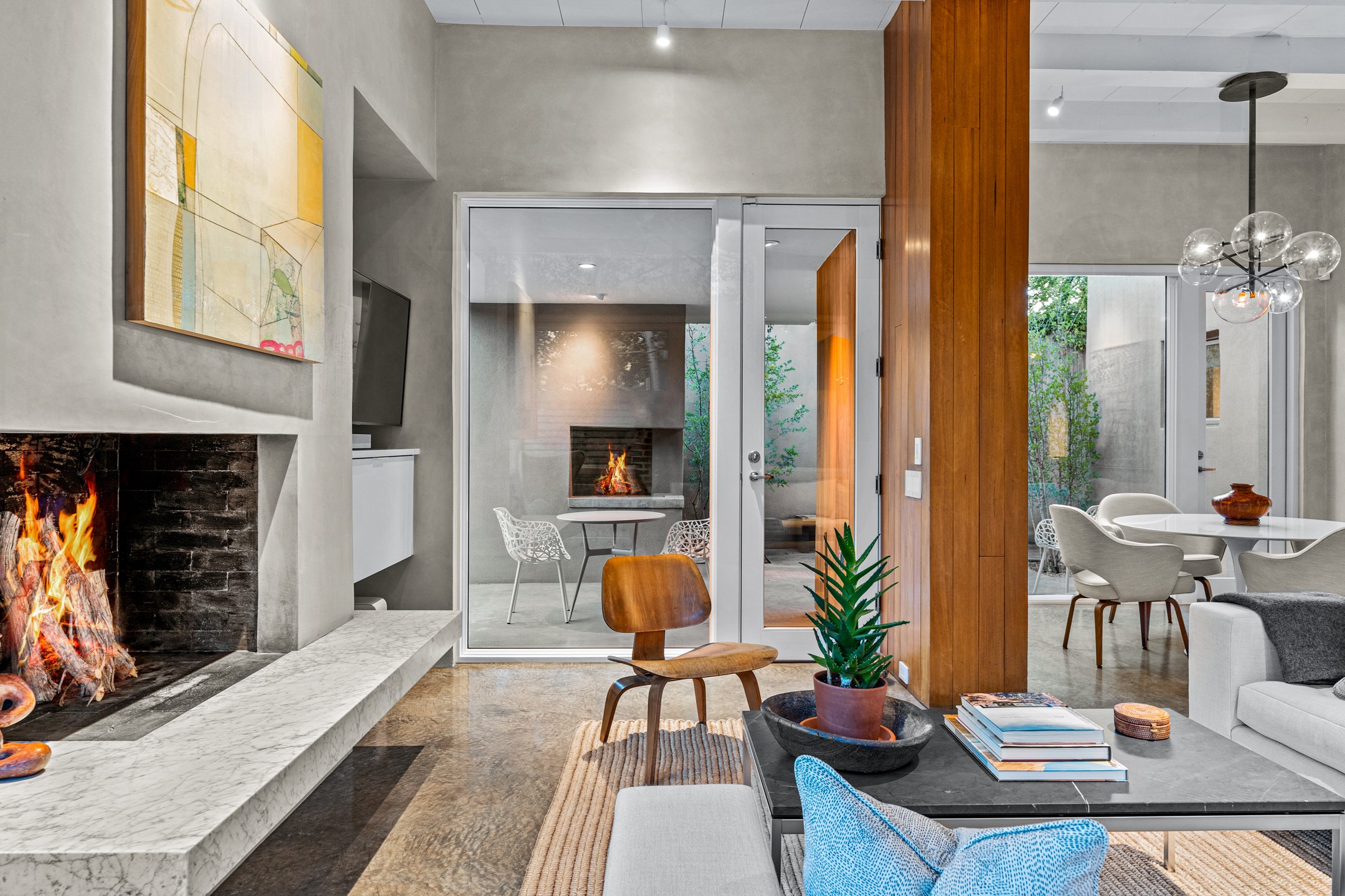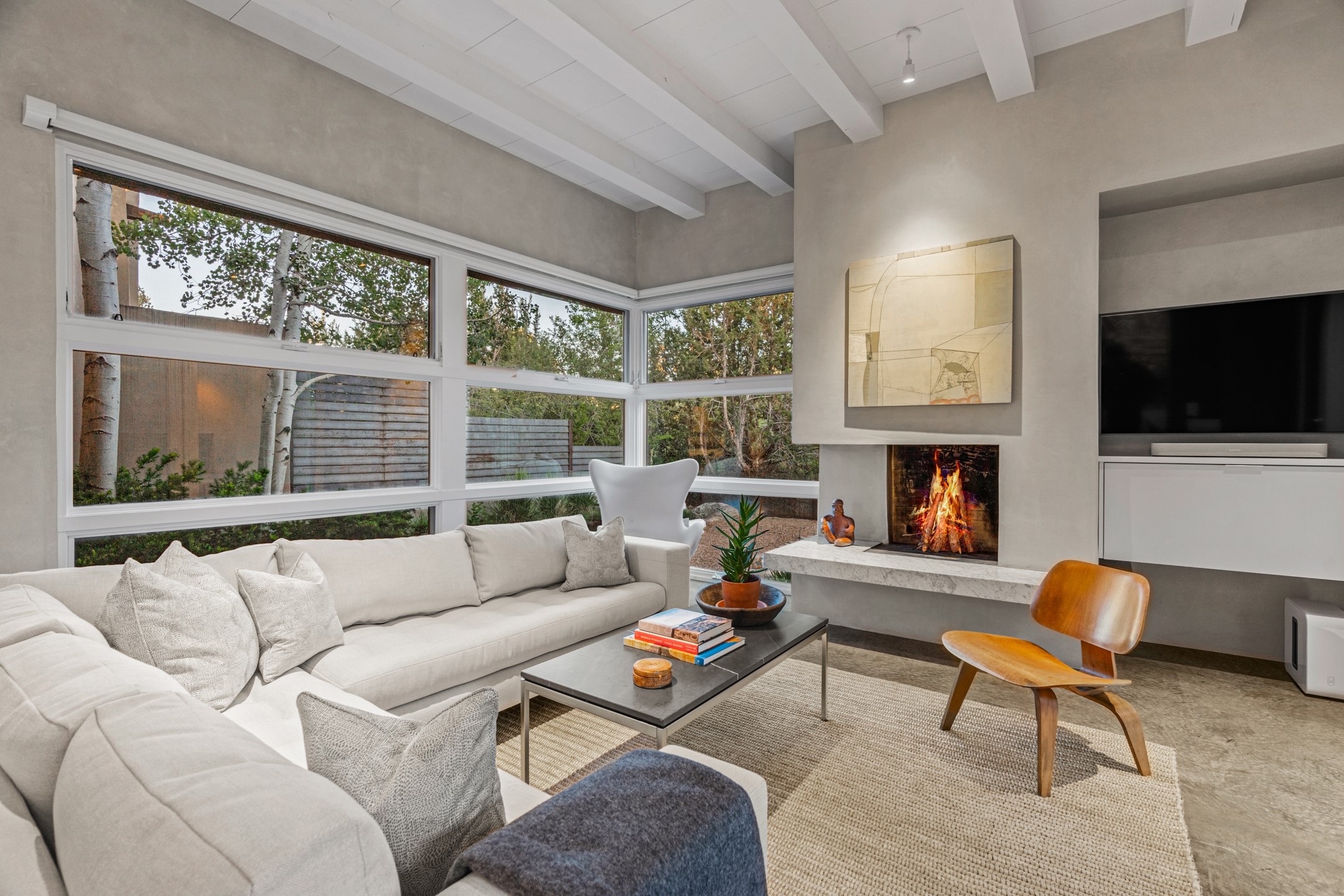 Welcome to the "Pearl House"--a stunning contemporary residence designed by acclaimed architect Trey Jordan as his personal home. This exceptional property seamlessly fuses bold architectural design with modern comforts and relaxed livability. Over the past three years, it has undergone extensive renovations featuring top-of-the-line appliances, fixtures, and finishes. Set on a private 0.29-acre lot with sweeping views of Picacho and Atalaya Peaks, the property includes a main residence with 2-bedrooms and 2-baths, plus a 2-car garage. Attached to the garage is a recently renovated heated studio/office space, along with a storage room and workshop area, offering versatile functionality for creative or active lifestyles. The outdoor spaces are equally impressive, with a tranquil dining area complete with a fireplace and a fountain--perfect for entertaining or quiet reflection. Nature lovers will appreciate the nearby Santa Fe River Trail and the renowned Dale Ball Trail System, offering miles of scenic hiking and biking. Included in the sale are approved plans for a second residence, part of the original vision for the property, designed by Trey Jordan, providing an exciting opportunity for future expansion. Ideally located within walking distance of historic Canyon Road and minutes from the cultural, culinary, and artistic attractions of downtown Santa Fe, Pearl House is a rare architectural gem in an unparalleled setting.