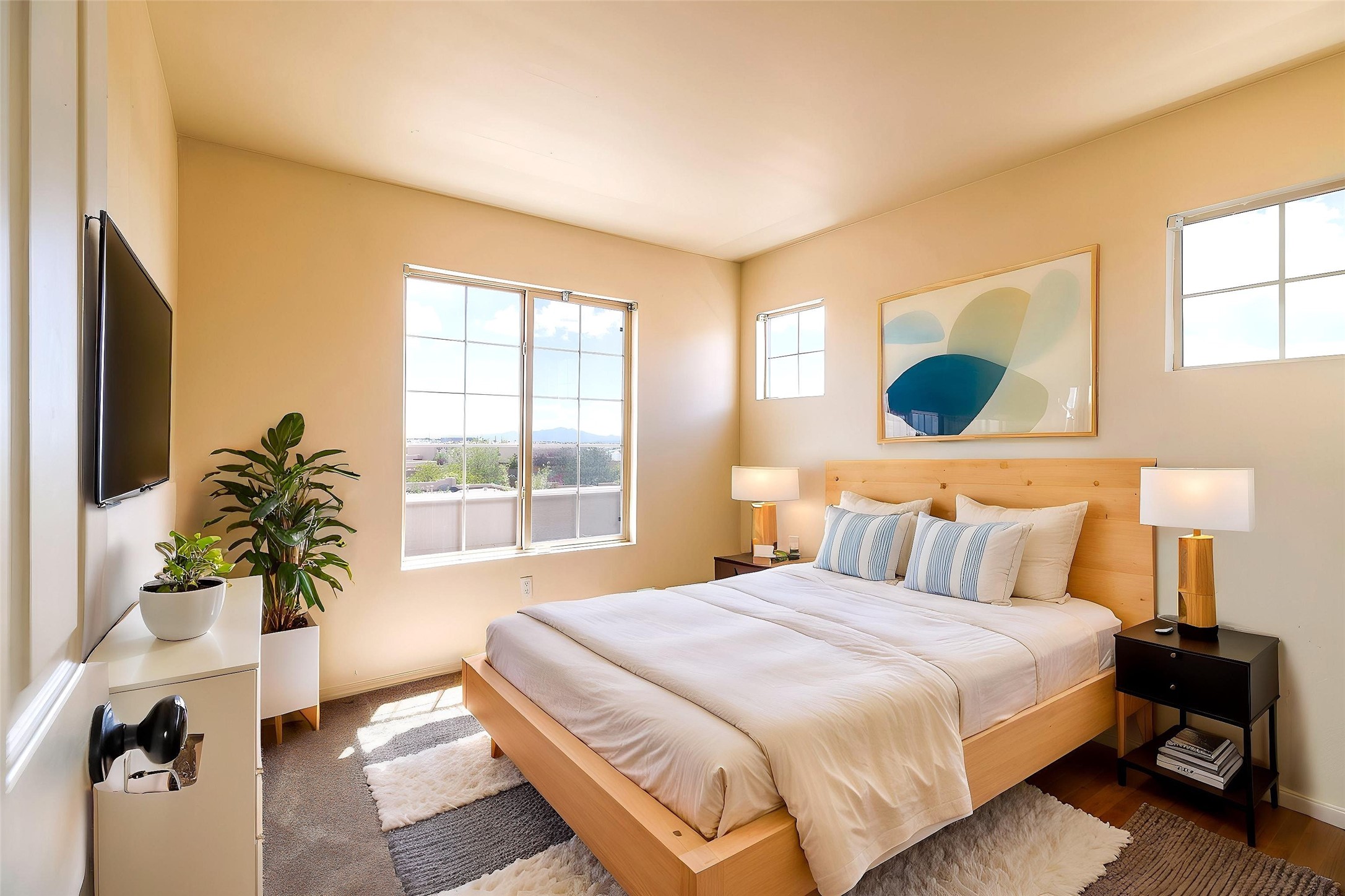 Imagine a Five (5%) mortgage interest rate! This seller incentive of a 2/1 buydown of your mortgage rate makes this possible. Now, welcome to a home that lives larger than its price, nestled in the heart of Nava Ade -- one of Santa Fe's most beloved popular, planned neighborhoods, where tree-lined sidewalks, gentle trails, community POOL and clubhouse and open skies invite you to slow down and breathe in the good life.This is not just a house -- it's a space designed for your lst home or retired lifestyle. Tucked away on a peaceful CUL-De-SAC, this light-filled home offers an affordable opportunity to own in a vibrant community without compromising style, space, or soul. Looking for a Santa Fe home with value at a smart price? Priced at $488,000, this 3-bedroom, 2-bath home offers a spacious primary suite on the MAIN level, open-concept great room living and dining, a light-filled interior with SATILLO tile floors, high ceilings, and a dramatic floor-to-ceiling wood-burning fireplace. While two second level guest bedrooms and full bath with a new BALCONY view deck offer privacy, creative space, and guest flexibility. Outside, enjoy a xeriscaped backyard with COYOTE fencing, PERGOLA for morning coffee, and outdoor room to entertain under the stars. Recent upgrades include a ROOF with transferable maintenance warranty, new stucco, updated CANALES, new dishwasher, fresh interior paint, new landscaping and more. BONUS: Seller will provide a HOME WARRANTY from Home Warranty to America at no cost to buyer! Nava Ade homeowners enjoy LOW HOA fees ($185/qtr) and access to a clubhouse, pool, fitness room, trails, and parks. This established community is minutes from schools, shopping, restaurants, hospitals, and the Santa Fe Community College.This home is your opportunity to live affordably in a well-maintained, move-in ready home with only Santa Fe blue skies and community connection. Trust your judgement! Call to see todayl Swim this summer and live in Santa Fe!