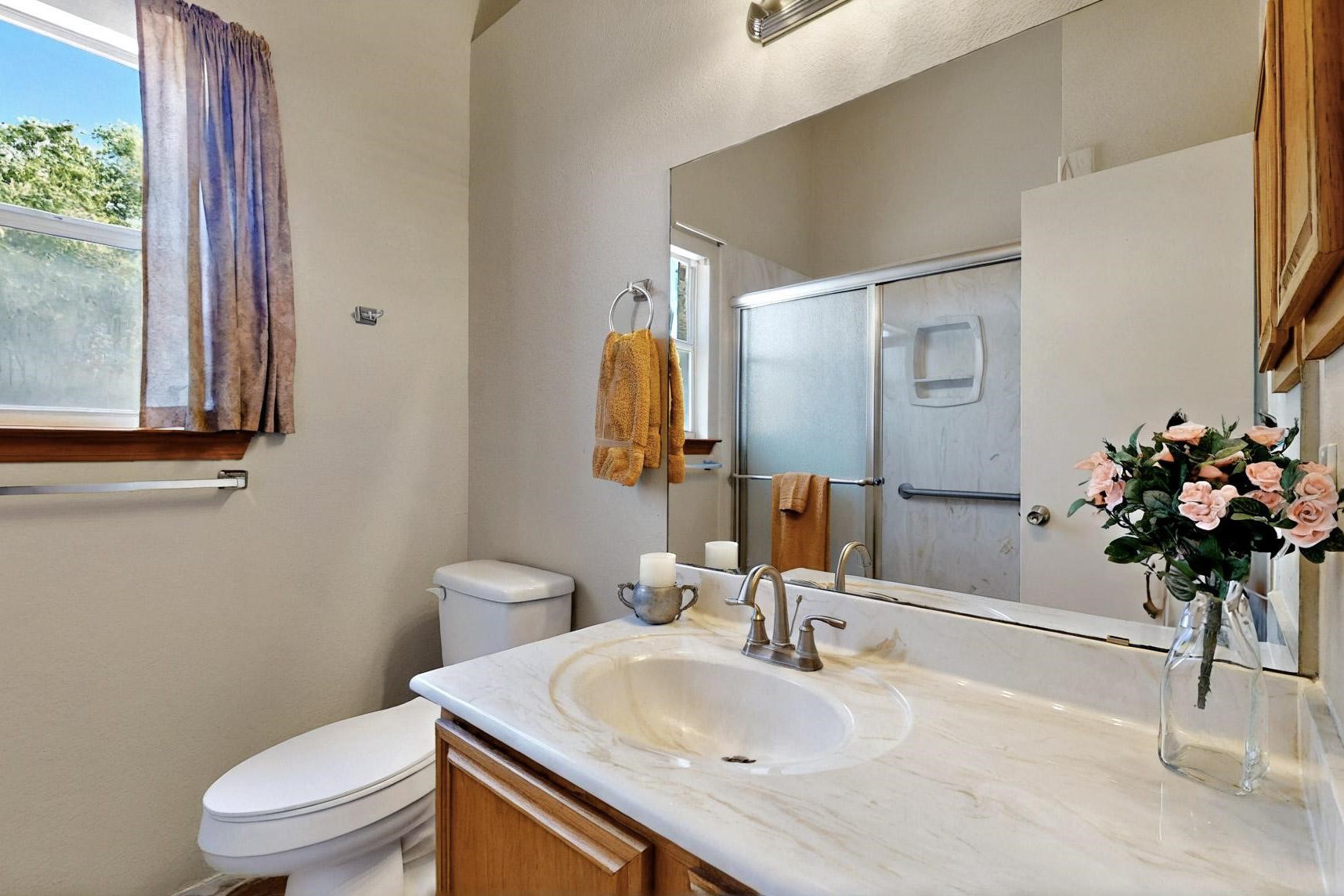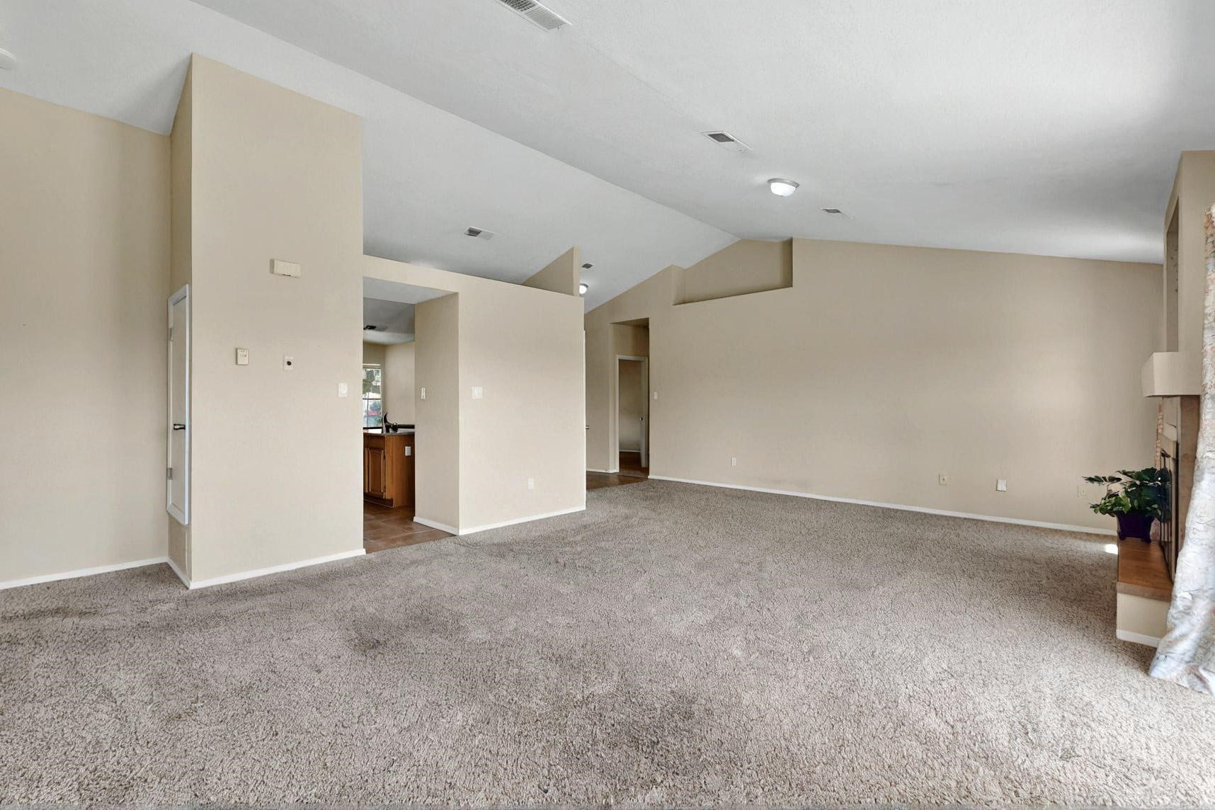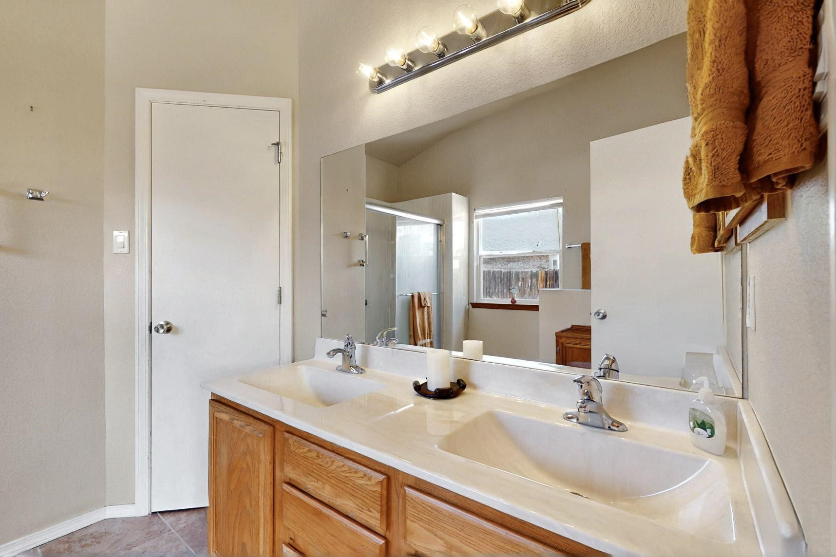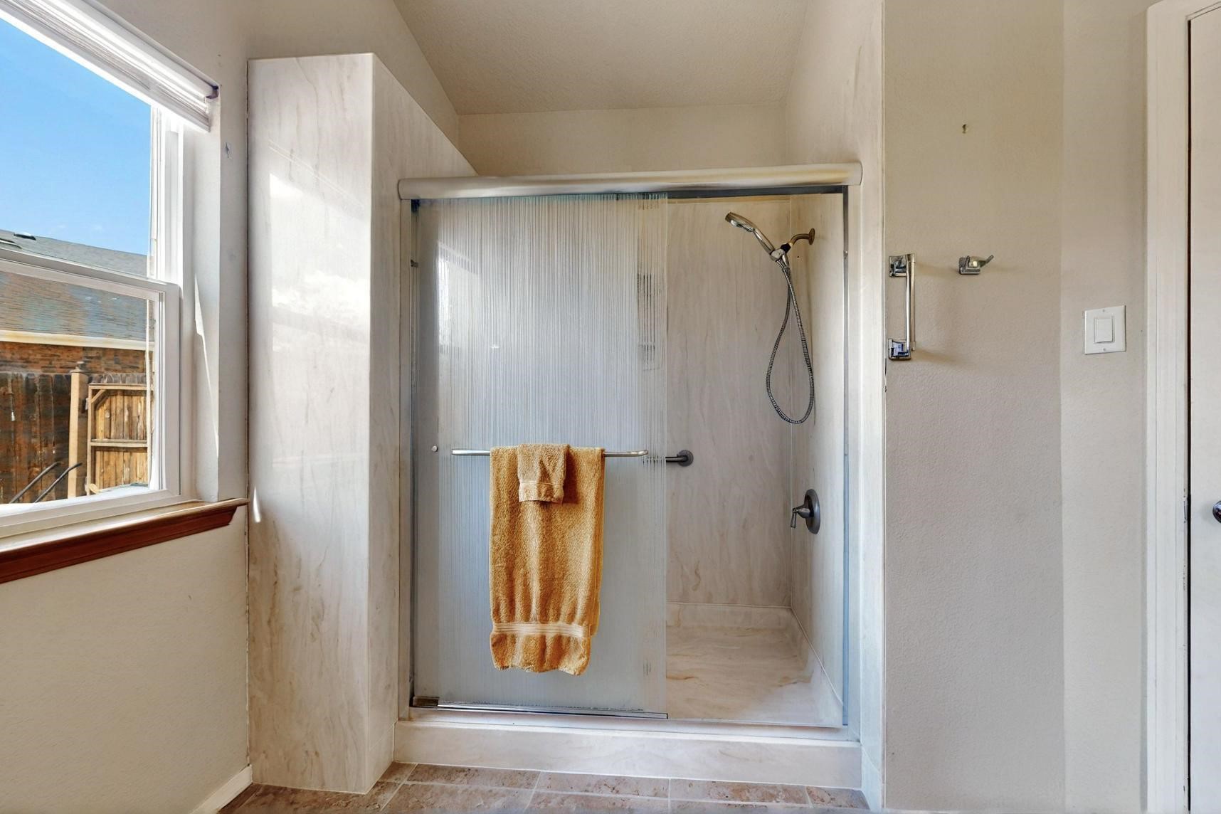 Cute, clean, and affordable! Nestled at the end of a peaceful cul-de-sac with privacy buffers on two sides. This adorable 3-bedroom, 2-bathroom home sits on a generous -acre lot with backyard access through a large gate. Step inside to find a huge living room with a gas log fireplace, vaulted ceilings, and windows that flood the space with natural light. The eat-in kitchen features granite countertops, ceramic tile flooring, a stainless-steel range and dishwasher, and plenty of space to gather. Retreat to your private master suite with a walk-in closet, double vanity, and an oversized shower--a perfect escape after a long day. Enjoy outdoor living with a beautiful shade tree in the front yard and a privacy-fenced backyard complete with a covered patio ideal for summer barbecues and a shed that conveys with the home. So much room, so much potential!