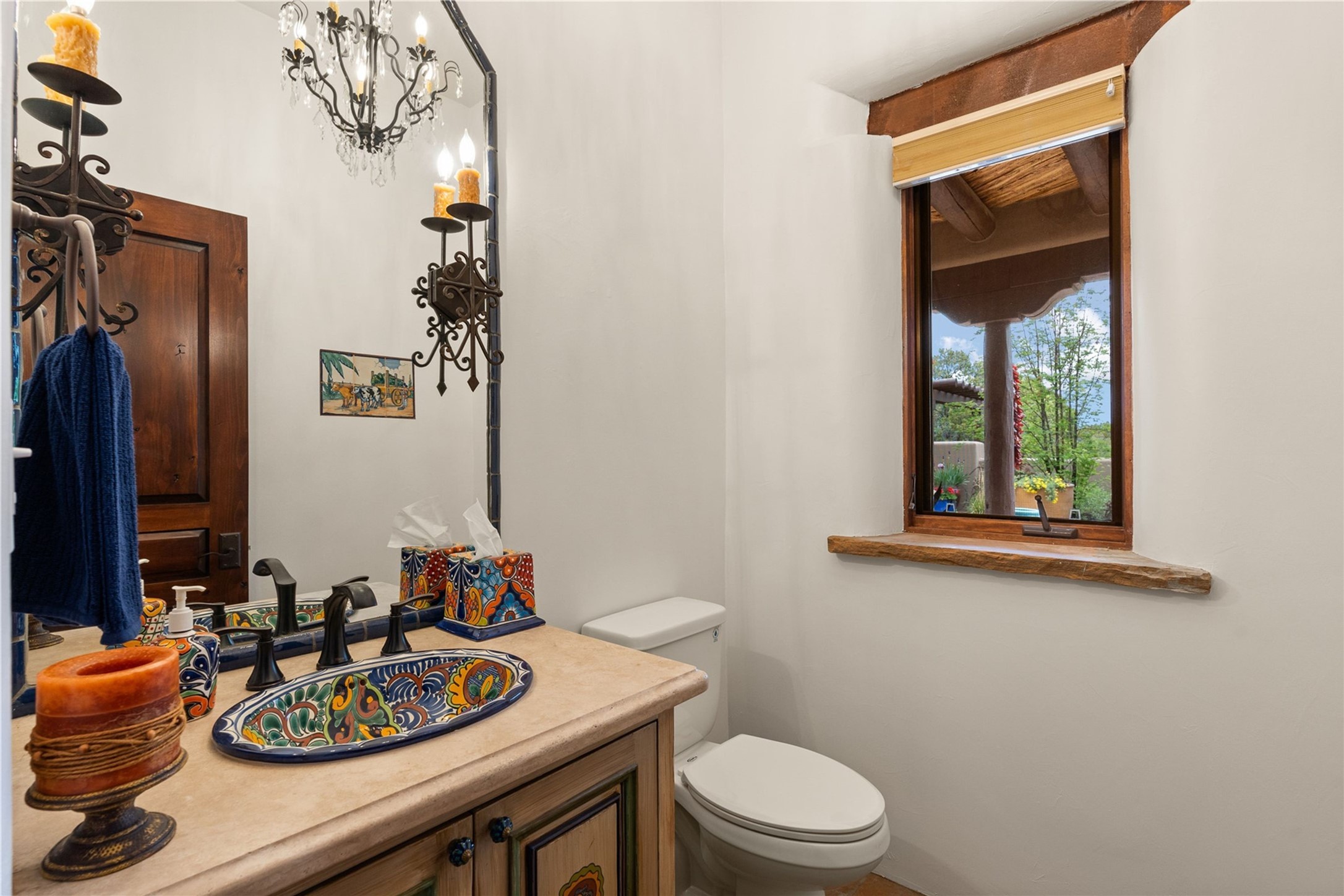 For those seeking the best of Santa Fe, this elegant and classic property delivers quality in every aspect. Set on 2.26 acres in Las Campanas, the 3-bedroom main residence, the beautifully appointed casita, and the masterfully conceived and executed outdoor areas come together to make this a special property. The ideal floorplan sets the grand primary bedroom suite, exercise room, and office opposite the house from the two generous guest suites. Between, are both informal and formal dining and living areas, creating spaces for the spectrum of living with the home. The casita is perfectly distanced to create privacy while providing easy access to the main house through a private courtyard. All the rooms are connected intuitively without a single step. The home is constructed with pumice-crete, a material known for excellent temperature insulation, natural flame resistance, and effective sound dampening. The kitchen serves as a warm and welcoming focal point, while the main living areas (living room, dining room & den) all provide beautiful views of the inspiring sunsets and Jemez Mountains. In addition to the dramatic walled and gated entry courtyard that captures eastern views, the main western portal is one of the most appealing outdoor living/entertaining spaces in all of Santa Fe. Radiant heat, air conditioning, and the three vehicle garage are other details that make this property an ideal primary residence or vacation home. The thoughtfully planned layout, coupled with the impeccable quality create great value for the next owner whether they want to enjoy it as is or bring upon it their own vision. A newly installed roof with a 10-year transferable warranty adds peace of mind for the next owner.