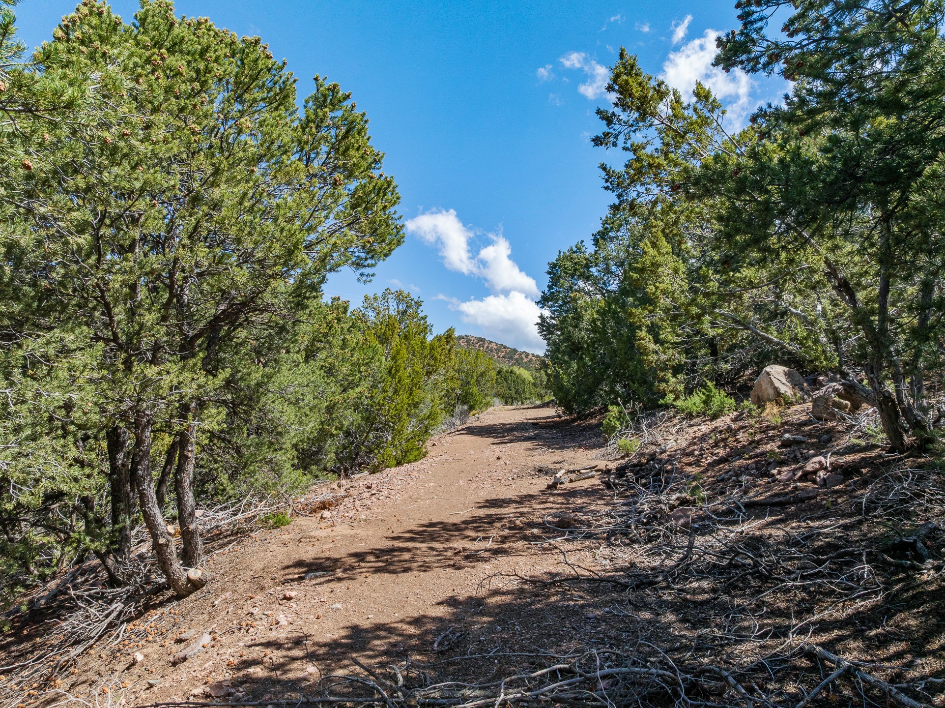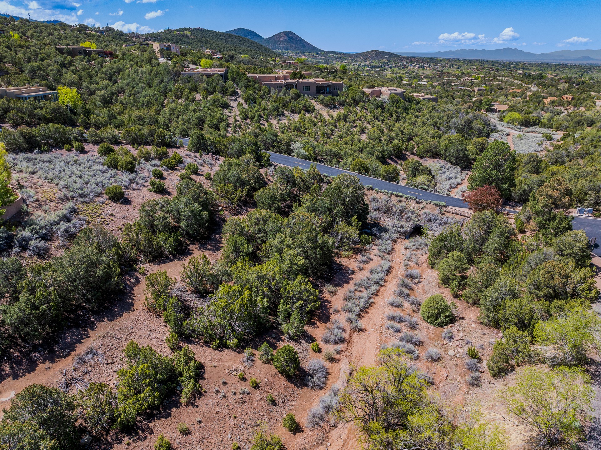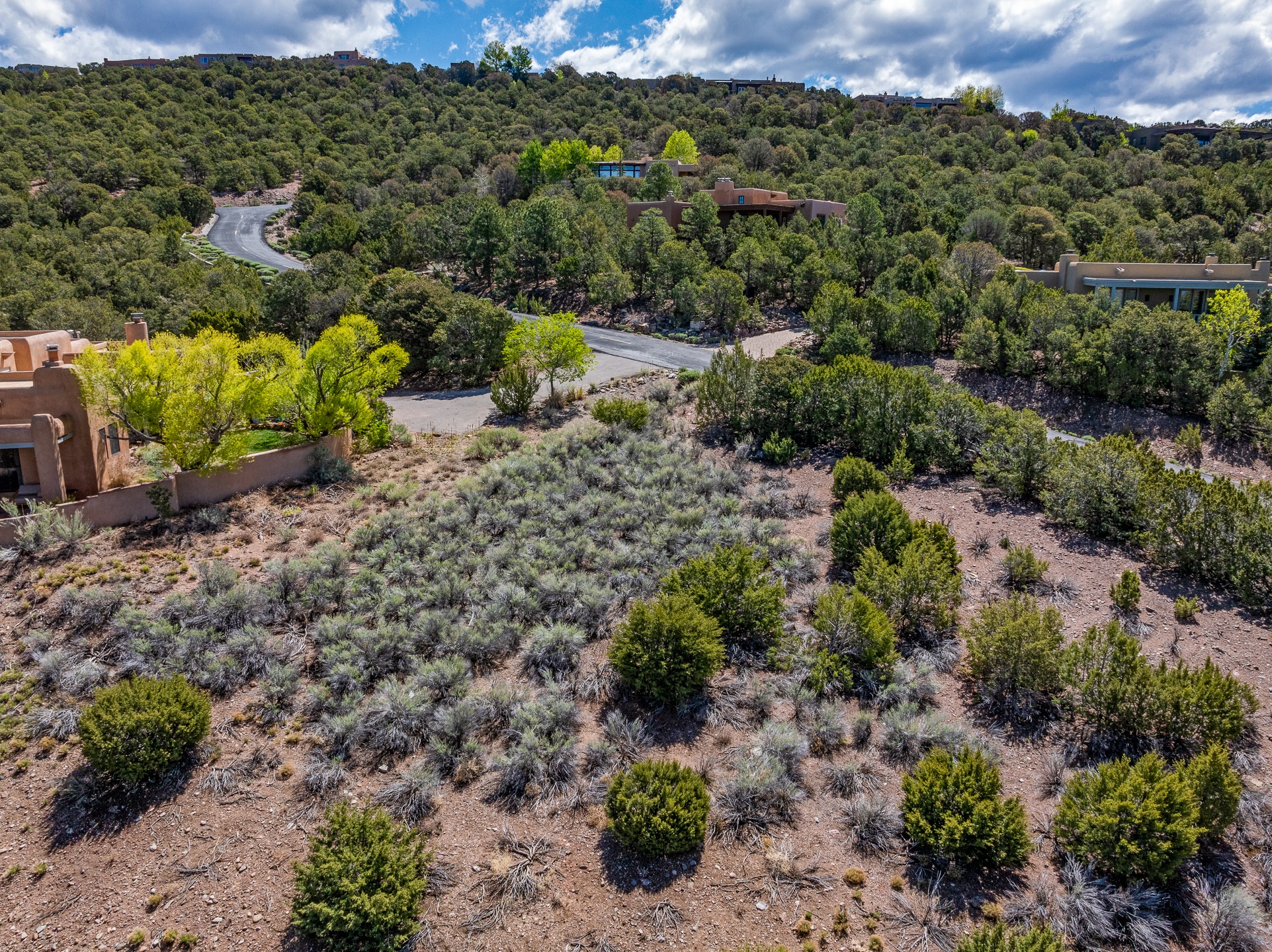 Fantastic development opportunity in the exclusive and conveniently located Canada Ancha Subdivision. With excellent views to the Sandia, Ortiz and Jemez Mountains, this lot has a relatively flat buildable area and gas, electric/transformer, sewer, city water/sewer all on site for added value and development ease. The Seller is also offering a nearly complete, excellent set of plans for a 2900 +/- sq/ft house created by notable local architect Sophia Marquez. The property has direct access to the abundant Dale Ball Trail System with super convenient access to Santa Fe National Forest and Santa Fe Ski Basin yet only a few minutes drive to Downtown Santa Fe.