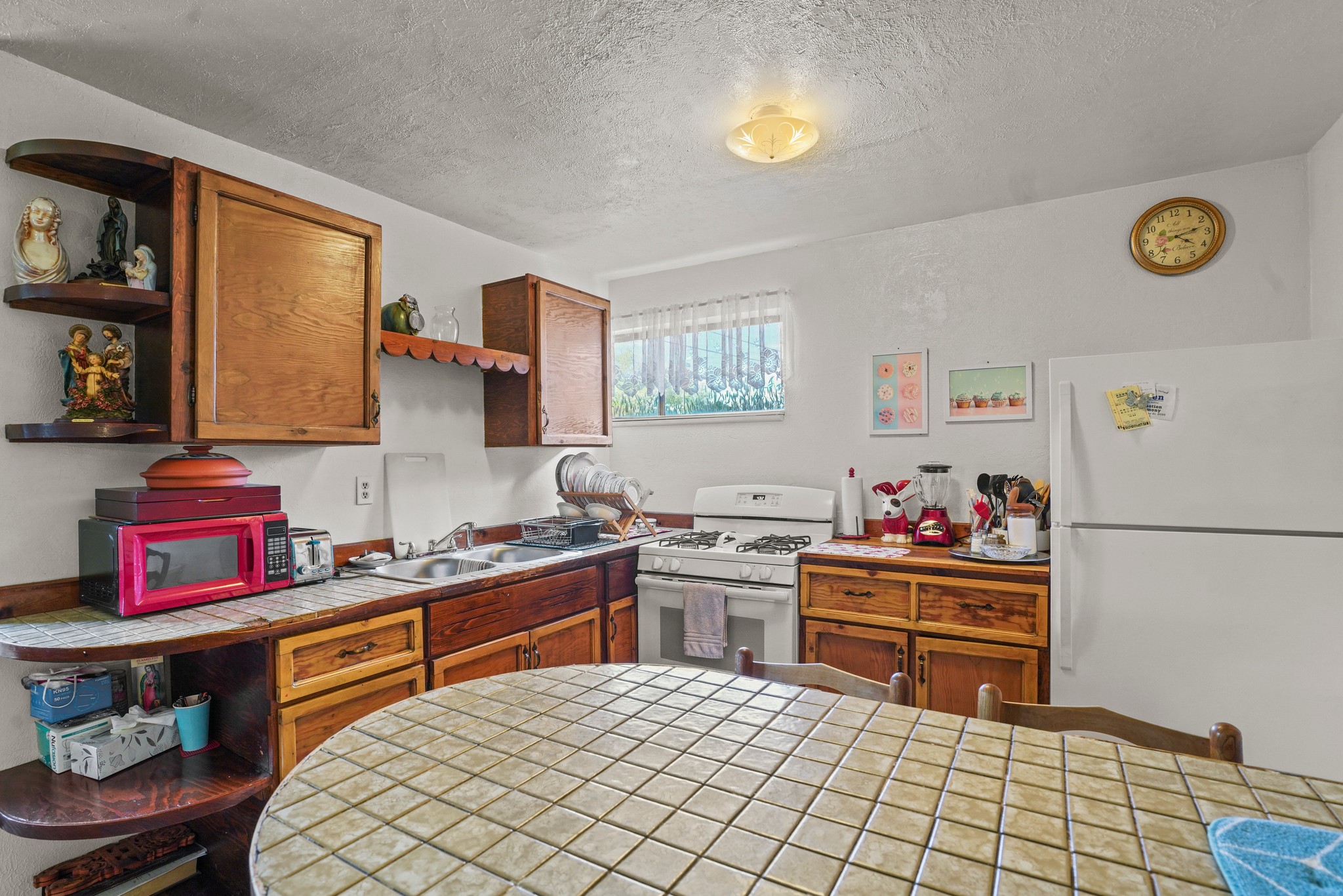 Welcome to this versatile and centrally-located one owner home in Santa Fe! Have you ever wanted an in home hair salon studio? This amazing home has it! Also featured on the lower level is a private and fully-equipped studio apartment with its own access. The upper level of the home has three bedrooms, two baths, a light and bright kitchen, and a spacious living and dining room. The propanel pitched roof is a plus and the entire home was recently and professionally stuccoed. With a total of 3,424 +/- heated square feet, you will finally have the interior space you need to make your homeownership dreams come true!