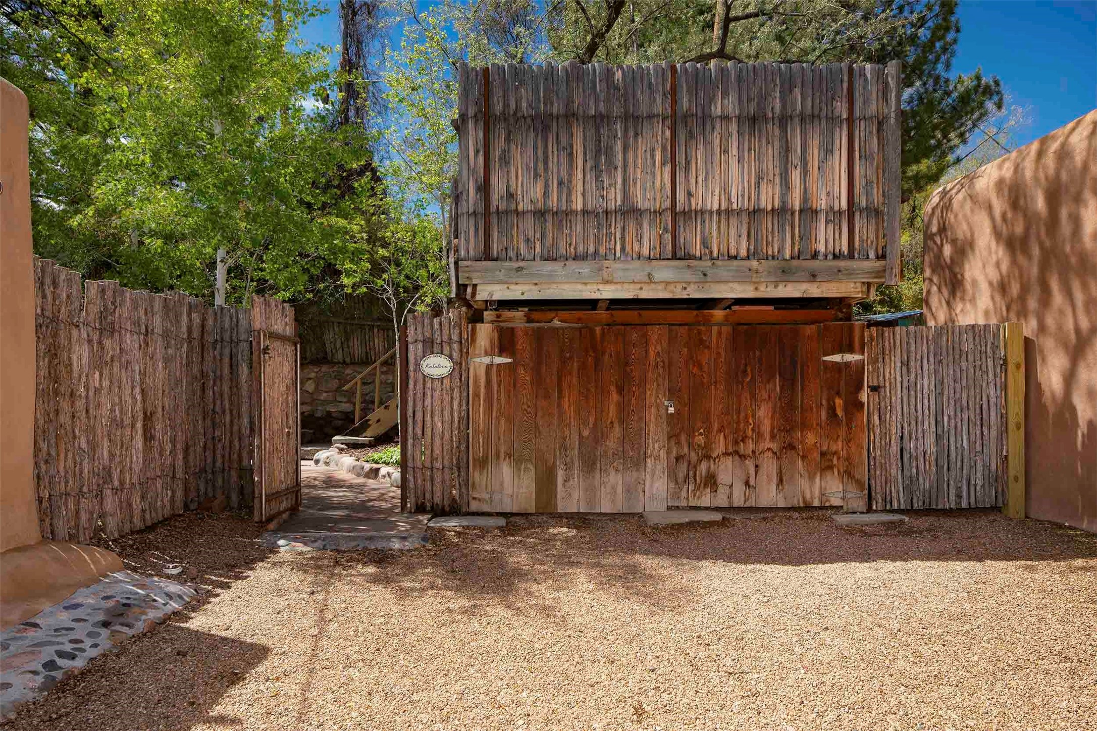 The history of Canyon Road is alive in the artisanal character of these two, Santa Fe classics. This successful Short Term Rental, set on a double lot, offers parking and storage in a desirable setting close to Patrick Smith Park. Each unique residence has been remodeled to a modern standard of comfort yet retains the imprint of its storied past. The back house, said to have started as a stable and tack shop in the early 1800s, has an Acequia Madre address and a dedicated parking spot at the top of a wooden staircase. A flagstone path and patio, with space for dining, a hot tub and a manageable dash of greenery, borders the home. The ceramic artwork of artist and former owner, Patricia Hoback, adds delightful dimension to both properties. The front house, rumored to have been a dance hall in the late 1800s, was Hoback's gallery. Between the two structures is a sheltered patio for alfresco meals and outdoor leisure, a Hoback artwork winking down from the wall. Enjoy the two dwellings for yourself, rent one for offset income, or rent both for maximum investment return. Buyers seeking history, authentic quality, and flexibility in the walkable heart of the Historic Eastside need look no further than this charismatic duet.