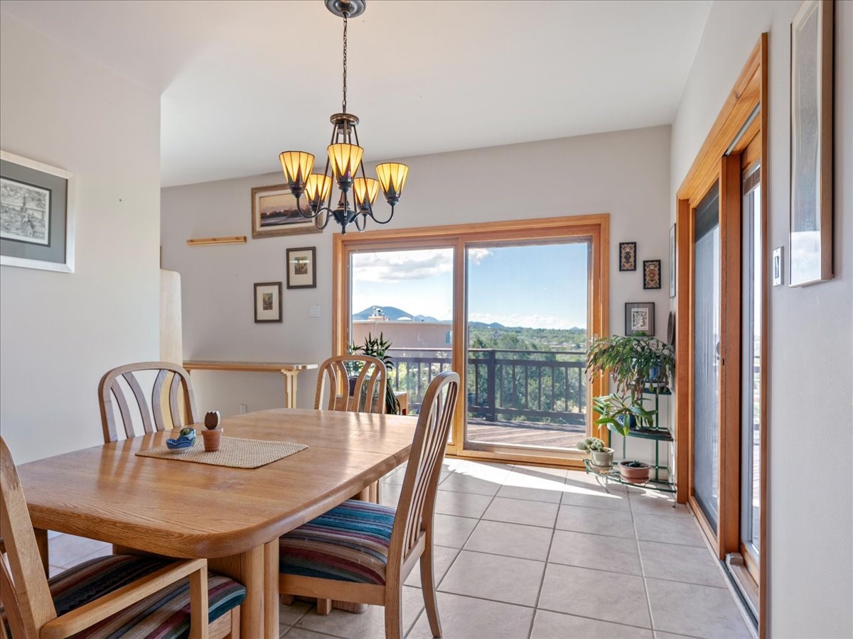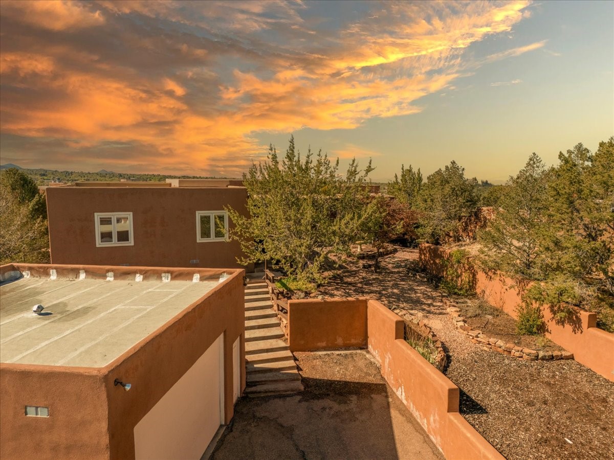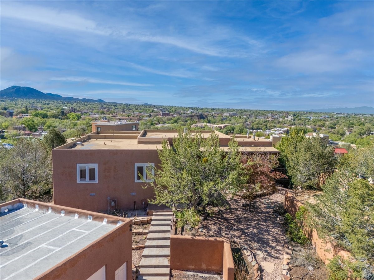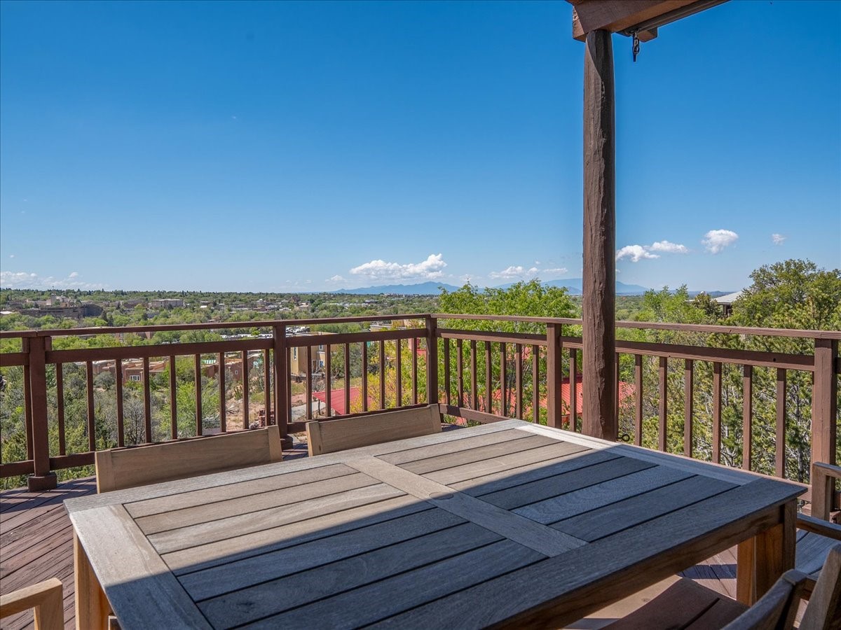 This lovely home is perched on a ridge overlooking Downtown Santa Fe. The viewing deck faces south bringing abundant light into the living space. With 3 Bedrooms/ 2 Baths on half an acre, the 1946 sf feels very open. The large 2 car garage is separate with paved access. Broker present for all showings