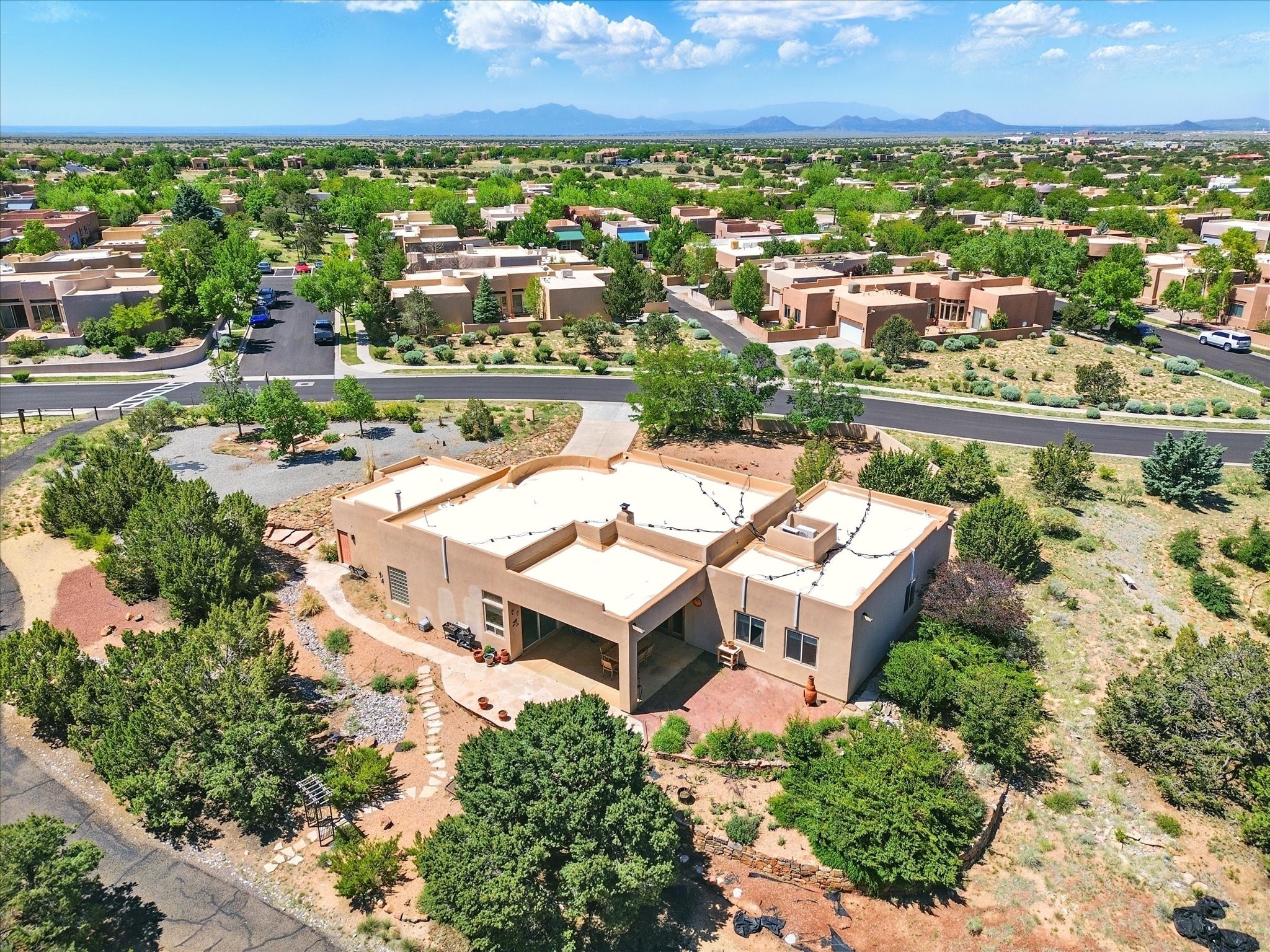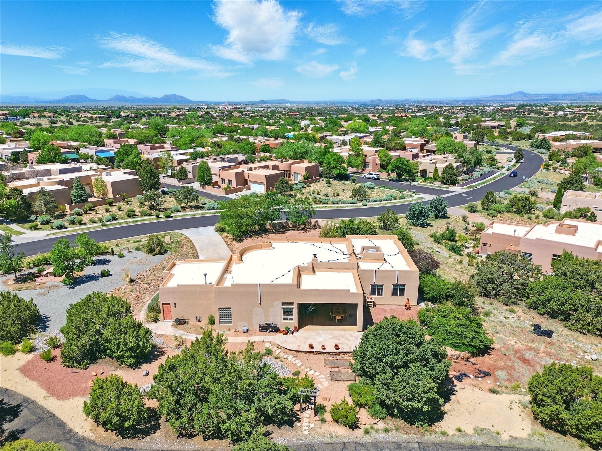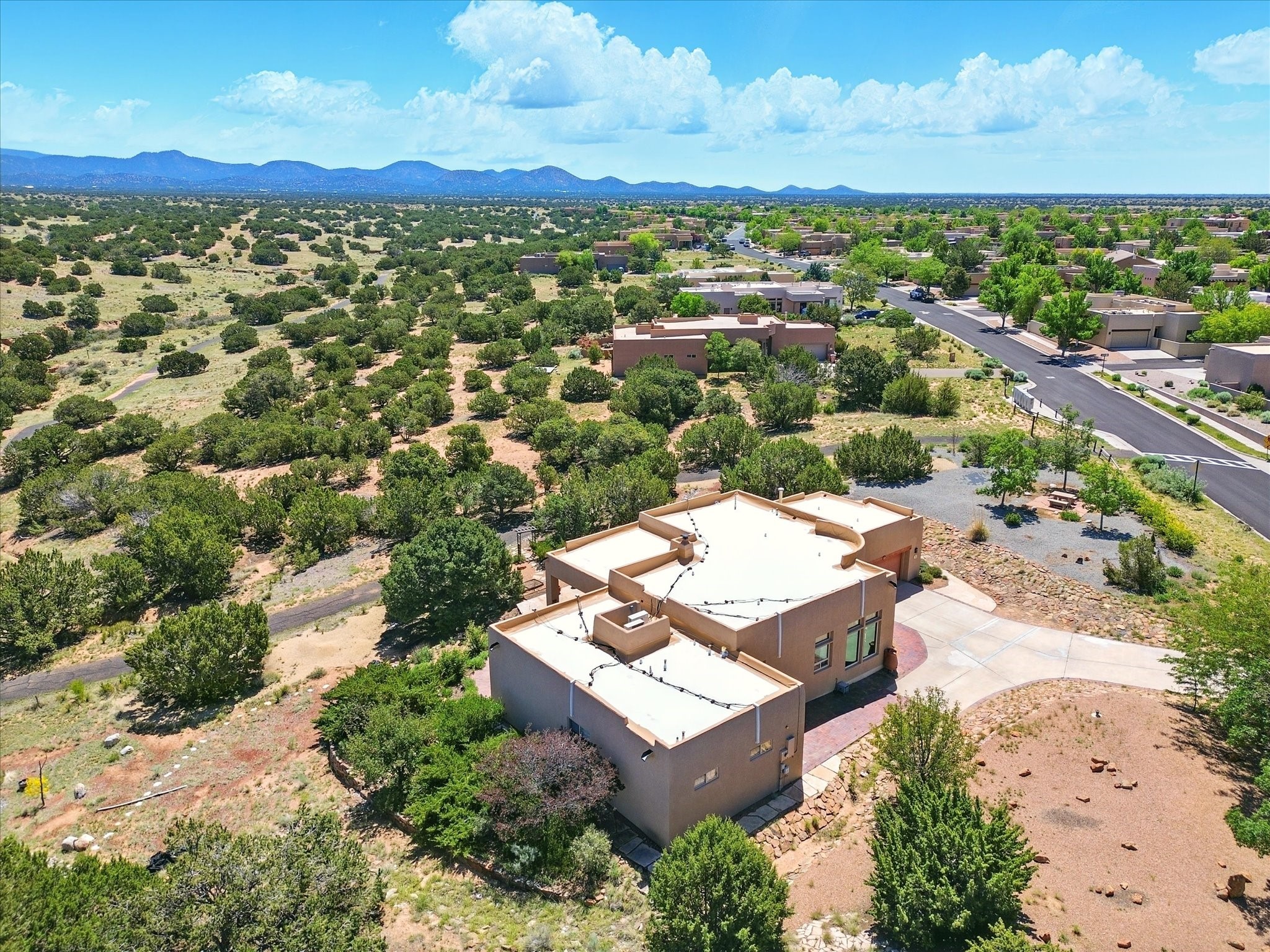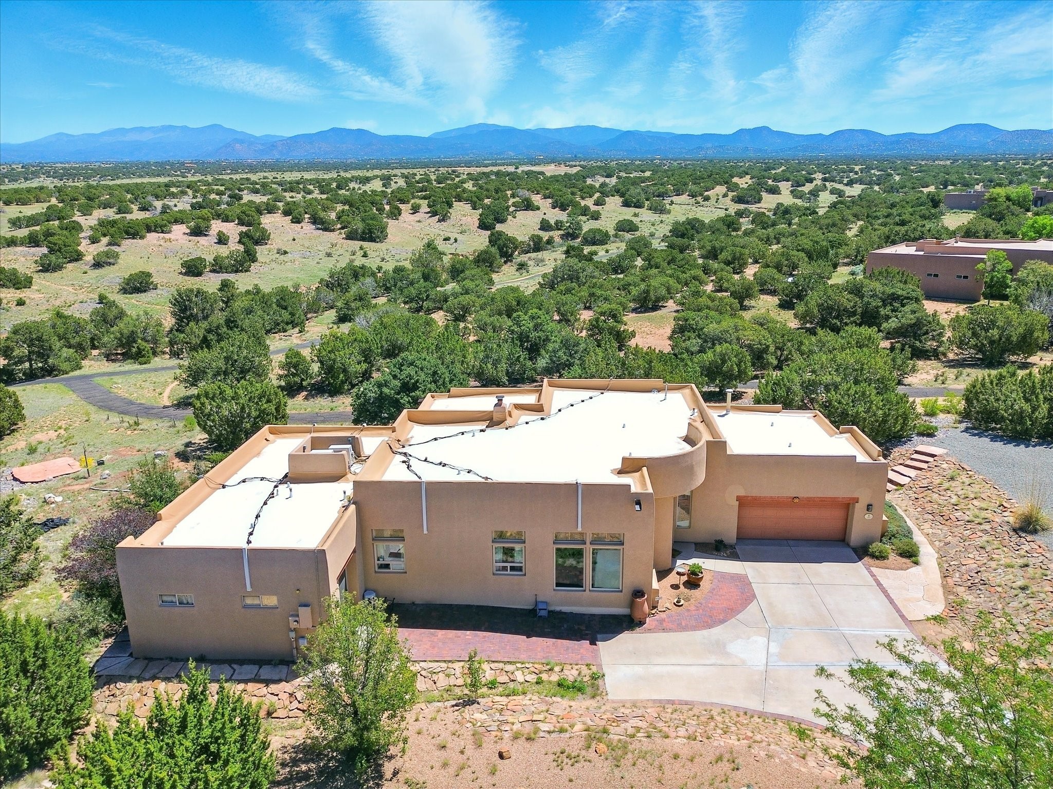 Nestled in the highly desirable Rancho Viejo subdivision, this beautifully maintained, one owner home offers a serene retreat on a conservation lot adjacent to open space--providing ultimate privacy and breathtaking views of the Sangre de Cristo and Jemez Mountains.With high ceilings and a thoughtful floor plan, this residence features two inviting living areas, a spacious formal dining room, and multiple options for casual dining--including a charming eat-in kitchen space and a breakfast bar perfect for morning coffee or quick meals. The cozy kiva fireplace adds warmth and ambiance, making it ideal for Santa Fe's cooler seasons.The primary suite is complete with a large walk-in closet, a bath tub, and a separate shower. Thoughtfully separated from the other bedrooms, it provides a peaceful escape. On the opposite side of the home, you'll find three additional bedrooms and a dedicated office--offering flexibility for family, guests, or remote work needs. One of the bedrooms even includes its own private bath with a curbless shower adding comfort and convenience.A two-car garage rounds out the home's features, while the quiet location ensures a tranquil lifestyle without sacrificing accessibility. Just minutes from Santa Fe Community College and surrounded by scenic parks and trails, this elegant home combines space, style, and location--perfect for entertaining or simply enjoying the beauty of northern New Mexico. Also brand New Boiler and recent maintenance makes this home a great choice.