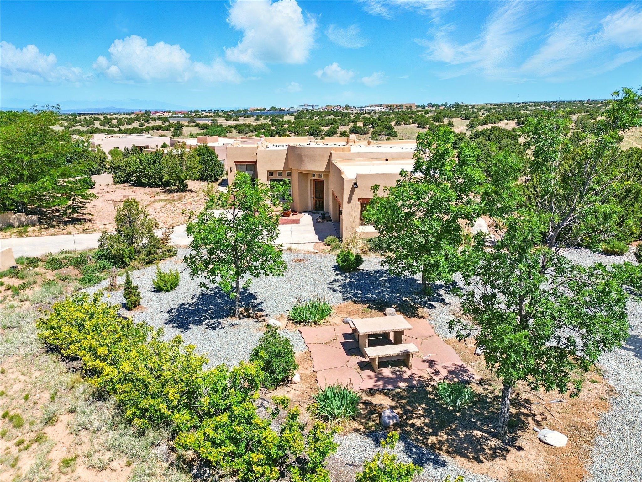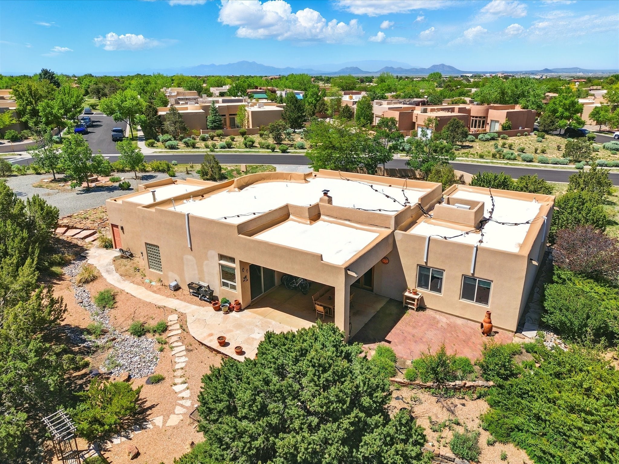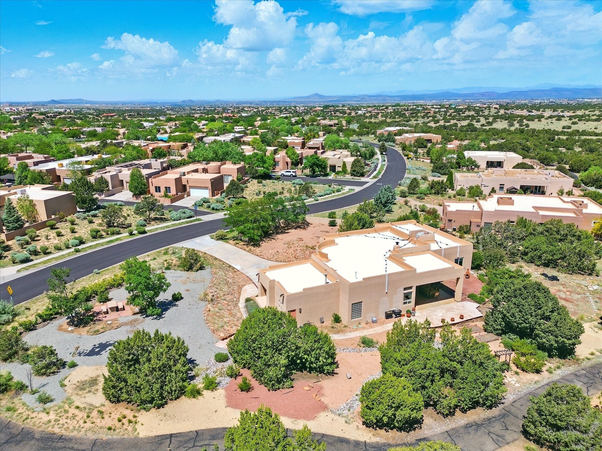 Nestled in the highly desirable Rancho Viejo subdivision, this beautifully maintained, one owner home offers a serene retreat on a conservation lot adjacent to open space--providing ultimate privacy and breathtaking views of the Sangre de Cristo and Jemez Mountains.With high ceilings and a thoughtful floor plan, this residence features two inviting living areas, a spacious formal dining room, and multiple options for casual dining--including a charming eat-in kitchen space and a breakfast bar perfect for morning coffee or quick meals. The cozy kiva fireplace adds warmth and ambiance, making it ideal for Santa Fe's cooler seasons.The primary suite is complete with a large walk-in closet, a bath tub, and a separate shower. Thoughtfully separated from the other bedrooms, it provides a peaceful escape. On the opposite side of the home, you'll find three additional bedrooms and a dedicated office--offering flexibility for family, guests, or remote work needs. One of the bedrooms even includes its own private bath with a curbless shower adding comfort and convenience.A two-car garage rounds out the home's features, while the quiet location ensures a tranquil lifestyle without sacrificing accessibility. Just minutes from Santa Fe Community College and surrounded by scenic parks and trails, this elegant home combines space, style, and location--perfect for entertaining or simply enjoying the beauty of northern New Mexico. Also brand New Boiler and recent maintenance makes this home a great choice.