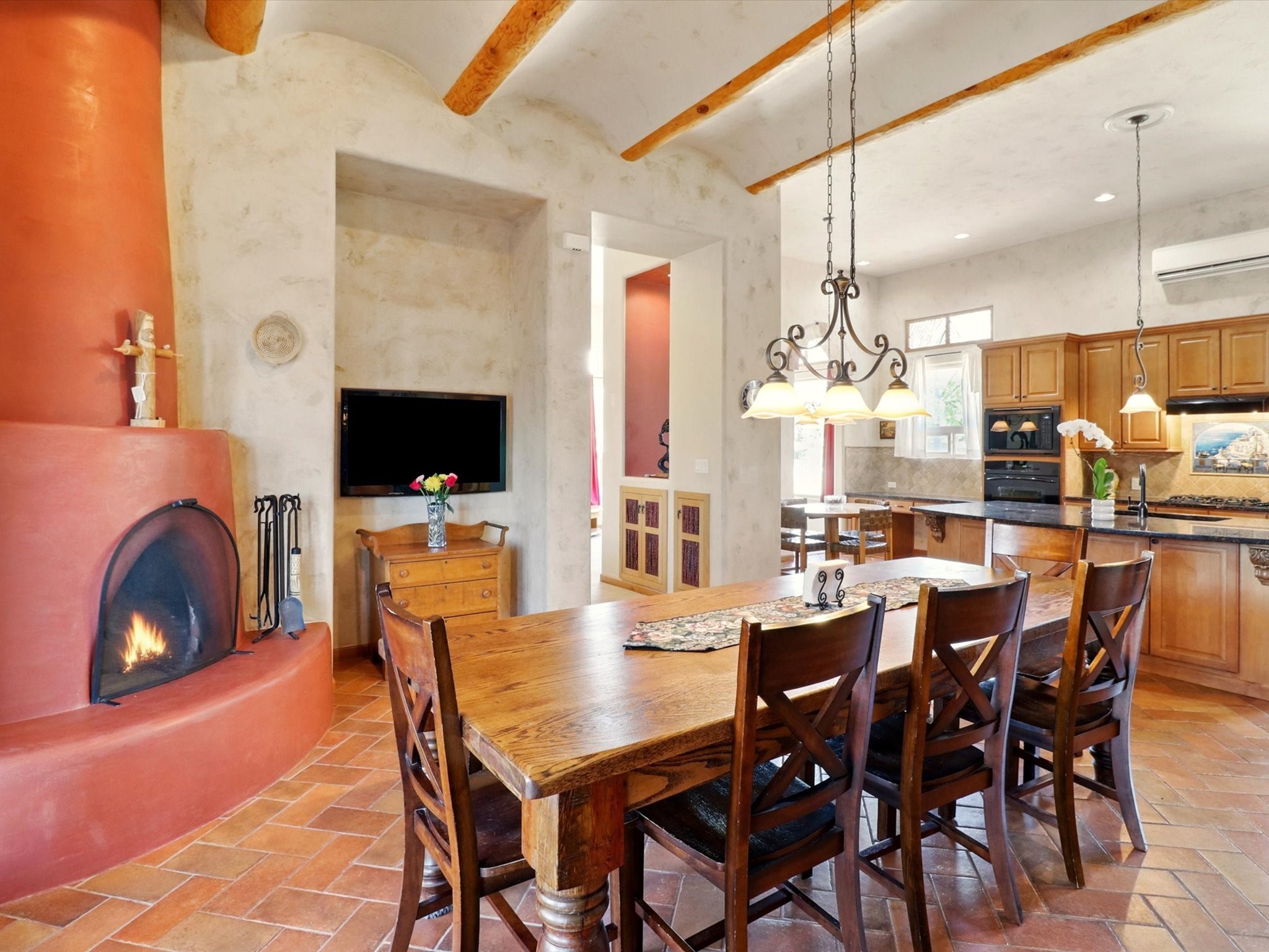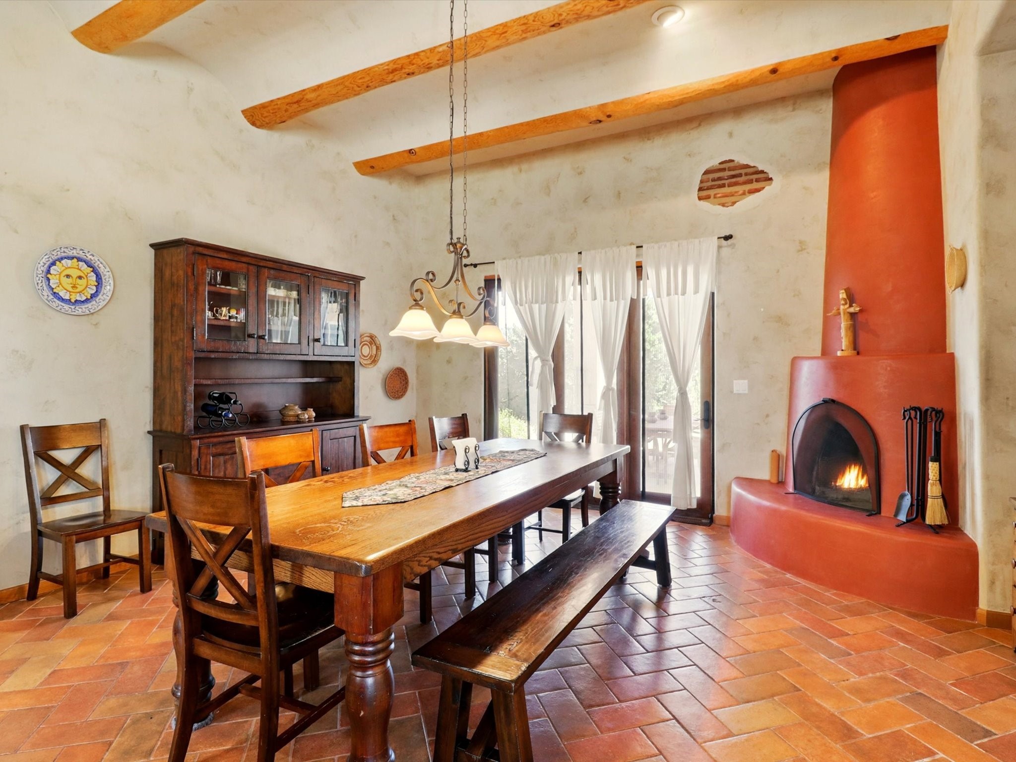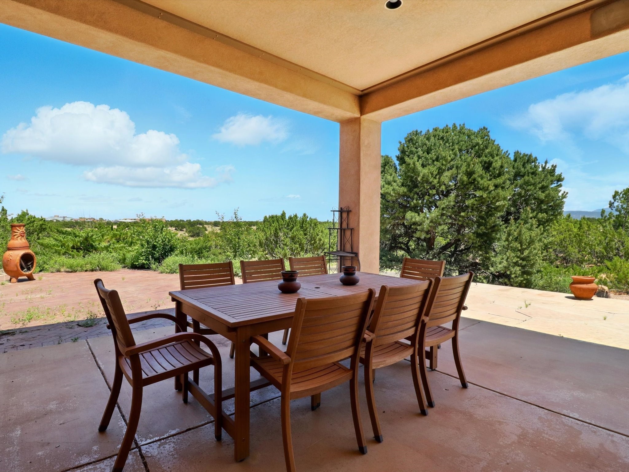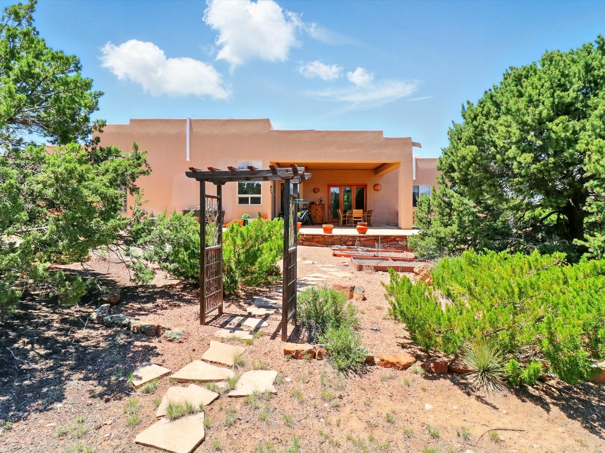 Nestled in the highly desirable Rancho Viejo subdivision, this beautifully maintained, one owner home offers a serene retreat on a conservation lot adjacent to open space--providing ultimate privacy and breathtaking views of the Sangre de Cristo and Jemez Mountains.With high ceilings and a thoughtful floor plan, this residence features two inviting living areas, a spacious formal dining room, and multiple options for casual dining--including a charming eat-in kitchen space and a breakfast bar perfect for morning coffee or quick meals. The cozy kiva fireplace adds warmth and ambiance, making it ideal for Santa Fe's cooler seasons.The primary suite is complete with a large walk-in closet, a bath tub, and a separate shower. Thoughtfully separated from the other bedrooms, it provides a peaceful escape. On the opposite side of the home, you'll find three additional bedrooms and a dedicated office--offering flexibility for family, guests, or remote work needs. One of the bedrooms even includes its own private bath with a curbless shower adding comfort and convenience.A two-car garage rounds out the home's features, while the quiet location ensures a tranquil lifestyle without sacrificing accessibility. Just minutes from Santa Fe Community College and surrounded by scenic parks and trails, this elegant home combines space, style, and location--perfect for entertaining or simply enjoying the beauty of northern New Mexico. Also brand New Boiler and recent maintenance makes this home a great choice.