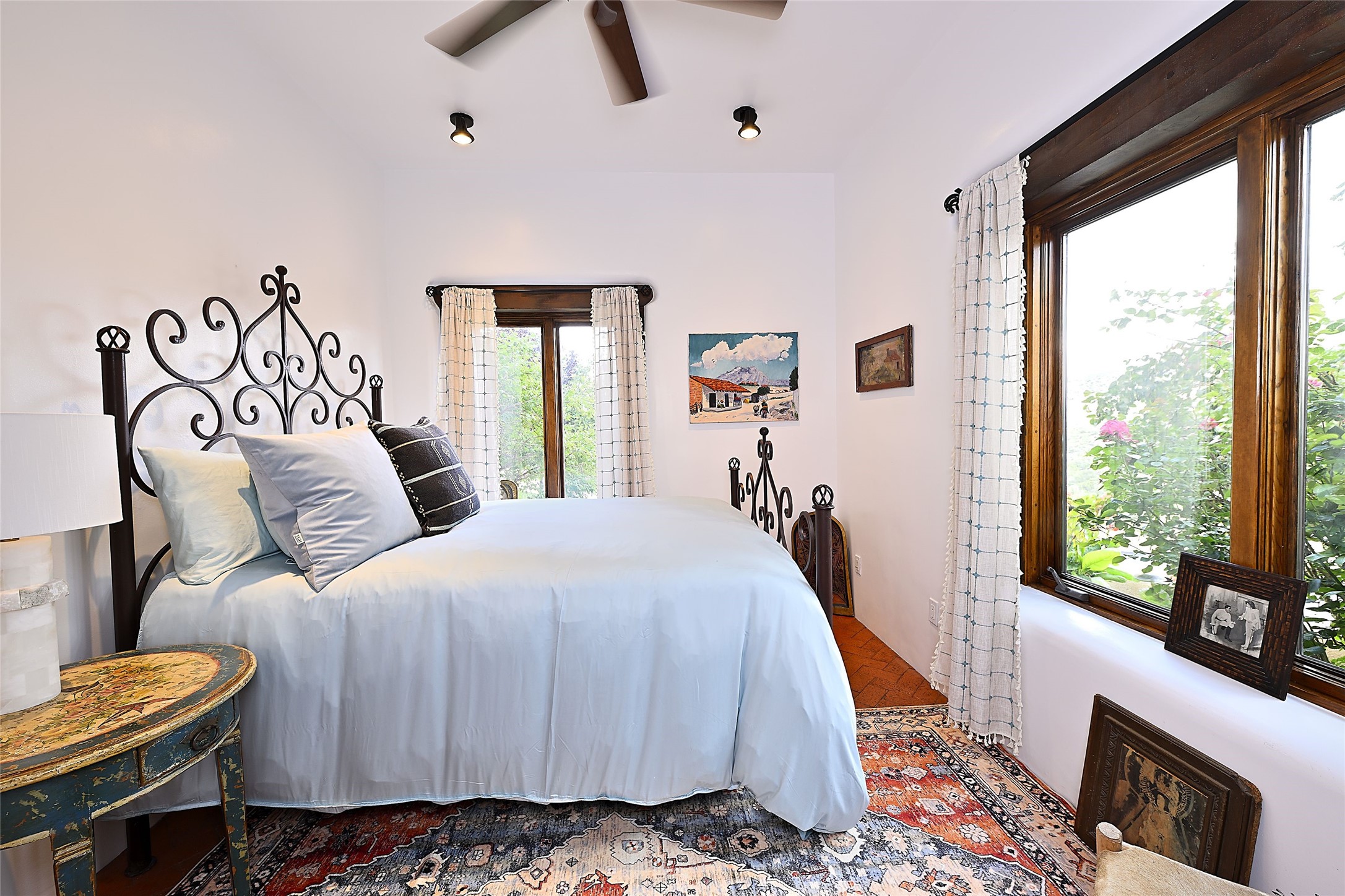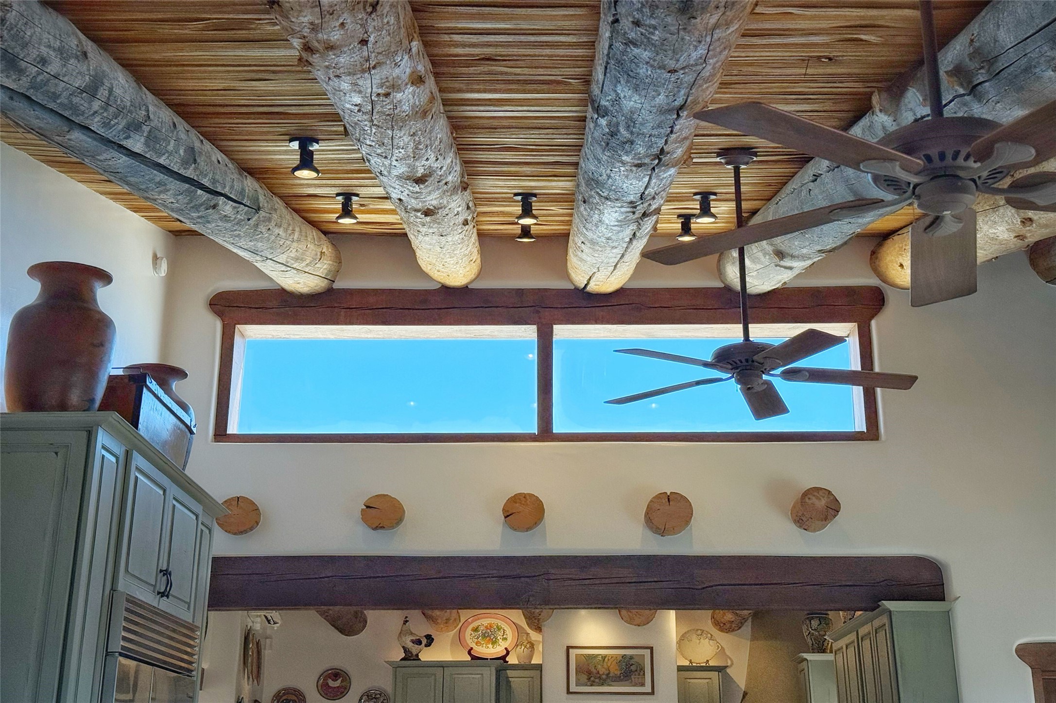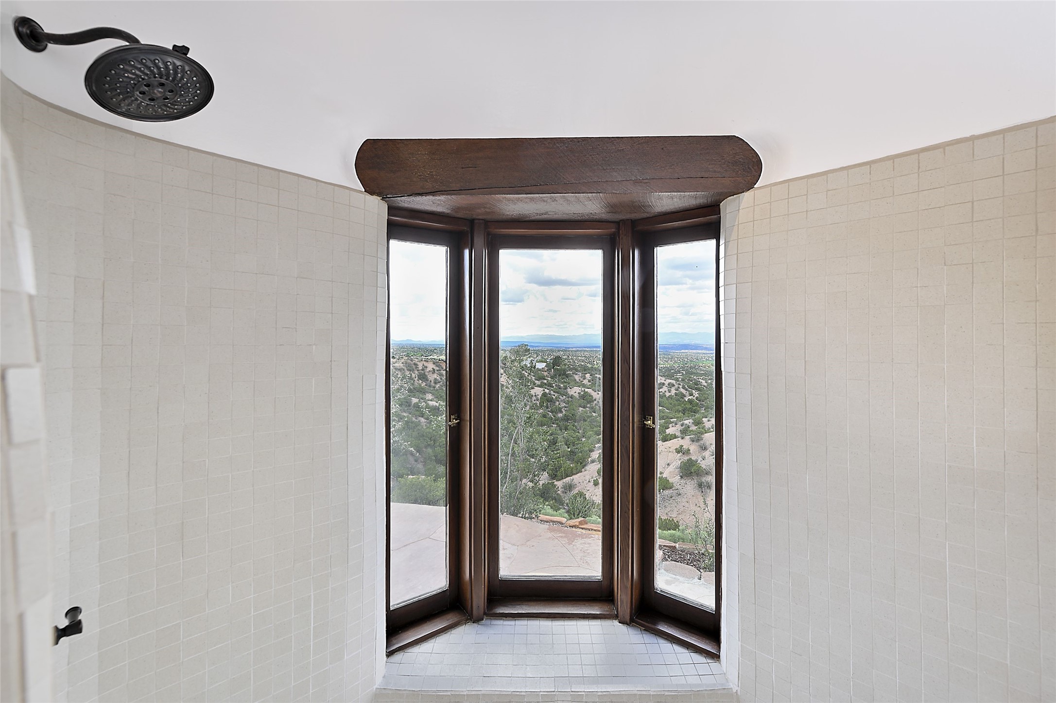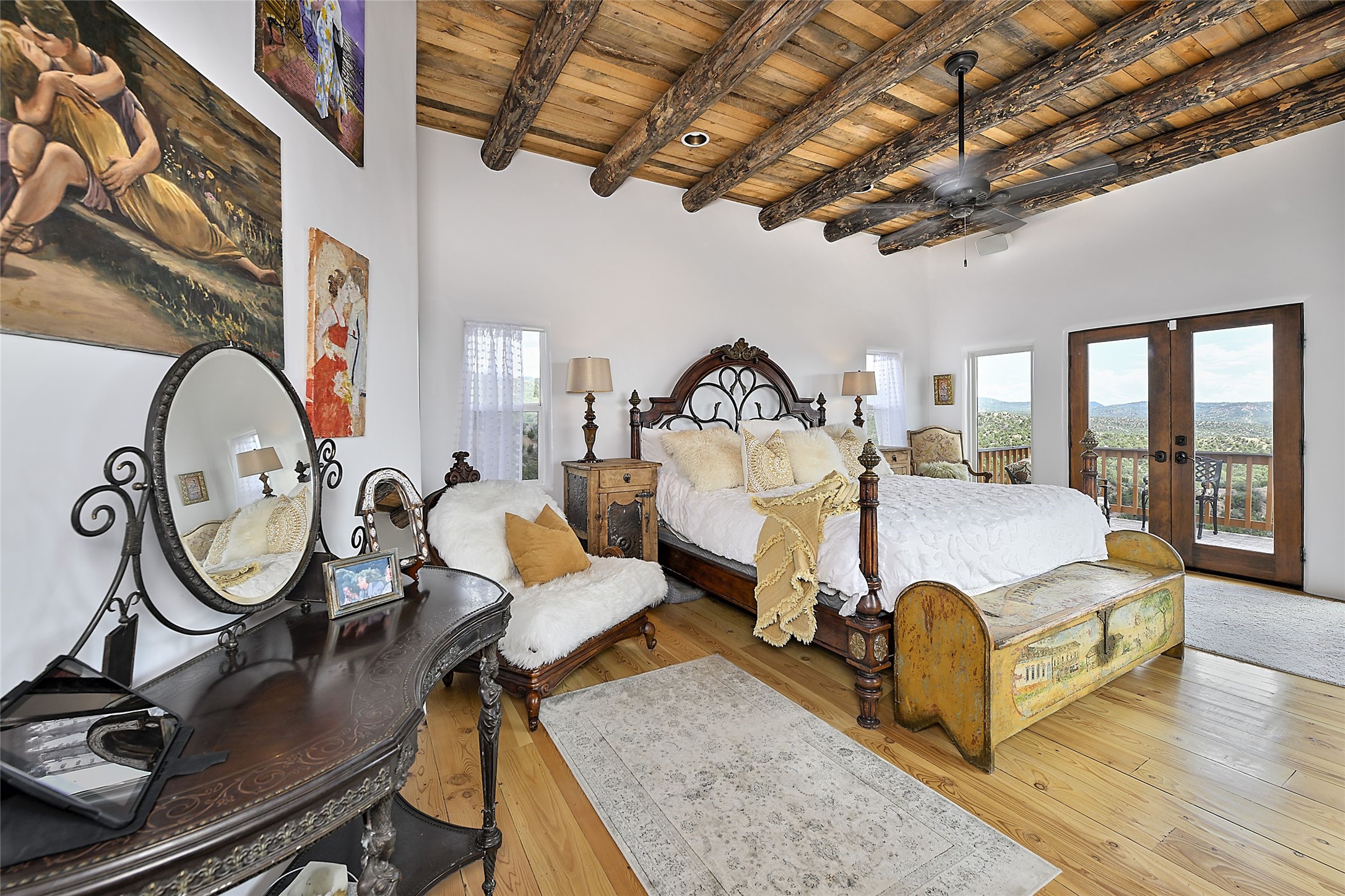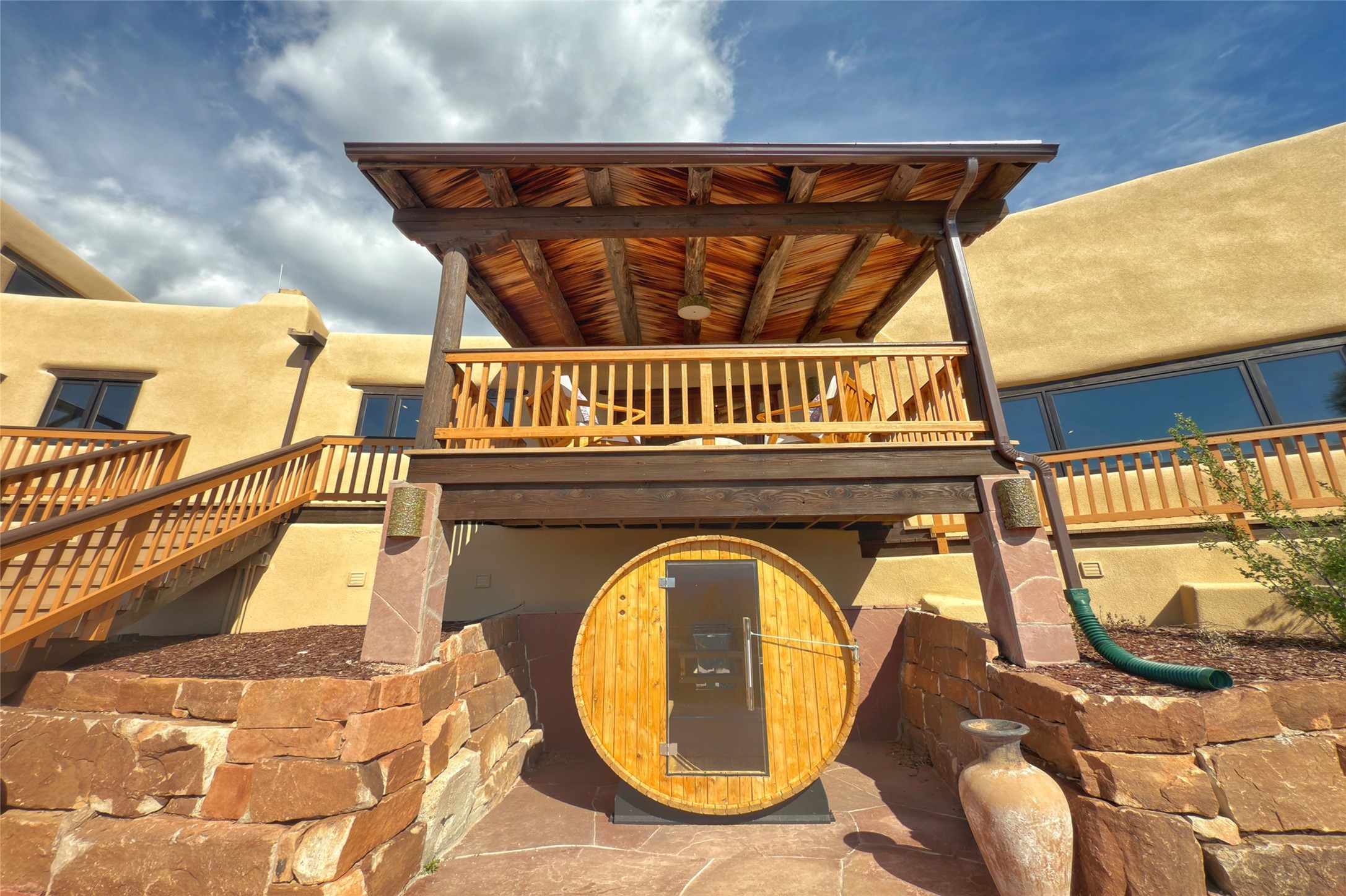 Welcome to this breathtaking 10-acre estate in the prestigious Tesuque community, where luxury meets unparalleled natural beauty. Quite possibly the best views in Tesuque, perched majestically on a private mountaintop, lovingly nicknamed "Top of Tesuque," offering 360-degree panoramic views that make you feel as though you're sitting atop the world. Spanning approximately 6,614 sq ft, this 4-bedroom home is a masterpiece of design and function, featuring many new upgrades for a modern lifestyle. This fully restored and expanded adobe home seamlessly blends classic Santa Fe design with modern upgrades, preserving its timeless charm. This property has a new roof, lighting, stucco. Truly turn-key in every way. Inside, the floor plan seamlessly blends indoor and outdoor living, creating an ideal setting for both relaxation and entertaining, including 6 Kiva Fireplaces as well as 1 wood-burning stove. The brand-new kitchen features handcrafted solid wood cabinetry and top-of-the-line luxury appliances, perfect for any culinary enthusiast, while the adjacent dining and living areas boast spectacular views. The primary bedroom suite includes a separate sitting room, offering a private retreat within the home. Enjoy the convenience of a dedicated office space and den, a media room, as well as a game room complete with a wet bar, perfect for hosting guests. Step outside to the covered portal with outdoor kitchen & TV, complete with matching granite countertops, where you can entertain in style. The outdoor kitchen has all new (never been used) grill, pizza oven and smoker! Terraced gardens also feature a brand-new (never been used) Sauna and Hot Tub. A newly built garage has an observation deck on top. There are new entrance gates for privacy, a new driveway surface, and new additional parking areas ensure privacy and convenience. The addition of an electric lift from ground level to main level of residence also ensures accessibility and ease for loading and unloading. Mexican Porcelain tile terrace at the front entrance welcomes you. There is an enclosed dog park, as well as fully irrigated garden beds surrounding the house. The property is beautifully illuminated with 40 handmade copper light fixtures, adding a timeless touch to the outdoor spaces. With no HOA restrictions, this home offers the freedom and tranquility you've been searching for in the village of Tesuque.
