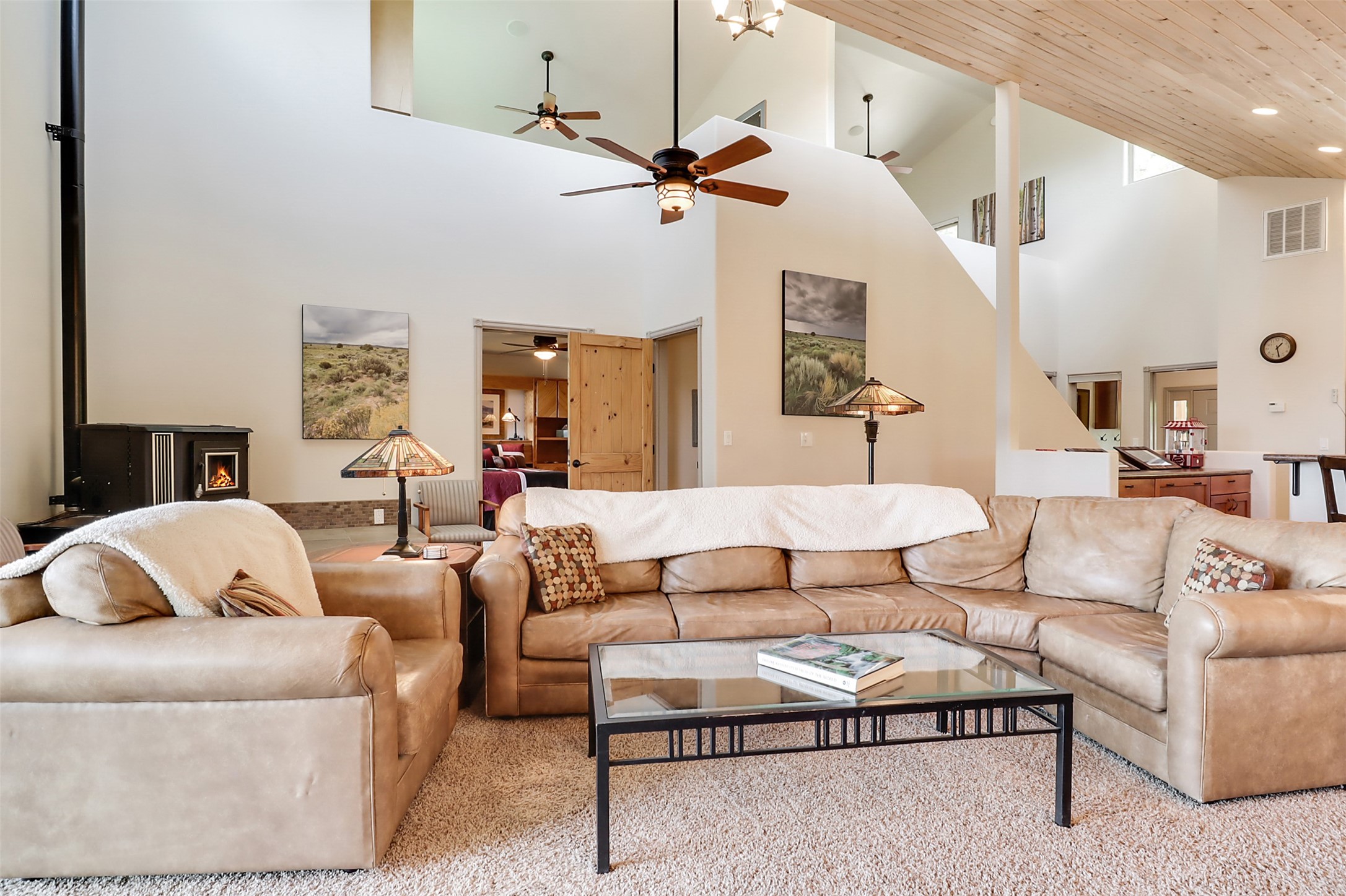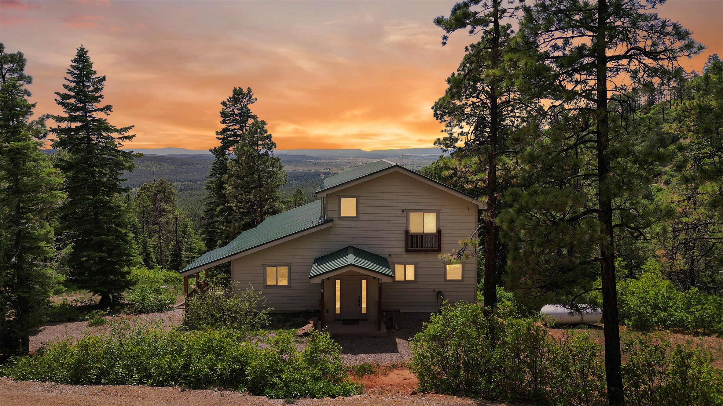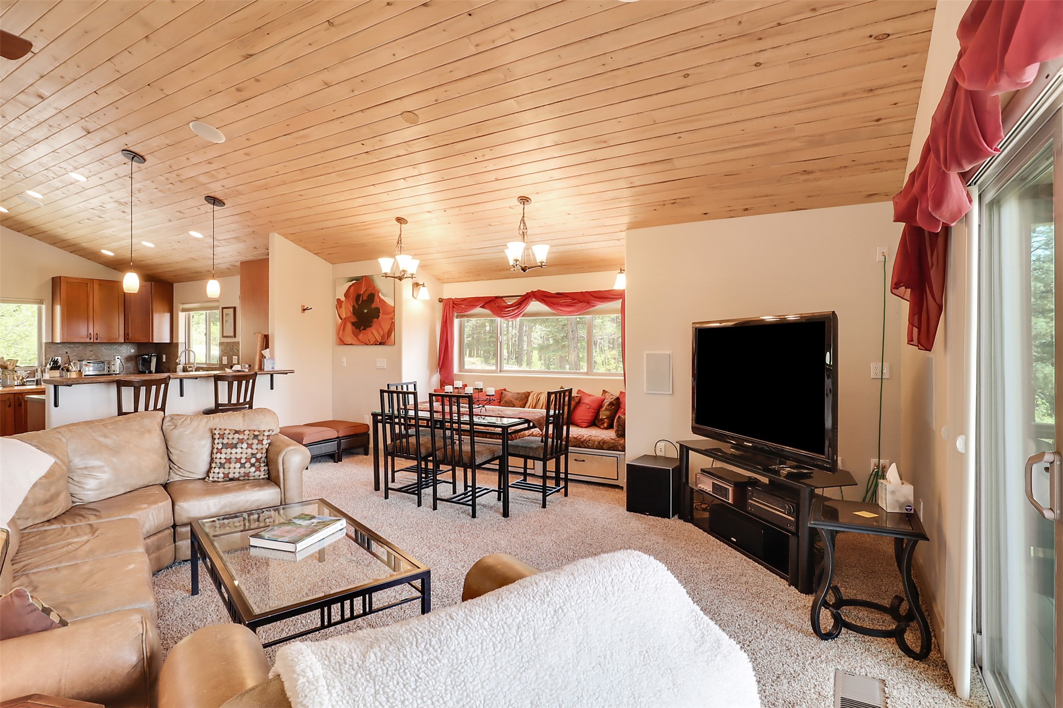 Put this amazing property on your short list to view today! If privacy, quality, comfort, and million dollar views are important when looking for your next home, this is it! Buyers will find that 109 A Brass Cap Rd is an easy to care for property so one can relax and enjoy their precious time with family and friends among the tall pines. This custom Tri Level turn key home is offered with all furnishings, fixtures and appliances as shown. The covered entrance, mudroom, laundry, kitchen, dining, family room and primary bedroom are located on the main level. The upper level opens into a large loft area for additional sleeping or recreation, a full bath and 2nd bedroom. There's a movie theater, 1/2 bath and oversized finished garage at the lower level. Interior features include an open kitchen, living and dining area, ceiling fans, surround sound, pellet stove, wood doors and beams, tiled wet areas, carpeted living and bedrooms. The kitchen has tiled backsplashes, stainless steel appliances to include a beverage fridge, pull out microwave, electric cooktop, bar top with stools and plenty of counter space. The primary bedroom has direct access to the upper level deck, a walk-in closet, dual sinks, large tiled shower with bench seat and a whirlpool tub. Enjoy family movie nights, your favorite sports and television in the theater room which comfortably seats seven. Spectacular views and sunsets await you on the primary deck. Entrance to the community "Ticonderoga" is gated and closed to the public. Utility service to the home is underground public electric, shared well (one neighbor), propane and a private septic. Heat is provided by forced air and a pellet stove. There is an HOA and Covenants in place. The community has several private fishing ponds for residents and guests. Primary roads are maintained for year round use. Recreation and activities in the Chama, NM area are abundant and generally only a few minutes commute.