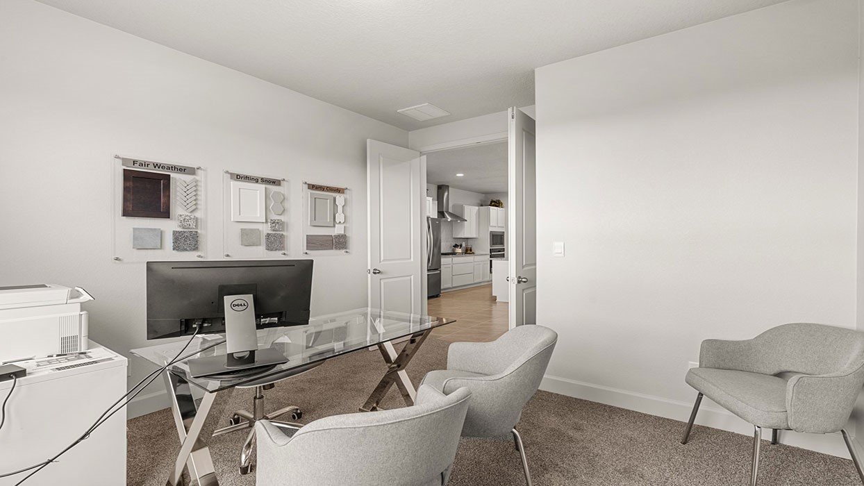 This stunning 2,016 sq ft home offers a spacious and well-designed floorplan with three bedrooms, office and two and a half bathrooms, perfect for families or those who enjoy extra space. The open-concept living area combines the living, dining, and kitchen spaces, creating a bright and welcoming atmosphere ideal for both entertaining and everyday living. The kitchen is a chef's dream, featuring modern appliances, abundant counter space, and ample cabinetry, making meal prep both practical and enjoyable. The primary suite provides a serene retreat, complete with a walk-in closet and a private en-suite bathroom. Two additional bedrooms are generously sized and offer flexibility for guests, children, or a home office. The half bath adds convenience for guests. The attached two-car garage provides secure parking and additional storage space. This home combines modern design, functionality, and comfort, offering the perfect space for contemporary living. QUICK MOVE-IN. **ASK ABOUT OUR CURRENT INCENTIVES**