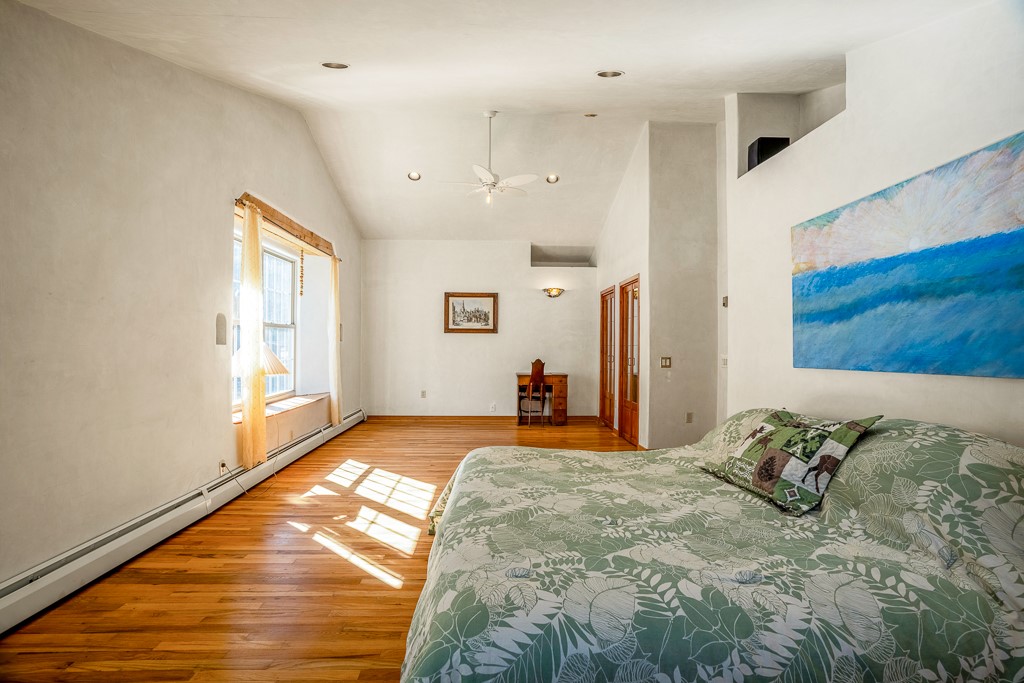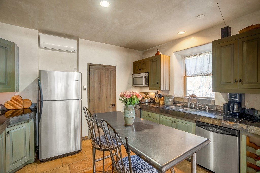 This exceptional pumice-crete home is a handcrafted sanctuary in the heart of the Santa Fe National Forest--set in a gated, 12-home enclave surrounded by thousands of acres of woodland and close to the gorgeous Pecos Wilderness and world class fishing in the Pecos River. Inside, Santa Fe-style elegance includes diamond plaster walls, hand-carved vigas, and flagstone floors. Built to endure, its 11-inch non-combustible walls and metal roof offer exceptional wildfire resilience.Just outside, an intermittent mountain stream runs through with aspen, ponderosa, and wildflower-filled canyon. Wildlife and serenity abound, and trails begin at your doorstep. Fully on-grid but off the beaten path--no cell service, no noise, total peace, with satellite internet available for those who need to check in with the world. The arts and culture of Santa Fe is just an hour away. Property features two large, high-ceilinged bedrooms upstairs, with 100-year old oak floors, as well as a bonus room perfect for art studio or office space. A smaller bedroom is on the first floor. Outdoor spaces abound, with an attached sunroom, fenced garden area, and gazebo perfect for summer cookouts. Two adjacent parcels also available. This is a one-of-a-kind chance to create a secure, nature-connected lifestyle in a rapidly changing world.