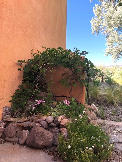 Located in the small, quiet community of Cochiti Lake, this townhouse is near the end of a cul-de-sac, with open space behind and beautiful views of the surrounding landscape. The two-car garage (where the laundry is) fronts on Tahawash, and you enter the home through a pedestrian gate by the garage or a door from the garage to the sidewalk. A sidewalk leads down to a small porch and landscaped sitting area outside the front door. Step into a foyer with one bedroom and a bathroom to the left. A couple of steps down take you to the kitchen and living area, and another bedroom and bathroom. The living room has high ceilings and an exit to a back semi-enclosed patio with views of open space. The community of Cochiti Lake is small but about halfway between Santa Fe and Albuquerque. It has its own library and golf course, and Cochiti Lake is less than a mile from the community.