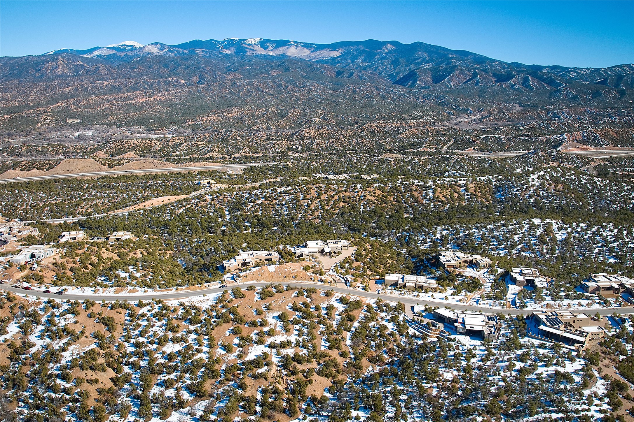 Monte Sereno 3 bedroom 3.5 bath soft Contemporary home on almost 1.5 acres with magnificent Sangre de Cristomountain views from all living areas (with dedicated open space to the immediate east of the home). Built in 2022 by Woods/Design Builder. White oak floors and plaster walls and ceilings throughout. Open concept living/kitchen for ease of entertaining and living. Grand living area has high ceilings with broad vigas, wood burning fireplace and built in shelves and cabinetry. Generous gourmet kitchen is appointed with Taj Mahal countertops, an oversized island, Wolf wall oven, range and microwave, SubZero fridge, Cove dishwasher, mini beverage fridge, and 2 handcrafted Shaws farmhouse sinks. Adjacent to the kitchen is a hearth/breakfast room with gas kiva fireplace and large view windows with auto window shades. Split bedroom plan. Primary suite has built in shelving, gas fireplace, French doors to private patio with mountain views and ensuite bath with large walk-in closet with built-ins and island with drawers. Both guest bedrooms are ensuite baths. Outdoor areas include a front, gated portal with wood burning, lighted, stone fireplace and a rear portal with wood burning fireplace and built in Wolf grill. Monte Sereno is a unique master-planned community situated in the pion and juniper studded hills, with miles of private walking trails - located between the Santa Fe Opera and the historic Santa Fe Plaza.