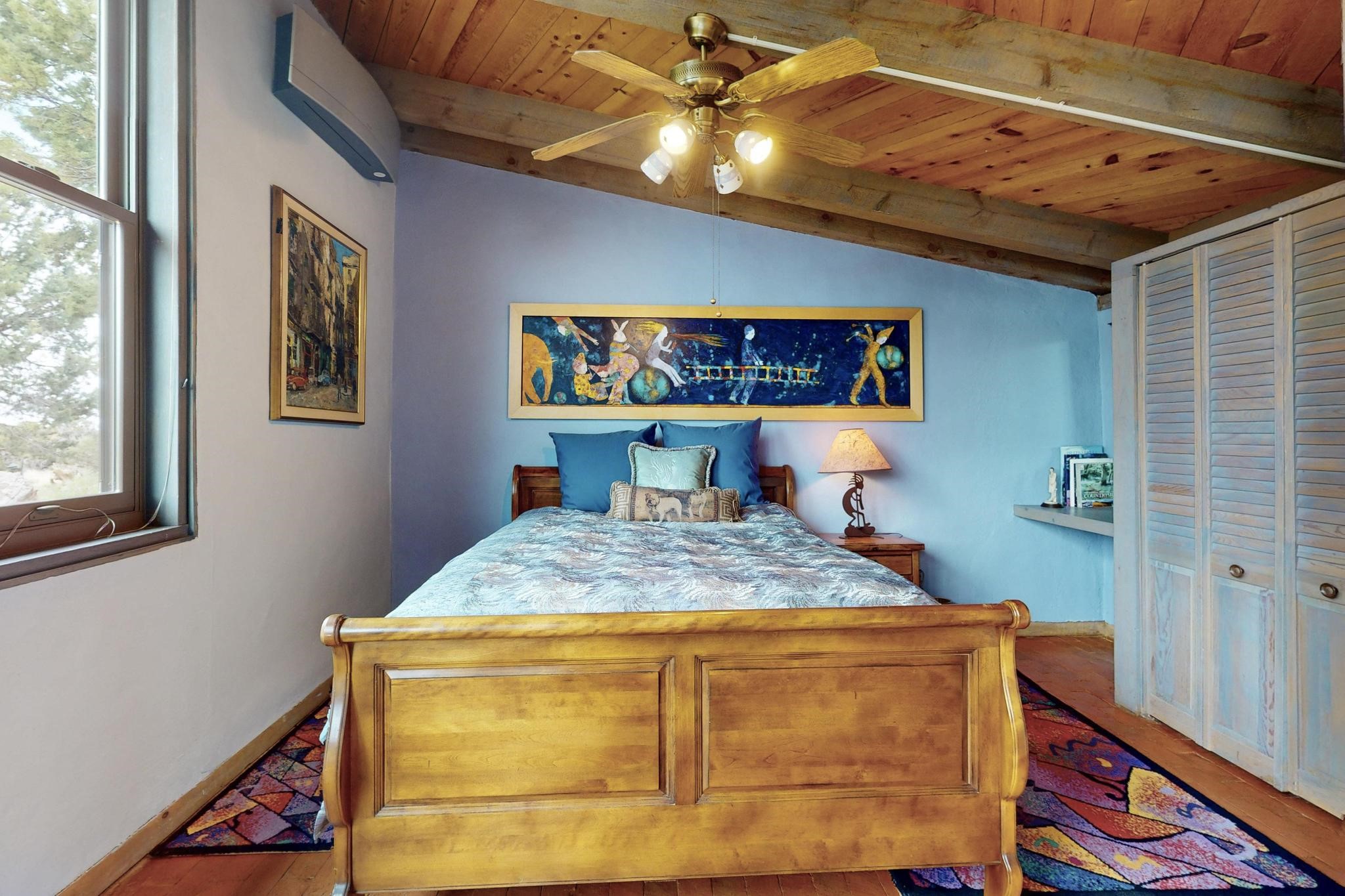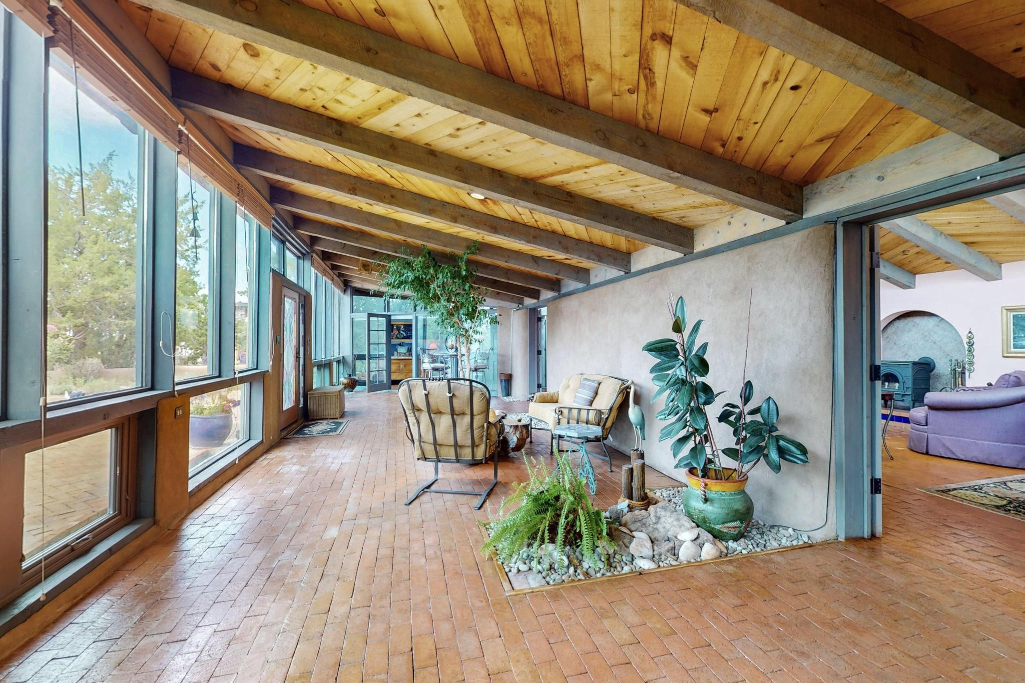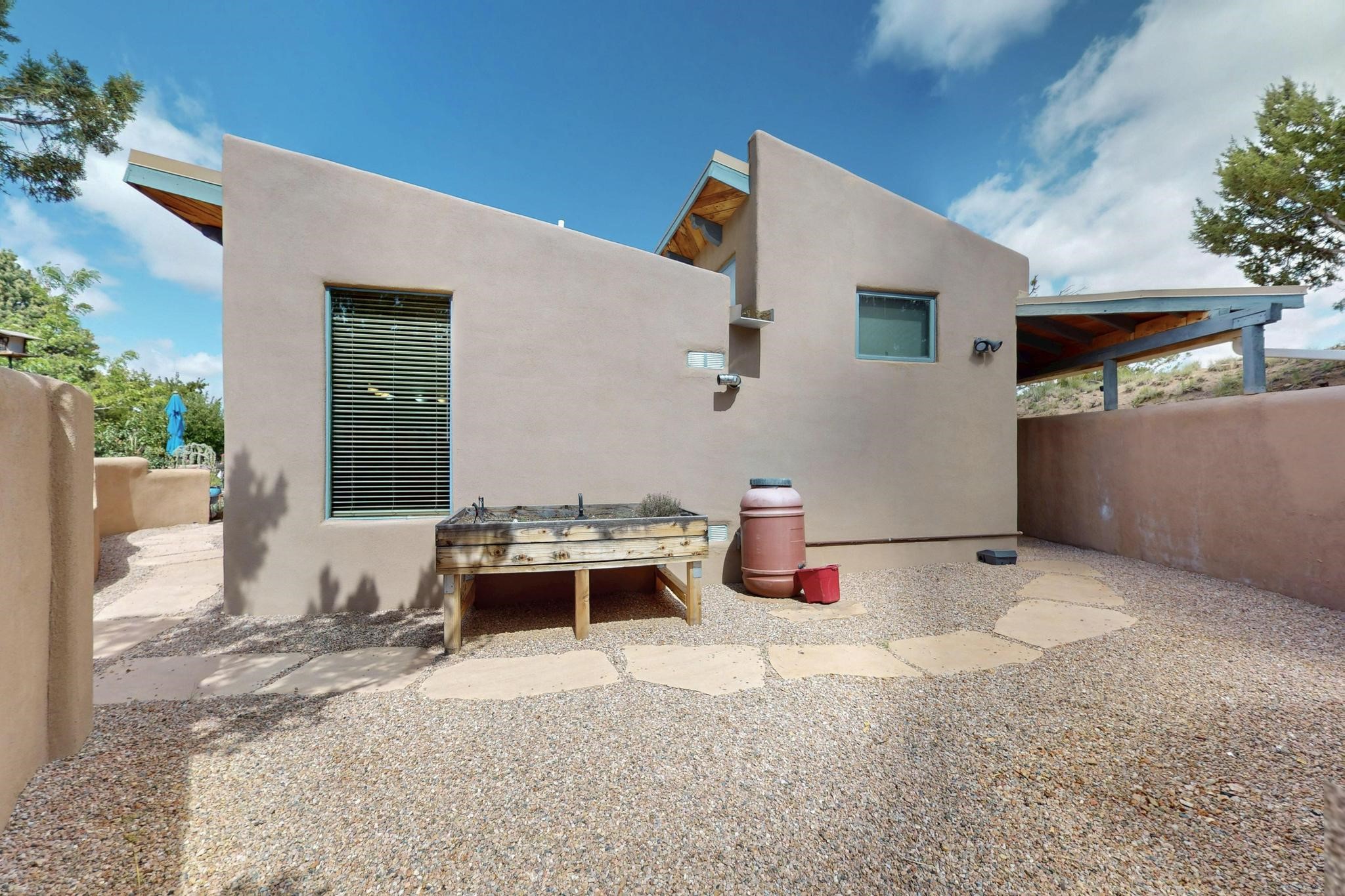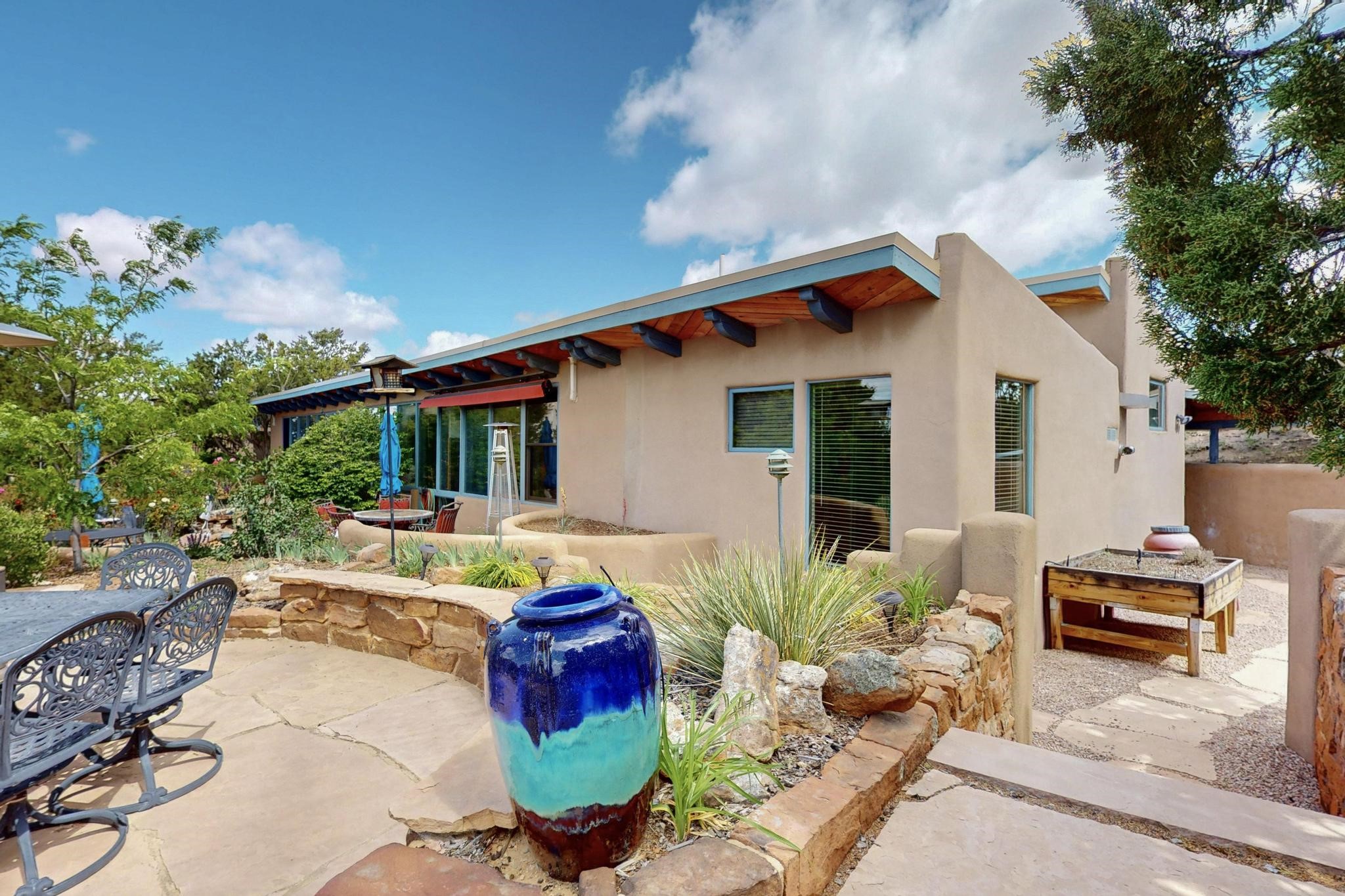 First time on the market! One-of-a-kind pitched roof propanel passive solar beauty with Old World Charm. Like a Swiss Chalet with a dash of Mid-Century Modern. A rarity in Eldorado! Set back off the road on a circular drive, with nary a house in sight, is this gorgeously maintained and landscaped 1.50 acre lot replete with a bubbling Koi and goldfish pond. A multitude of exterior dining and entertaining areas. Meander through the totally dripped irrigated garden which leads the way into a sun drenched, and massive, brick floor Atrium. In fact, the whole house has brick floors and Post and Beam high ceilings with French doors galore! Oversized Living/Dining room with floor to ceiling windows and remote controlled blinds. The wood stove has a catalytic converter which keeps the room toasty through those long winter nights with an 75% to 81% efficiency rating. Split bedroom floor plan. A fabulous Master with a Vermont casting wood stove, en-suite bath with an on-demand gas water heater and a remote controlled awning to keep the bright morning light at bay. Ginormous cedar closet in dressing room/walk-in closet which is the size of a NYC studio apartment! Both the Living Room and Bedrooms have mini-splits and ceiling fans. European-style kitchen has a warming drawer, open shelving and tons of cupboards. A wonderful long pantry with a utility area and space for all your pots, pans, spices and sundries. Outside the kitchen door is a dedicated gas connection for the BBQ. A long and wide two car detached tandem garage has tons of storage and a climate controlled wine room suitable for hundreds of bottles. One of a kind unique beauty.There's nothing like it!