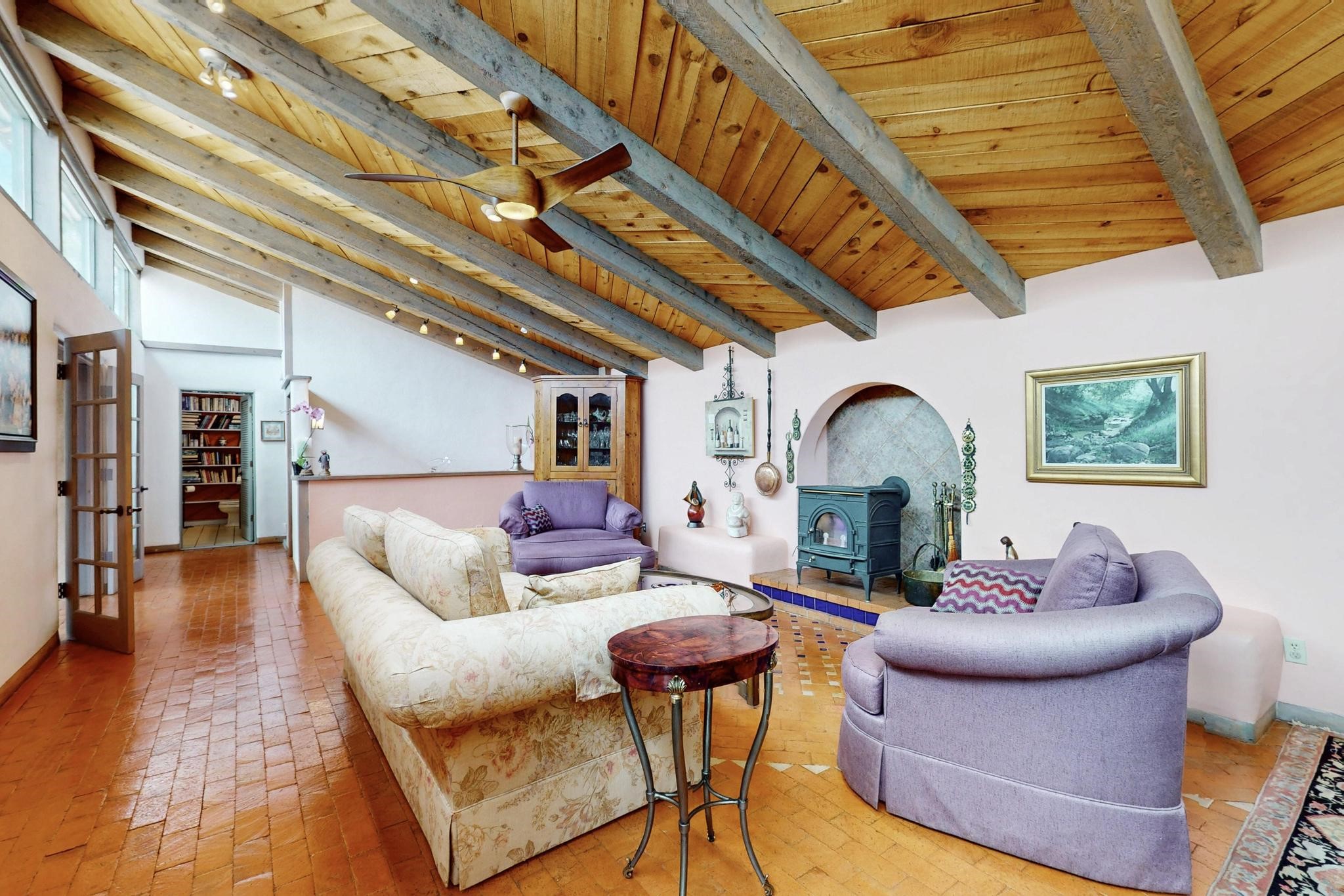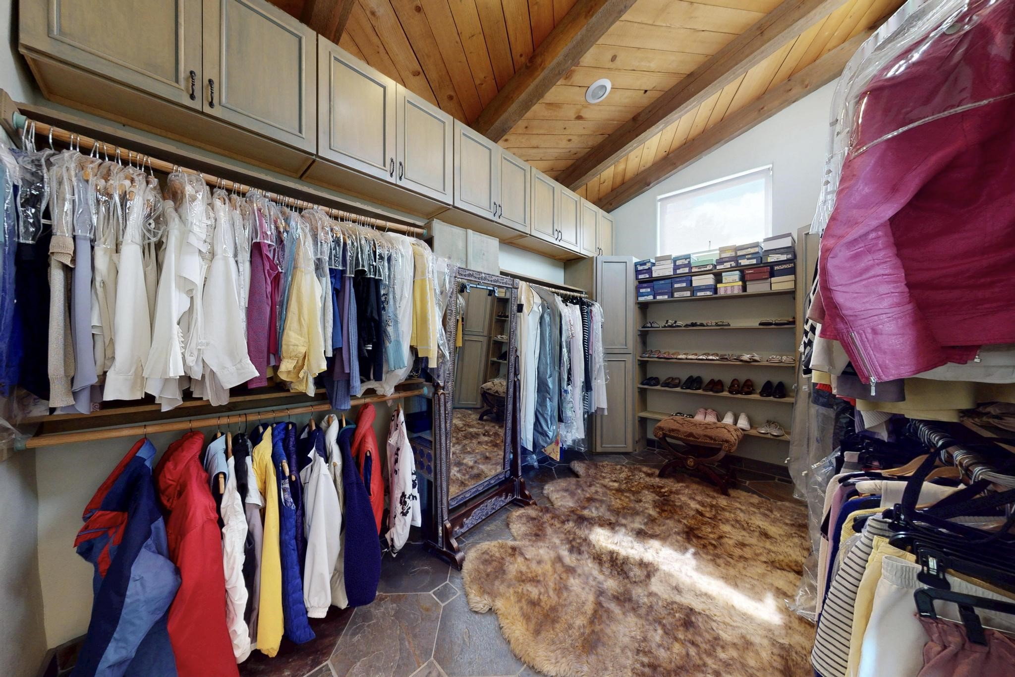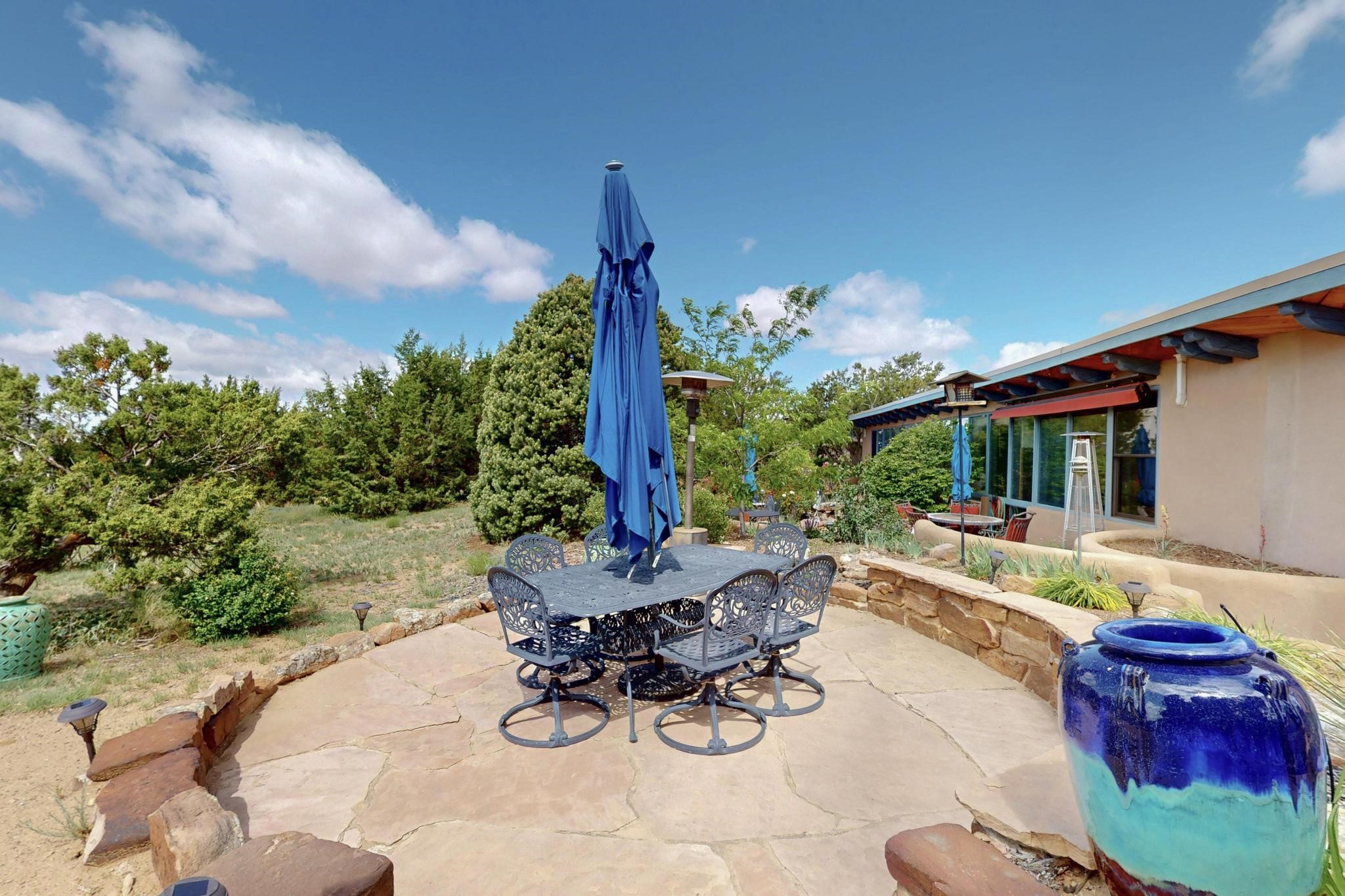 First time on the market! One-of-a-kind pitched roof propanel passive solar beauty with Old World Charm. Like a Swiss Chalet with a dash of Mid-Century Modern. A rarity in Eldorado! Set back off the road on a circular drive, with nary a house in sight, is this gorgeously maintained and landscaped 1.50 acre lot replete with a bubbling Koi and goldfish pond. A multitude of exterior dining and entertaining areas. Meander through the totally dripped irrigated garden which leads the way into a sun drenched, and massive, brick floor Atrium. In fact, the whole house has brick floors and Post and Beam high ceilings with French doors galore! Oversized Living/Dining room with floor to ceiling windows and remote controlled blinds. The wood stove has a catalytic converter which keeps the room toasty through those long winter nights with an 75% to 81% efficiency rating. Split bedroom floor plan. A fabulous Master with a Vermont casting wood stove, en-suite bath with an on-demand gas water heater and a remote controlled awning to keep the bright morning light at bay. Ginormous cedar closet in dressing room/walk-in closet which is the size of a NYC studio apartment! Both the Living Room and Bedrooms have mini-splits and ceiling fans. European-style kitchen has a warming drawer, open shelving and tons of cupboards. A wonderful long pantry with a utility area and space for all your pots, pans, spices and sundries. Outside the kitchen door is a dedicated gas connection for the BBQ. A long and wide two car detached tandem garage has tons of storage and a climate controlled wine room suitable for hundreds of bottles. One of a kind unique beauty.There's nothing like it!