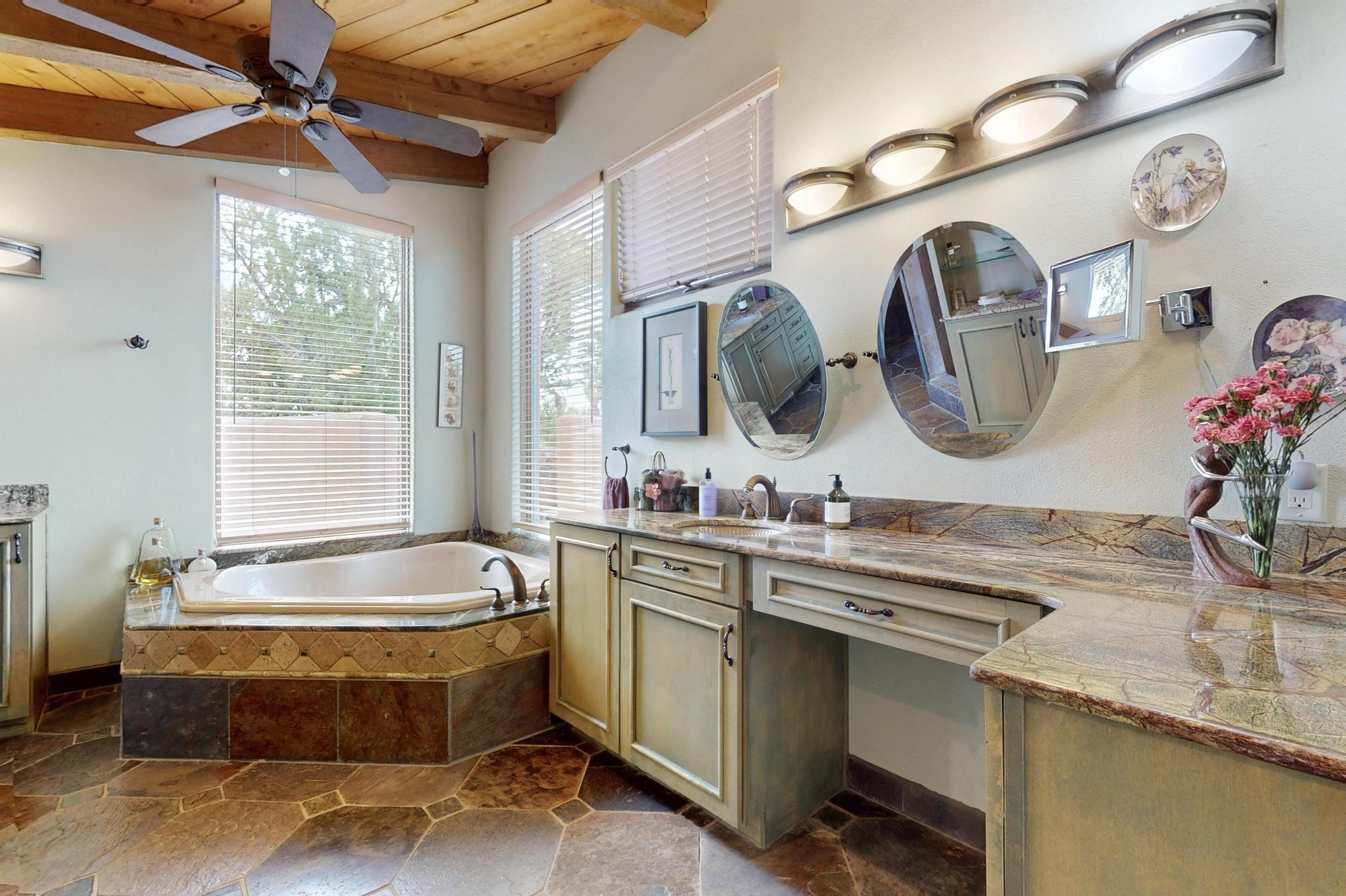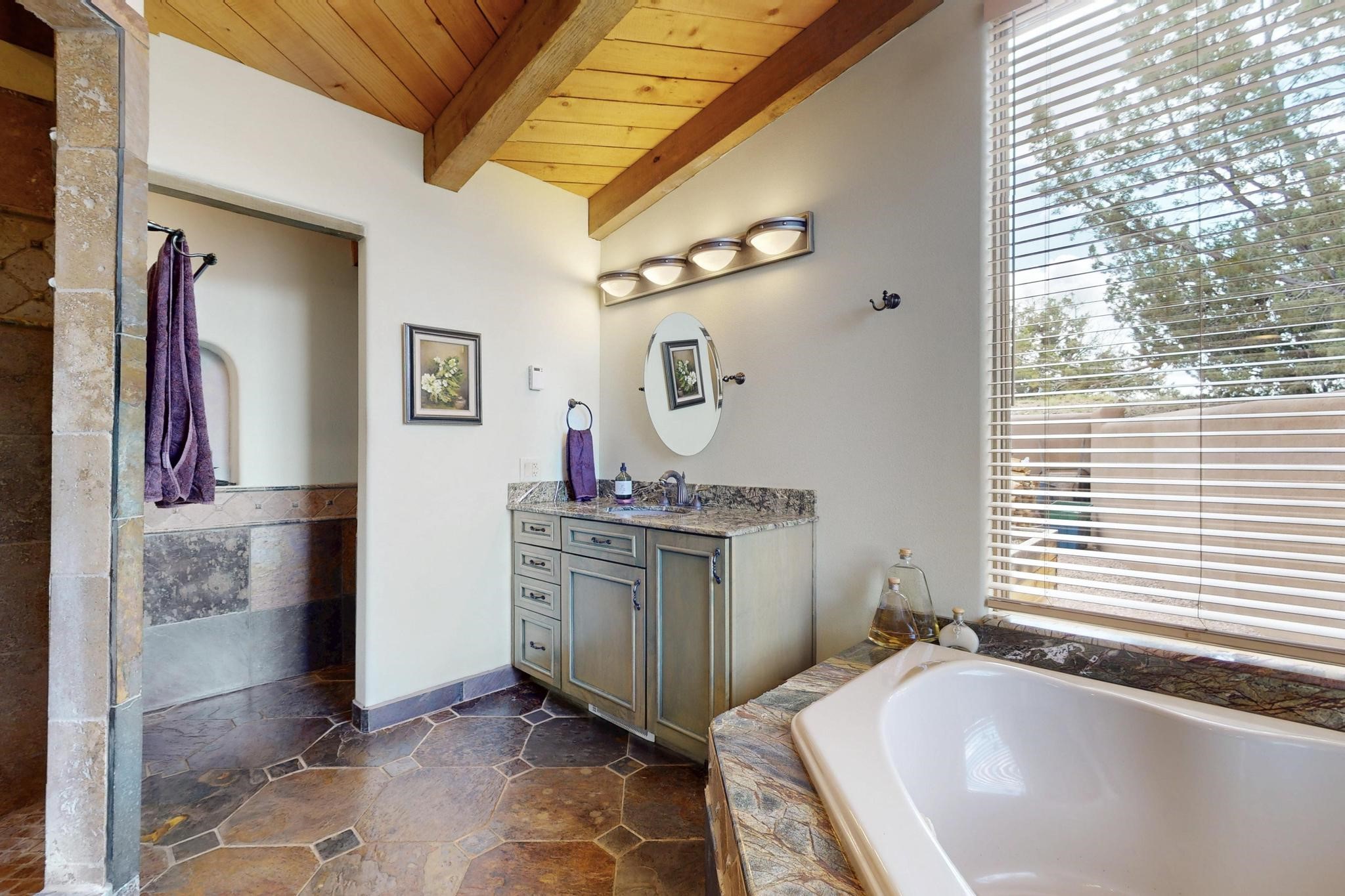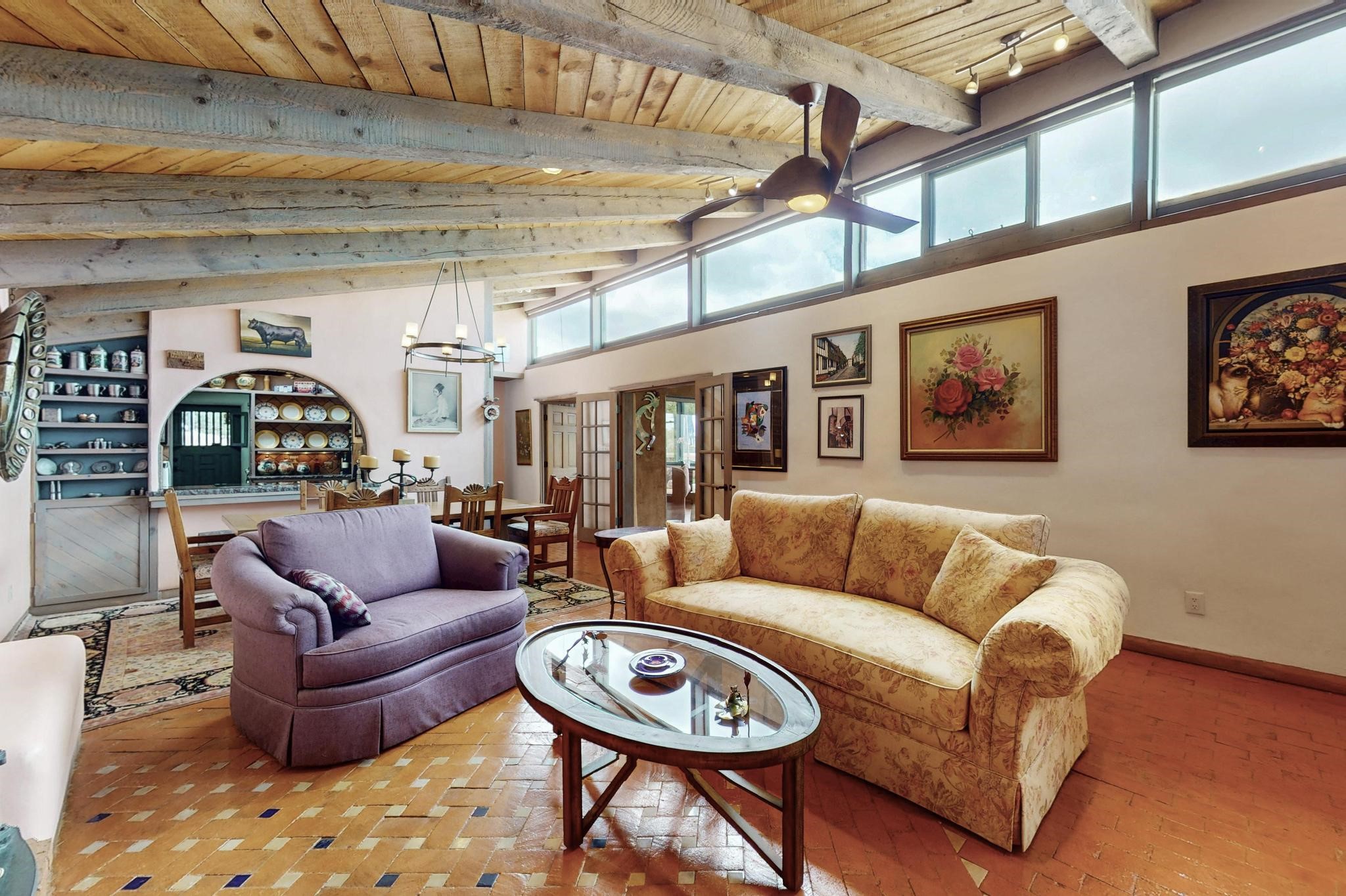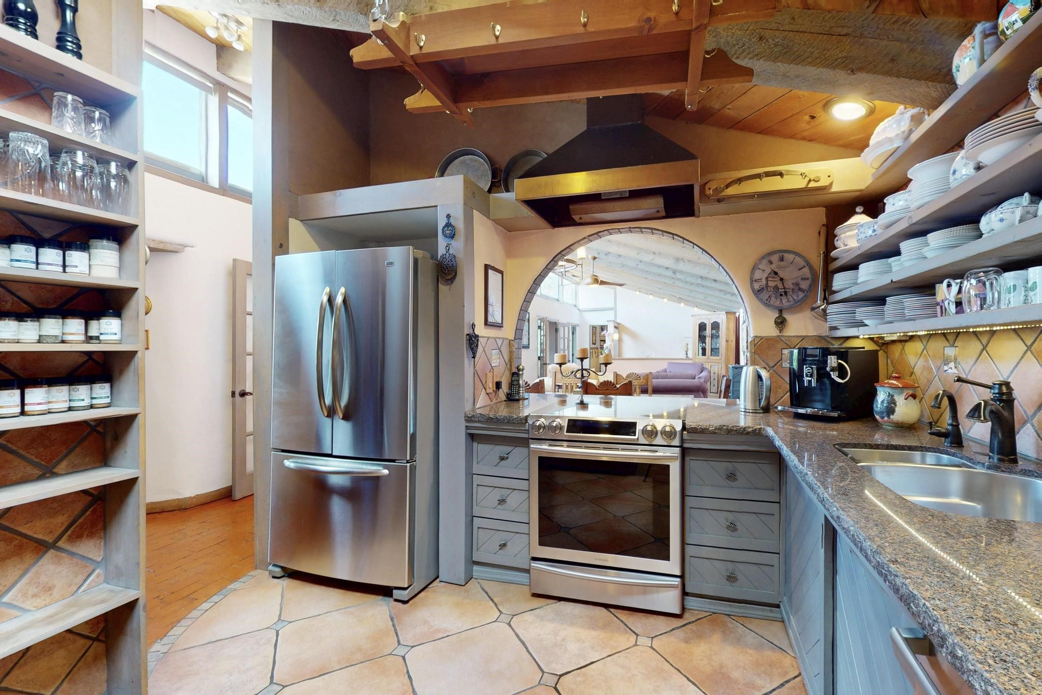 First time on the market! One-of-a-kind pitched roof propanel passive solar beauty with Old World Charm. Like a Swiss Chalet with a dash of Mid-Century Modern. A rarity in Eldorado! Set back off the road on a circular drive, with nary a house in sight, is this gorgeously maintained and landscaped 1.50 acre lot replete with a bubbling Koi and goldfish pond. A multitude of exterior dining and entertaining areas. Meander through the totally dripped irrigated garden which leads the way into a sun drenched, and massive, brick floor Atrium. In fact, the whole house has brick floors and Post and Beam high ceilings with French doors galore! Oversized Living/Dining room with floor to ceiling windows and remote controlled blinds. The wood stove has a catalytic converter which keeps the room toasty through those long winter nights with an 75% to 81% efficiency rating. Split bedroom floor plan. A fabulous Master with a Vermont casting wood stove, en-suite bath with an on-demand gas water heater and a remote controlled awning to keep the bright morning light at bay. Ginormous cedar closet in dressing room/walk-in closet which is the size of a NYC studio apartment! Both the Living Room and Bedrooms have mini-splits and ceiling fans. European-style kitchen has a warming drawer, open shelving and tons of cupboards. A wonderful long pantry with a utility area and space for all your pots, pans, spices and sundries. Outside the kitchen door is a dedicated gas connection for the BBQ. A long and wide two car detached tandem garage has tons of storage and a climate controlled wine room suitable for hundreds of bottles. One of a kind unique beauty.There's nothing like it!