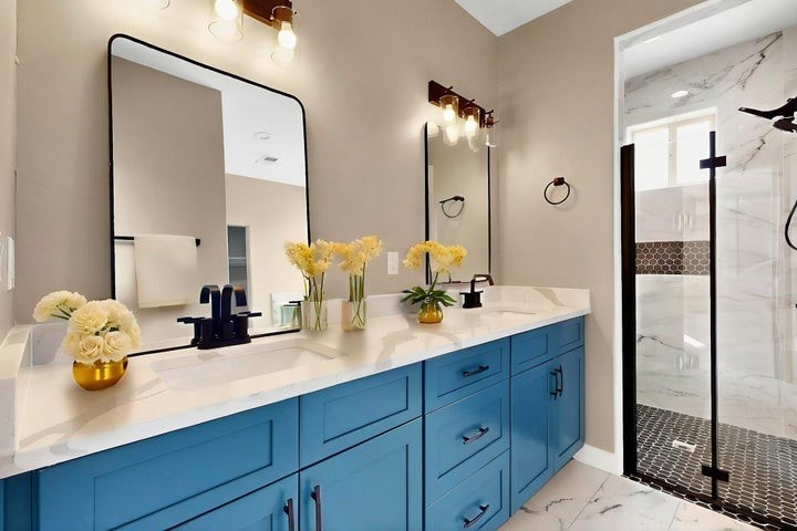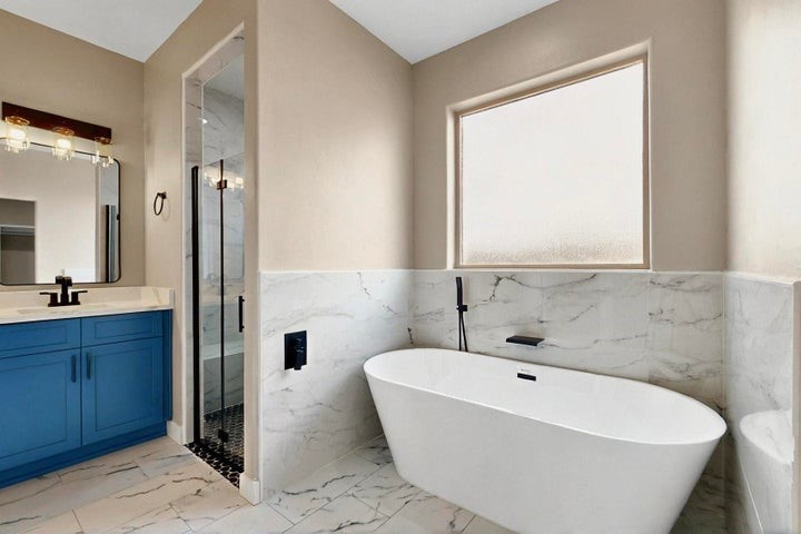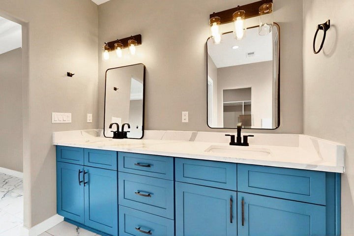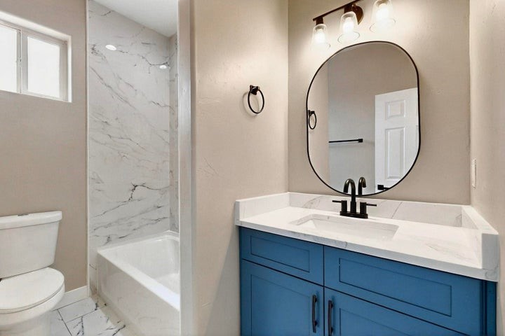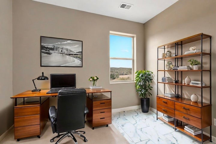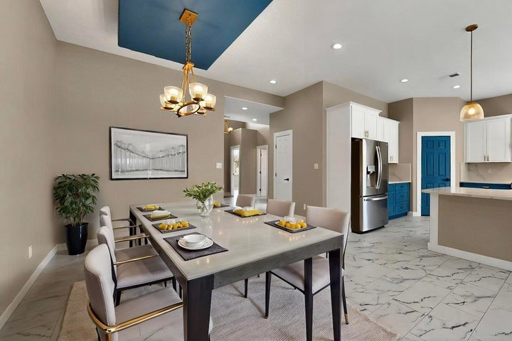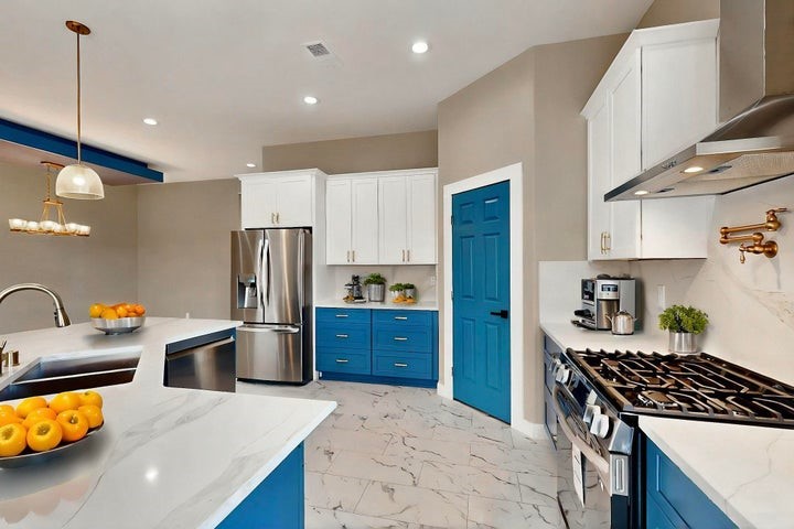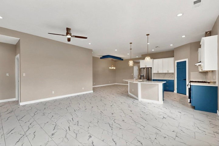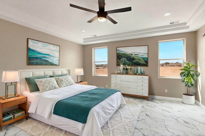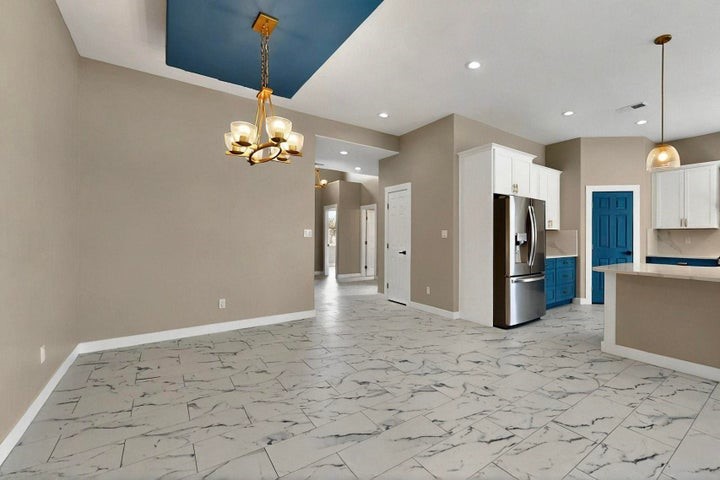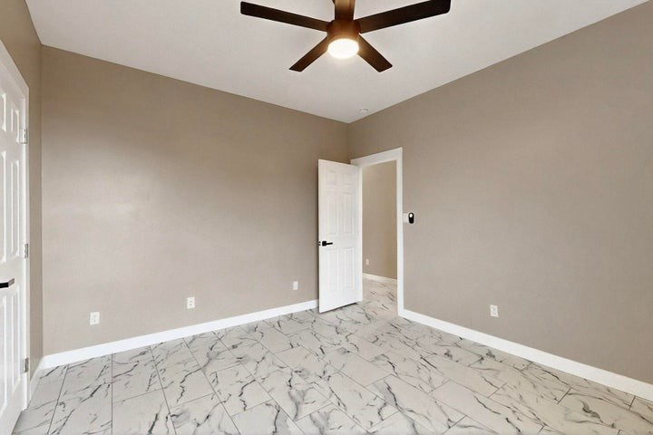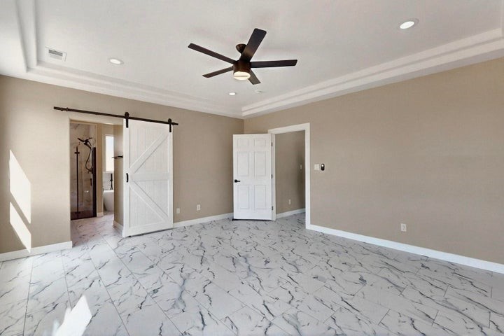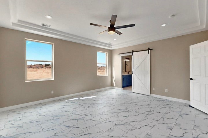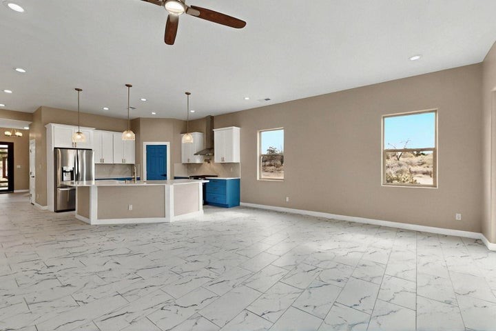 NEW CONSTRUCTION in the Southeast of Rio Rancho. Very sought after location sitting on a sizable lot about a .4 of an acre with backyard access. No HOA. Luxury finishes with custom cabinetry with crown molding, quartz countertops, gold finishes, and new stainless steel appliances that come with the house. This home features a Black Metal Roof and TPO. It has a combo unit with Refrigerated air, a covered patio, and landscaping around the house. Come see this house soon!