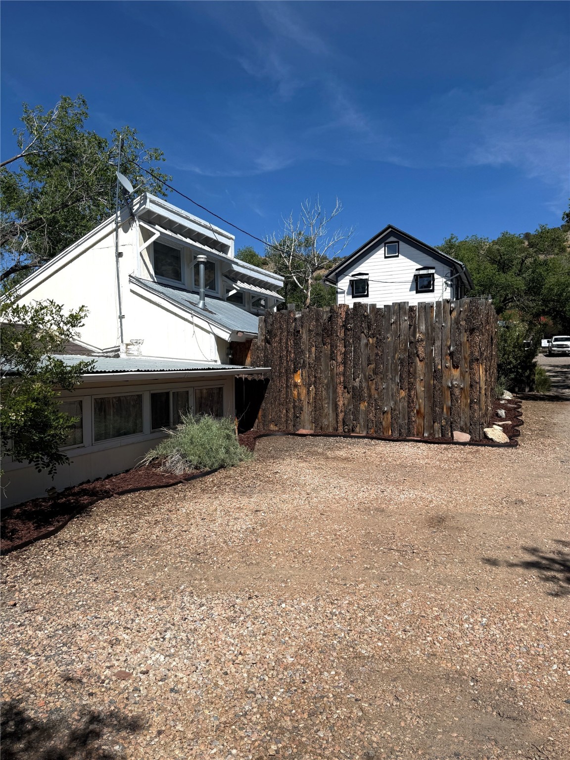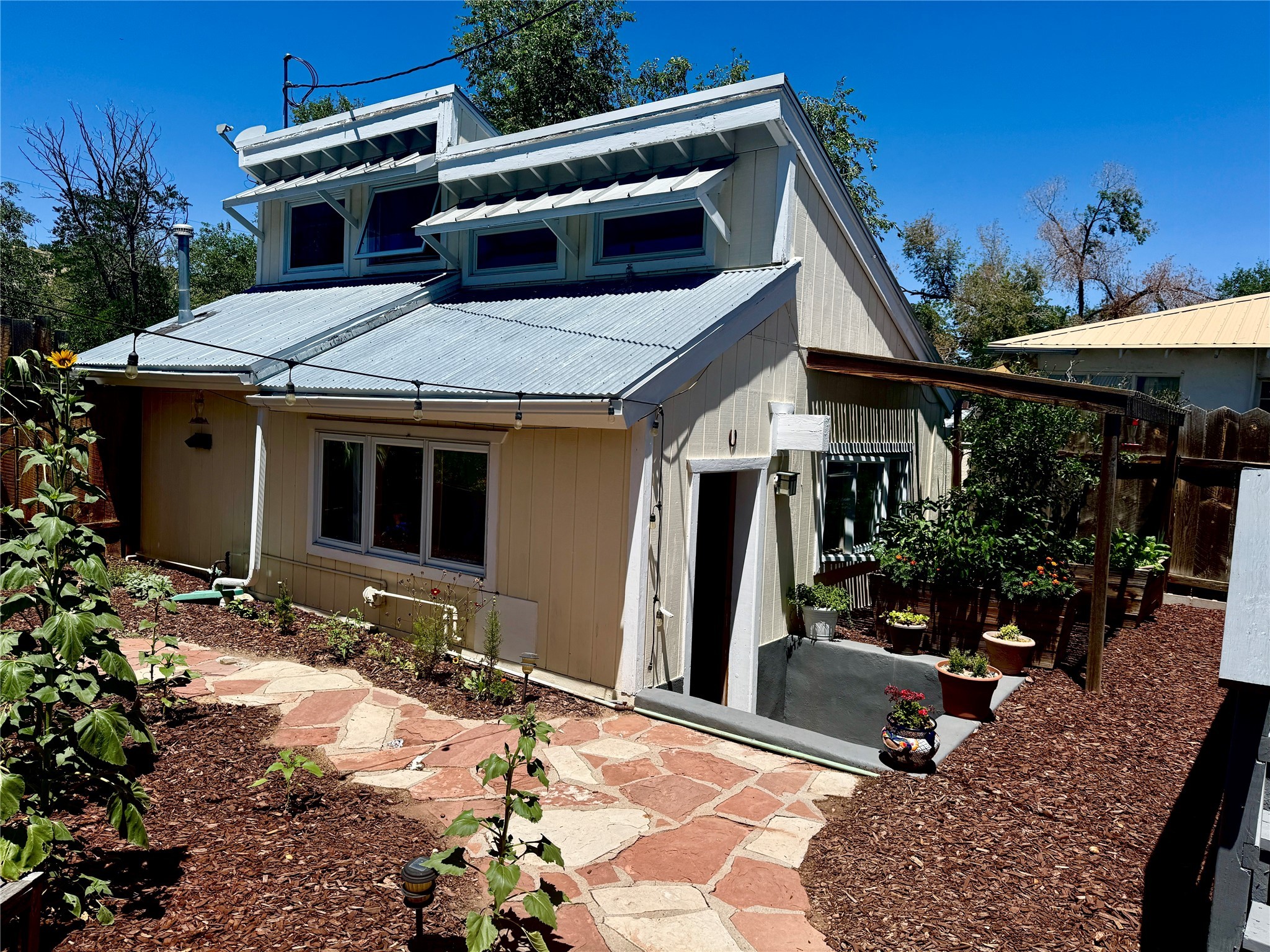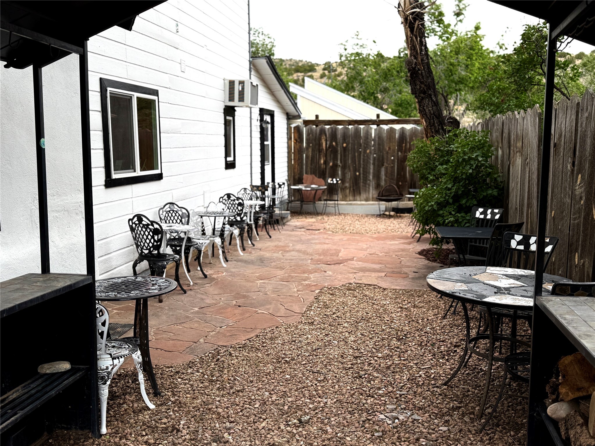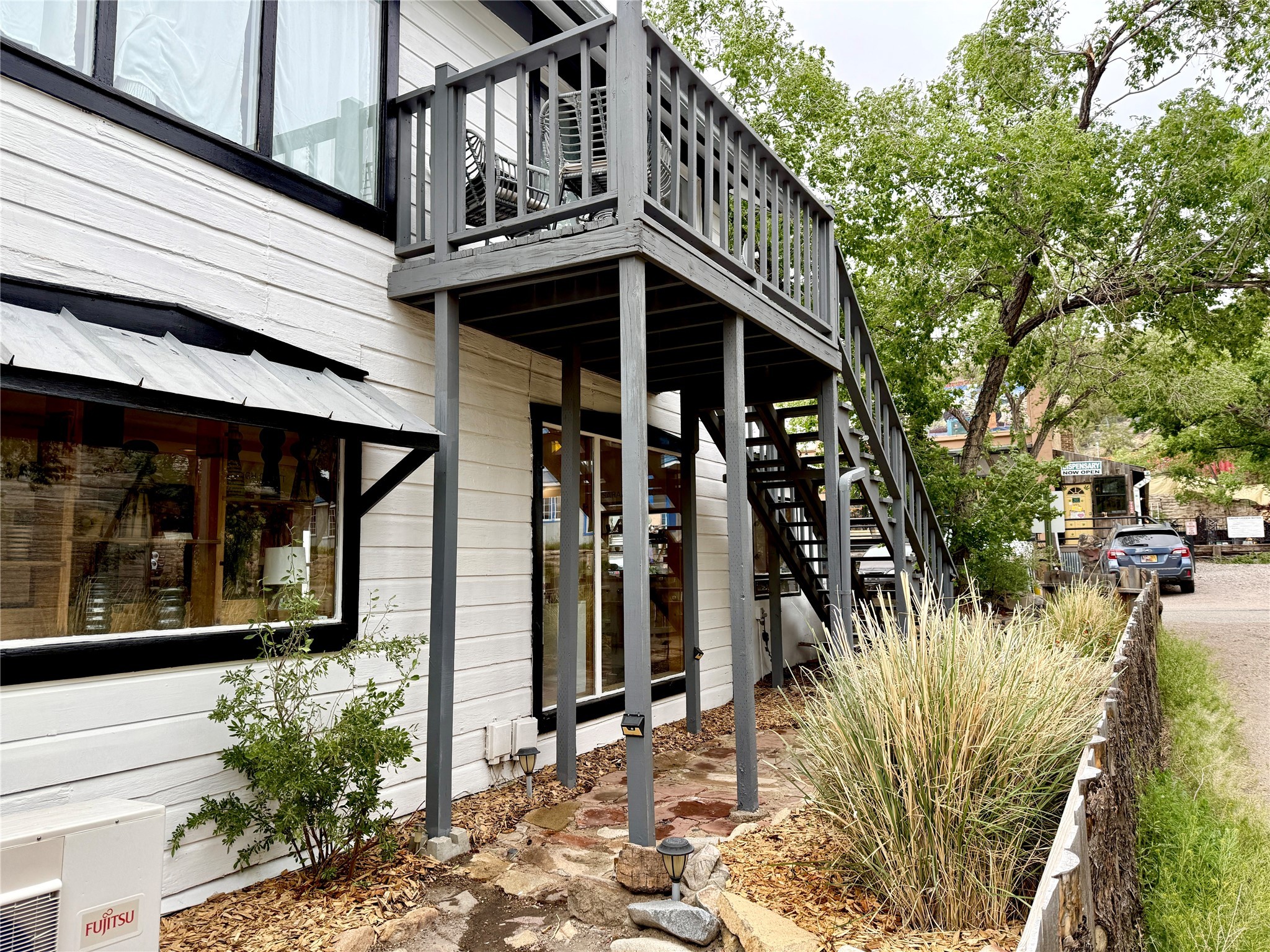 Multi-faceted commercial-residential property, turnkey and ready to go with rental income. Currently operating as a contemporary art gallery, an artist studio, an Airbnb, and a long-term home rental, this property is a gem in the artist community of Madrid. Located right in the heart of town, but with private courtyard areas, this unique plot offers beauty and reprieve while not sacrificing prime location. Property features: Main gallery/commercial floor with adjoining artist studio, kitchen, and bath, second level, private-entry loft apartment currently operating as a licensed Airbnb, and a private, free-standing 3bd/1ba home. Parking for 3 cars. All spaces recently renovated, with excellent natural lighting, this property shines as a bright and fresh investment, business opportunity, residential home, or all of the above. Ideal for an artist or entrepreneur. Option to purchase the existing business, and to keep the long-term rental tenant. Additional option to purchase all furniture/items in Airbnb to enable continuous business operation upon sale. Details to be discussed with the current owner and business operator. Recent improvements include new septic, new electrical panel, mini-split AC/heat units, exterior and interior paint job, lighting upgrades, exterior power-washing, gutter cleaning, professional window cleaning, and landscape upgrades. The property features two large water tanks, one for rainwater catchment, and other for freshwater delivery. Membership to Madrid Community Water will also transfer with the sale.