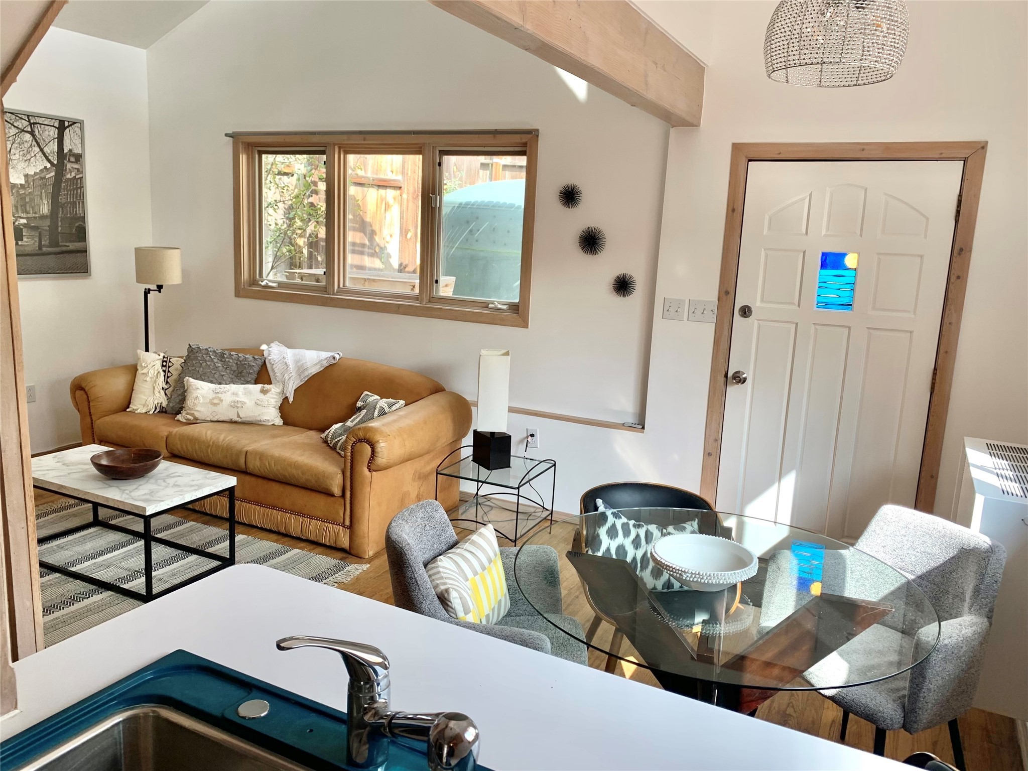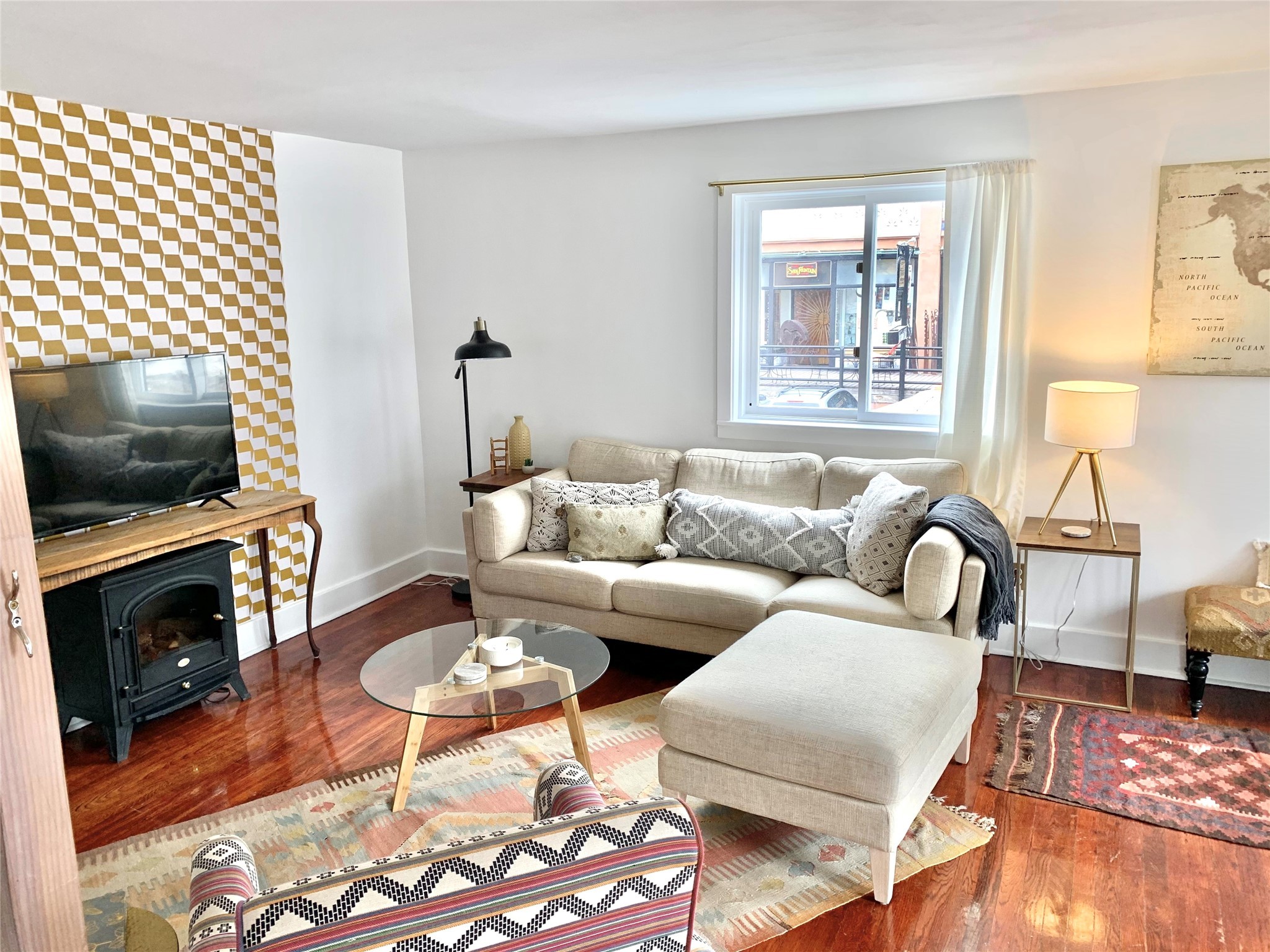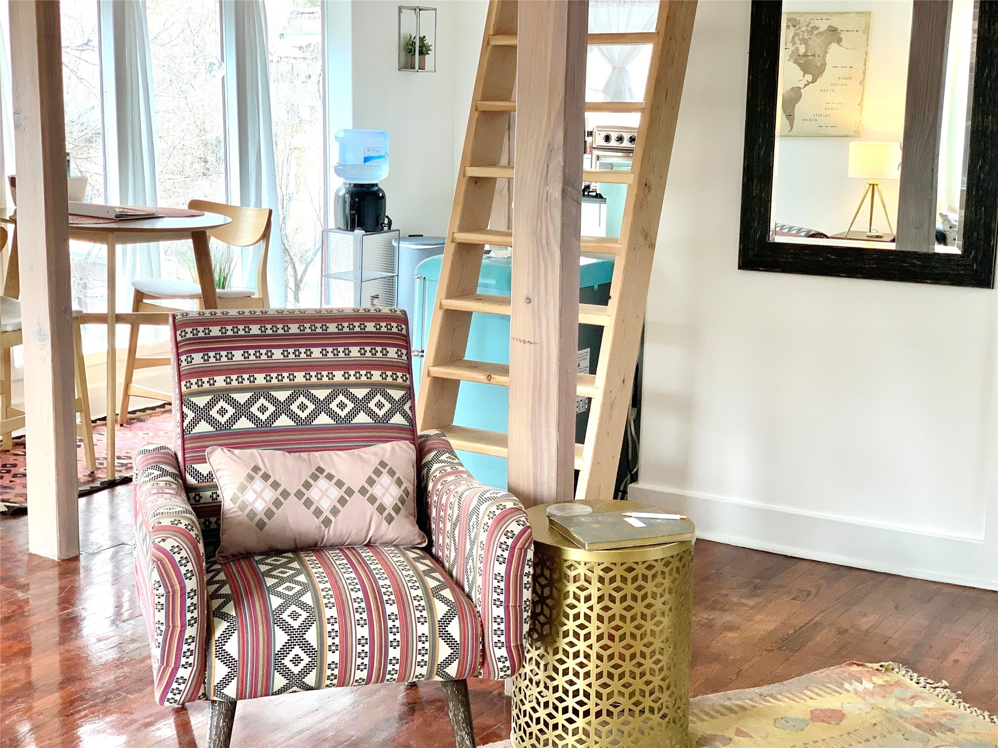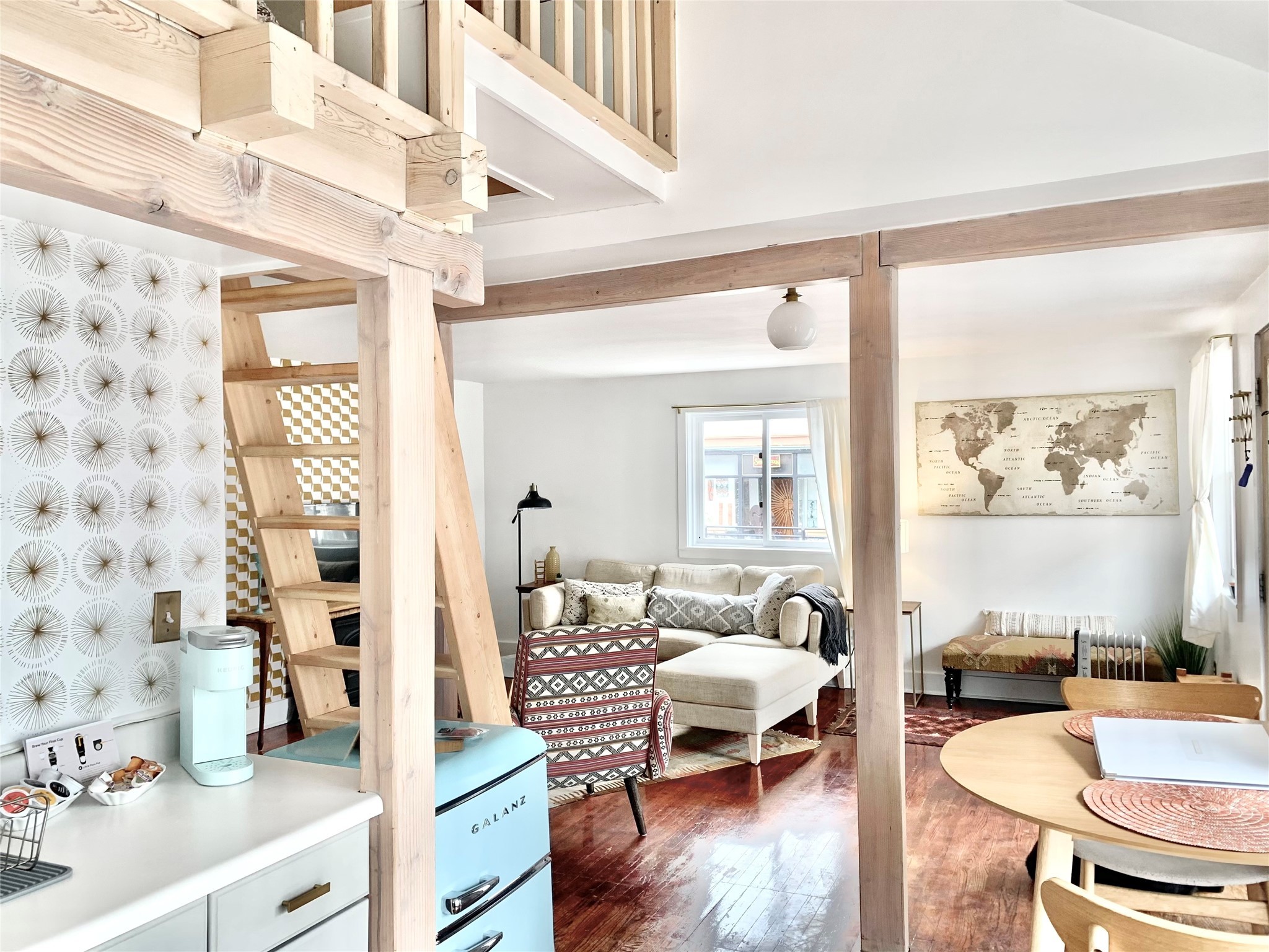 Multi-faceted commercial-residential property, turnkey and ready to go with rental income. Currently operating as a contemporary art gallery, an artist studio, an Airbnb, and a long-term home rental, this property is a gem in the artist community of Madrid. Located right in the heart of town, but with private courtyard areas, this unique plot offers beauty and reprieve while not sacrificing prime location. Property features: Main gallery/commercial floor with adjoining artist studio, kitchen, and bath, second level, private-entry loft apartment currently operating as a licensed Airbnb, and a private, free-standing 3bd/1ba home. Parking for 3 cars. All spaces recently renovated, with excellent natural lighting, this property shines as a bright and fresh investment, business opportunity, residential home, or all of the above. Ideal for an artist or entrepreneur. Option to purchase the existing business, and to keep the long-term rental tenant. Additional option to purchase all furniture/items in Airbnb to enable continuous business operation upon sale. Details to be discussed with the current owner and business operator. Recent improvements include new septic, new electrical panel, mini-split AC/heat units, exterior and interior paint job, lighting upgrades, exterior power-washing, gutter cleaning, professional window cleaning, and landscape upgrades. The property features two large water tanks, one for rainwater catchment, and other for freshwater delivery. Membership to Madrid Community Water will also transfer with the sale.