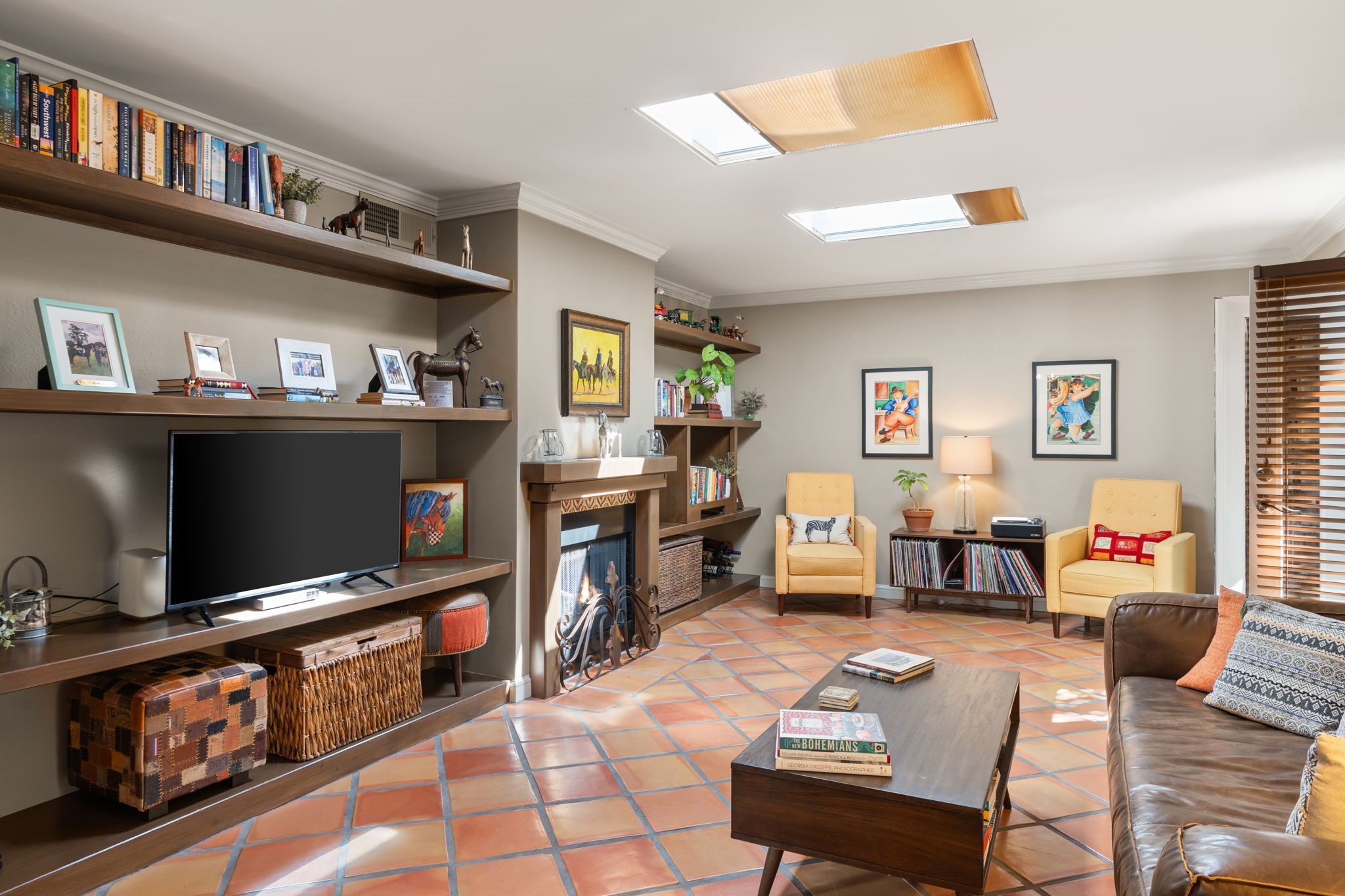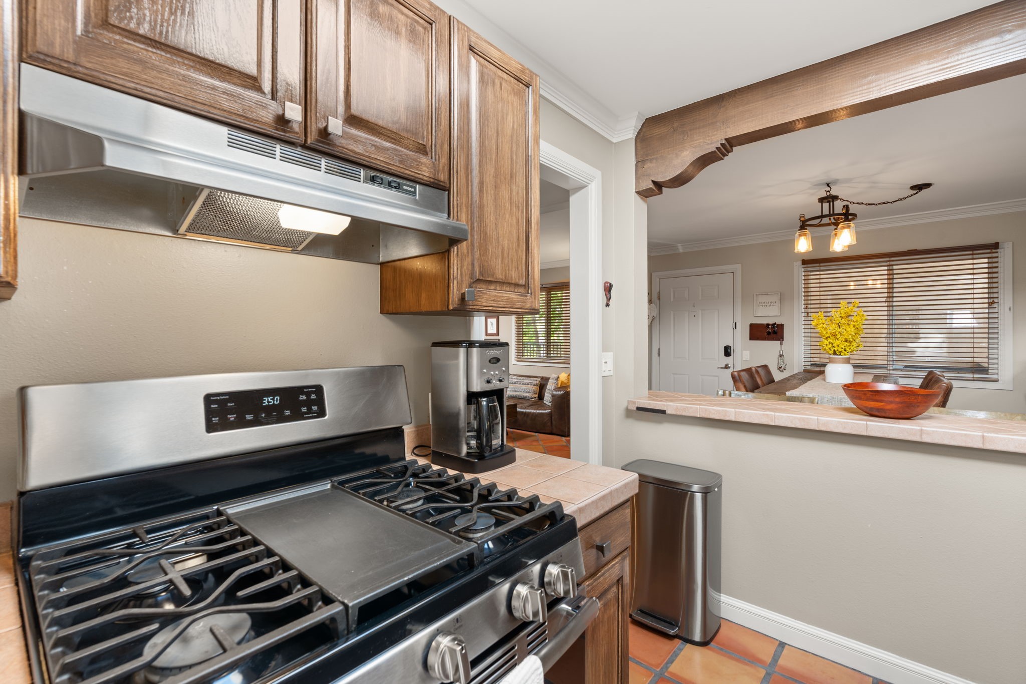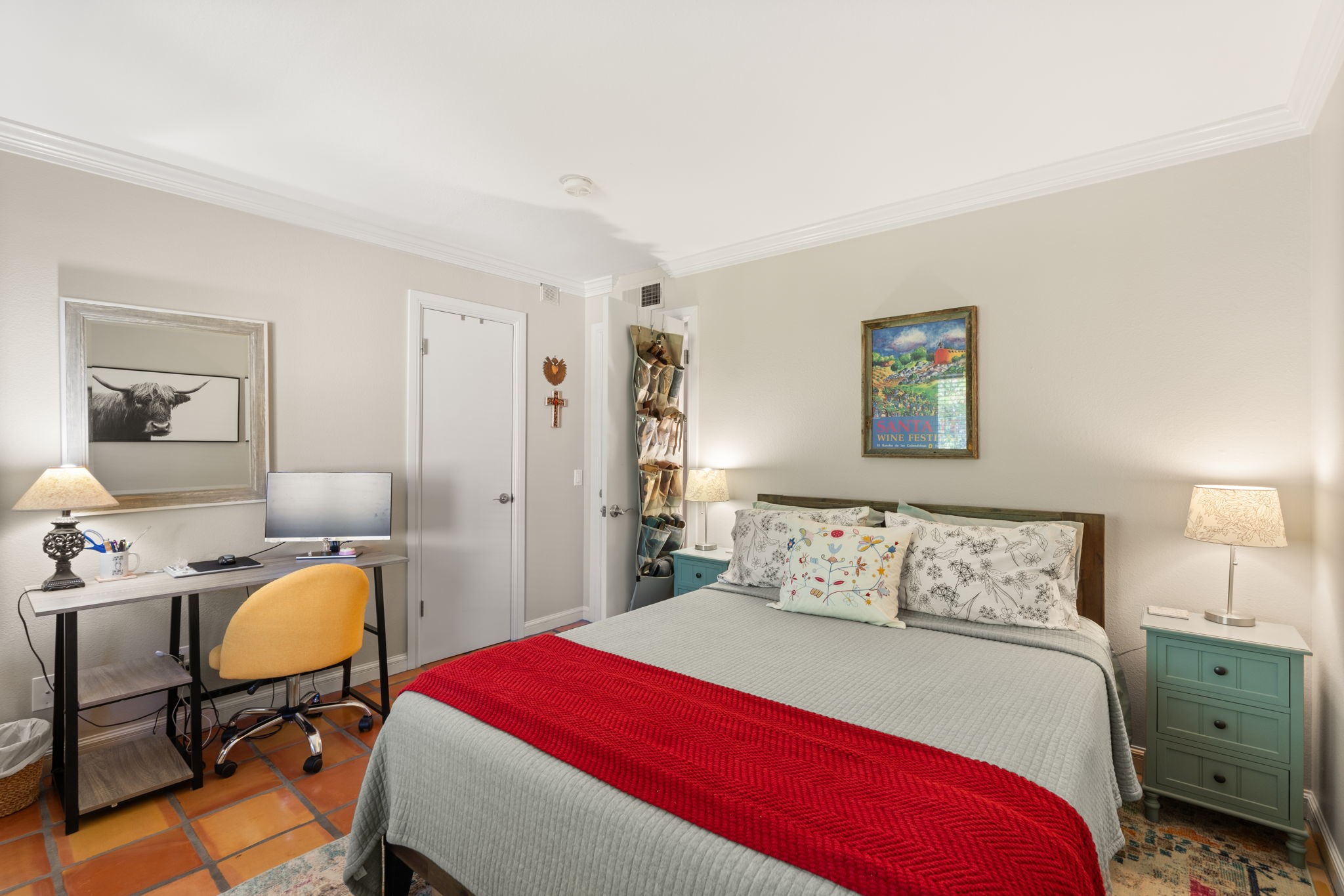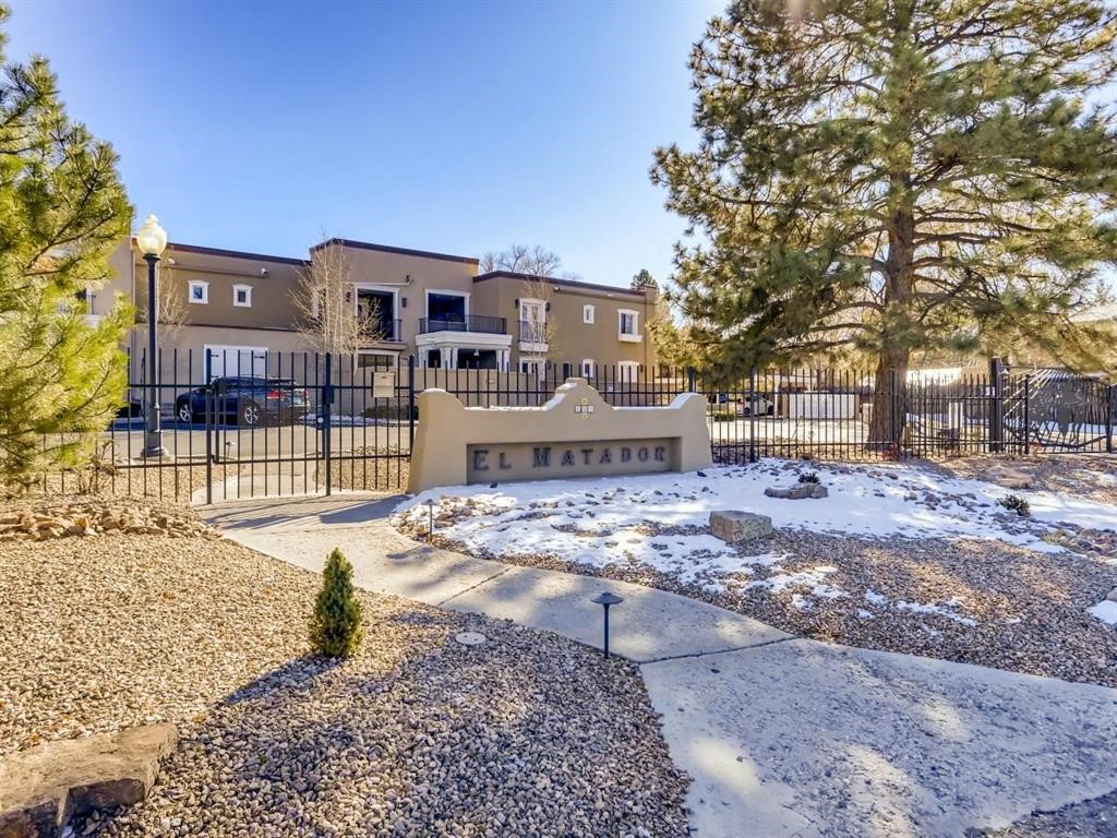 Step into the charm of Santa Fe living just 15 minutes on foot from the Historic Plaza. This beautifully refreshed upstairs condo offers a quiet retreat in a secure gated community, tucked away in a serene northeast corner overlooking the courtyard. Inside, high ceilings, skylights with custom sun blinds, and territorial-style windows bathe the open floor plan in natural light. The 2-bedroom, 1-bath home blends comfort and style with crown molding throughout, earthy two-tone colors, and a touch of New Orleans flair from the primary suite's French doors. Both bedrooms include generous walk-in closets, while the updated kitchen features stainless steel appliances and a newer sink -- ready for your culinary touch. Stay comfortable year-round with refrigerated air, and enjoy the convenience of an in-home stacked washer/dryer. The home is freshly painted, professionally cleaned, and move-in ready -- a blank canvas for your Santa Fe vision. Relax on your private outdoor space, or take advantage of the community's well-appointed amenities. Parking includes one covered, assigned space plus an additional unassigned spot. Whether you're looking for a full-time residence or a lock-and-leave pied--terre, this condo is the perfect balance of privacy, security, and downtown access. Call me Today to schedule your private showing -- discover how this home can fit your lifestyle in the heart of Santa Fe.