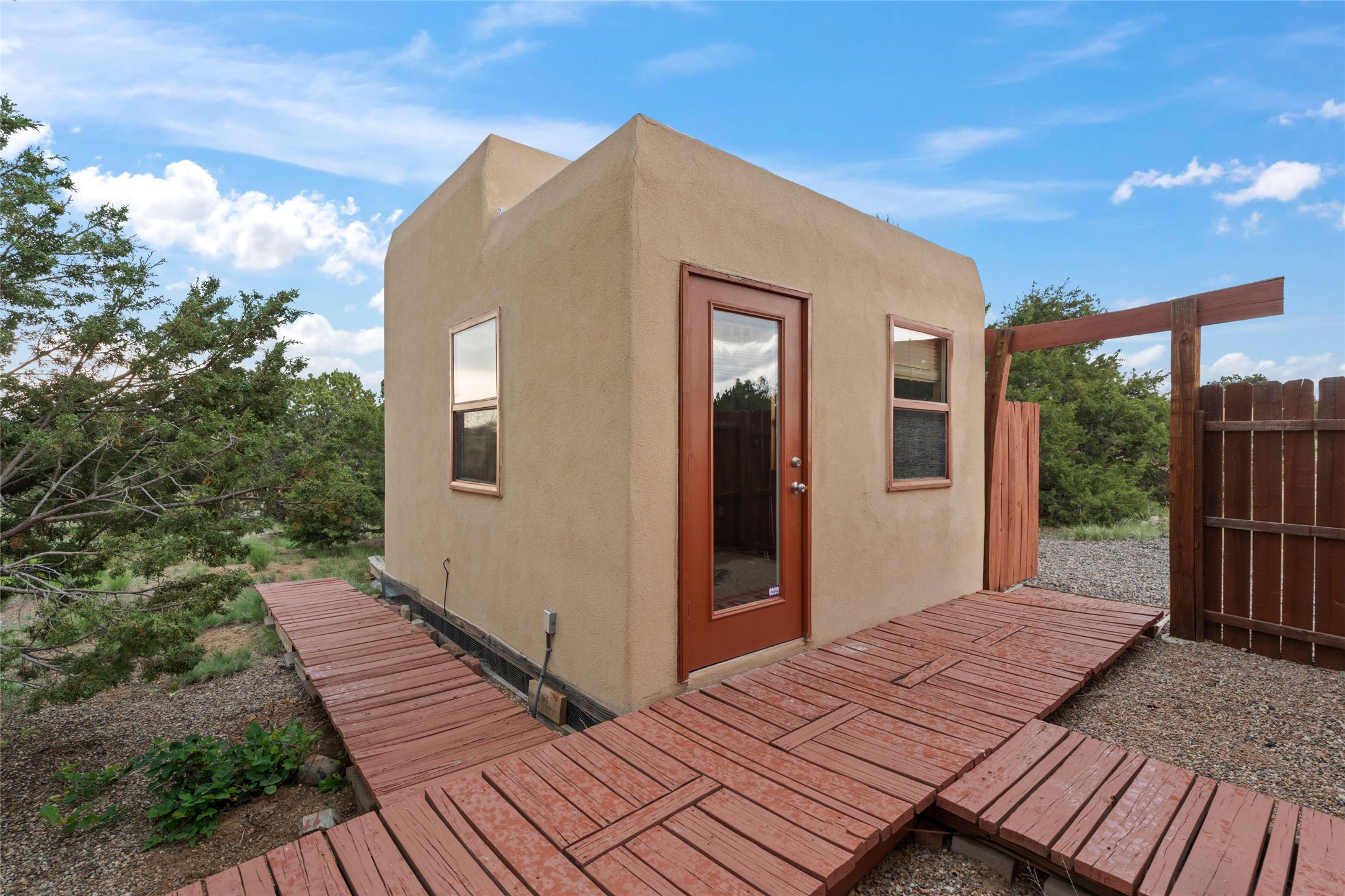 Sweet single-level Eldorado property with wonderful mountain views located on a greenbelt and a paved road. Large accessory building used for guests - portable heaters and not counted in square footage. Recent roof maintanance, some windows replaced and new water heater. Radiant heat in den and forced air in the rest of the house. Lot corners are flagged.