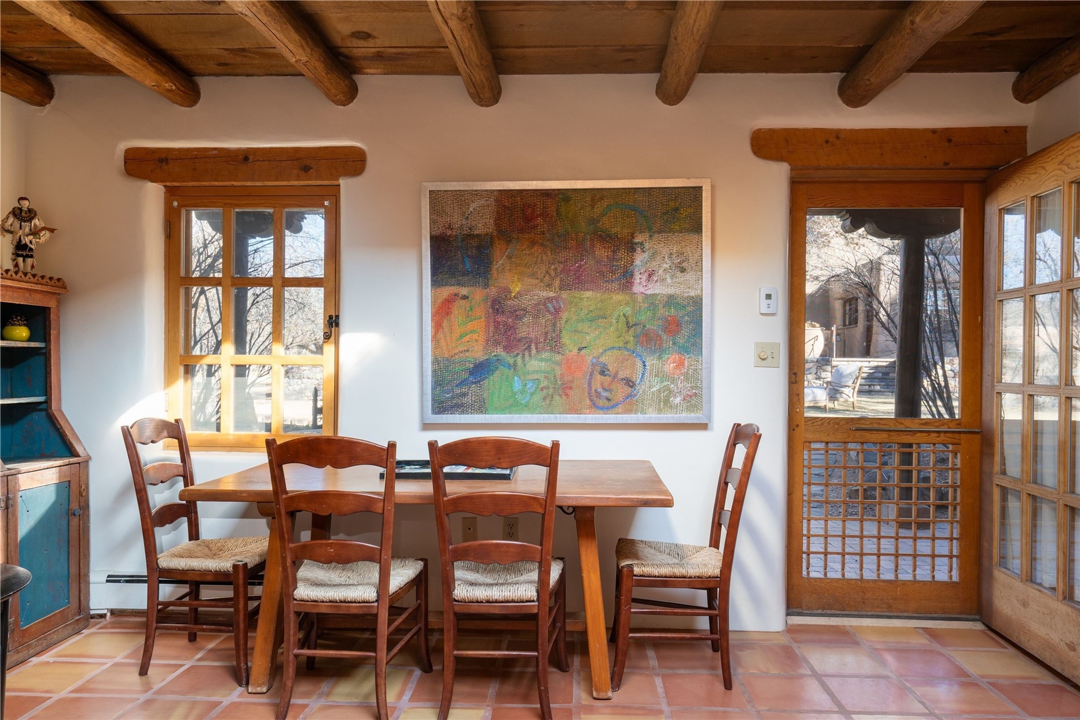 Experience the timeless elegance of The De La Pena/Frank Applegate Residence, a distinguished historical treasure nestled in Santa Fe's coveted Historic Eastside. An extraordinary opportunity to own a true piece of Santa Fe history, this landmark estate sits on 1.78 acres along a private lane, just moments from world-renowned Canyon Road and its celebrated galleries, boutiques, and fine dining. Constructed in 1650, and recognized for its National Historic Status, this remarkable property was acquired in 1845 by Spanish officer Francisco de la Pea and later purchased by esteemed artist and architect Frank Applegate. Meticulously restored to honor its past while seamlessly integrating modern luxury, the estate is designed around a picturesque placita courtyard, with a stunning 5-bedroom, 7-bath main residence and a welcoming guest casita. With every detail reflecting the finest level of artisanal craftsmanship, this incomparable estate offers a custom wine cellar with refrigeration, two garages, a clay tennis court, a ramada, and a private well for irrigation. The idyllic outdoor areas offer fabulous entertaining spaces, mature trees, multiple courtyards, along with a lush lawn, portals, and an abundance of privacy. Modern amenities are seamlessly integrated into the estate with a Control 4 Smart Home operating system. With its premier location and unparalleled provenance, this estate is a rare gem for discerning buyers seeking a luxurious lifestyle in the heart of Santa Fe.