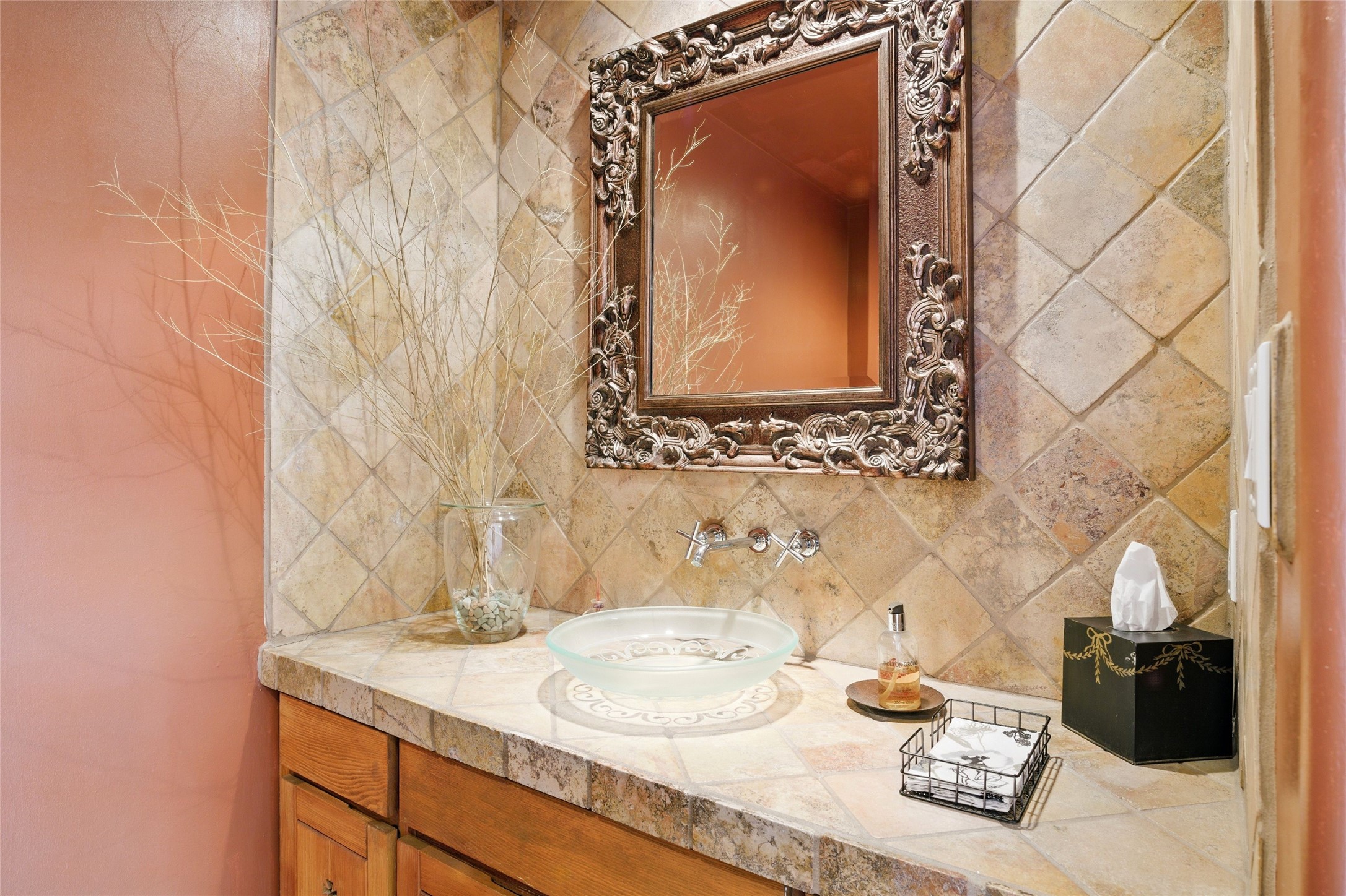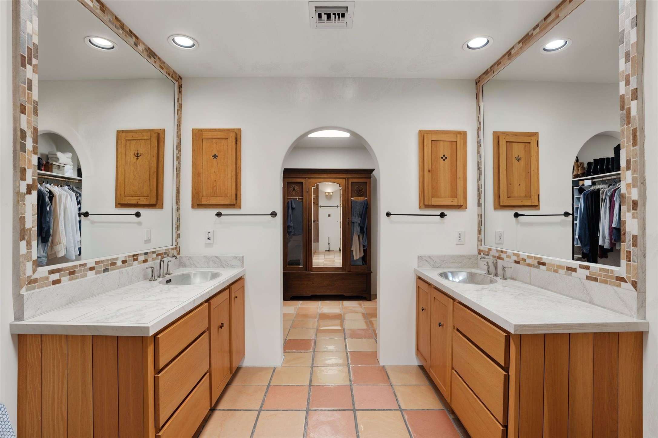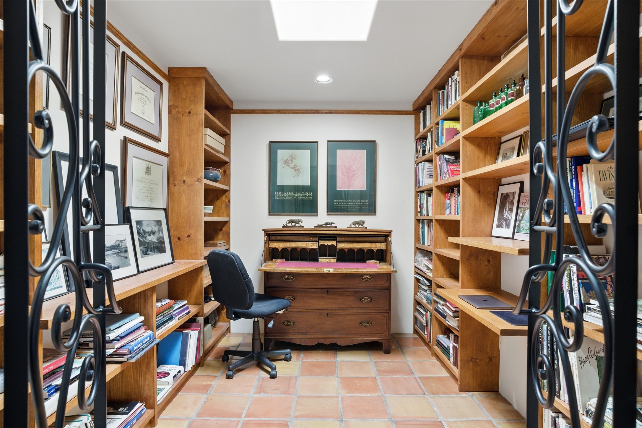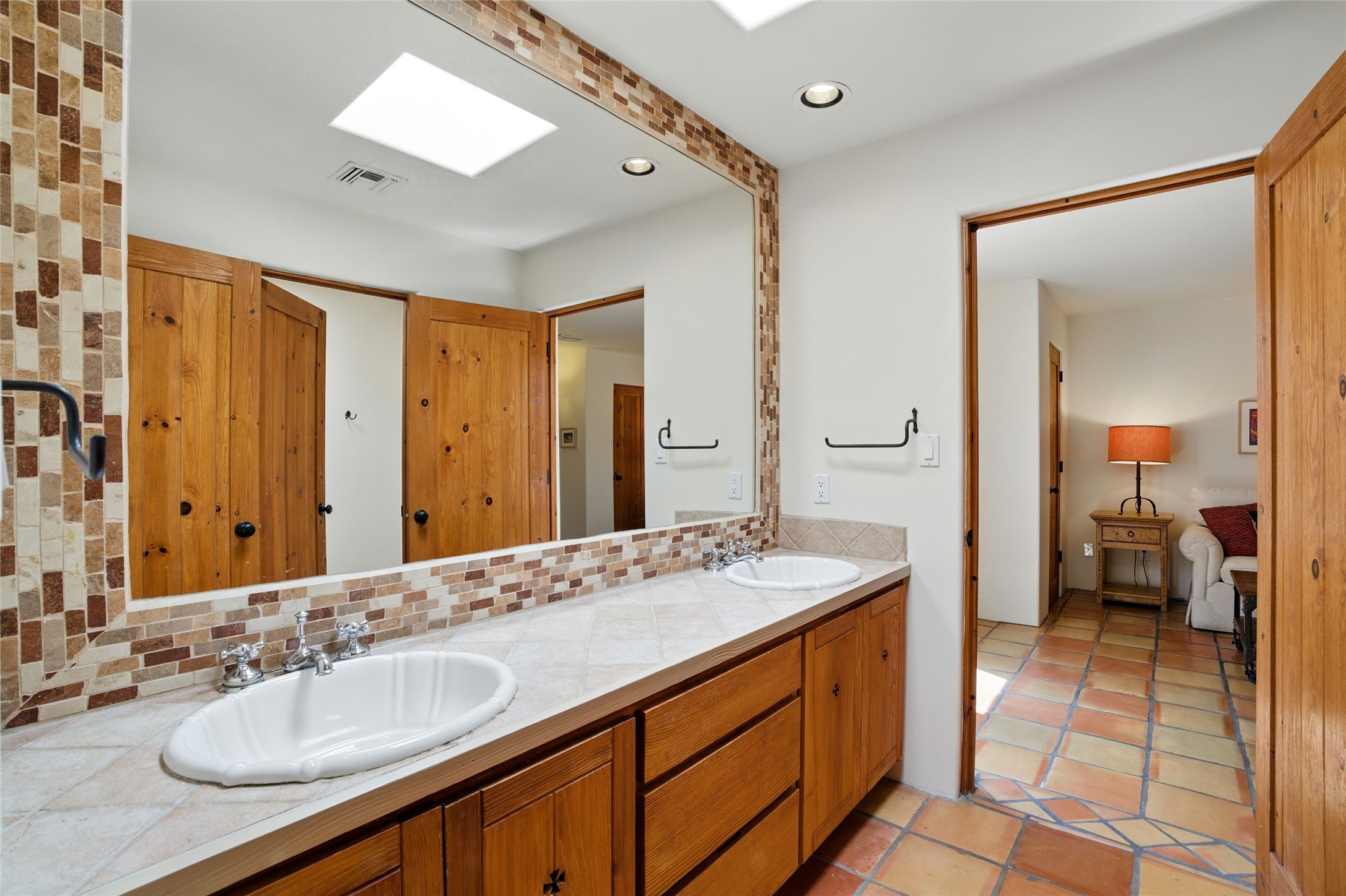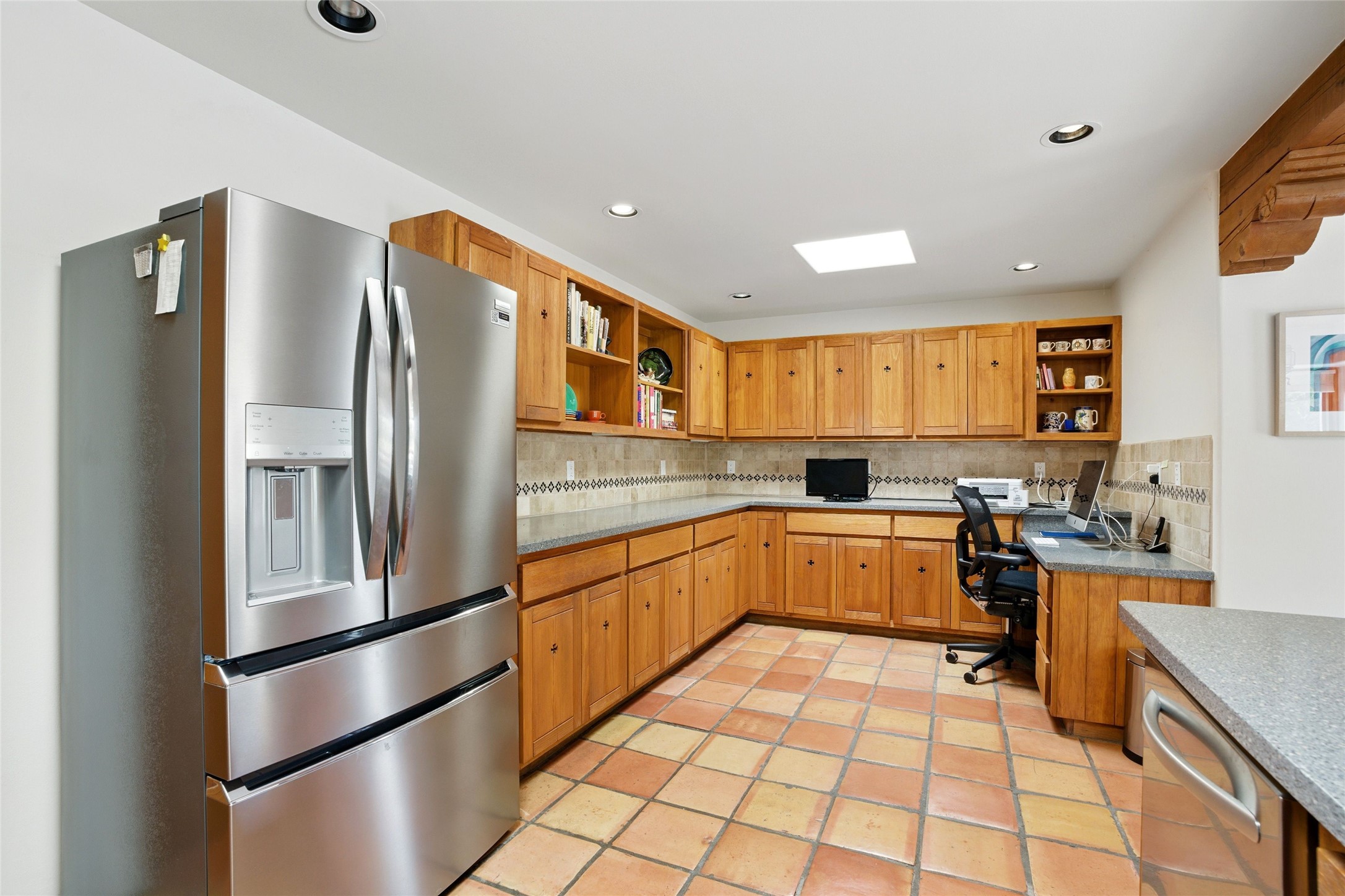 BEAUTIFUL BELICIA ESTATES PROPERTY! NEW HEATING SYSTEM - SPLITS AND FORCED AIR IN PROCESS. Privacy and views! Designed by William Lumpkins and built by Adobeworks, this elegant home has a dramatic great room with 10' ceilings and a spectacular center hallway with an 11' barrel ceiling. This property has been PRE-INSPECTED and most repairs completed. The generous primary suite has a kiva fireplace with banco, viga and latilla ceiling, spacious bath with double sinks and separate shower and walk-in closet. Two guest rooms with Jack and Jill bath. The office has custom iron gates and built-in book shelves. Charming powder room. A gorgeous wrap around portal with viga ceilings and brick floor, goes around three sides of the home. In-floor natural gas radiant heating. Kitchen has stainless steel appliances, breakfast area and a patio. Sunset side has a pull down shade. Located on 2 acres on a paved road with a paved driveway, this property backs up to 2,650 undeveloped acres. The professionally designed landscaping (17K) completes the front approach. Proper laundry room with sink and good storage. Silicone roof in May 2025. Driveway resealed 2025. Water heater 2024. Refrigerator and washer/dryer 2025. Saltillo tile throughout. NO CARPET. NO STEPS. BRAND NEW AIR CONDITIONING. Tiled room off the primary bath was used for a jetted tub - was converted to an exercise room by previous owners - plumbing still in place. Refrigerated air conditioning in bedroom wing only. Security system is ADT and can be transferred to new owners. Three rainbarrels - 60 gallons each. Chimneys have been inspected and minor repairs completed. Pre-inspection report available upon request.