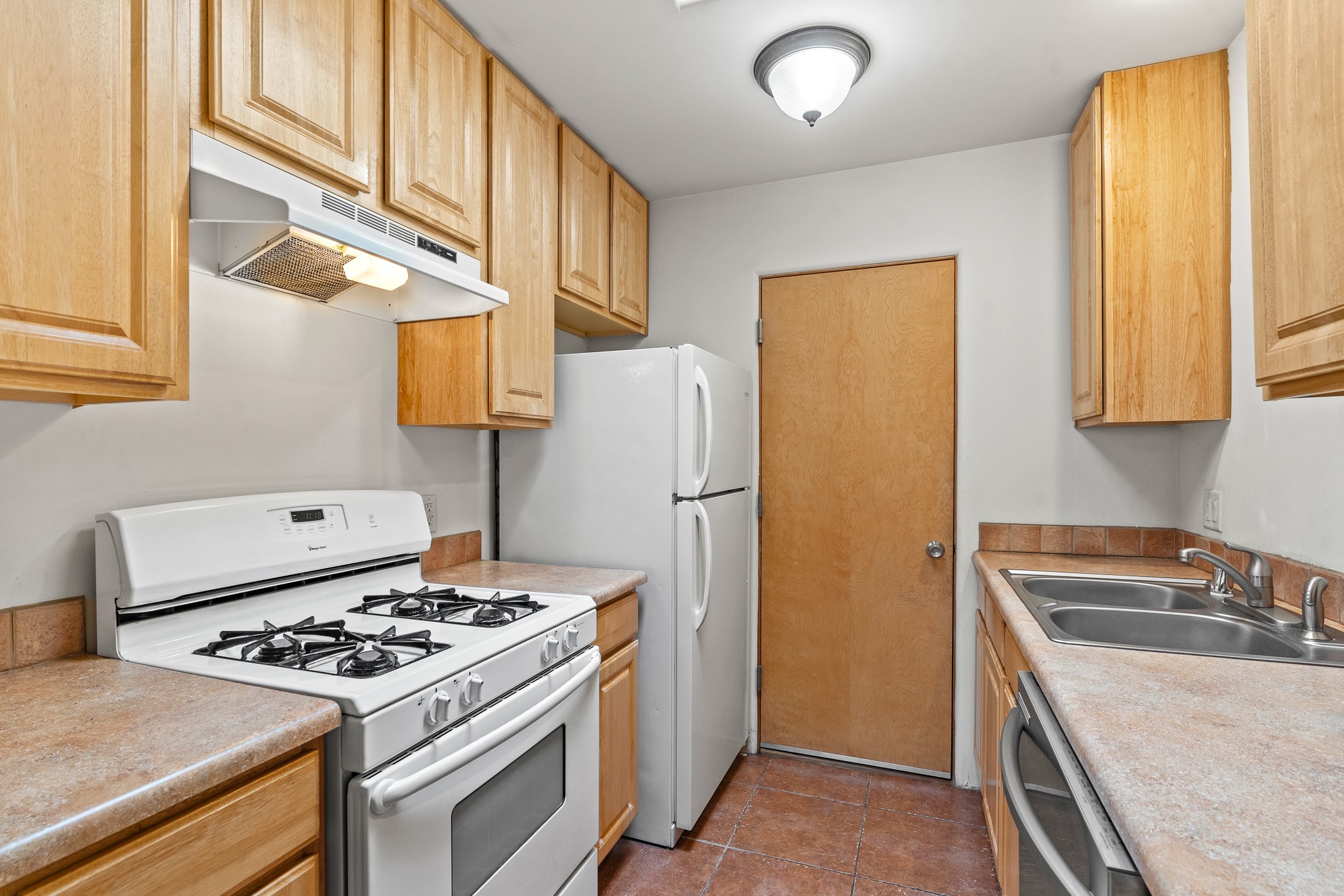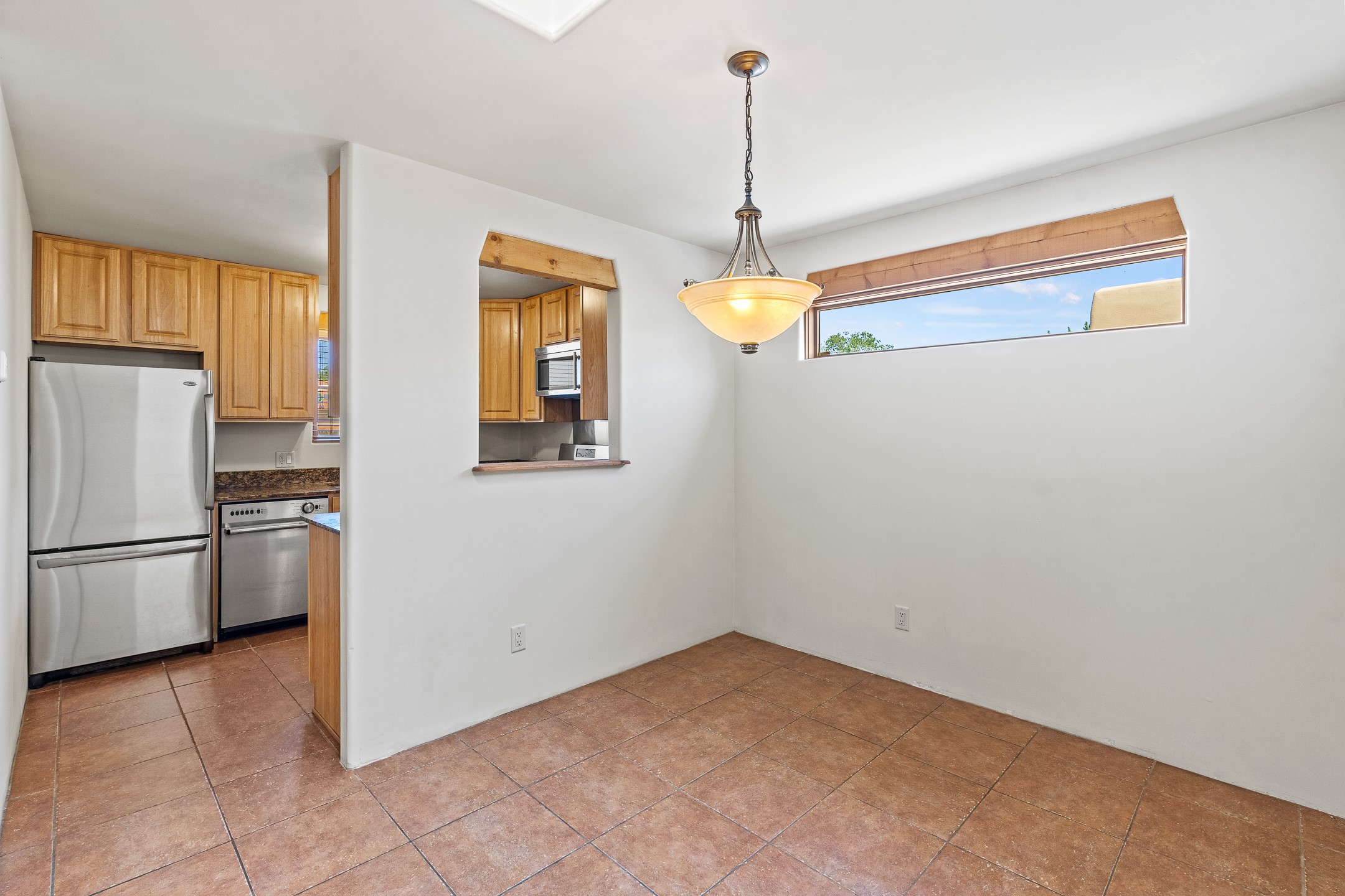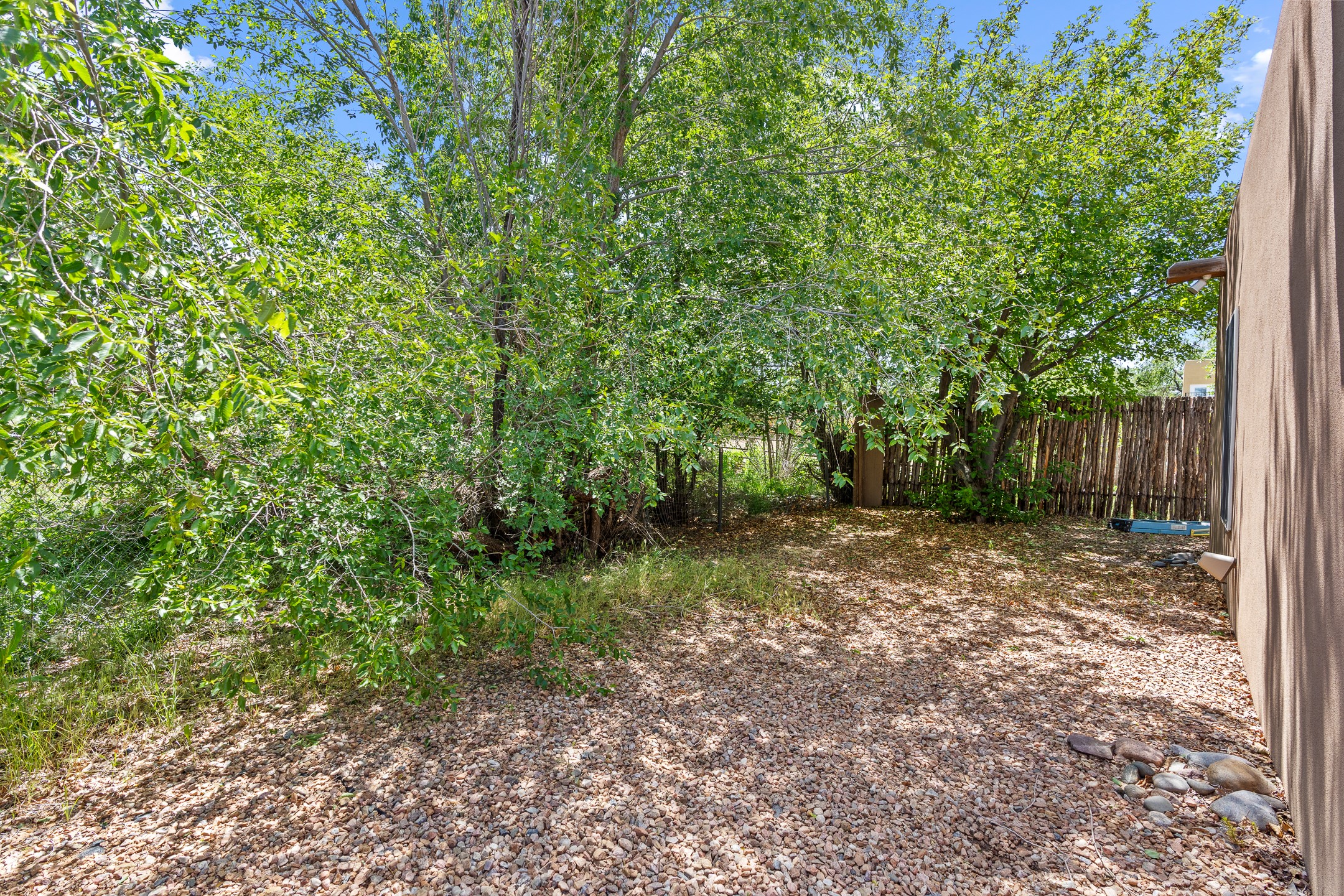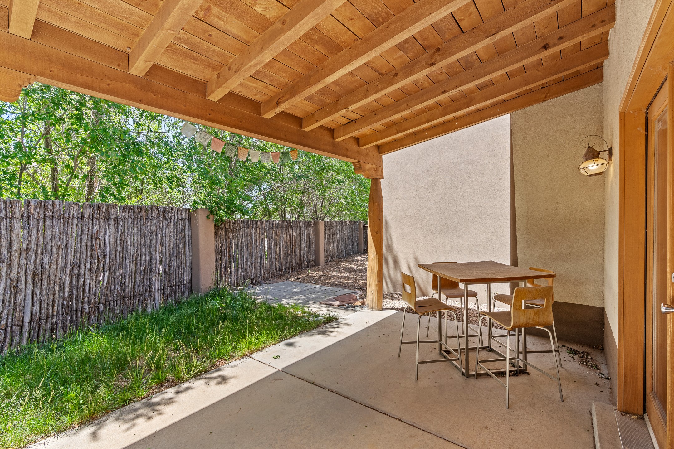 A versatile and charming property featuring a 3-bedroom, 2-bath main house plus a separate 1-bedroom, 1-bath guest house; ideal for rental income, extended family, or a home studio. The main house offers a spacious living area with tile floors, wood-beamed ceilings, and a traditional kiva fireplace, opening into the dining and kitchen area and a lovely covered patio area in a fully fenced yard. The primary suite includes a private bath and walk-in closet. A two-car garage adds to the flexible usage of the property. The guest house has its own entrance and includes a living area, kitchenette, bedroom, and full bath. There is also a washer / dryer hook-up, and it is separately metered. Centrally located, less than a 10-minute walk to restaurants such as Escondido and Tumbleroot Brewery, and a 10-minute drive to the Plaza.