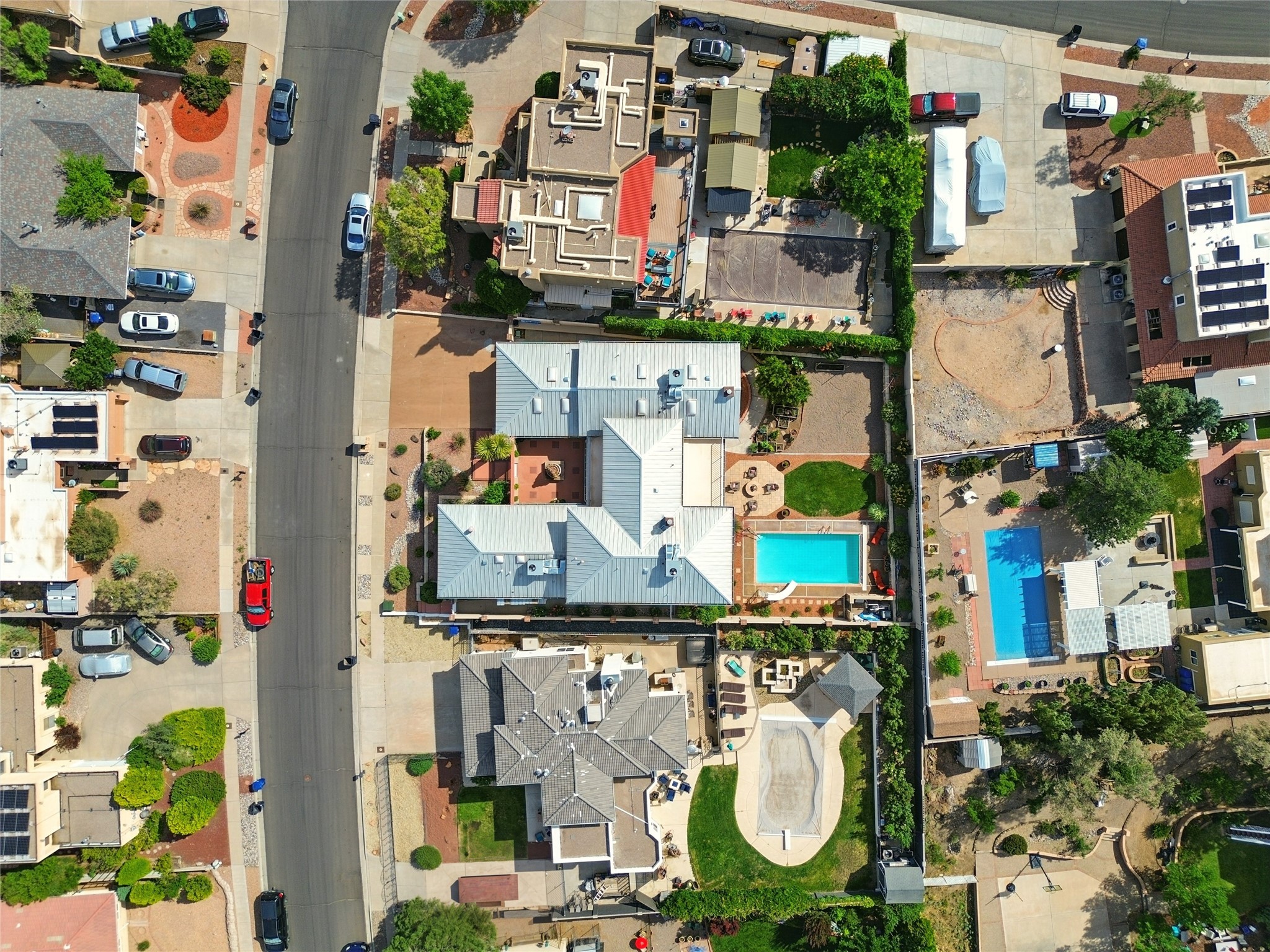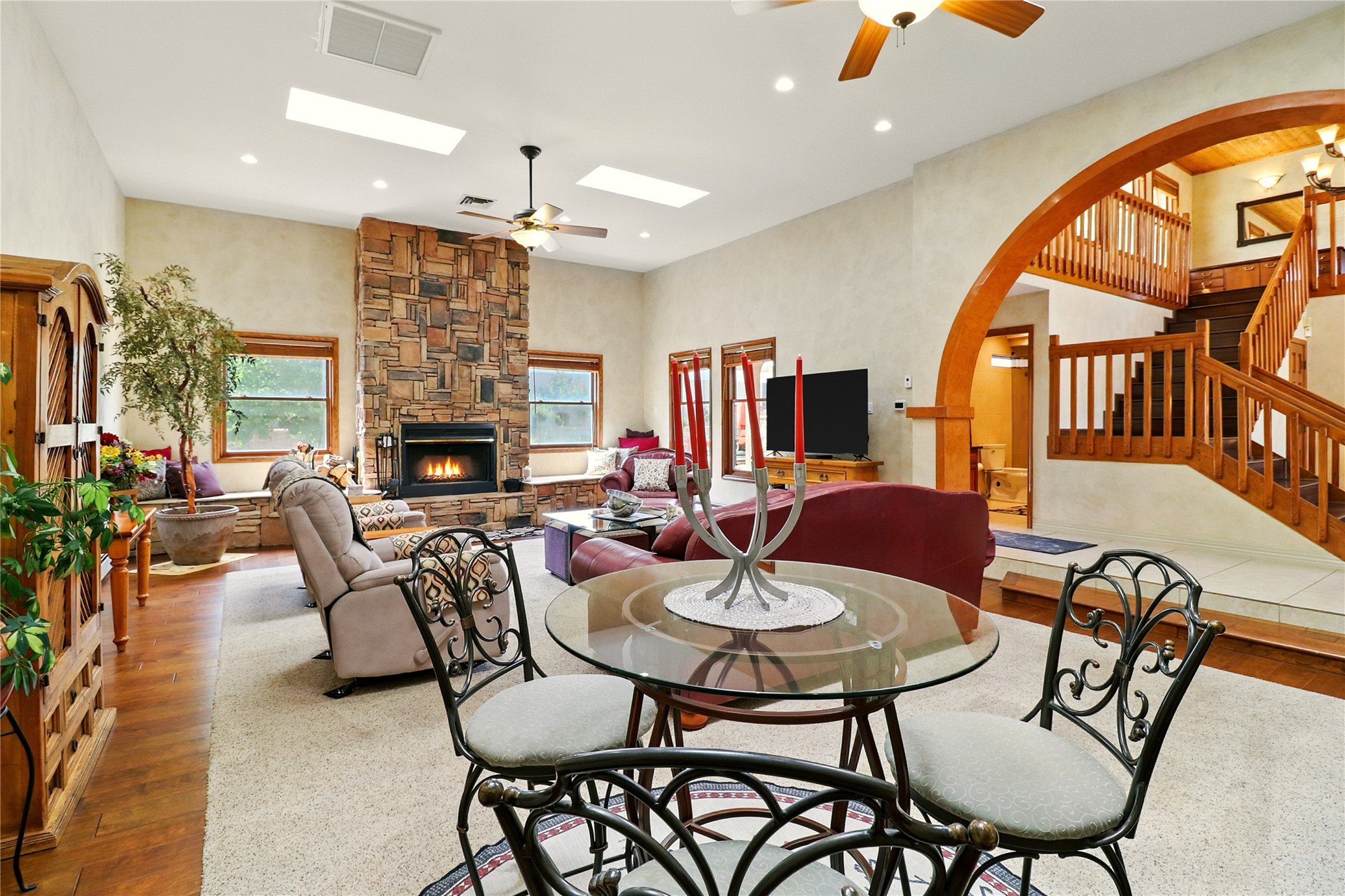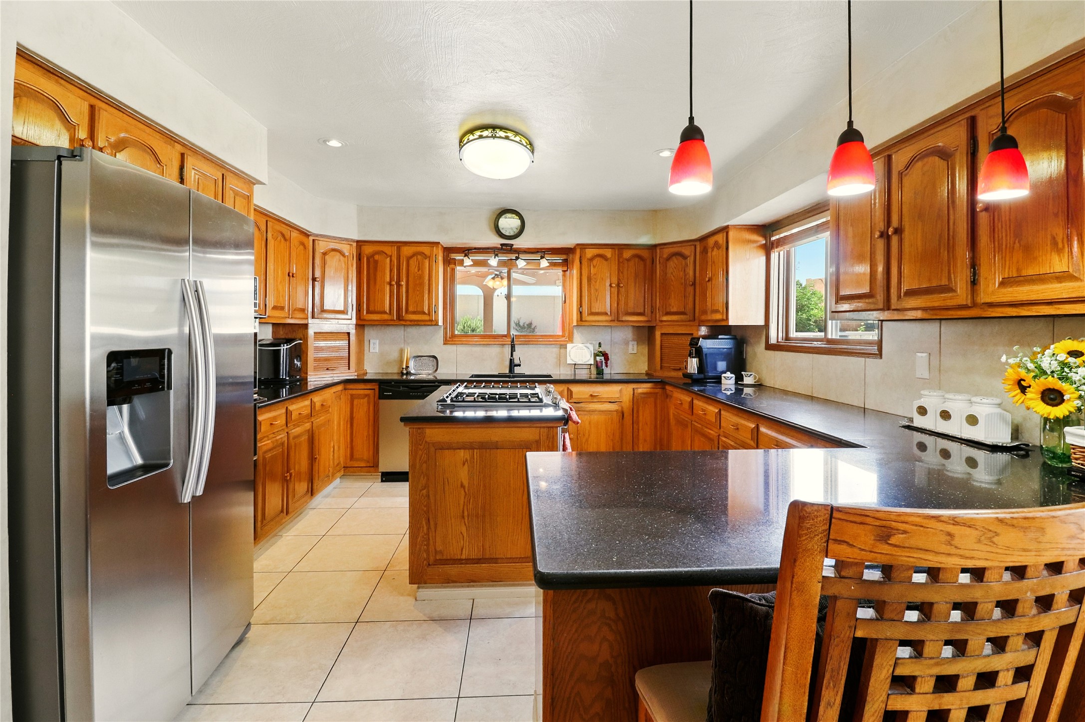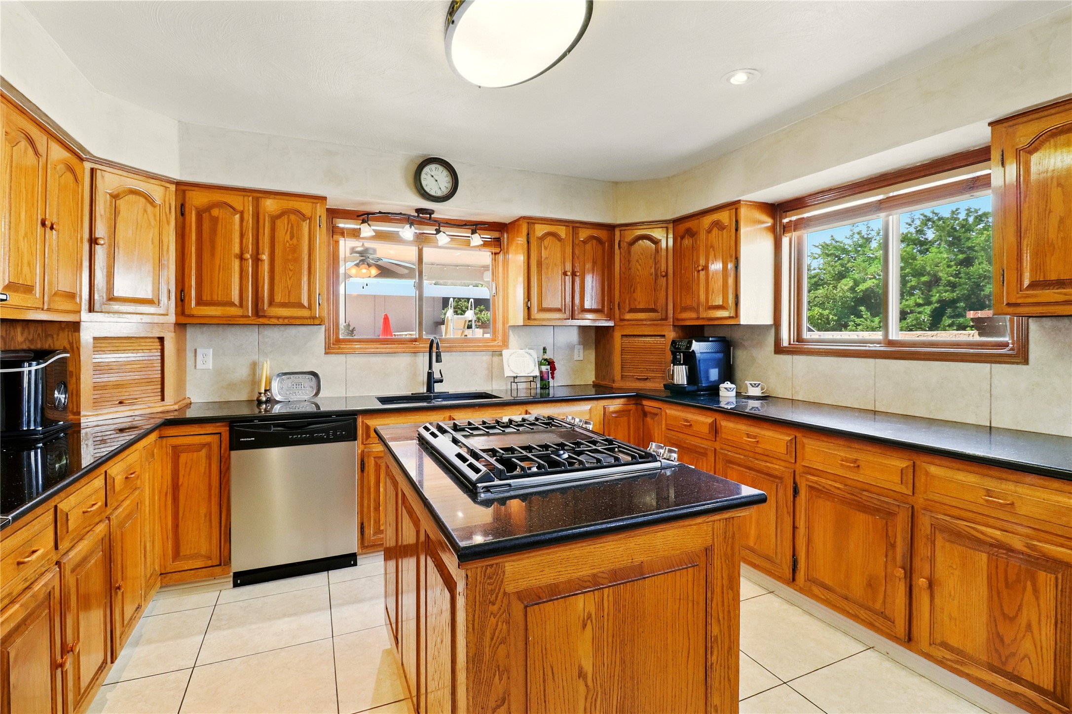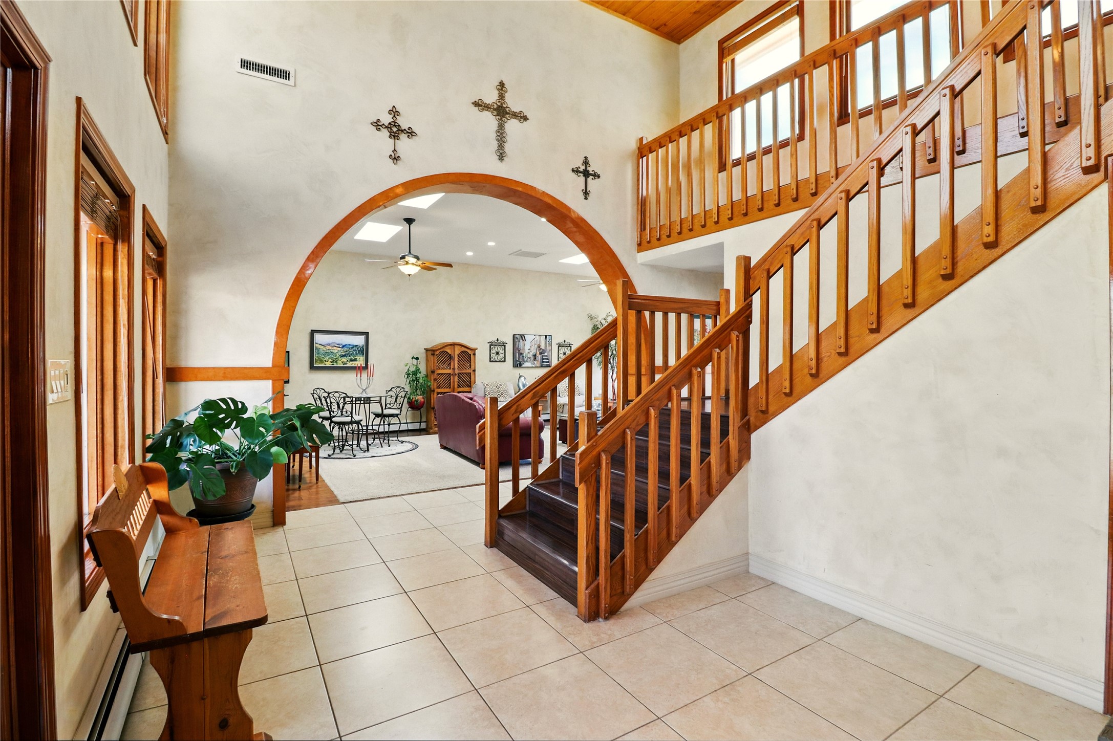 Nestled in the desirable Taylor Ranch community, this stunning 4-bedroom, 4-bathroom two-story home is an entertainer's dream! Through the welcoming entry courtyard, you enter into "La Sala Grande" with raised 12' newly painted ceilings, Venetian plaster walls, recessed lighting and a stone-covered wood burning fireplace. The lovely chef's kitchen contains stainless steel appliances, a double oven & separate island range, oak cabinets & granite countertops with ample space and storage. With both off-counter seating & a separate dining area you have plenty of space for family and guests. Up the wooden staircase, the second floor is a true private retreat. The landing space at the top of the staircase offers space for an office or workout area. Through the double wooden doors, you find the primary suite with its own stone fireplace, walk-in closet, balcony, jetted tub and oversized shower. Two bedrooms located downstairs contain ensuite bathrooms & the third guest bedroom has direct access to the beautifully landscaped backyard. An oasis of its own, the meticulously maintained backyard includes a covered portal, heated gunite pool w/electric safety cover, hot tub, fire pit, bar & speaker system for ultimate entertainment and enjoyment. Recent upkeeps include 3 newer refrigerated air units, sanded/refinished wooden doors throughout, newly painted ceilings & new TPO installed on patio roof off the primary suite with warranty. With lots of windows & skylights, tasteful wooden accents throughout, painted concrete outside, double-car garage with tons of storage space & a giant walk-in laundry room complete with cabinets, sink & counter space this magnificent home on an expansive lot is truly a must see. Experience peace, tranquility & the best of Albuquerque living in this exceptional, competitively priced home. Don't miss this incredible opportunity. Imagine the possibilities and schedule your private tour today!