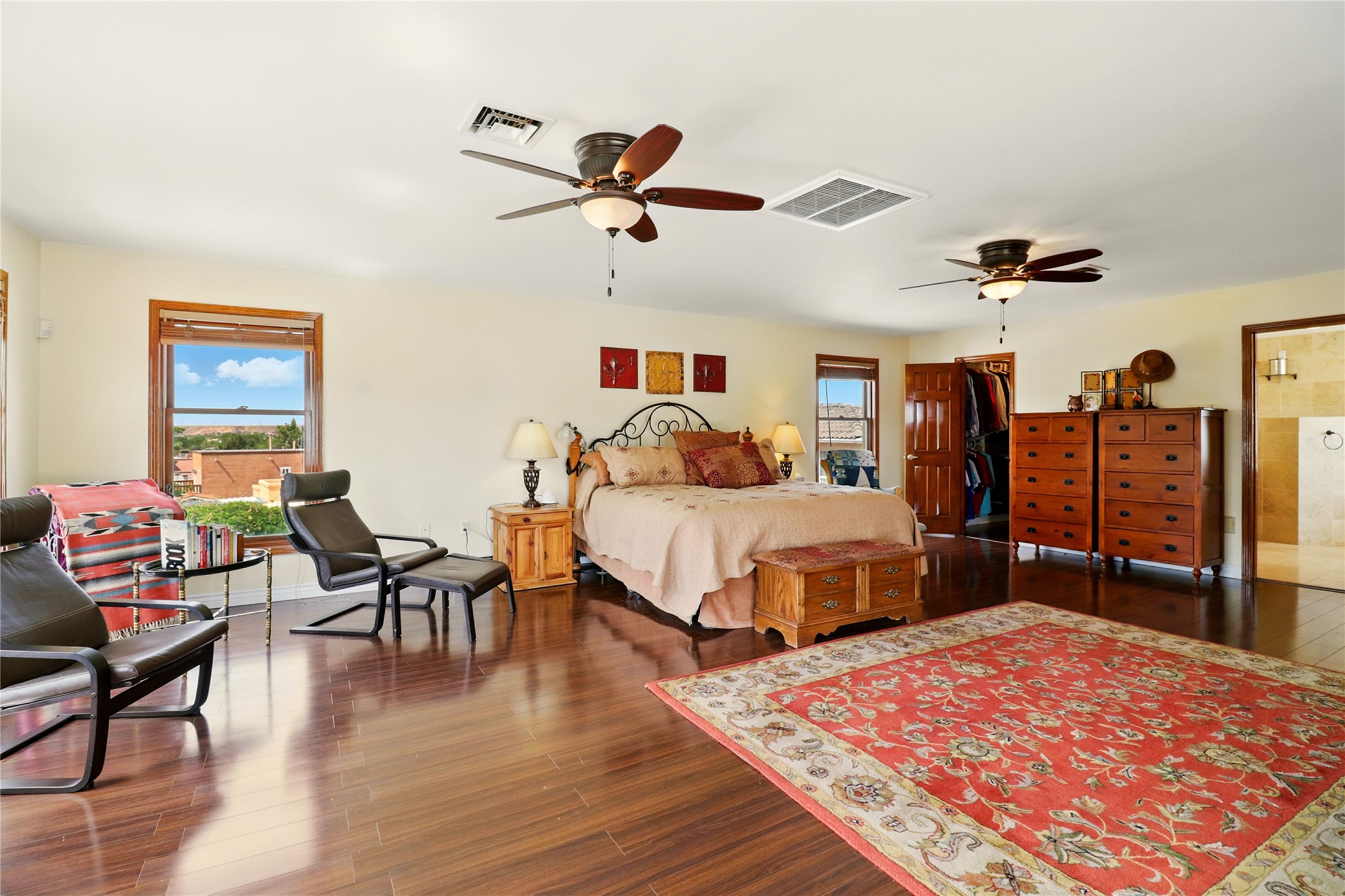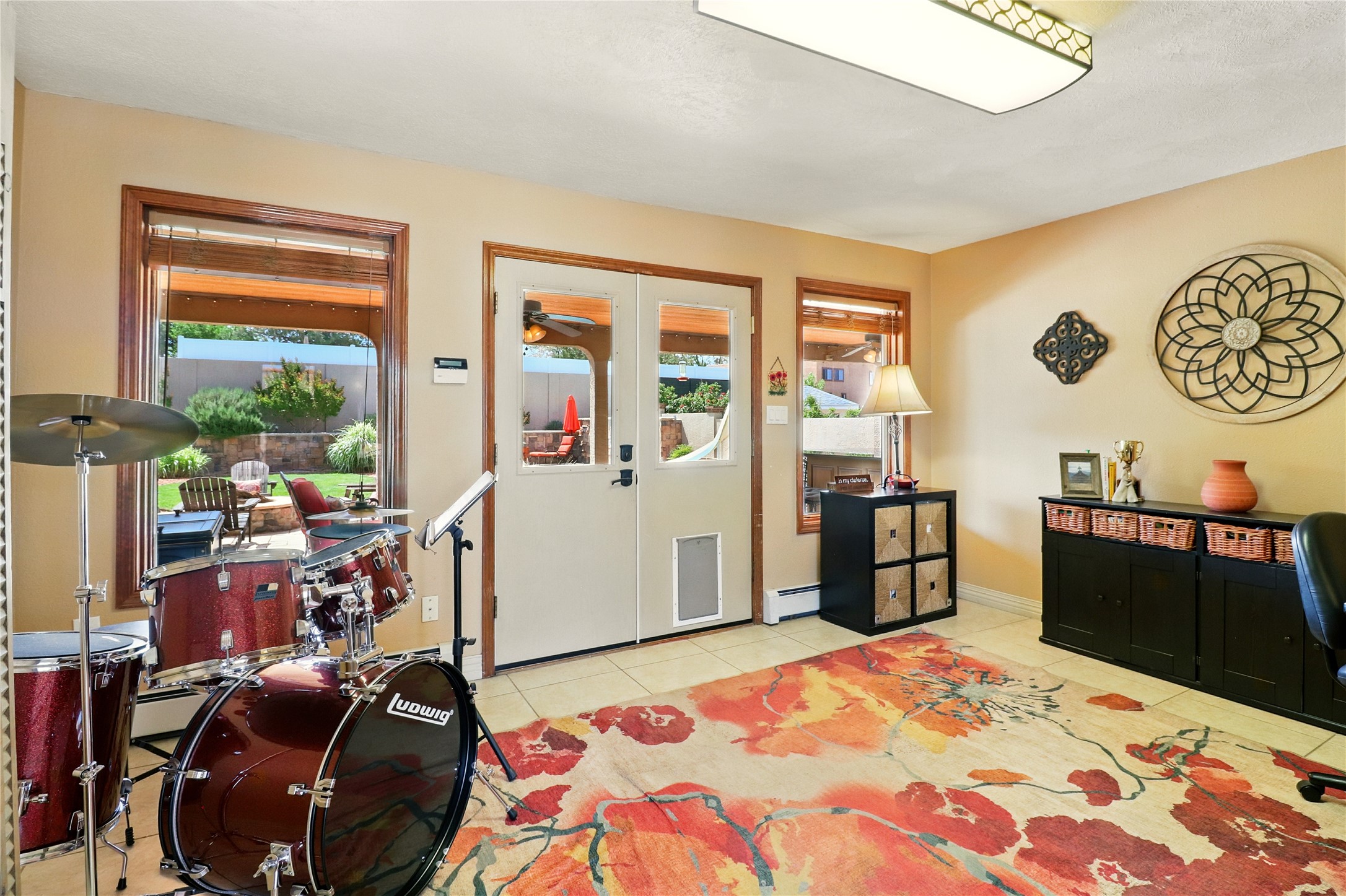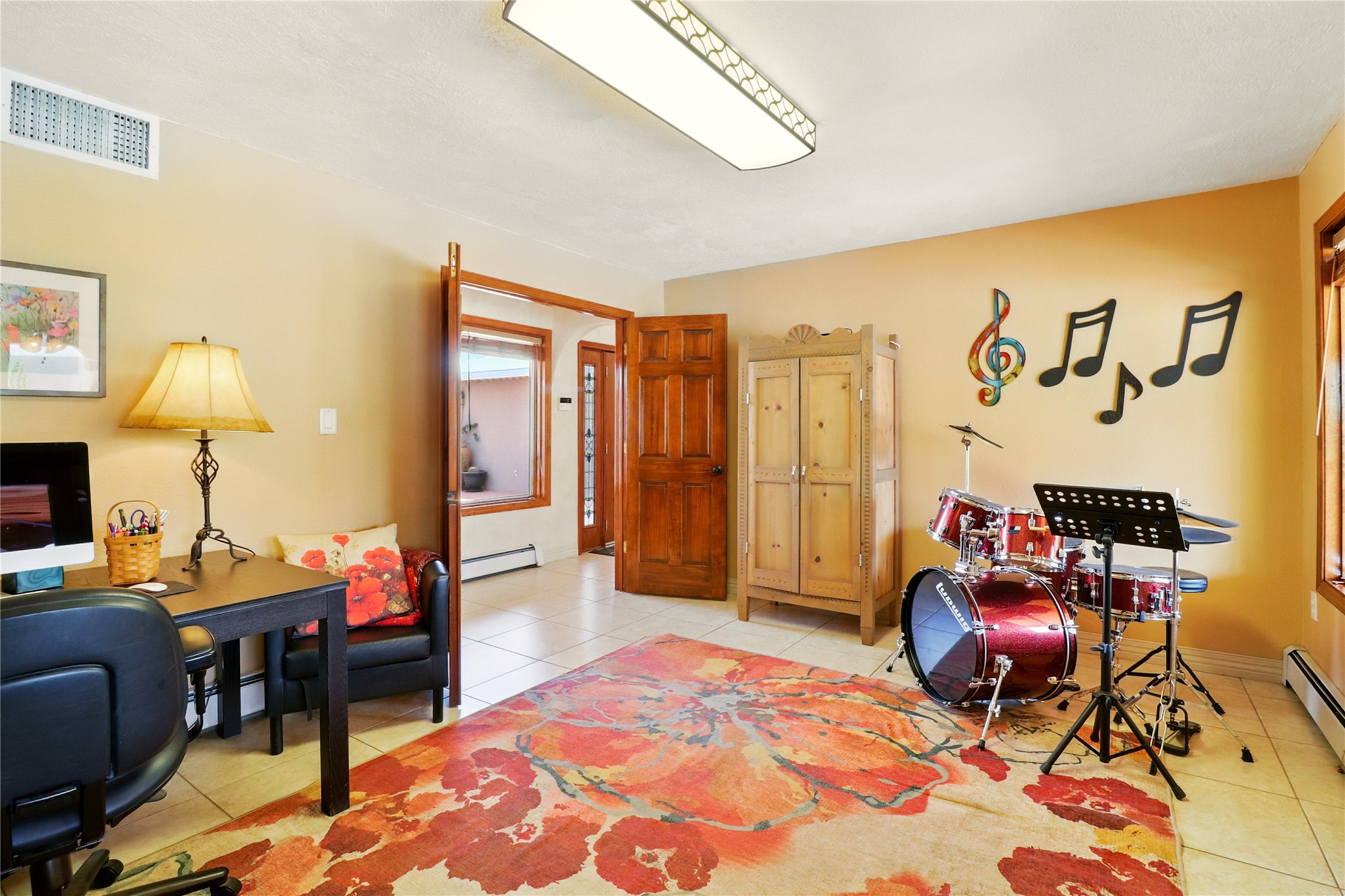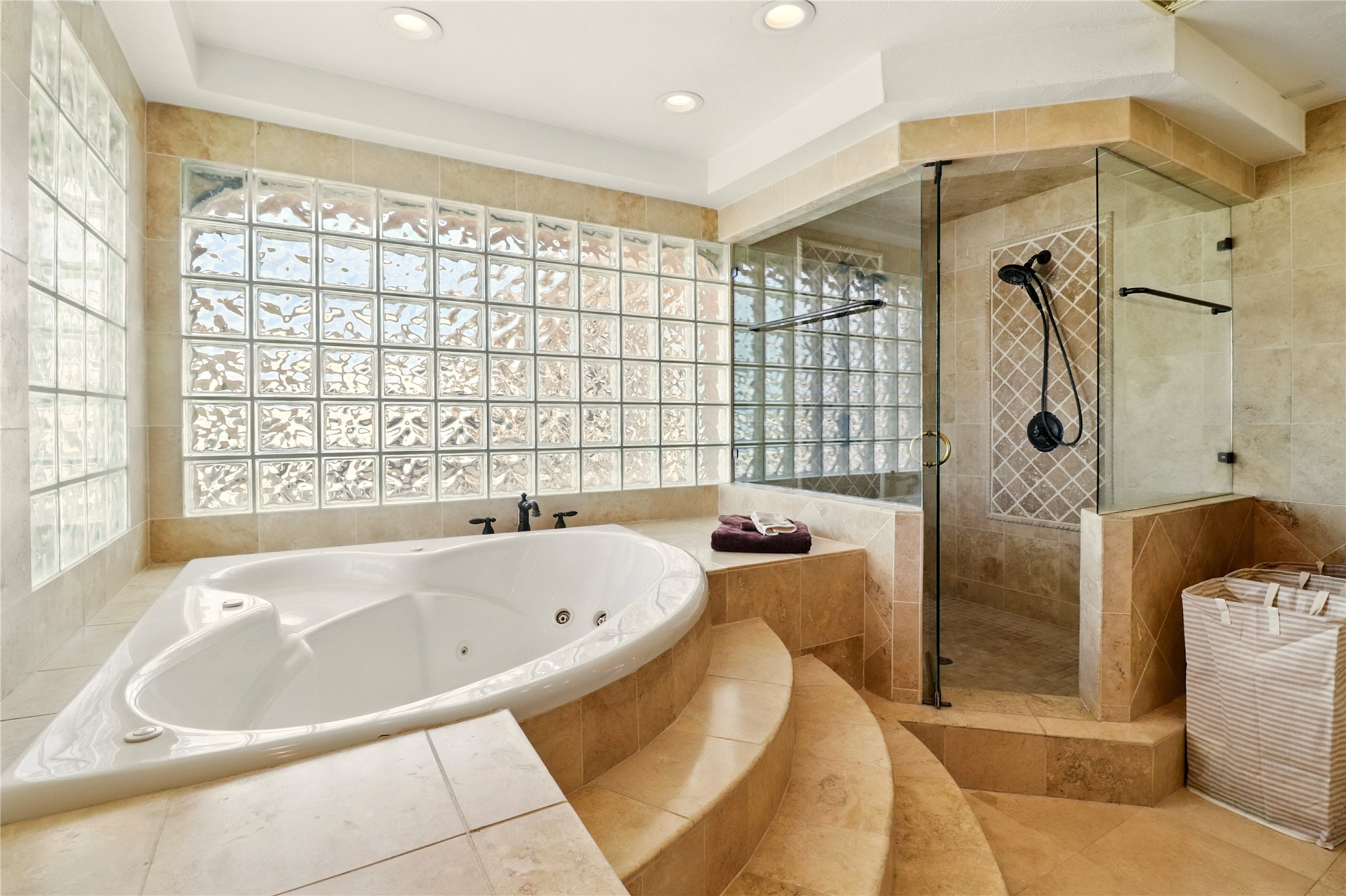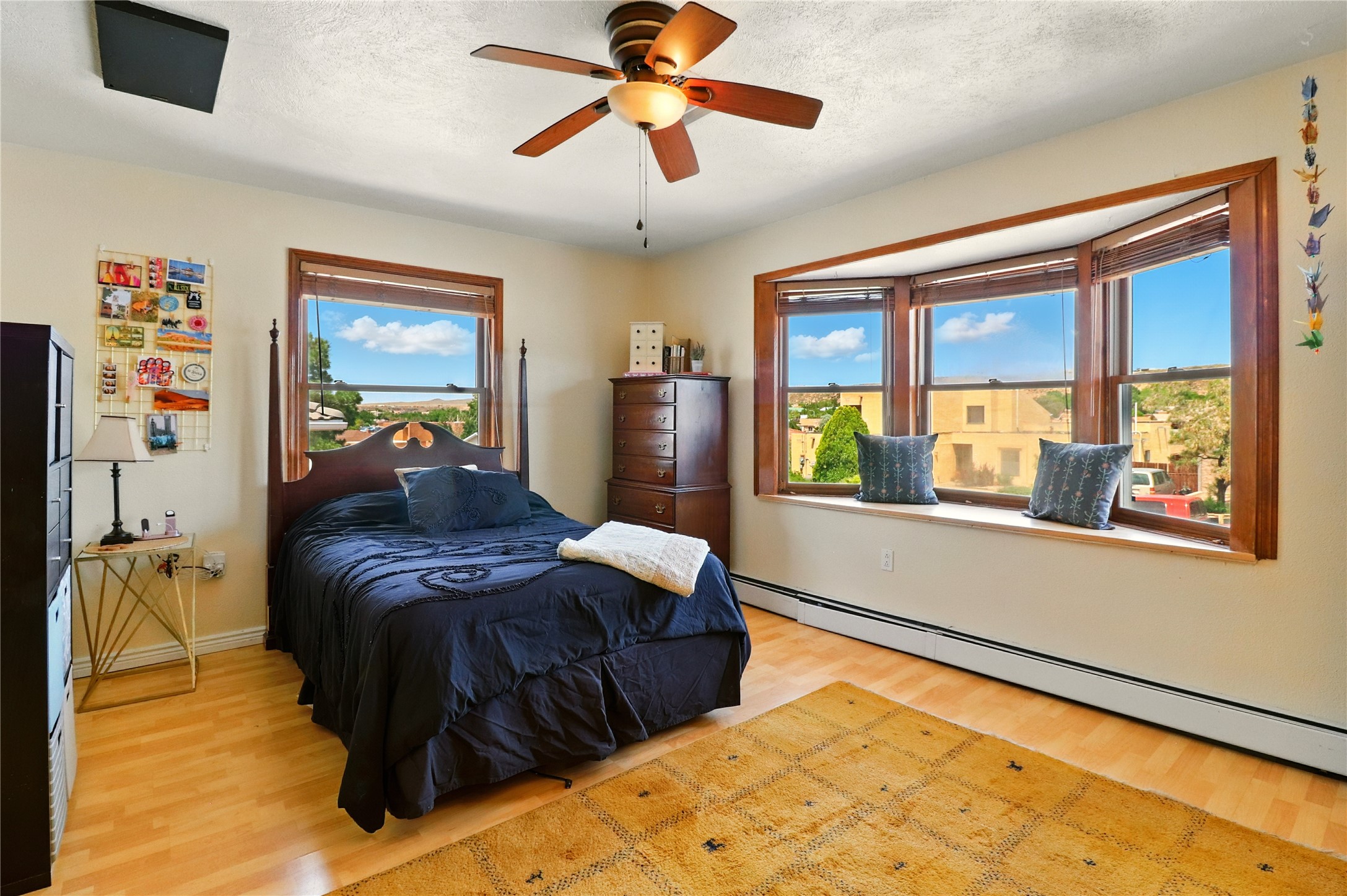 Nestled in the desirable Taylor Ranch community, this stunning 4-bedroom, 4-bathroom two-story home is an entertainer's dream! Through the welcoming entry courtyard, you enter into "La Sala Grande" with raised 12' newly painted ceilings, Venetian plaster walls, recessed lighting and a stone-covered wood burning fireplace. The lovely chef's kitchen contains stainless steel appliances, a double oven & separate island range, oak cabinets & granite countertops with ample space and storage. With both off-counter seating & a separate dining area you have plenty of space for family and guests. Up the wooden staircase, the second floor is a true private retreat. The landing space at the top of the staircase offers space for an office or workout area. Through the double wooden doors, you find the primary suite with its own stone fireplace, walk-in closet, balcony, jetted tub and oversized shower. Two bedrooms located downstairs contain ensuite bathrooms & the third guest bedroom has direct access to the beautifully landscaped backyard. An oasis of its own, the meticulously maintained backyard includes a covered portal, heated gunite pool w/electric safety cover, hot tub, fire pit, bar & speaker system for ultimate entertainment and enjoyment. Recent upkeeps include 3 newer refrigerated air units, sanded/refinished wooden doors throughout, newly painted ceilings & new TPO installed on patio roof off the primary suite with warranty. With lots of windows & skylights, tasteful wooden accents throughout, painted concrete outside, double-car garage with tons of storage space & a giant walk-in laundry room complete with cabinets, sink & counter space this magnificent home on an expansive lot is truly a must see. Experience peace, tranquility & the best of Albuquerque living in this exceptional, competitively priced home. Don't miss this incredible opportunity. Imagine the possibilities and schedule your private tour today!