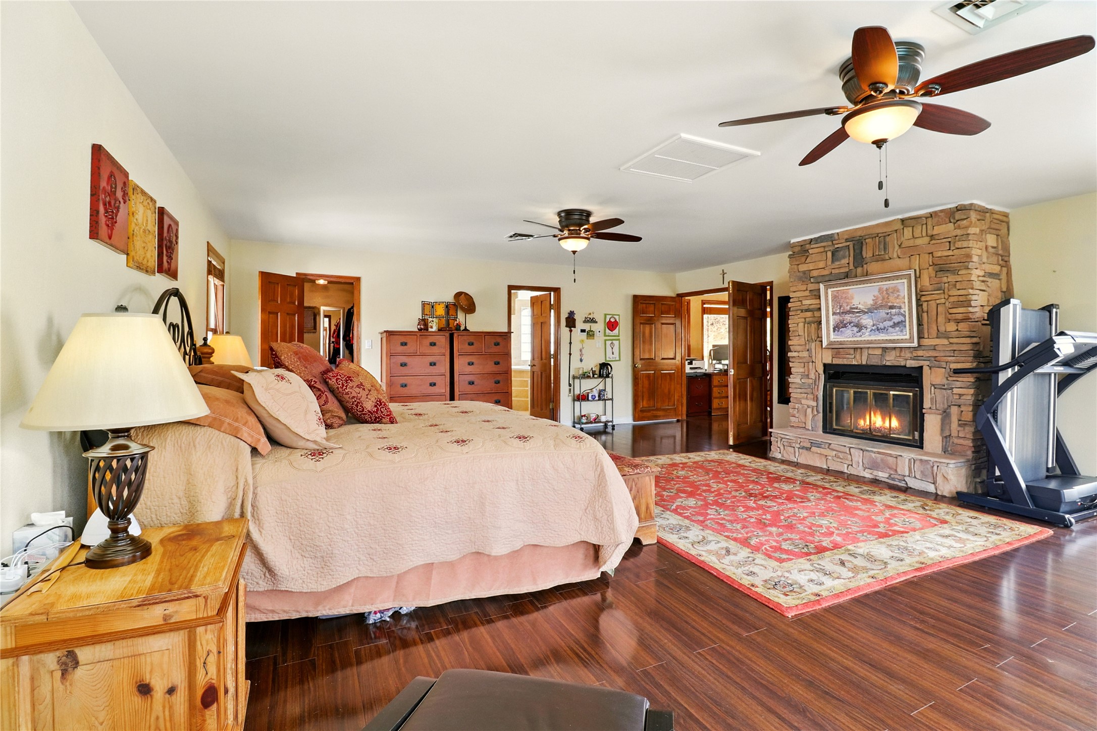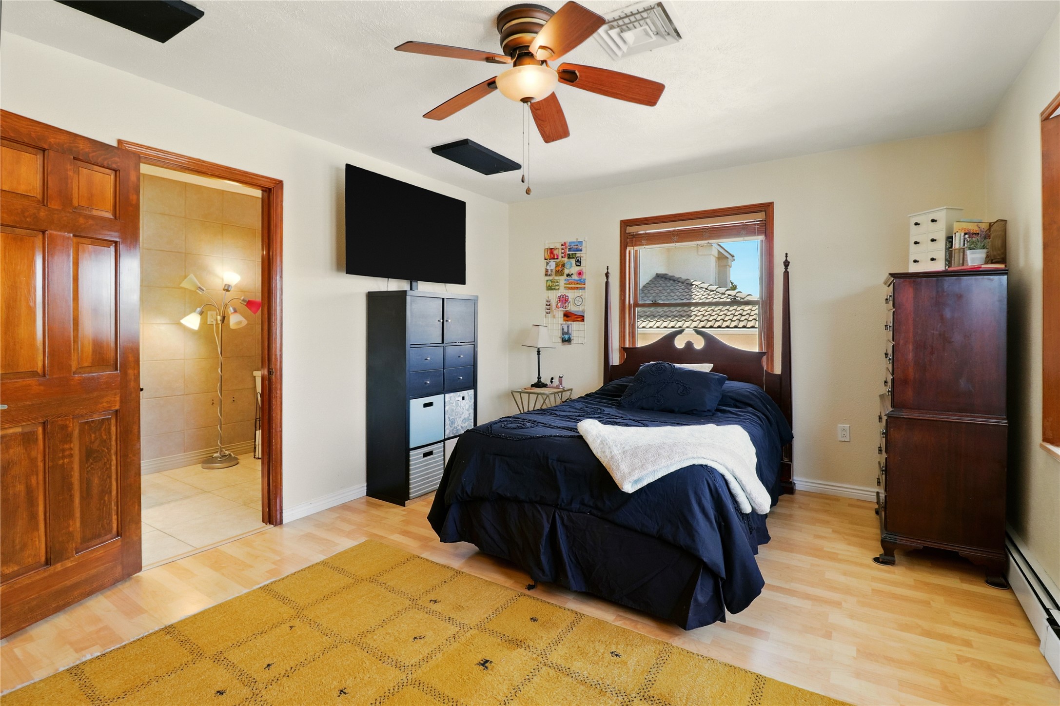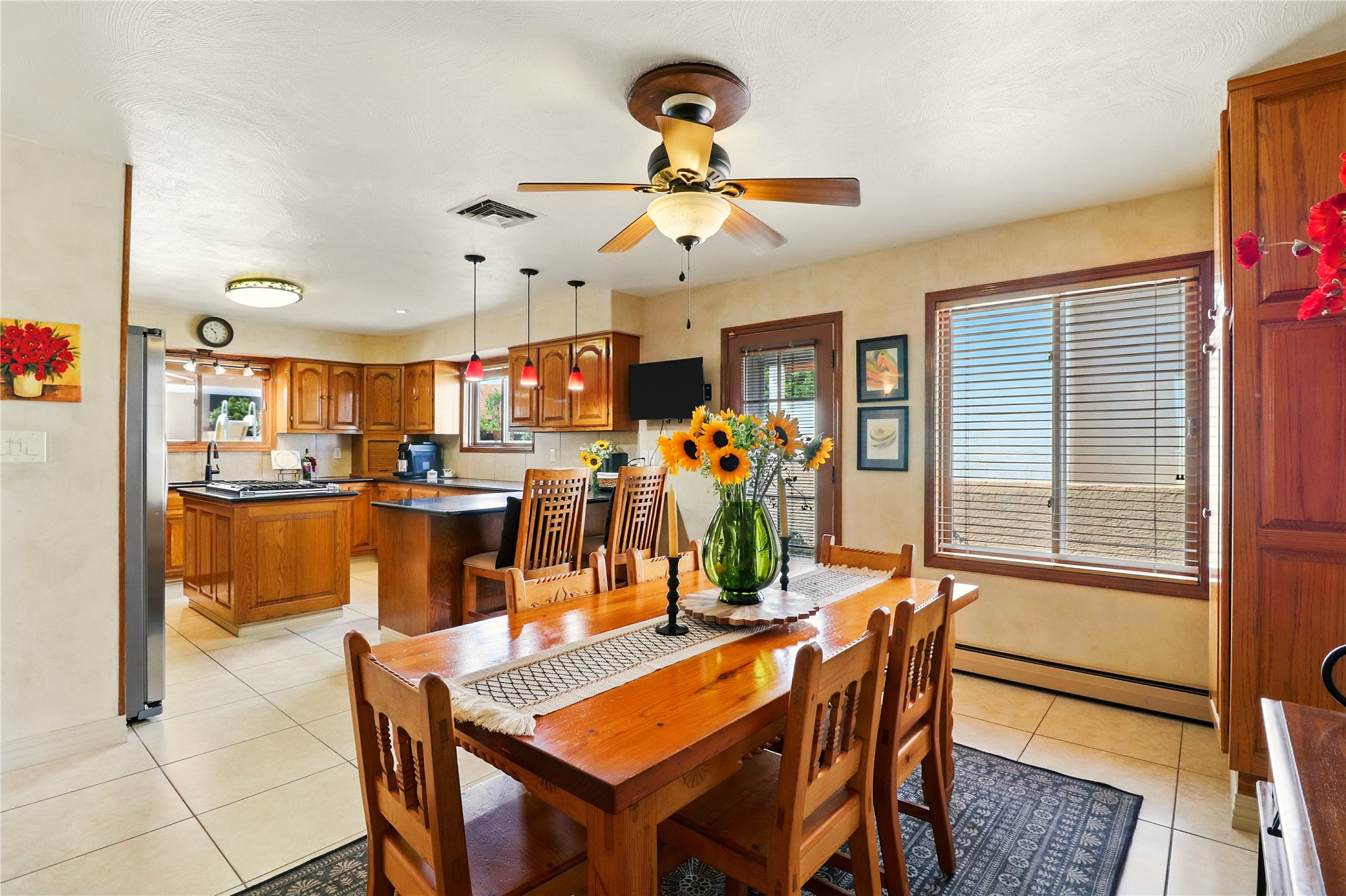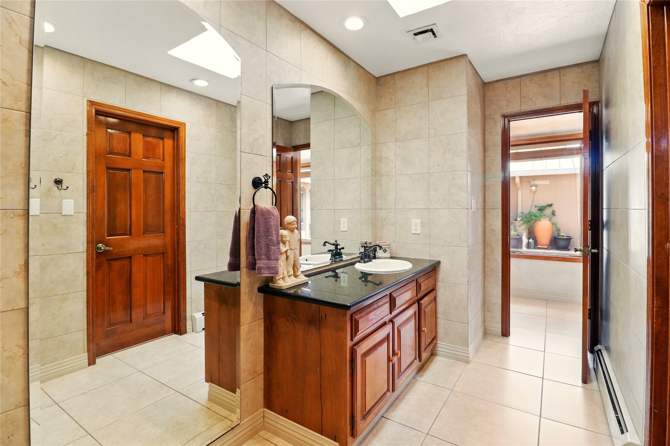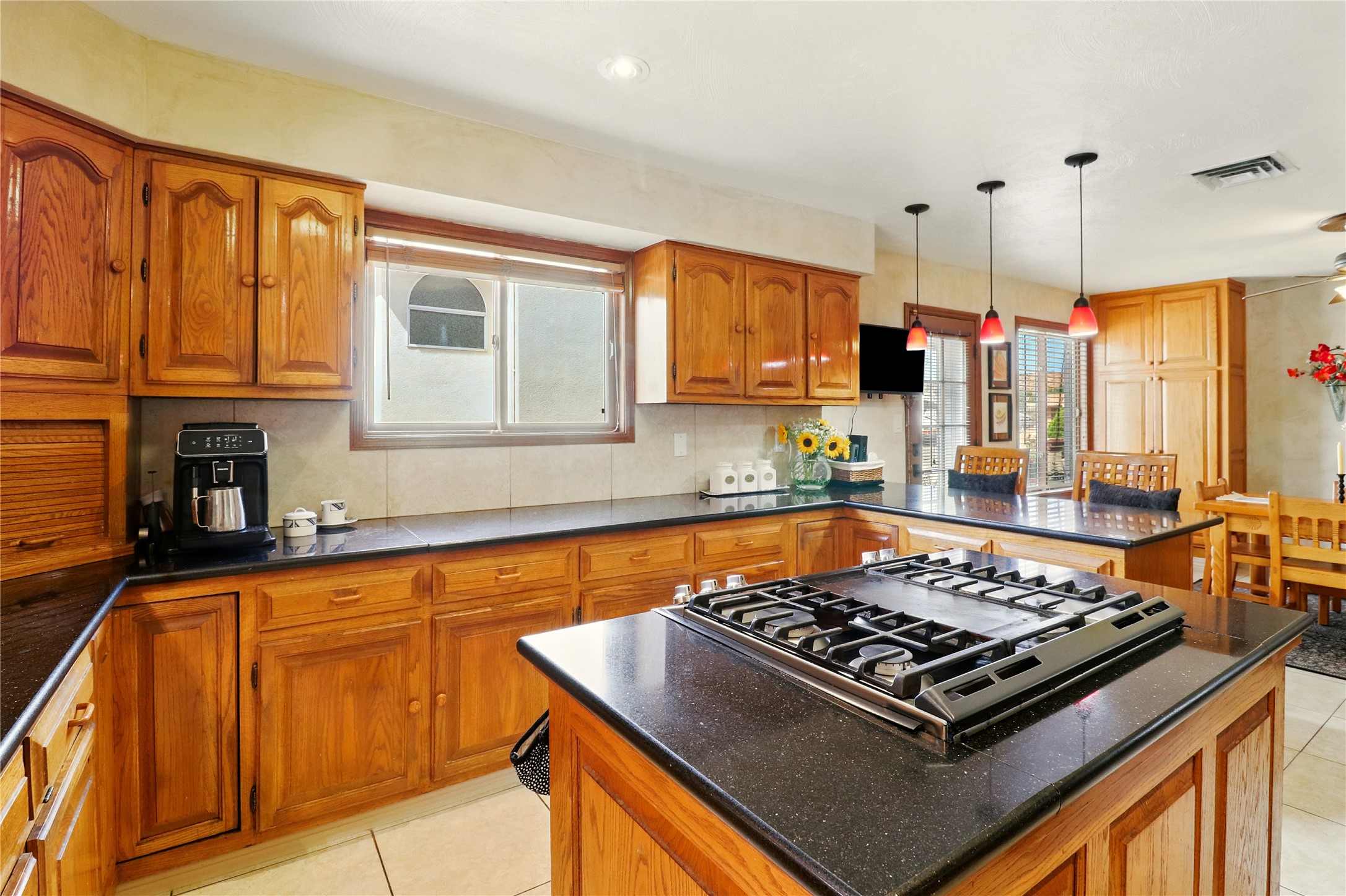 Nestled in the desirable Taylor Ranch community, this stunning 4-bedroom, 4-bathroom two-story home is an entertainer's dream! Through the welcoming entry courtyard, you enter into "La Sala Grande" with raised 12' newly painted ceilings, Venetian plaster walls, recessed lighting and a stone-covered wood burning fireplace. The lovely chef's kitchen contains stainless steel appliances, a double oven & separate island range, oak cabinets & granite countertops with ample space and storage. With both off-counter seating & a separate dining area you have plenty of space for family and guests. Up the wooden staircase, the second floor is a true private retreat. The landing space at the top of the staircase offers space for an office or workout area. Through the double wooden doors, you find the primary suite with its own stone fireplace, walk-in closet, balcony, jetted tub and oversized shower. Two bedrooms located downstairs contain ensuite bathrooms & the third guest bedroom has direct access to the beautifully landscaped backyard. An oasis of its own, the meticulously maintained backyard includes a covered portal, heated gunite pool w/electric safety cover, hot tub, fire pit, bar & speaker system for ultimate entertainment and enjoyment. Recent upkeeps include 3 newer refrigerated air units, sanded/refinished wooden doors throughout, newly painted ceilings & new TPO installed on patio roof off the primary suite with warranty. With lots of windows & skylights, tasteful wooden accents throughout, painted concrete outside, double-car garage with tons of storage space & a giant walk-in laundry room complete with cabinets, sink & counter space this magnificent home on an expansive lot is truly a must see. Experience peace, tranquility & the best of Albuquerque living in this exceptional, competitively priced home. Don't miss this incredible opportunity. Imagine the possibilities and schedule your private tour today!