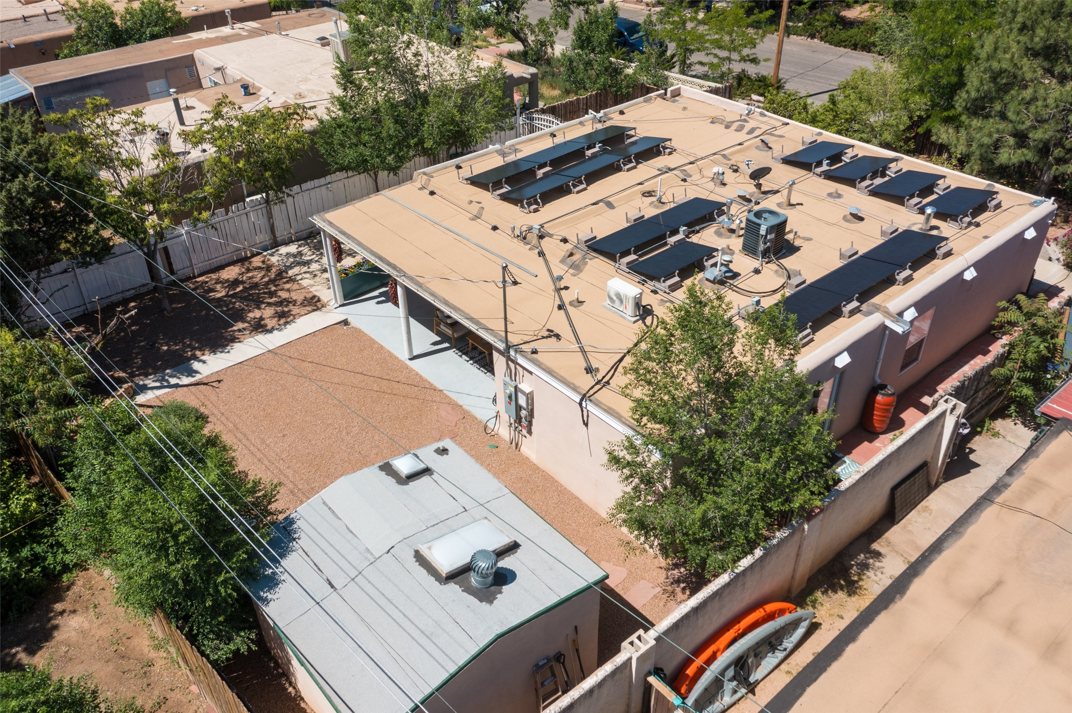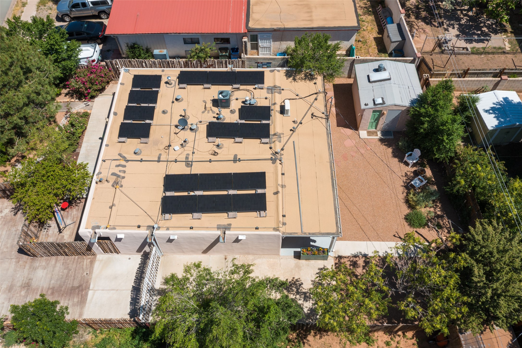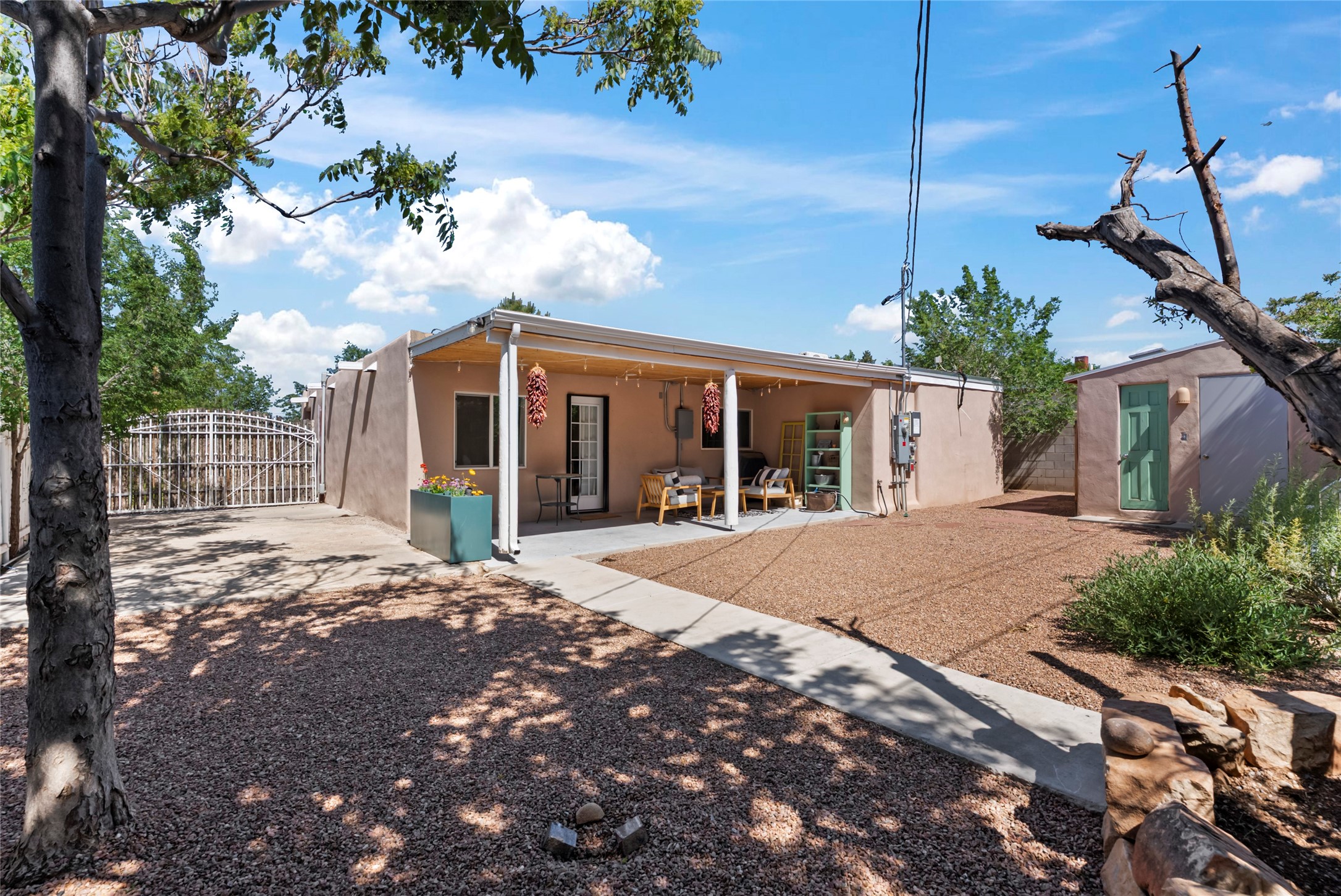 Charming 4-Bedroom Home with Studio Casita & RV Parking - A Rare Find!Welcome to your dream home in the heart of Bellamah! This beautifully updated 4-bedroom, 3-bath gem includes an attached studio casita and convenient RV parking -- just minutes from downtown, parks, courts, and more.Step inside to discover a tastefully REMODELED kitchen, remodeled primary bath, updated flooring, updated windows, and a newer roof. Energy-efficient paid-off solar panels and mini splits make this home as smart as it is stylish.You'll fall in love with the lush front landscaping and tidy backyard, complete with mature trees, vibrant rose bushes, and even a fruiting peach tree. The tranquil front porch, wrapped in classic Santa Fe coyote fencing is perfect for morning coffee or evening unwinding. A heated storage building has potential for a studio space. The attached studio casita features its own full kitchen and half bath -- ideal for guests, a home office, or potential rental income w/ proper permitting.Located less than a block from two expansive parks with tennis and basketball courts, this home blends comfort, convenience, and charm.Don't miss out on this Bellamah beauty -- come see it today!