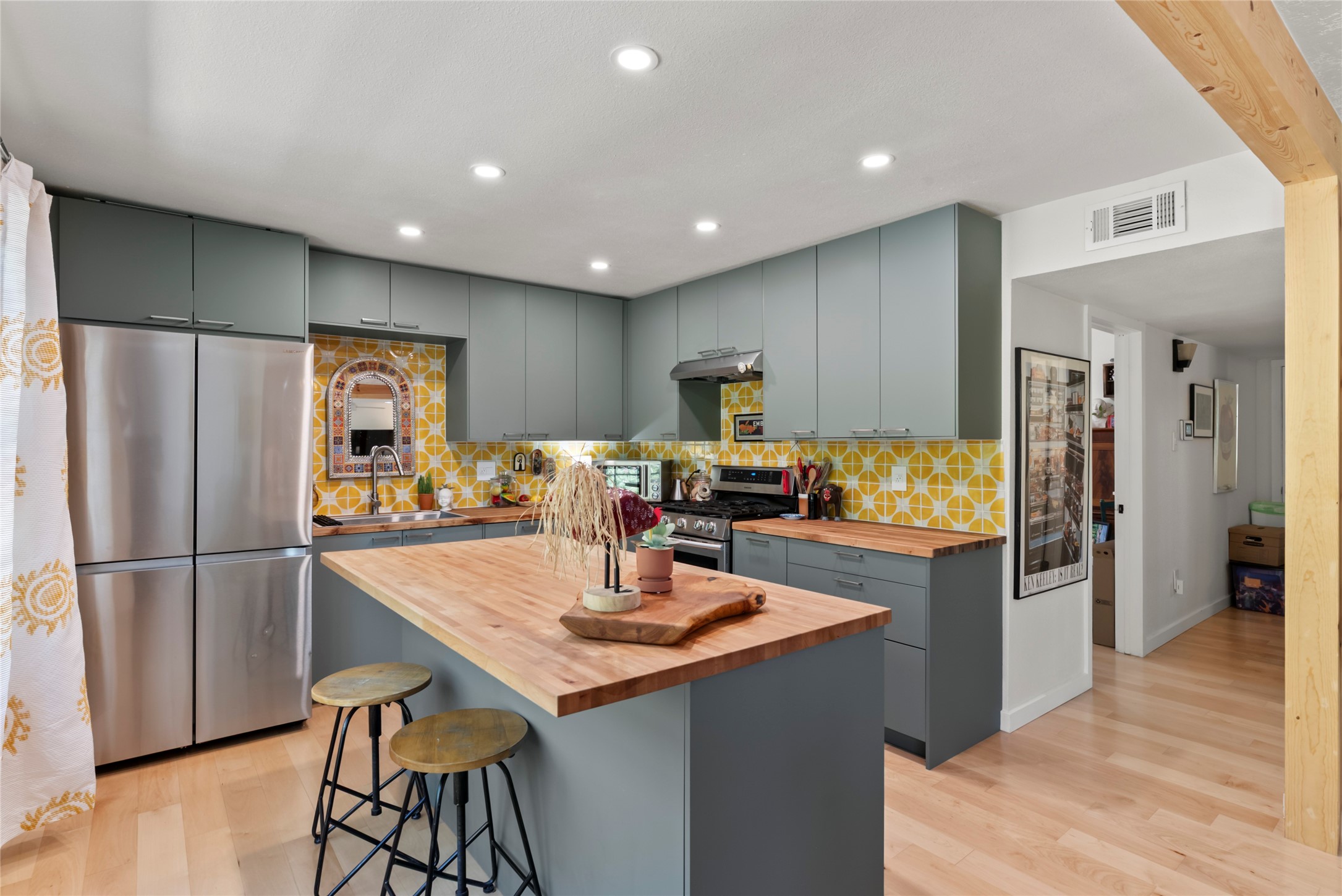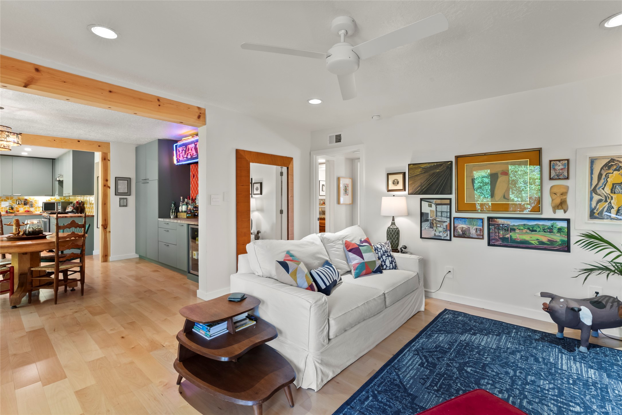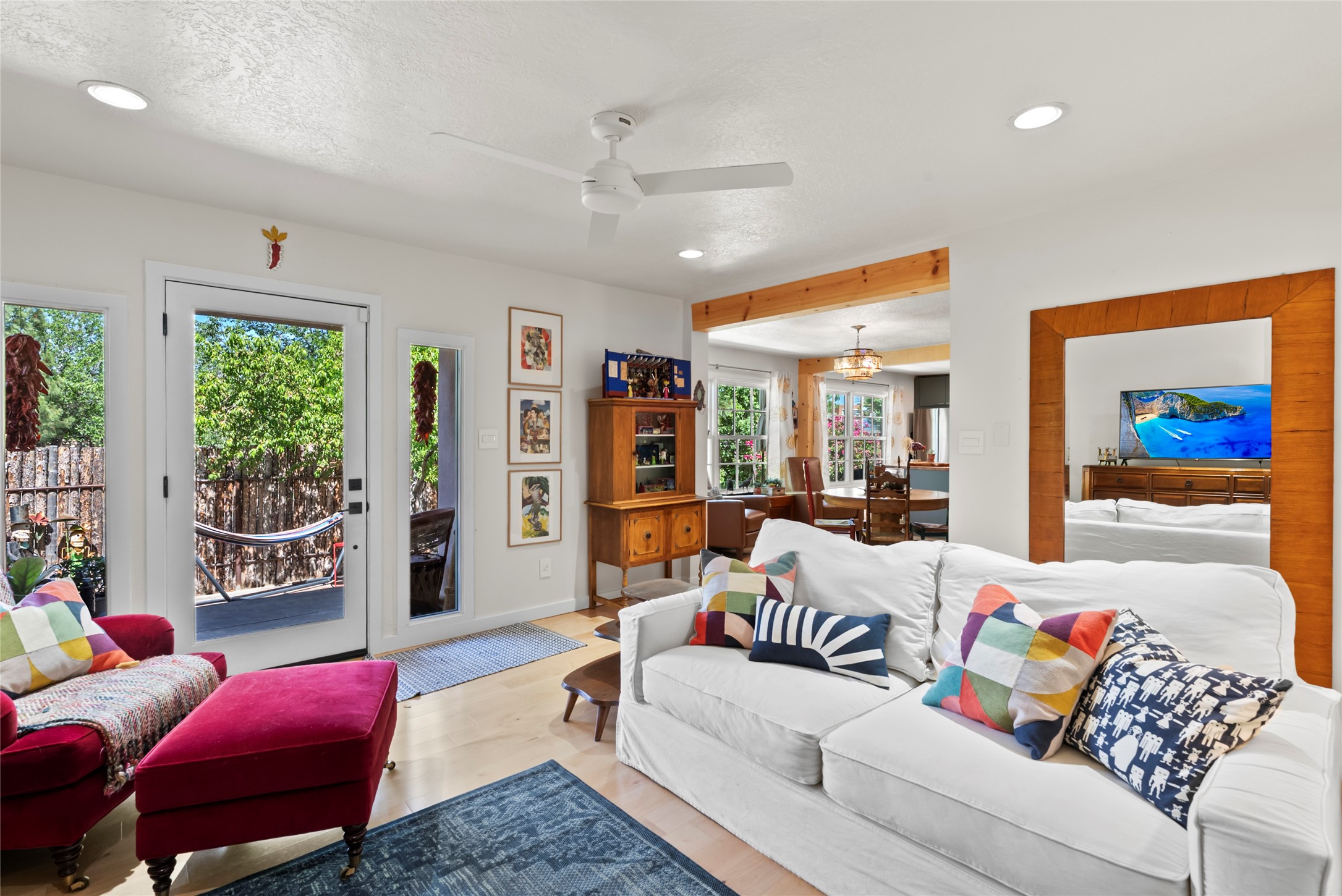 Charming 4-Bedroom Home with Studio Casita & RV Parking - A Rare Find!Welcome to your dream home in the heart of Bellamah! This beautifully updated 4-bedroom, 3-bath gem includes an attached studio casita and convenient RV parking -- just minutes from downtown, parks, courts, and more.Step inside to discover a tastefully REMODELED kitchen, remodeled primary bath, updated flooring, updated windows, and a newer roof. Energy-efficient paid-off solar panels and mini splits make this home as smart as it is stylish.You'll fall in love with the lush front landscaping and tidy backyard, complete with mature trees, vibrant rose bushes, and even a fruiting peach tree. The tranquil front porch, wrapped in classic Santa Fe coyote fencing is perfect for morning coffee or evening unwinding. A heated storage building has potential for a studio space. The attached studio casita features its own full kitchen and half bath -- ideal for guests, a home office, or potential rental income w/ proper permitting.Located less than a block from two expansive parks with tennis and basketball courts, this home blends comfort, convenience, and charm.Don't miss out on this Bellamah beauty -- come see it today!