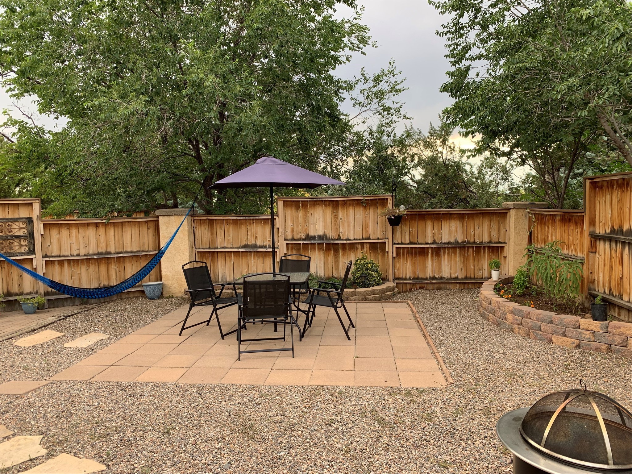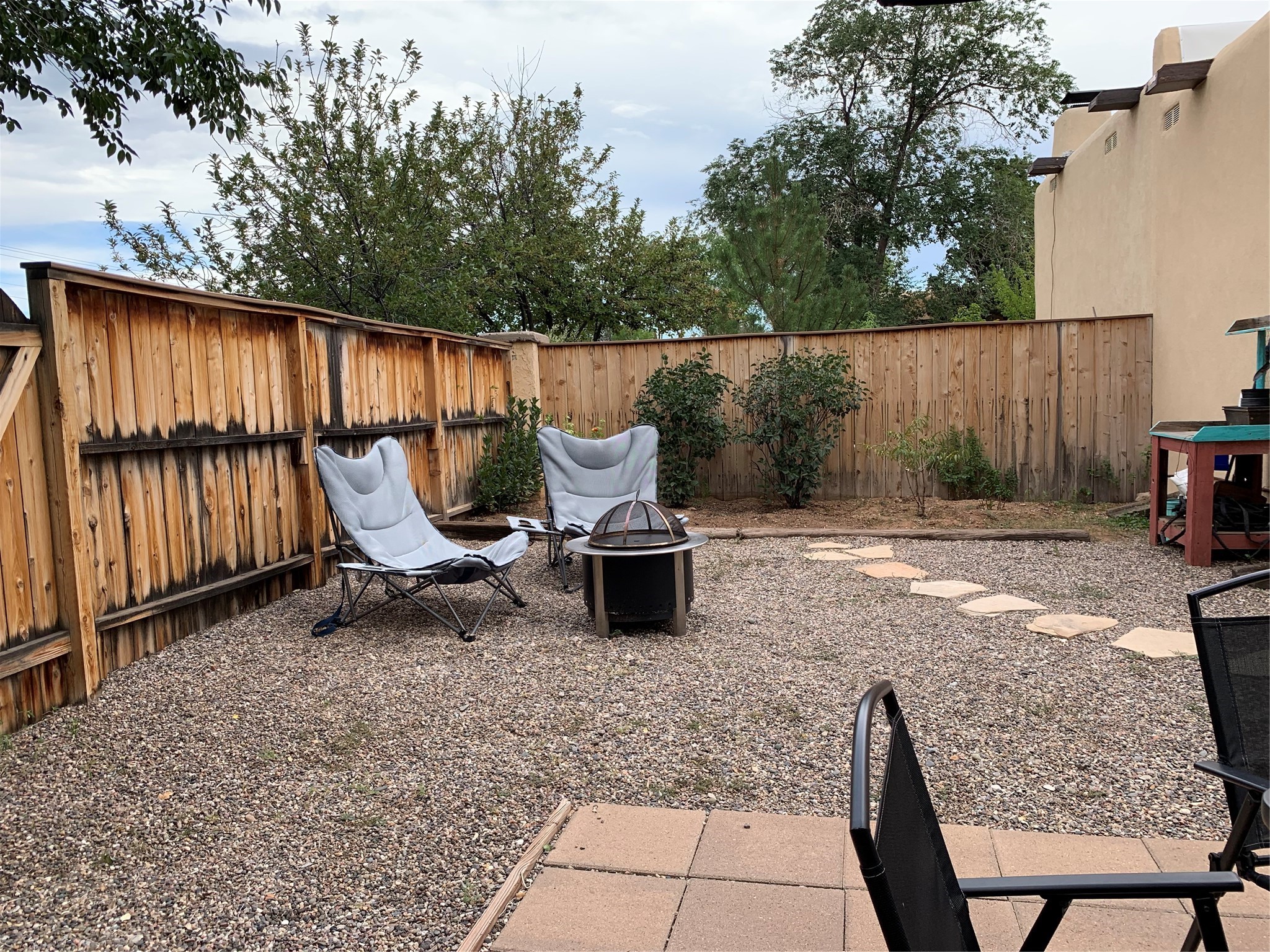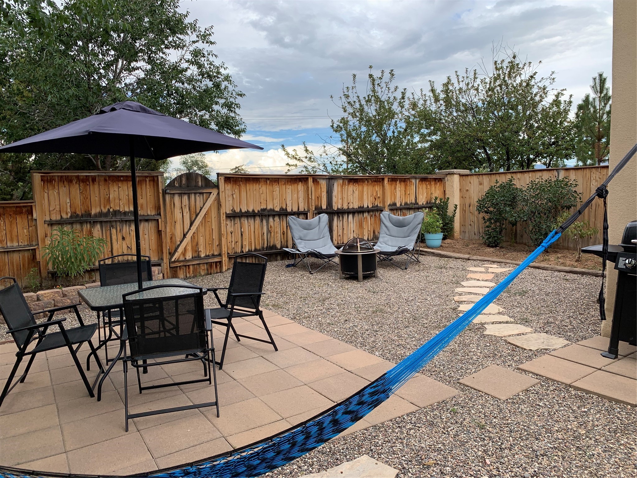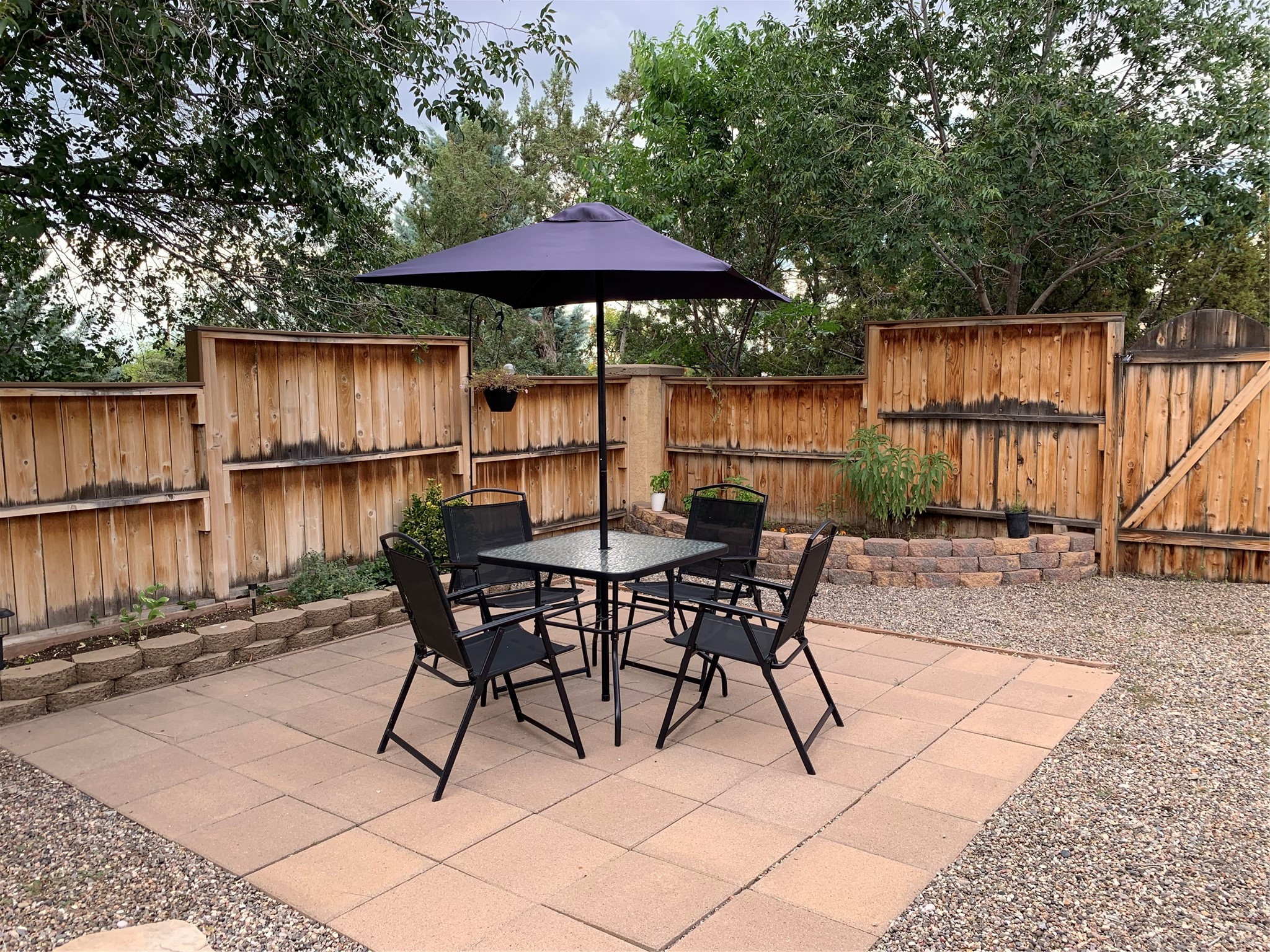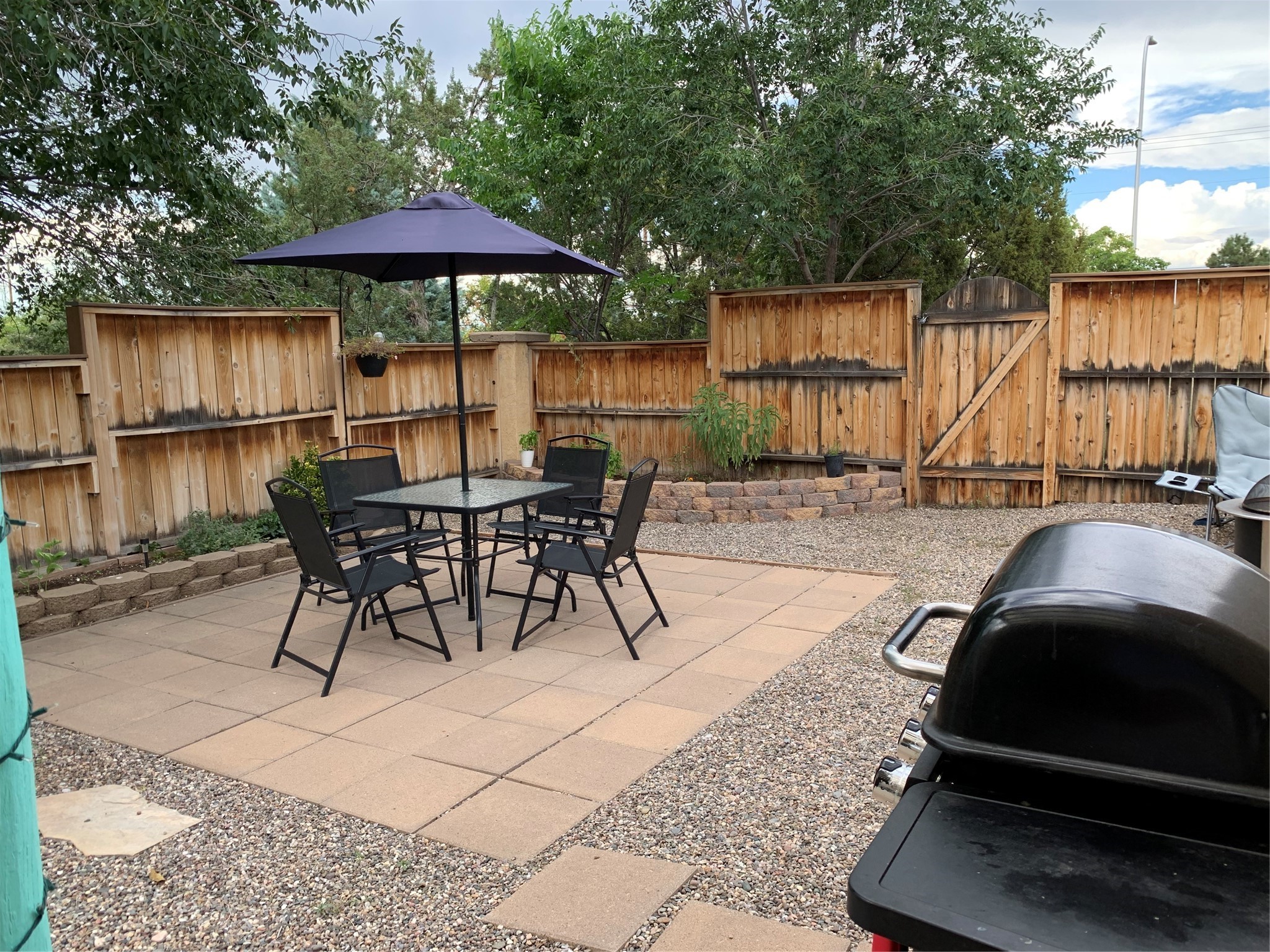 Lovingly maintained, single-story townhouse in highly desirable Park Plazas. The unit has 2 bedrooms, 1 and 1/2 bathrooms, a Kiva Fireplace, a covered patio that extends to the large yard, with gated access to the greenbelt. Recent improvements include: new cabinets, a farm sink, wood block counter tops, subway tile, and new Whirlpool appliances. New lighting, faucets, toilets, and new carpet in bedrooms in 2022. The furnace and hot water heater were replaced in 2017, and an air conditioning unit was added as well. Park Plaza amenities include tennis & pickle ball courts, fenced dog park, playgrounds, community garden, RV Storage yard, and many exercise trails, all while being conveniently located to shopping, downtown and I-25.