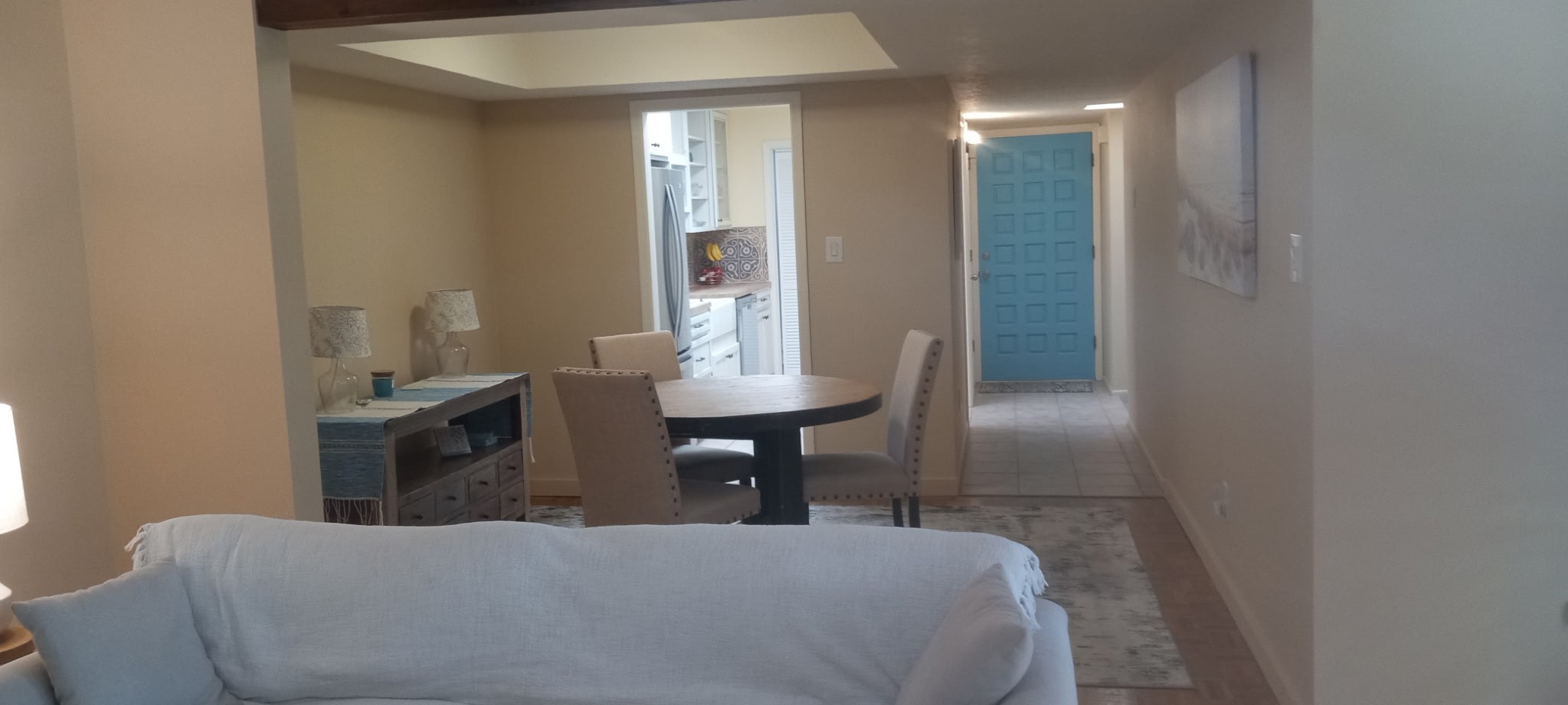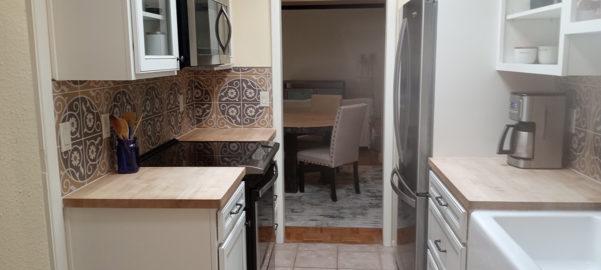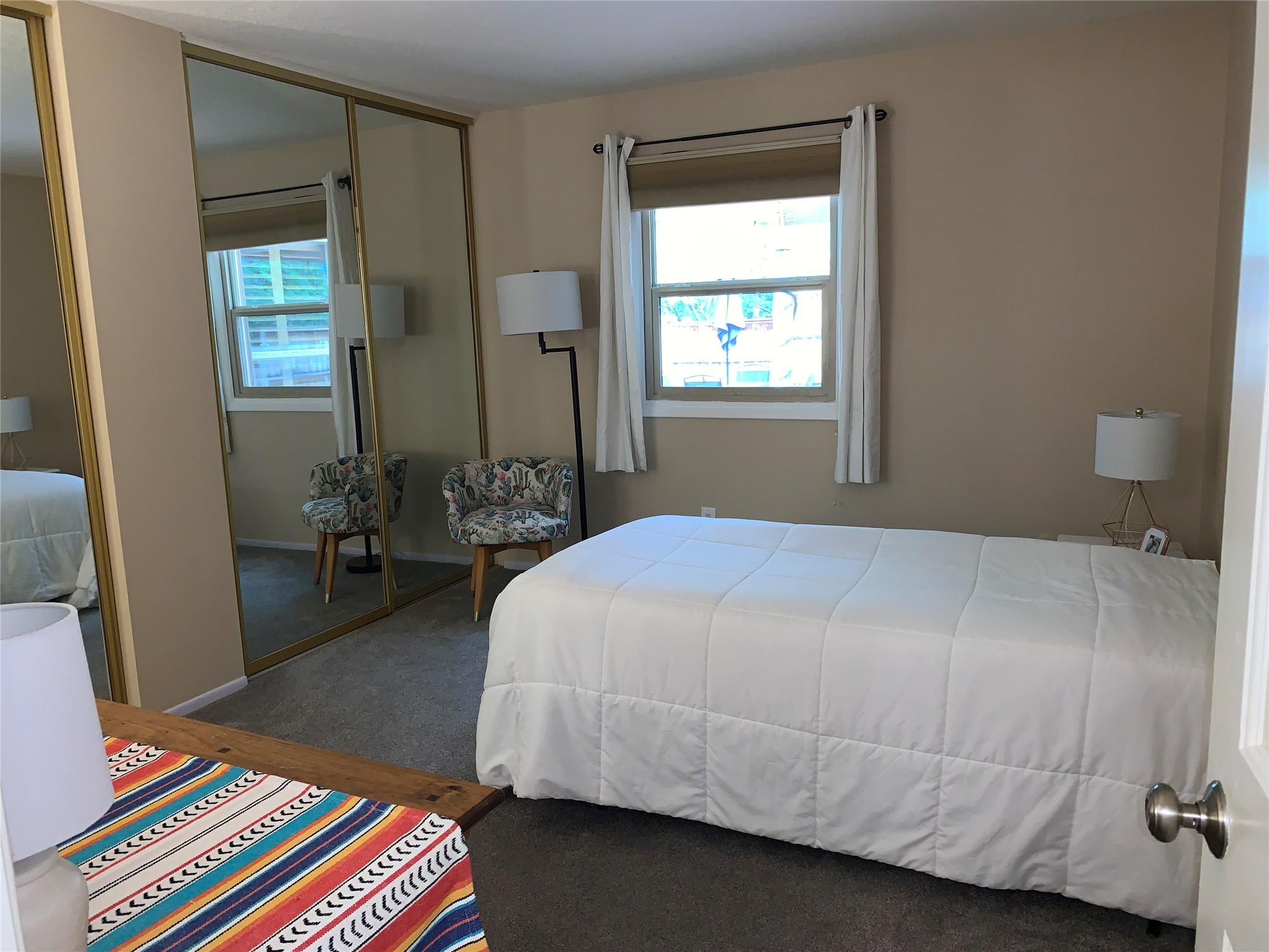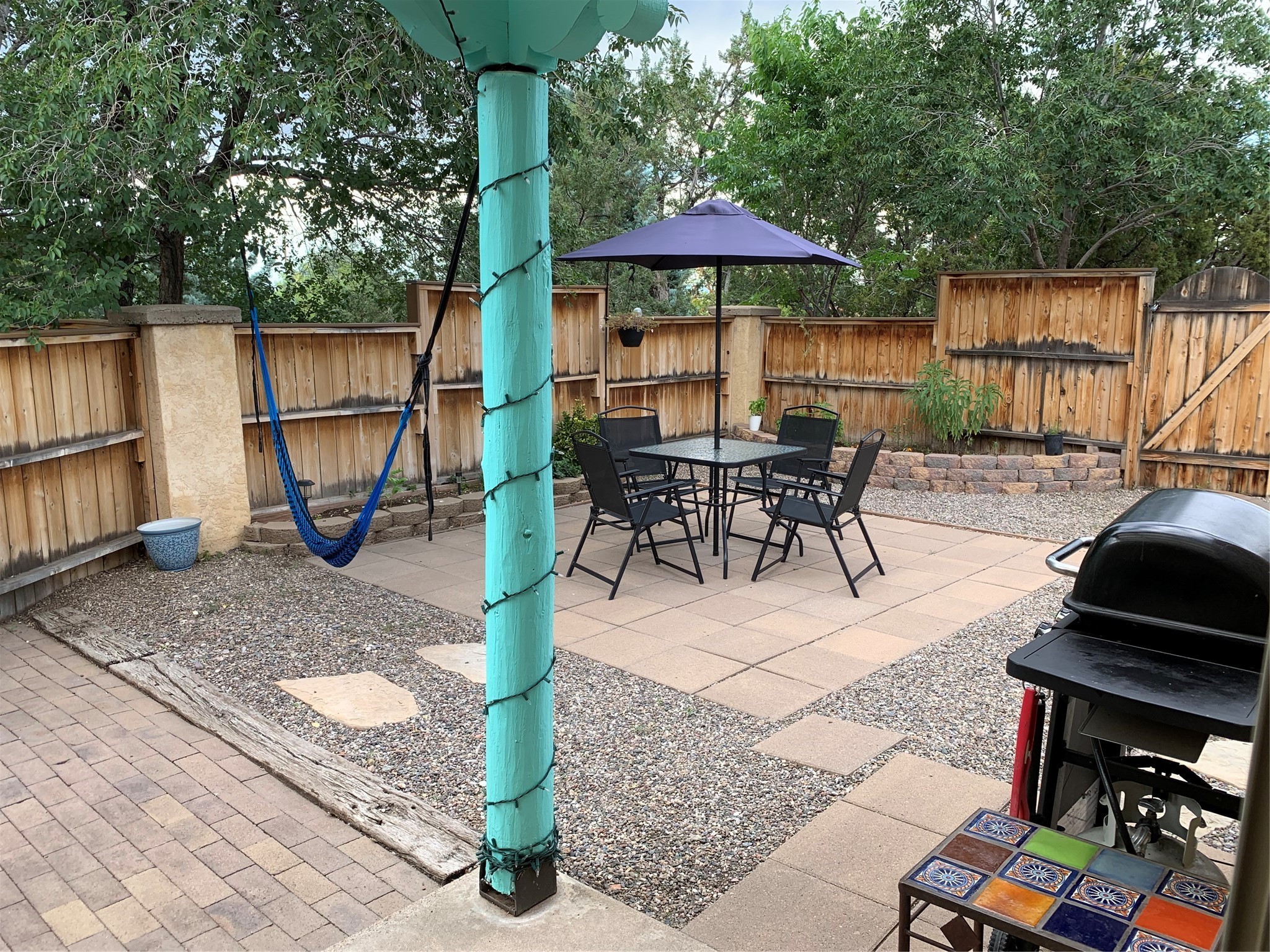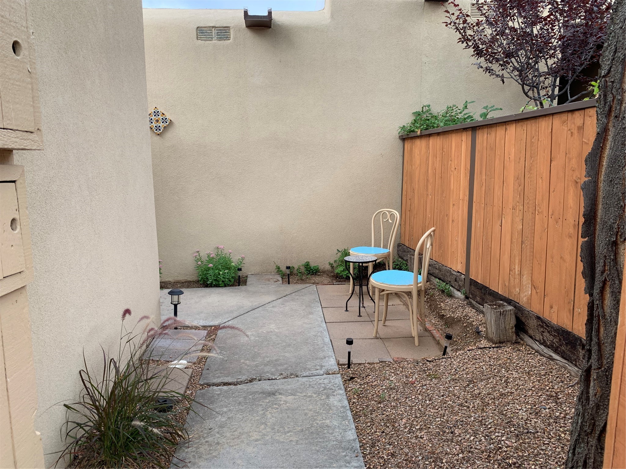 Lovingly maintained, single-story townhouse in highly desirable Park Plazas. The unit has 2 bedrooms, 1 and 1/2 bathrooms, a Kiva Fireplace, a covered patio that extends to the large yard, with gated access to the greenbelt. Recent improvements include: new cabinets, a farm sink, wood block counter tops, subway tile, and new Whirlpool appliances. New lighting, faucets, toilets, and new carpet in bedrooms in 2022. The furnace and hot water heater were replaced in 2017, and an air conditioning unit was added as well. Park Plaza amenities include tennis & pickle ball courts, fenced dog park, playgrounds, community garden, RV Storage yard, and many exercise trails, all while being conveniently located to shopping, downtown and I-25.