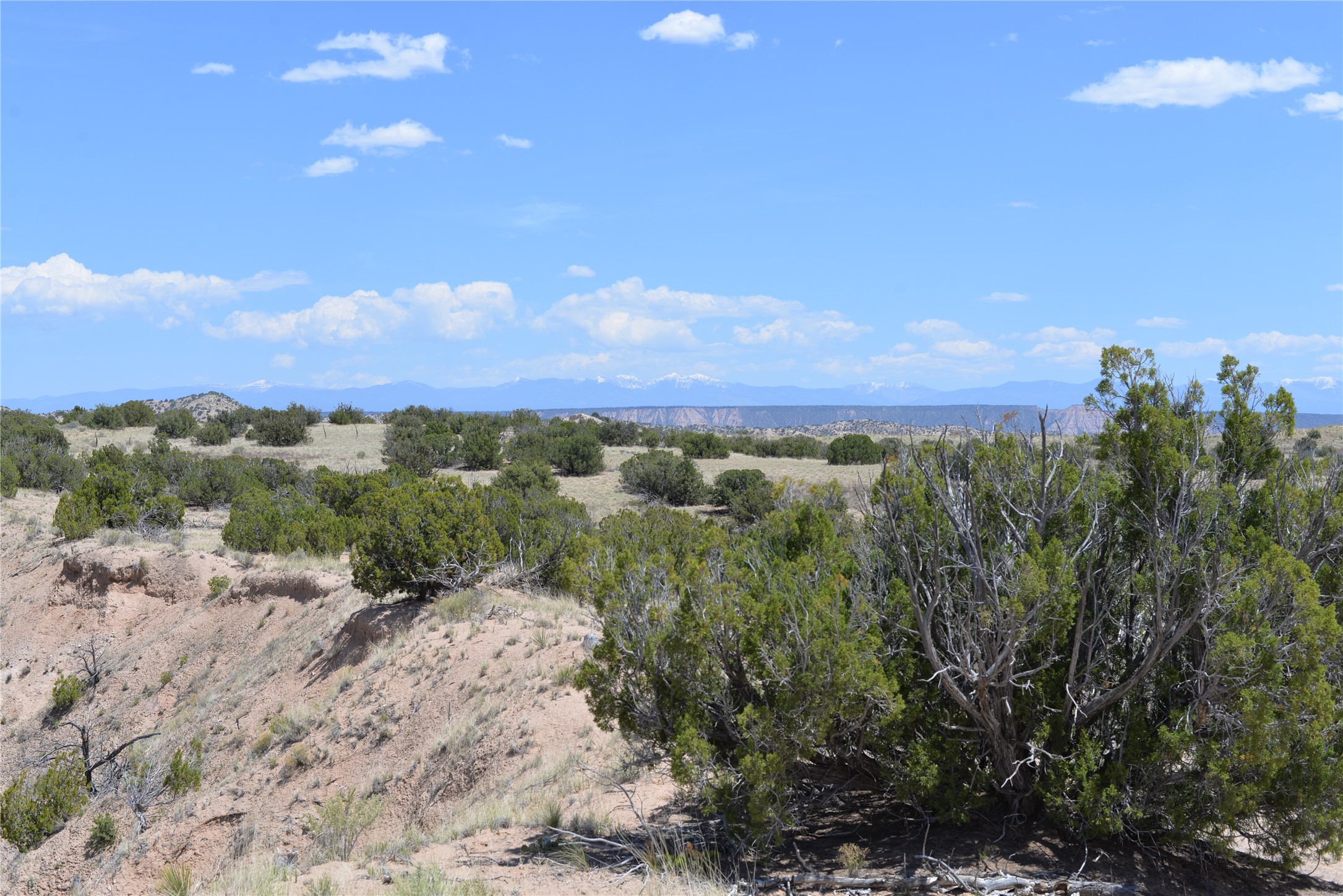 This secluded 25-acre property offers some of the most expansive and captivating views to be found anywhere in Northern New Mexico. Just one lot away from a vast tract of BLM land, the mesa-spanning lot is readily subdividable, so as to create two large, separate view lots with other lots potentially in between. One view lot would face North, overlooking the Canones Valley; and the other would offer profound views to the South, overlooking a unique and seemingly infinite maze of deeply incised arroyos that comprise this section of the Chama River Basin. Iconic Pedernal Peak, the Jemez mountains and the Sangre de Cristo mountains (including Santa Fe Baldy) are well-visible from both ends of the lot. While many lots in Northern New Mexico offer a degree of solitude and inspirational views, this lot offers them in rare abundance. If you are looking for a property to enjoy today and pass down through many generations, do not hesitate to act on this fine property. Please note: telephoto used in select photos.