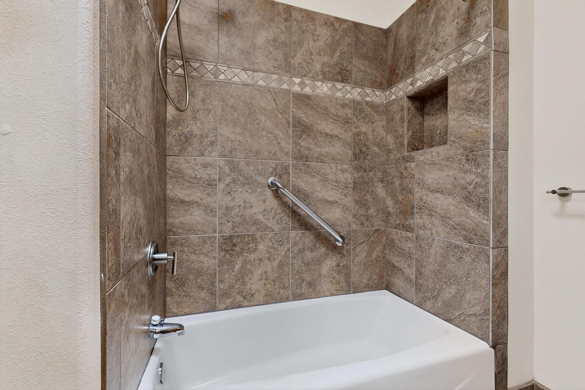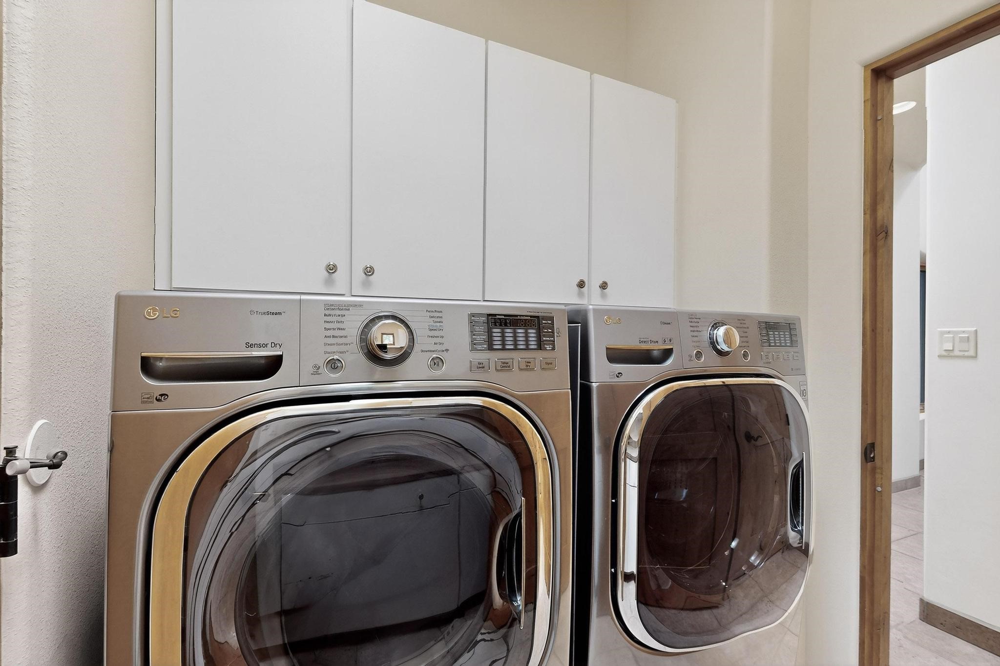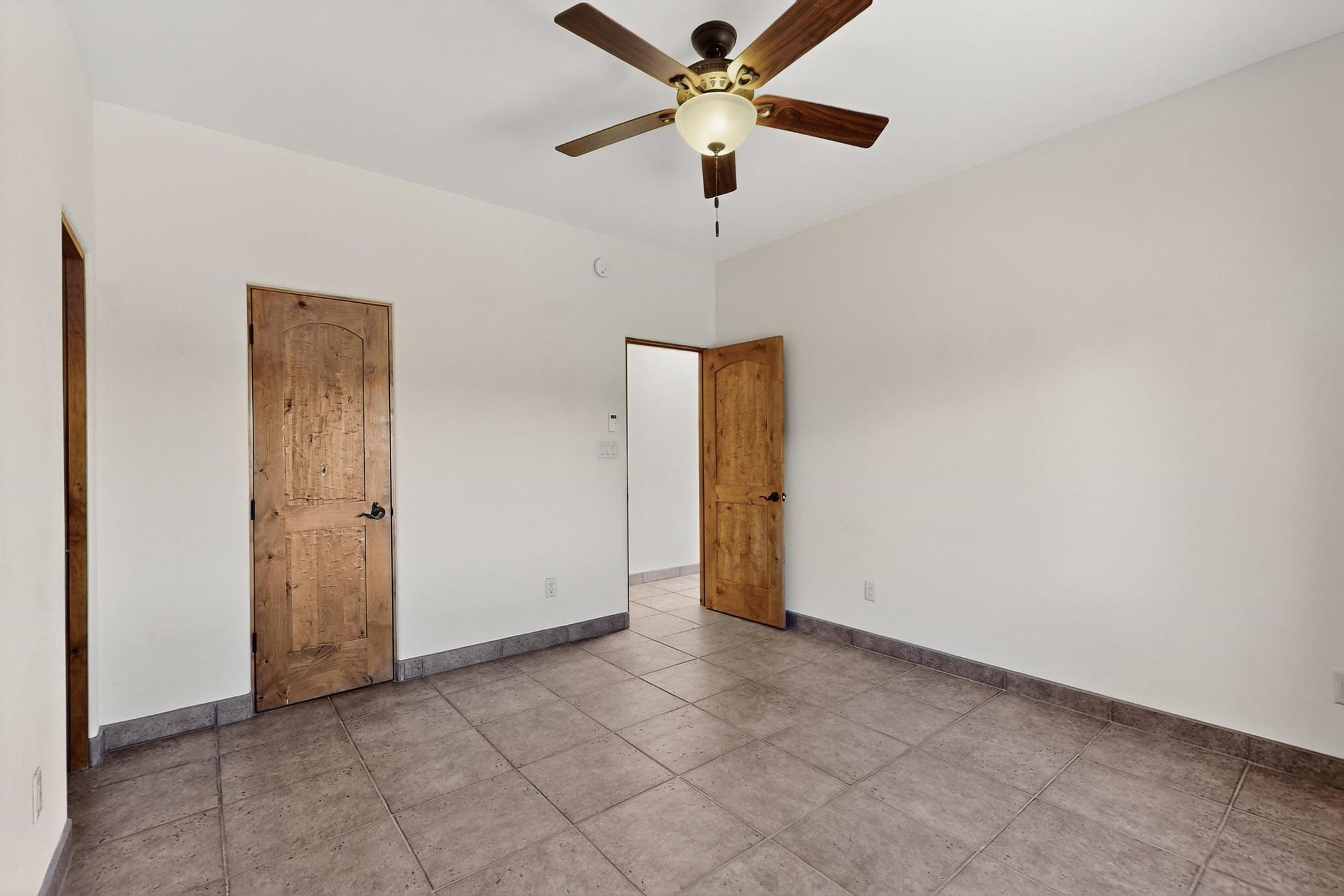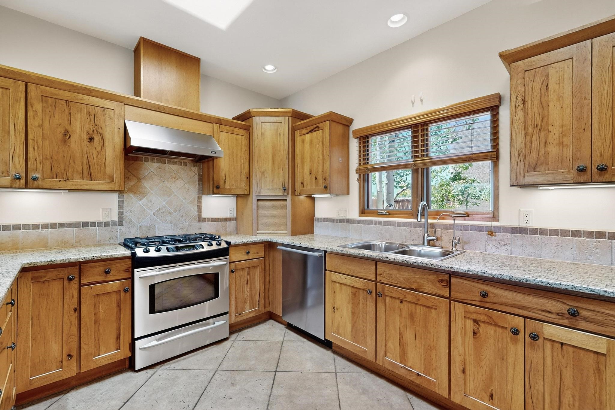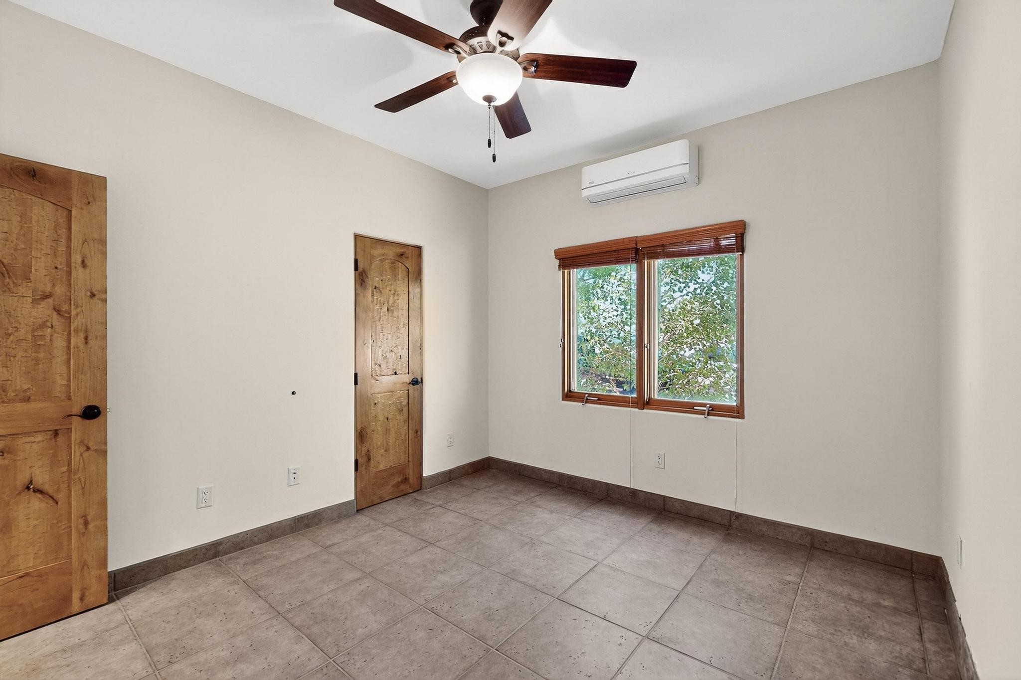Wonderful custom design built by CPA Construction maximizing panoramic mountain views from across a large greenbelt. A private oasis with large picture windows from which to watch the wildlife go by. A large owners suite, totally separated from the guest wing, features high viga ceilings, a kiva fireplace and large walk in closet. The great room, dining room and kitchen open plan design allows for flexible use of space. There is a WirsboPex natural gas radiant heating system plus mini splits added in 2016 and annually maintained create comfortable summer and winter living. The roof was replaced with TPO in 2021, and stucco maintained recently. An additional 2 room and 1 bath casita /studio area with both direct entry from the home and an exterior entry. A private well supplies the domestic water and maintains the gardens, and an oversized 2 car finished garage with guest parking. Easy access to Eldorado amenities, parks and trails, local shopping, library, schools and only minutes into Santa Fe.