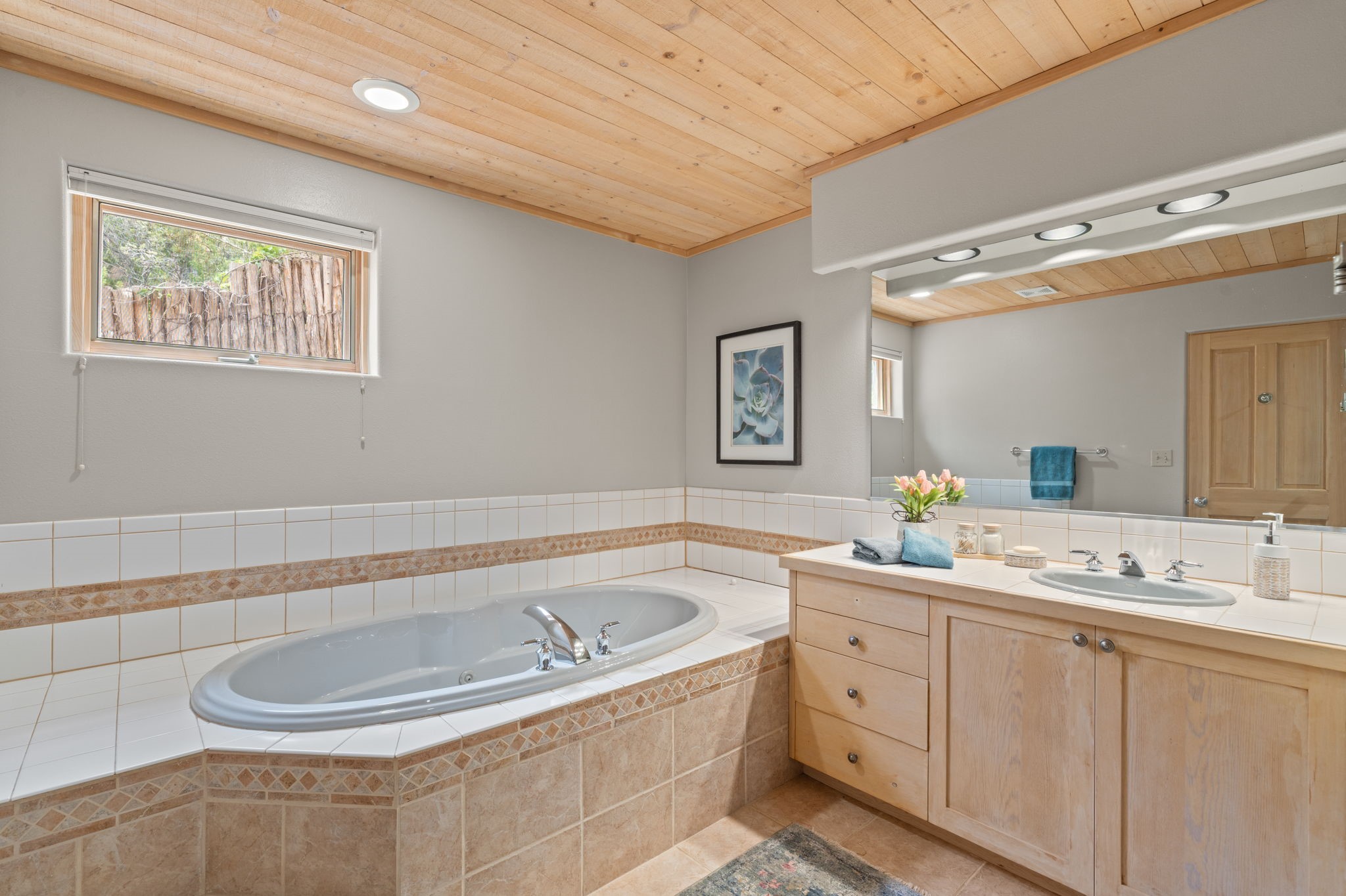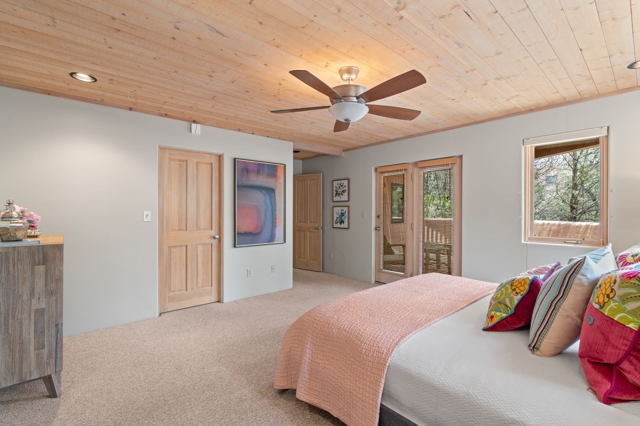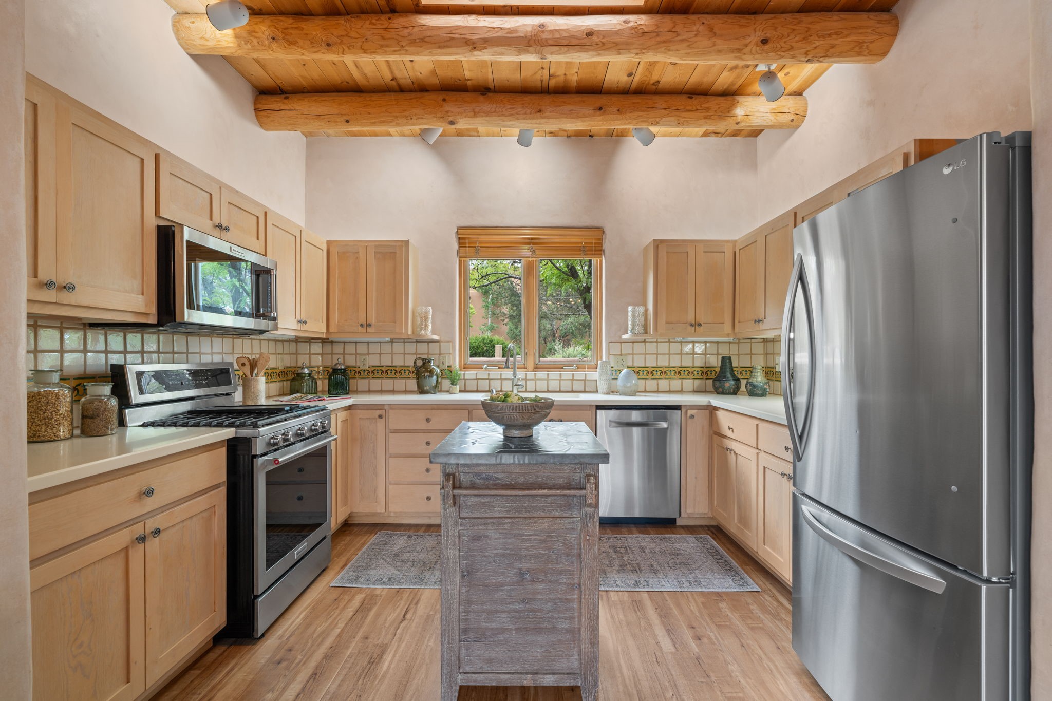 Sophisticated In-Town Living in highly sought-after Estancias Primera on charming La Viveza Court. Leave your home and walk to the Plaza via the lush arroyo. This two-story home has three outside living with an open living/dining/kitchen floor plan with wood-burning Kiva fireplace, plaster walls, wood floors and vigas, a main level powder room and tree-scaped patio. The two well-sized bedrooms have doors to walk out on to the terrace and feature en-suite full baths. In addition to a heated two-car garage with shelving, there are two nicely-sized storage areas. Estancias Primera is known for its reasonable HOA fees, privacy, and has a seasonal swimming pool, tennis courts and a clubhouse. This is the perfect lock-and-leave or full-time home. In five minutes, you're at the Plaza or Dale Ball trail system and in 20 minutes, the ski basin. The home has radiant floor heating and mini splits for air conditioning and additional heating.