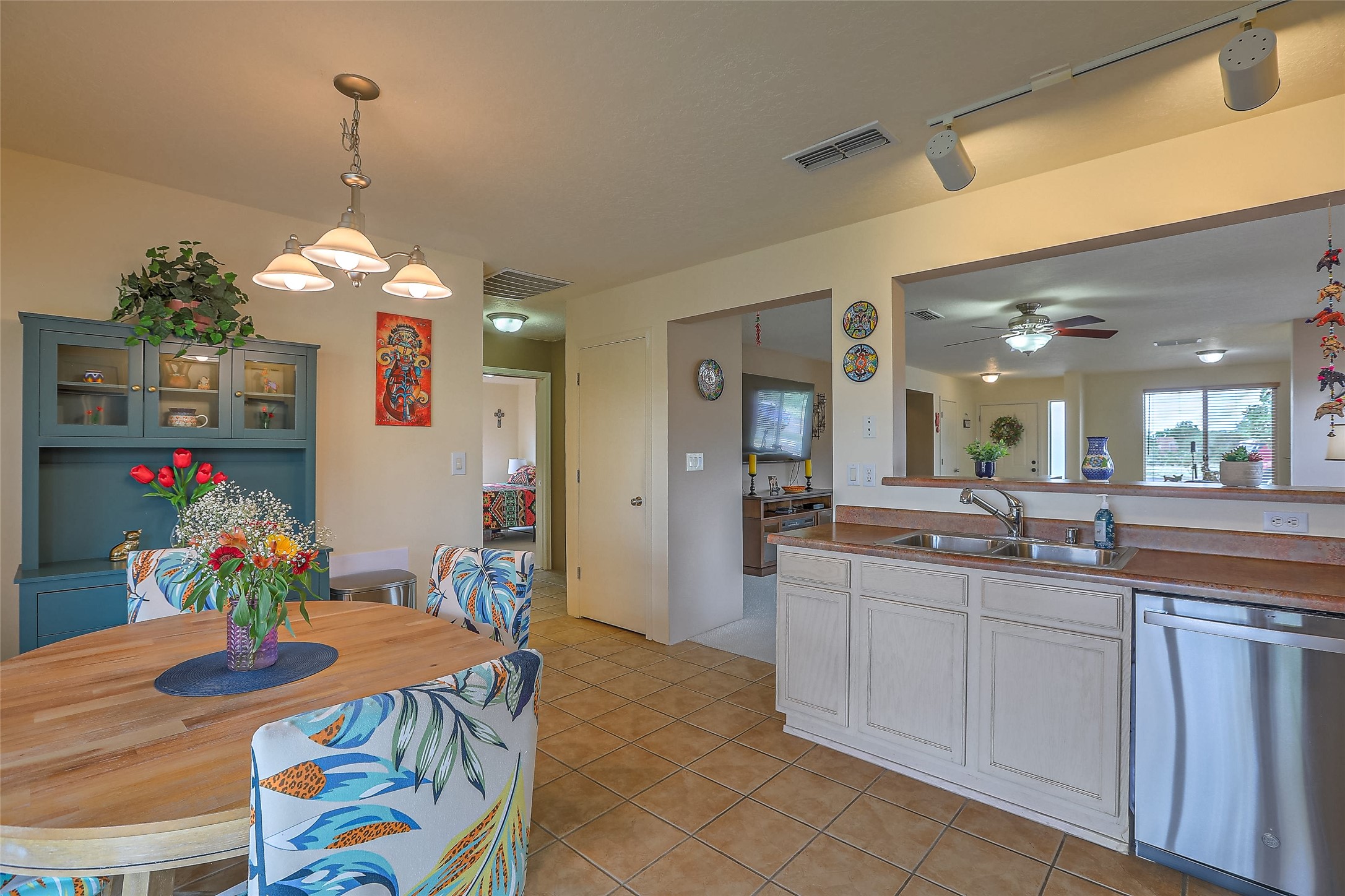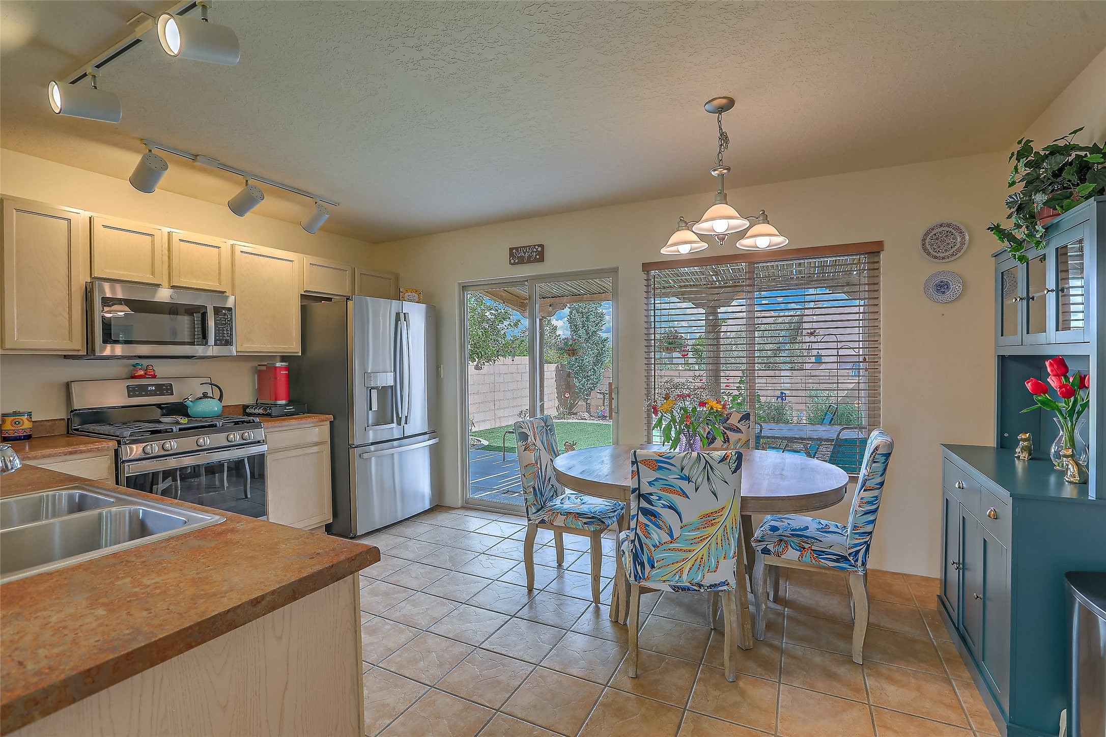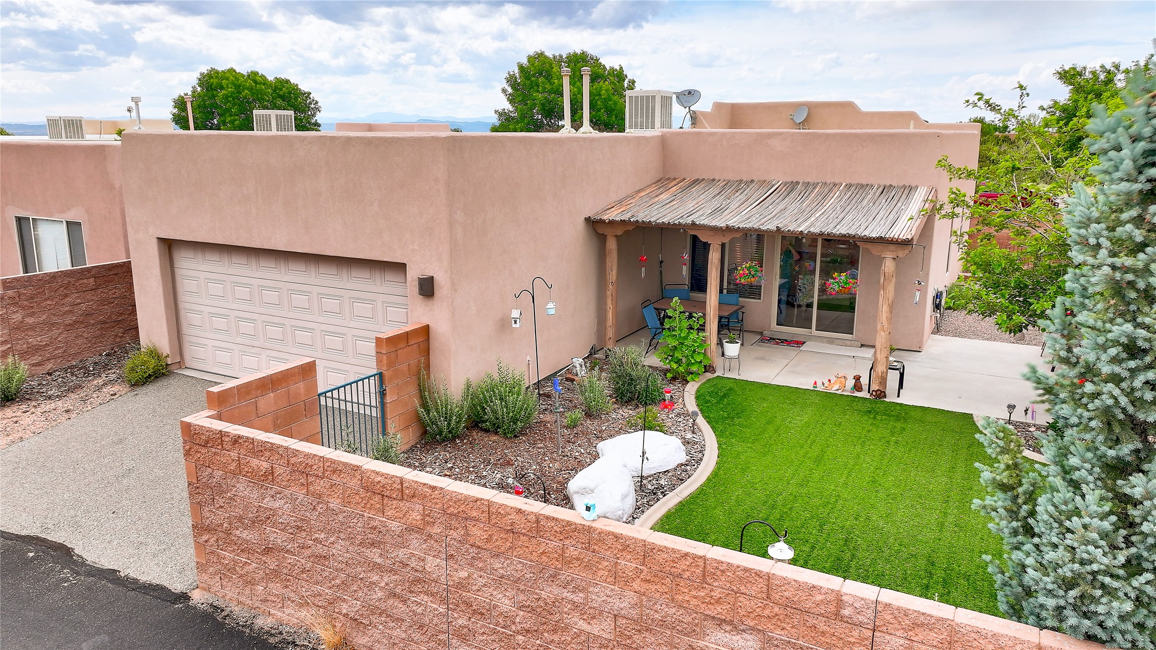 Well loved and cared for home. Move-In Ready with thoughtful touches! Why wait to build? Well designed, this updated lovely home with a newer roof, stucco, & appliances. Spacious layout and great outdoor space. Lots of privacy, end unit with open space and views surrounding it. One level, light and bright & impeccably clean. Guest parking out front of home. 2 car attached garage off alley for easy access. HOA includes trash pickup, road maintenance & snow removal. Community parks, walking, biking and hiking trails everywhere! The open-concept design combines the large kitchen dining area and the main large living room space. Outside, the covered portal showcases to a private backyard oasis enclosed by a privacy wall. Beautiful landscaping, combined with astroturf for pets, allows for beauty with low maintenance. Night time skies for relaxing while stargazing at night. Located in the highly desirable Rancho Viejo community, this home is part of a unique village concept dedicated to open space. With more than 14 miles of scenic walking trails and numerous parks, residents enjoy a serene and active lifestyle. Plus, you're roughly 14 miles from the Santa Fe Plaza, making it easy to experience all the culture, dining, & entertainment Santa Fe has to offer. Don't miss this rare opportunity to own this newly updated home in a tree filled community--schedule your showing today, this one won't be on the market long!
