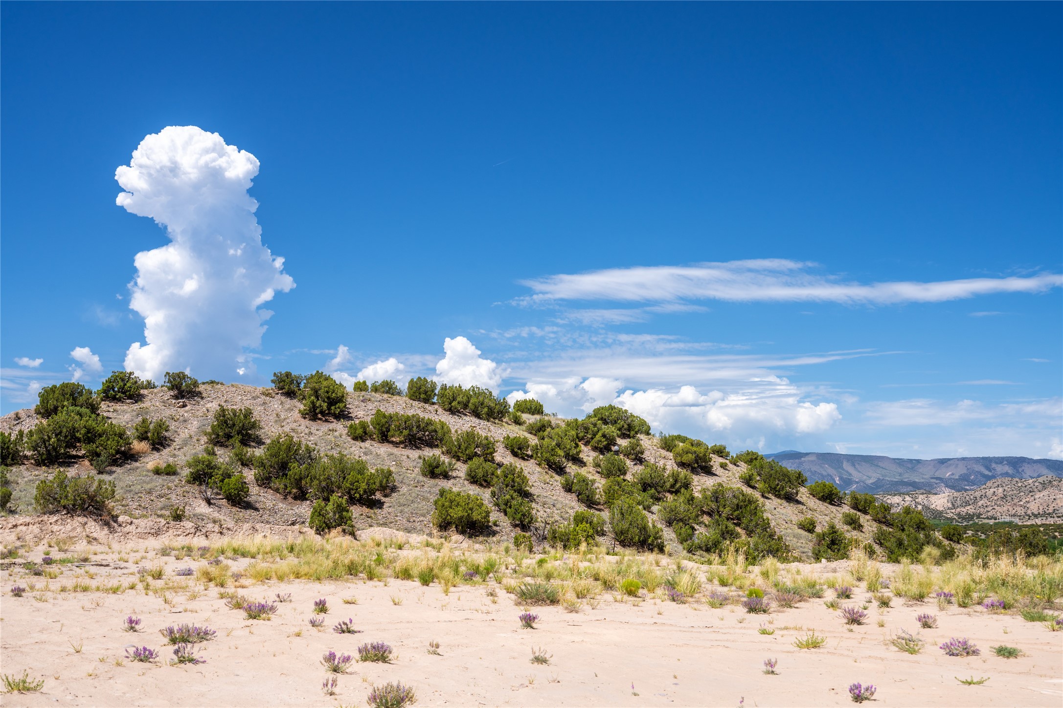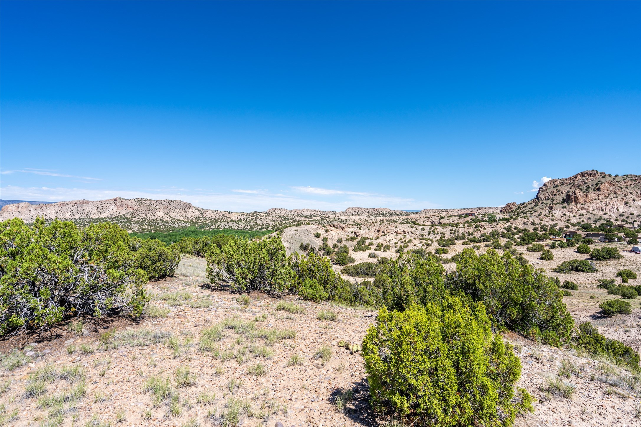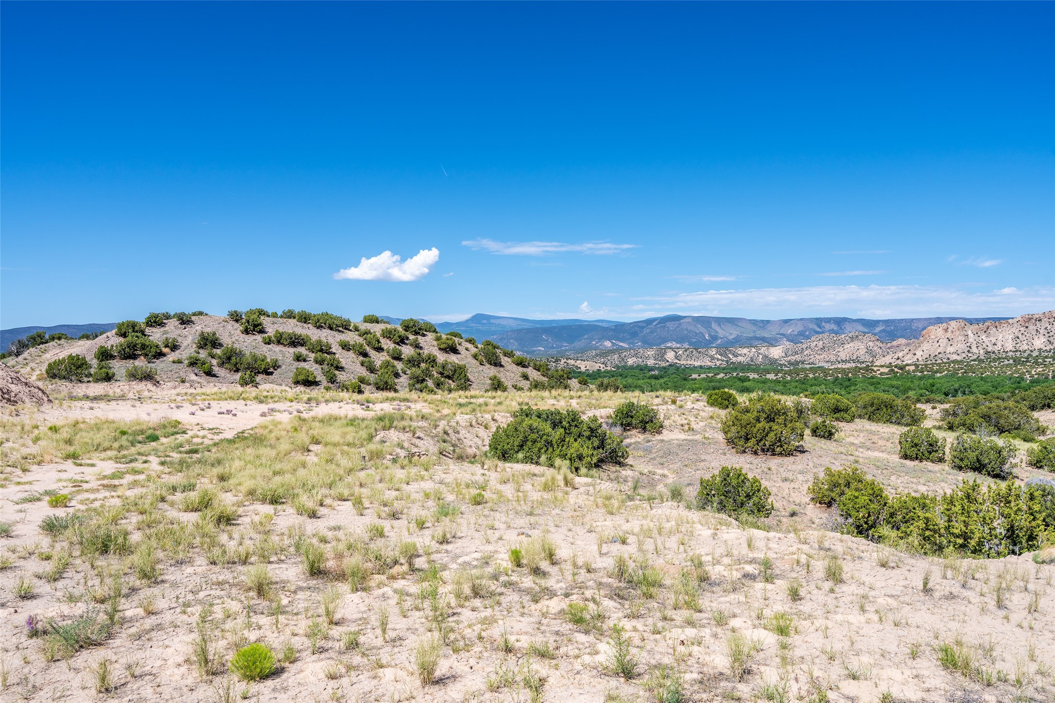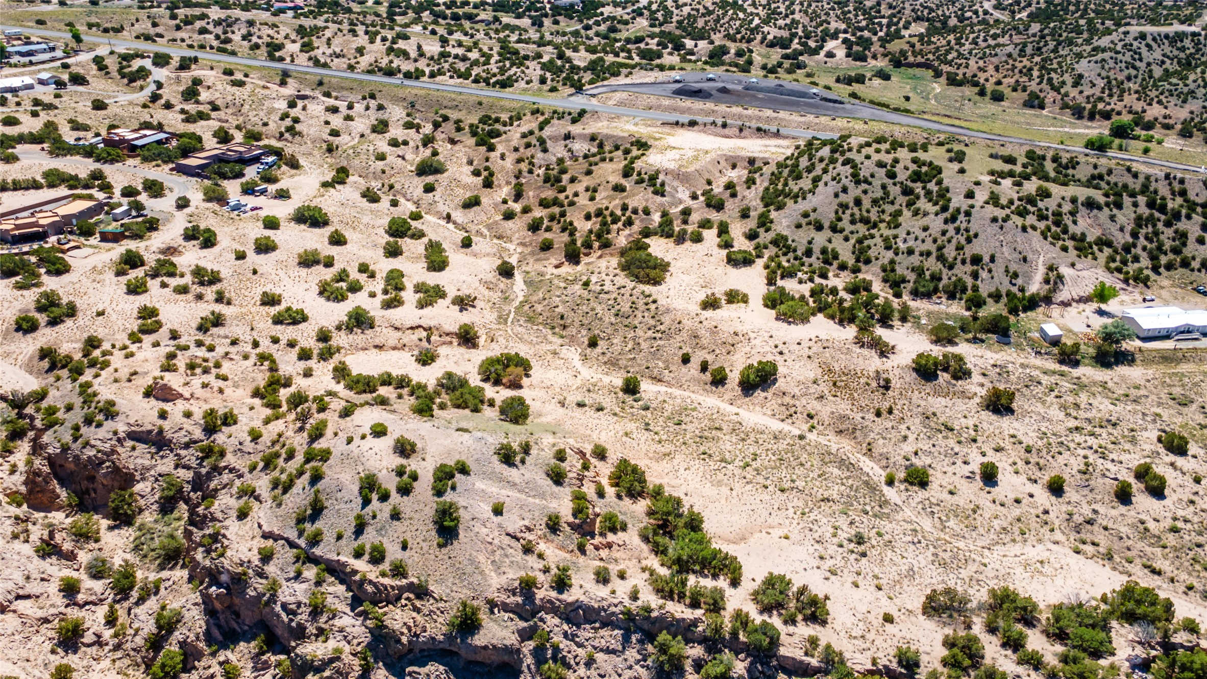 Amazing views without having a bumpy, out of the way trek up a mountain. This kind of opportunity doesn't come very often. Build your dream home, wake up to spectacular sights over the valley, but still have access directly off highway 285, and still feel secluded because of the hills on either side of the entrance which give buffers between home and highway. Perfection! The higher area has already been flattened in preparation for building. This point overlooks arroyos, valleys. and mountain formations. Electricity isn't very far away. Access directly off 285 will make other utilities easier to bring in as well. Not a far commute to Los Alamos. Two lots being sold together for a total of 3.93 acres.