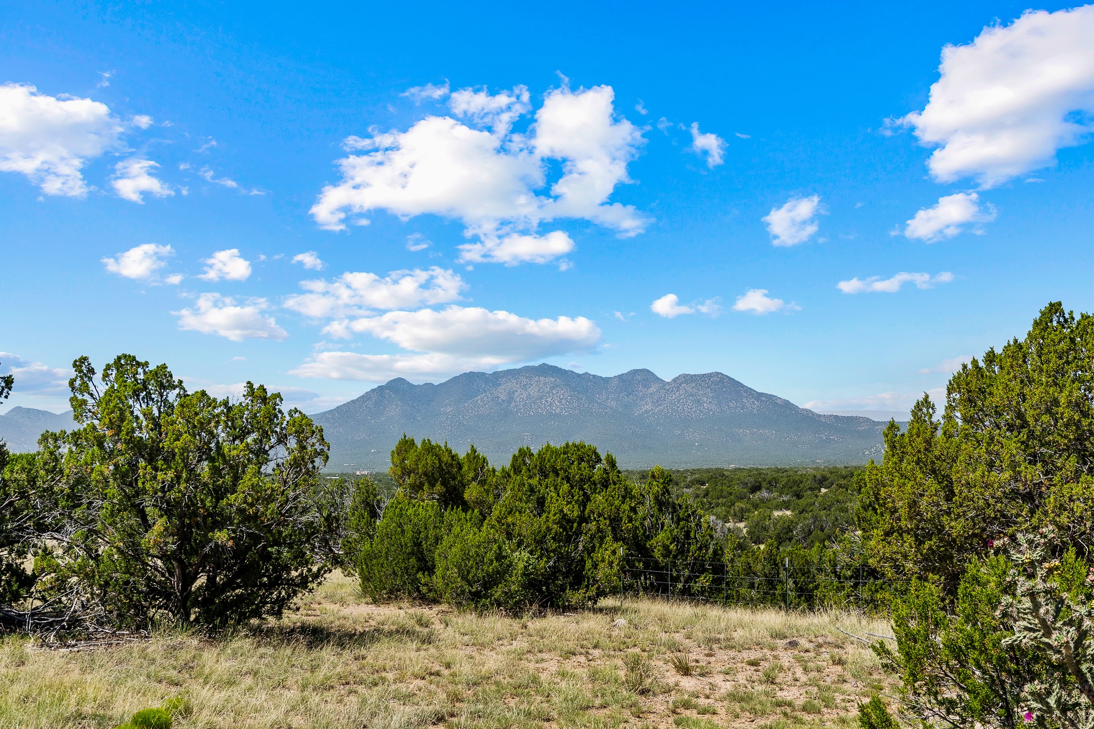 Contemporary style in a high-desert setting with breathtaking mountain views, this home sits on a spacious forty-acre lot in the foothills of the Ortiz Mountains. Fully self-reliant, it boasts utilities provided by solar, wind, and water catchment, with public electric lines available on the street. Thoughtfully designed, the home features high wood plank ceilings, polished concrete floors, and an open, modern kitchen. House is constructed of rastra for energy efficiency and fire safety. Natural light floods the space through glass doors on both the north and south sides of the house. Fenced courtyards delineate landscaped areas, while the remaining acreage remains untouched. The primary suite is cooled by a mini-split, and includes a full bath and conveniently located laundry, while a half bath serves the primary living area.On the opposite side of the house, a large bonus room offers versatility as an office, second bedroom, or art space, and leads to a one-car garage. Both the garage and bonus room are equipped with sinks. The house is warmed by radiant heat in the floors, powered by solar hot water collectors.The property includes a storage shed and shipping container, solar shed, wind generator, 9000 gallons of water storage, as well as hookups for an RV. The locationoffers easy access to town on well-maintained roads within a gated community with no HOA. Located just 21 miles from Santa Fe and near dining and entertainment options in Madrid and Cerrillos, this home provides a perfect retreat without compromising comfort or convenience.