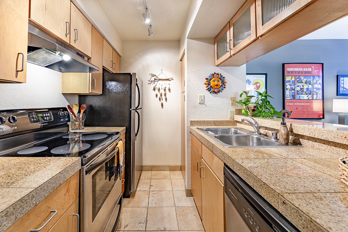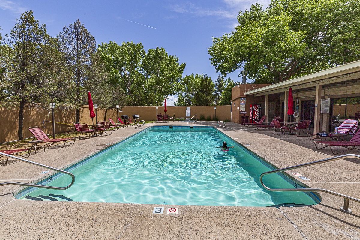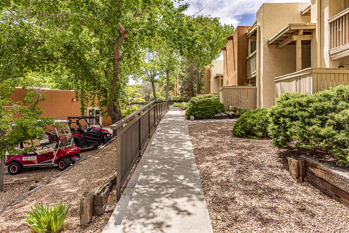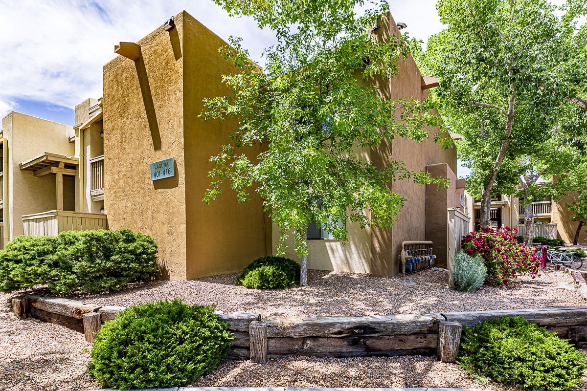 NEW PRICE - 10K off orig. now $6K UNDER market value! Come fall in love with this beautiful 1 BR/1 BA/582 SF condo at Santa Fe's coveted Reserve Condominiums. As a South-facing 2nd floor unit with no-one above, this condo offers peaceful serenity in the Laguna building DIRECTLY adjacent to the clubhouse with year-round heated pool/hot tub, gym, and laundry center, making daily living a breeze. In fabulous condition, this unit was refreshed 4 years ago with new paint, carpet, & window treatments, and looks like it was done yesterday. Open living plan, kitchen w/stainless appliances, granite tiles and golden birch finish cabinetry. A gracious full bath gives way to a generous sized bedroom with a huge custom-fitted closet for your wardrobe and storage needs, with 3 additional closets in the unit. Enjoy morning coffee or happy hour on the patio overlooking the Reserve's lushly landscaped scenic paths. With downtown Santa Fe's vibrant cultural scene just minutes away, it's a hop, skip and a jump to enjoy everything the city has to offer. Or take to the trails with your furry friends, hiking shoes, or bicycle, the newly opened Canada Rincon trail is just next door. For your peace of mind, this is a GATED community, making it an ideal lock and leave residence, as well as a permanent home. Pet friendly! (Check details with the HOA). The Reserve's stellar reputation for quality condo living is renowned throughout Santa Fe, come see what this beautiful unit has to offer!